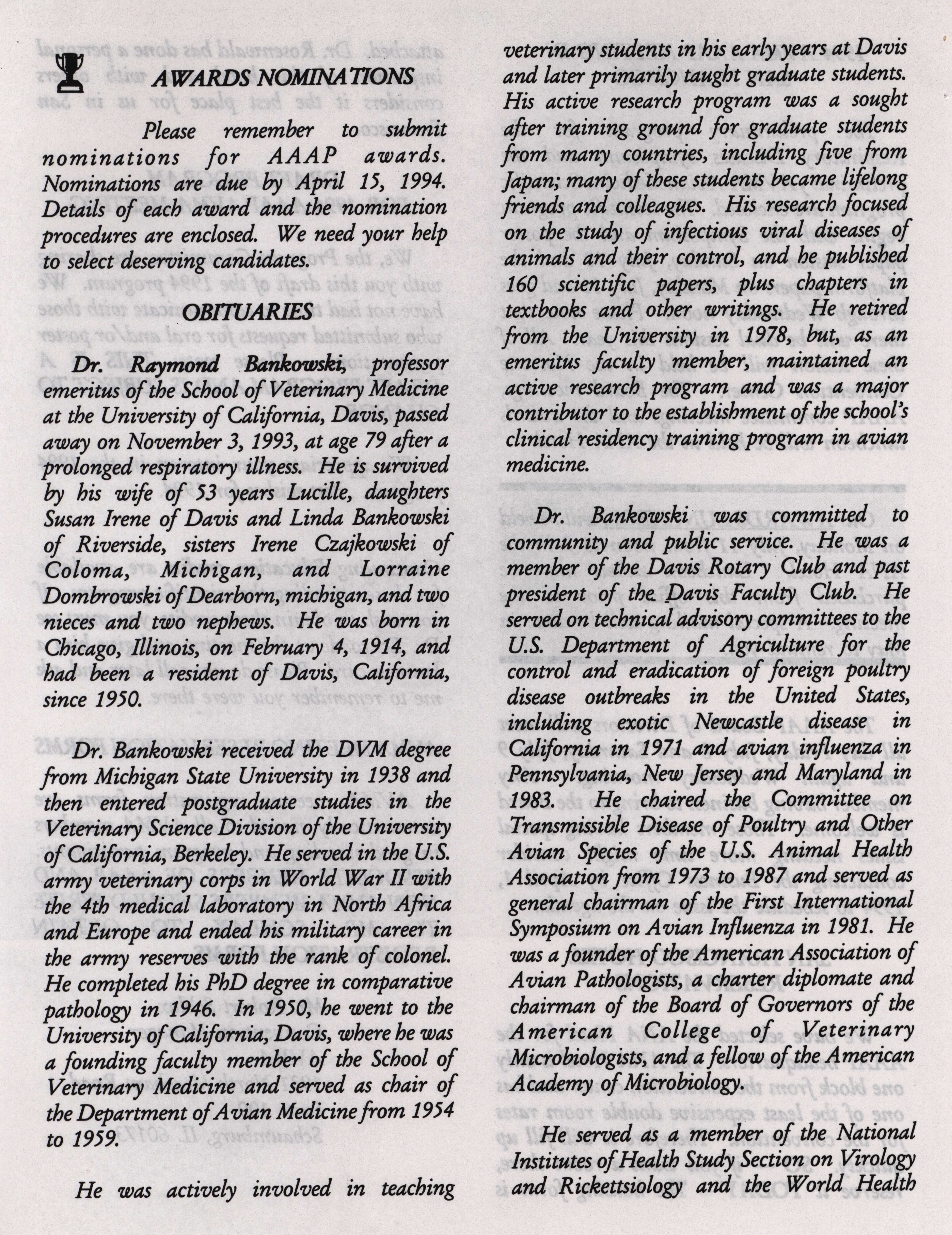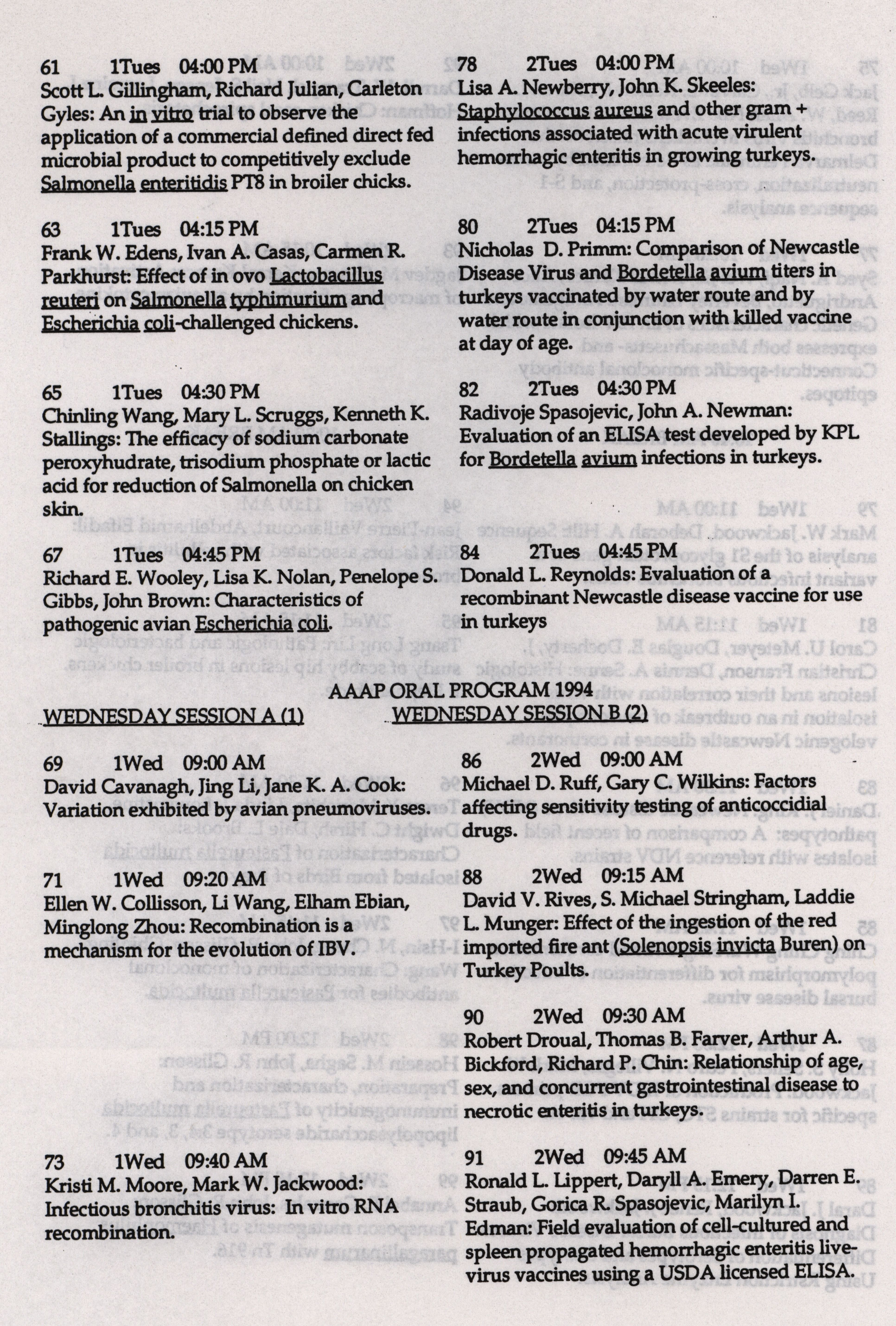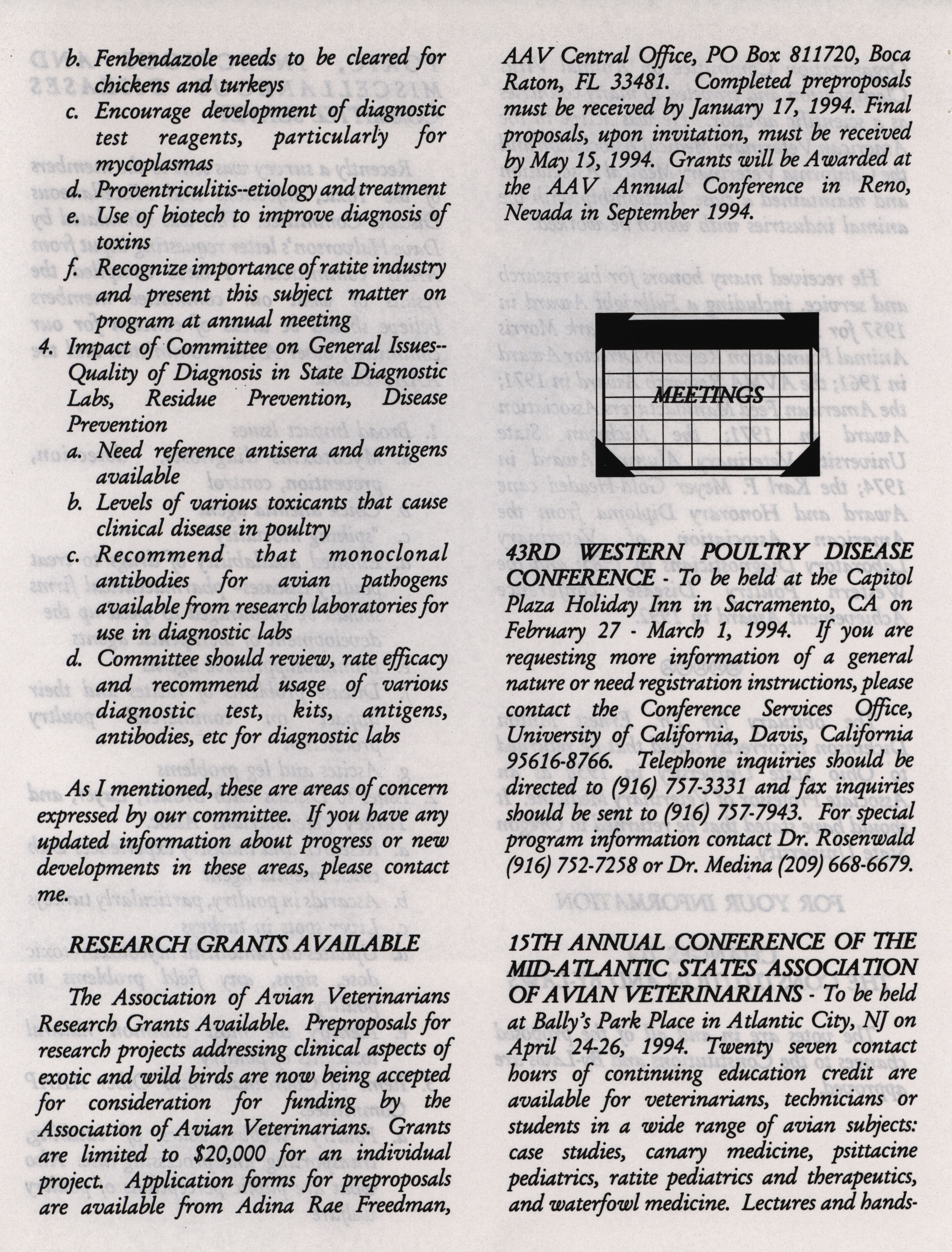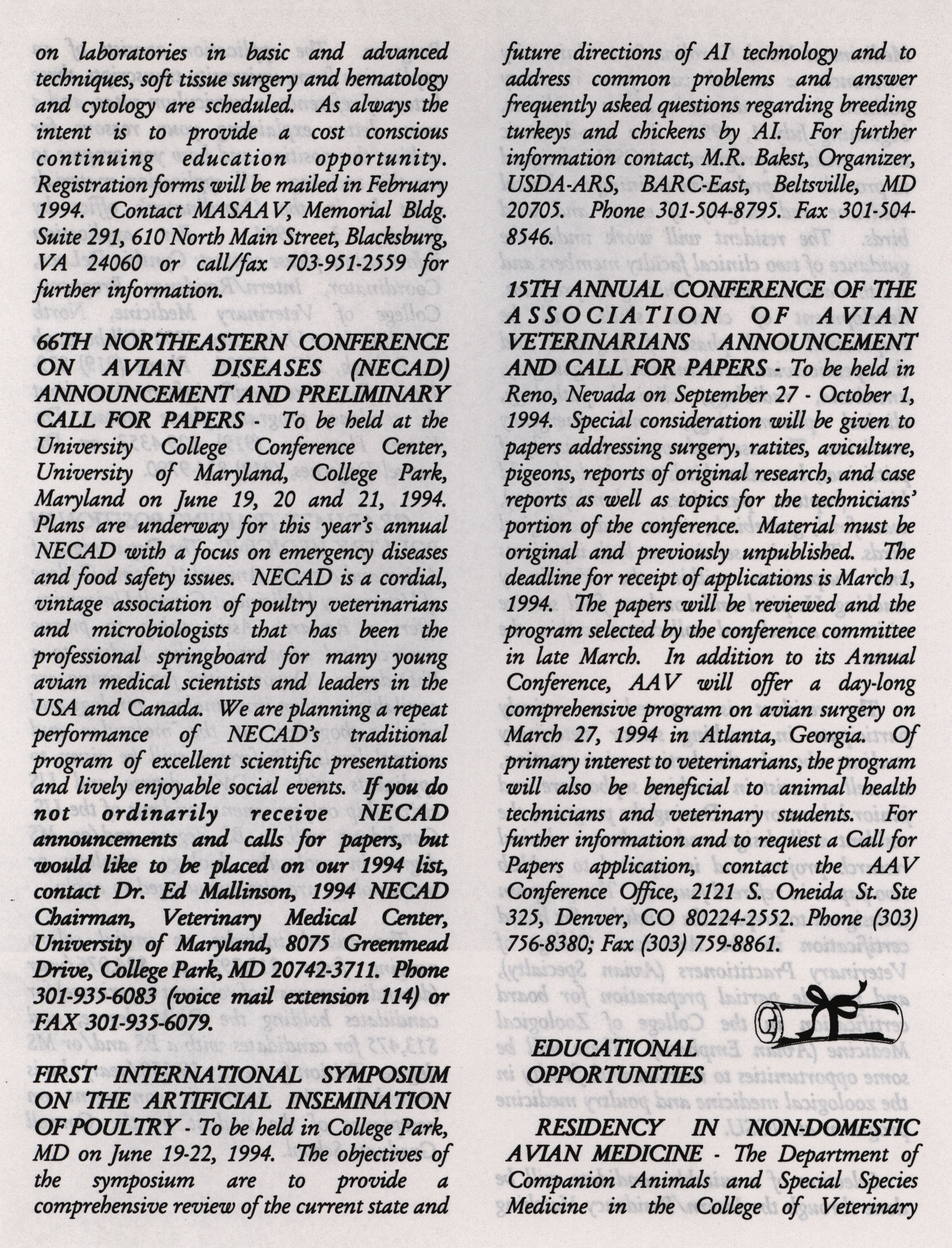 - "AAAP winter newsletter, January 1, 1994", American Association of Avian Pathologists Collection, Iowa State University Library Digital Collections