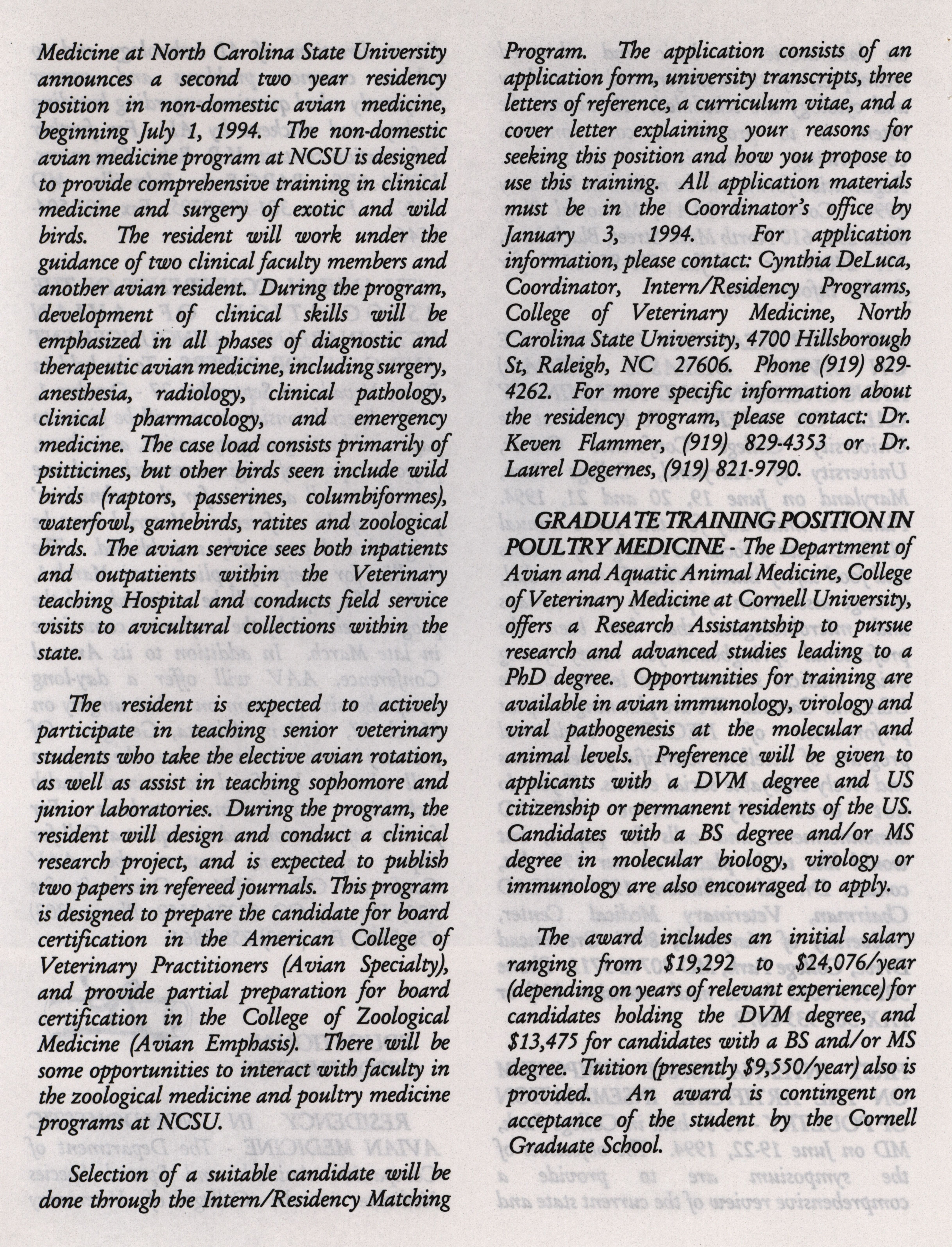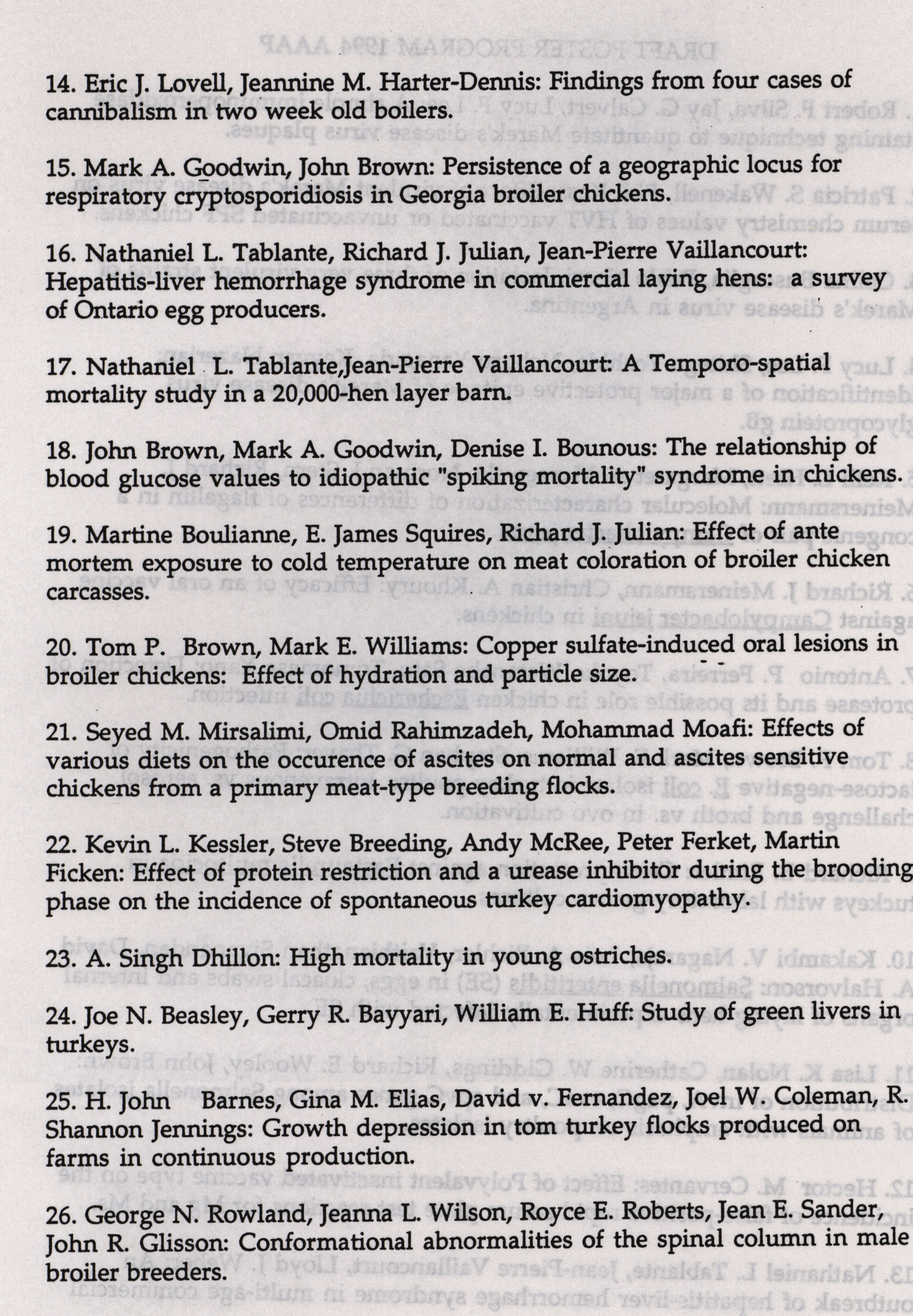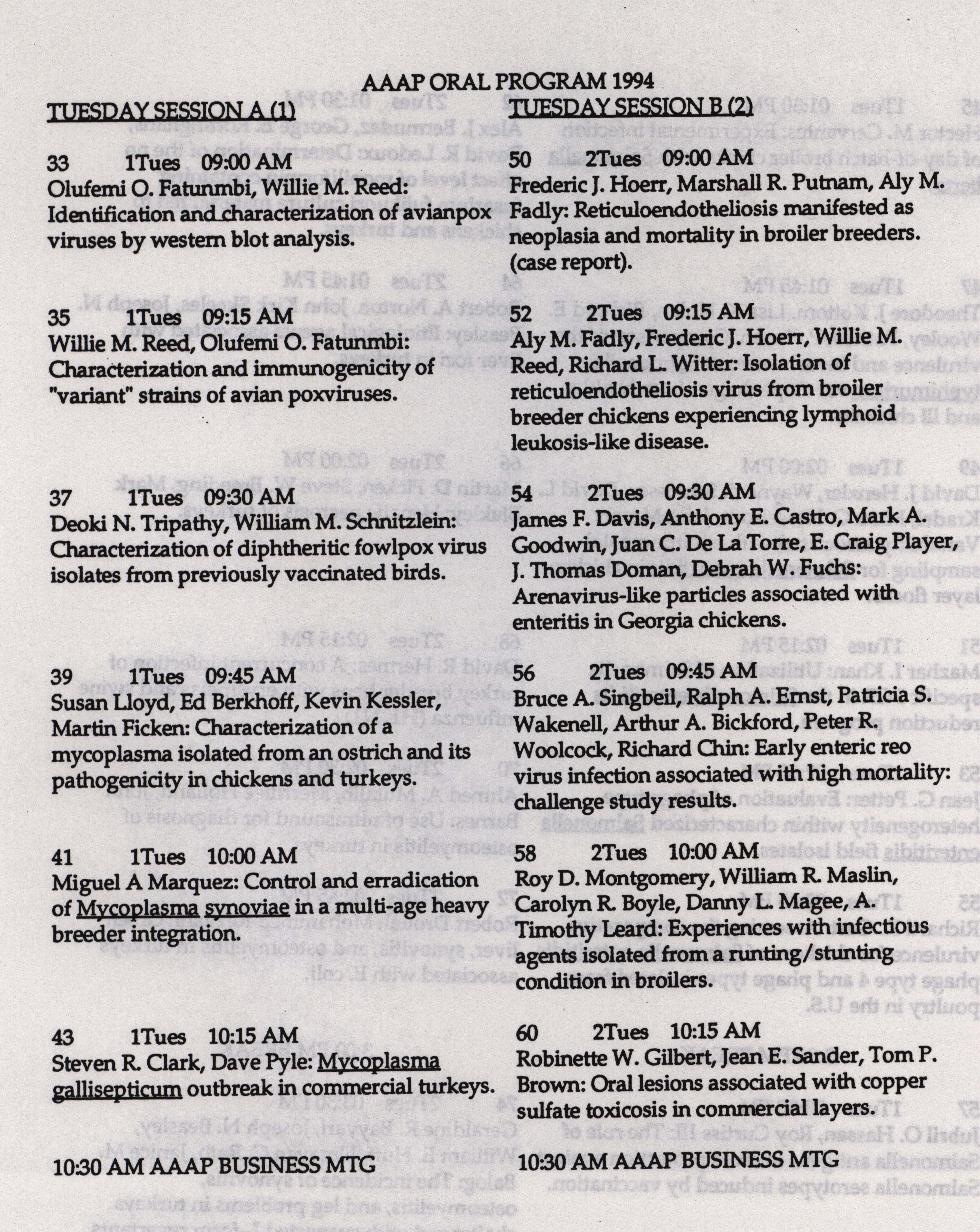 - "AAAP winter newsletter, January 1, 1994", American Association of Avian Pathologists Collection, Iowa State University Library Digital Collections