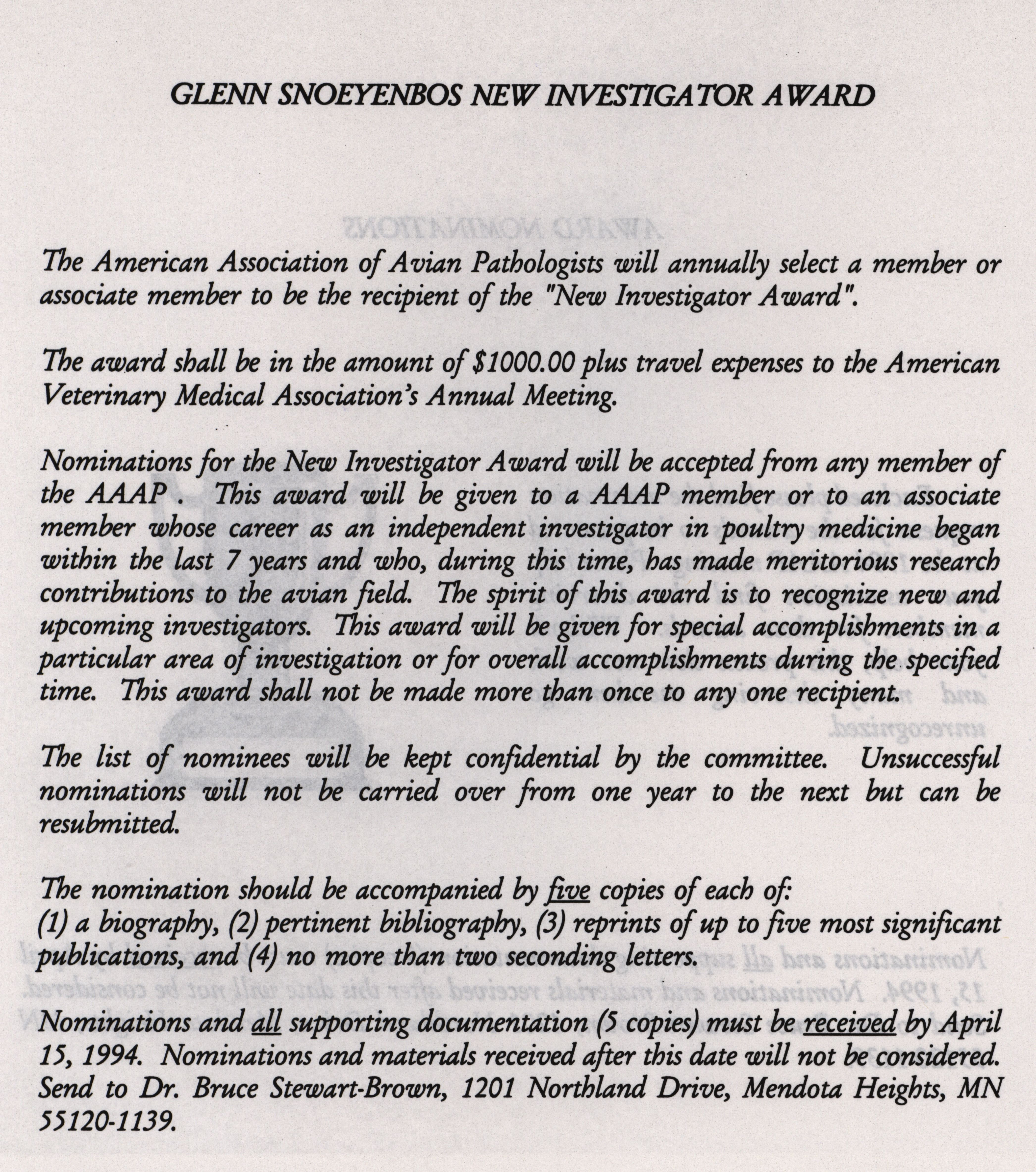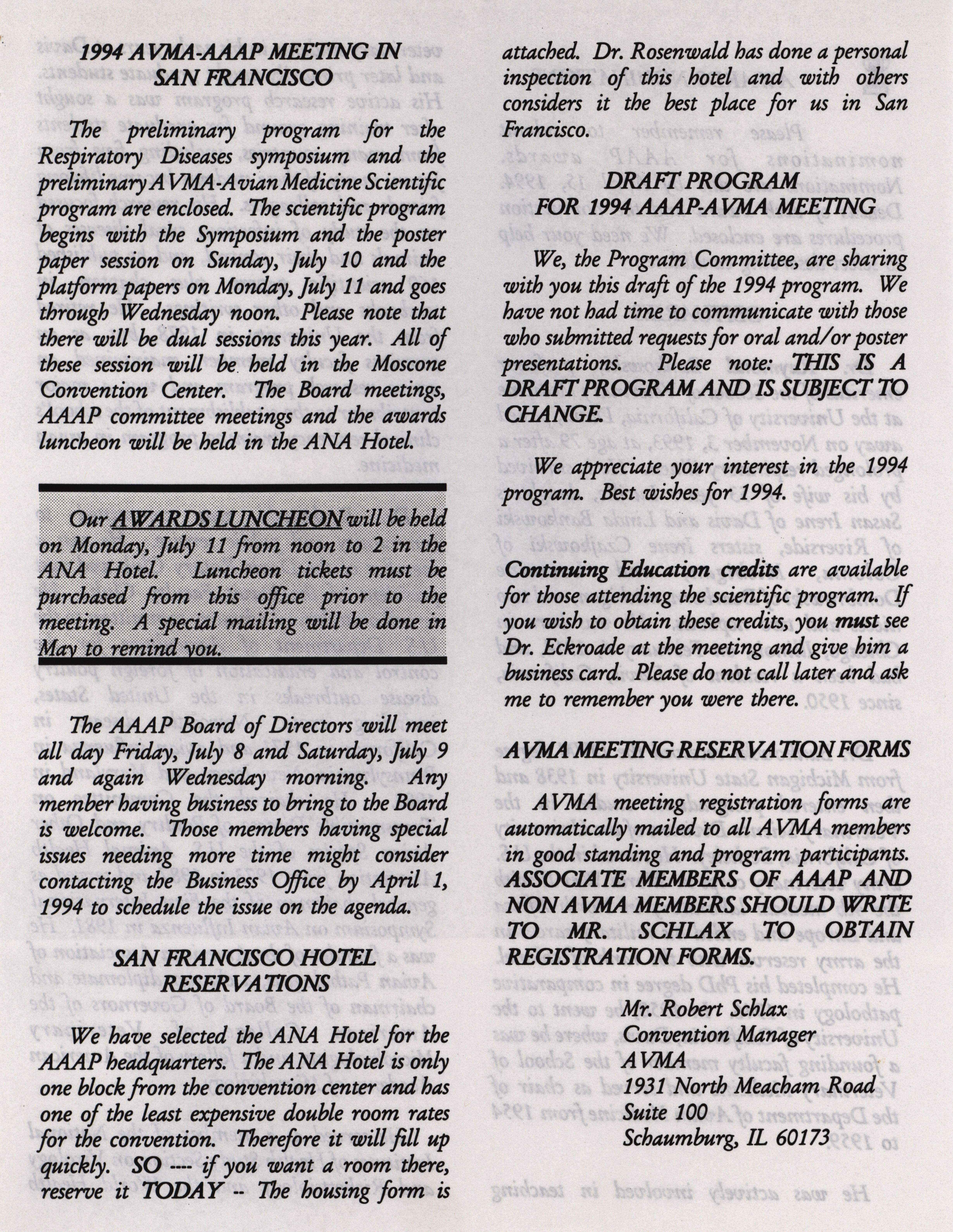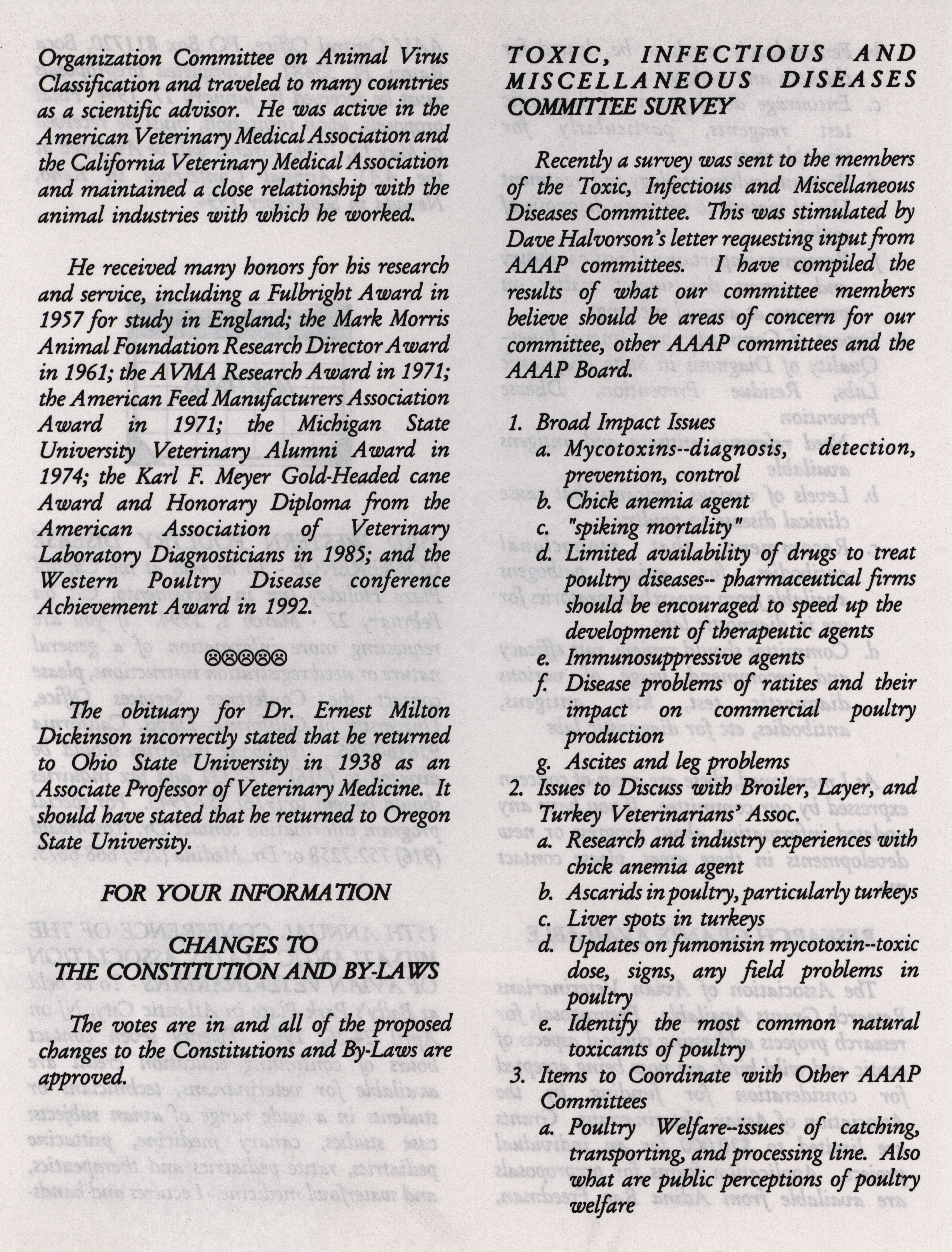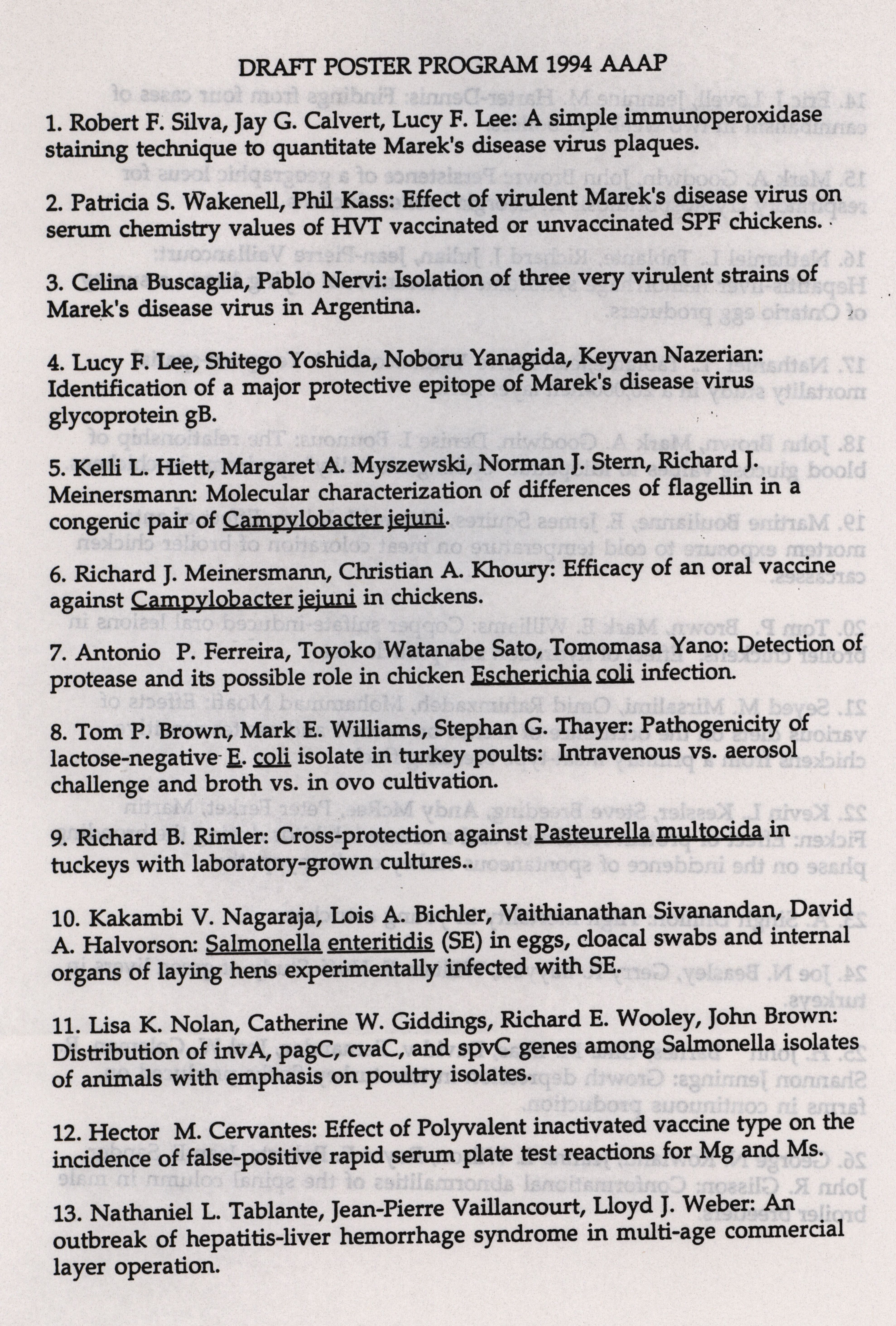 - "AAAP winter newsletter, January 1, 1994", American Association of Avian Pathologists Collection, Iowa State University Library Digital Collections