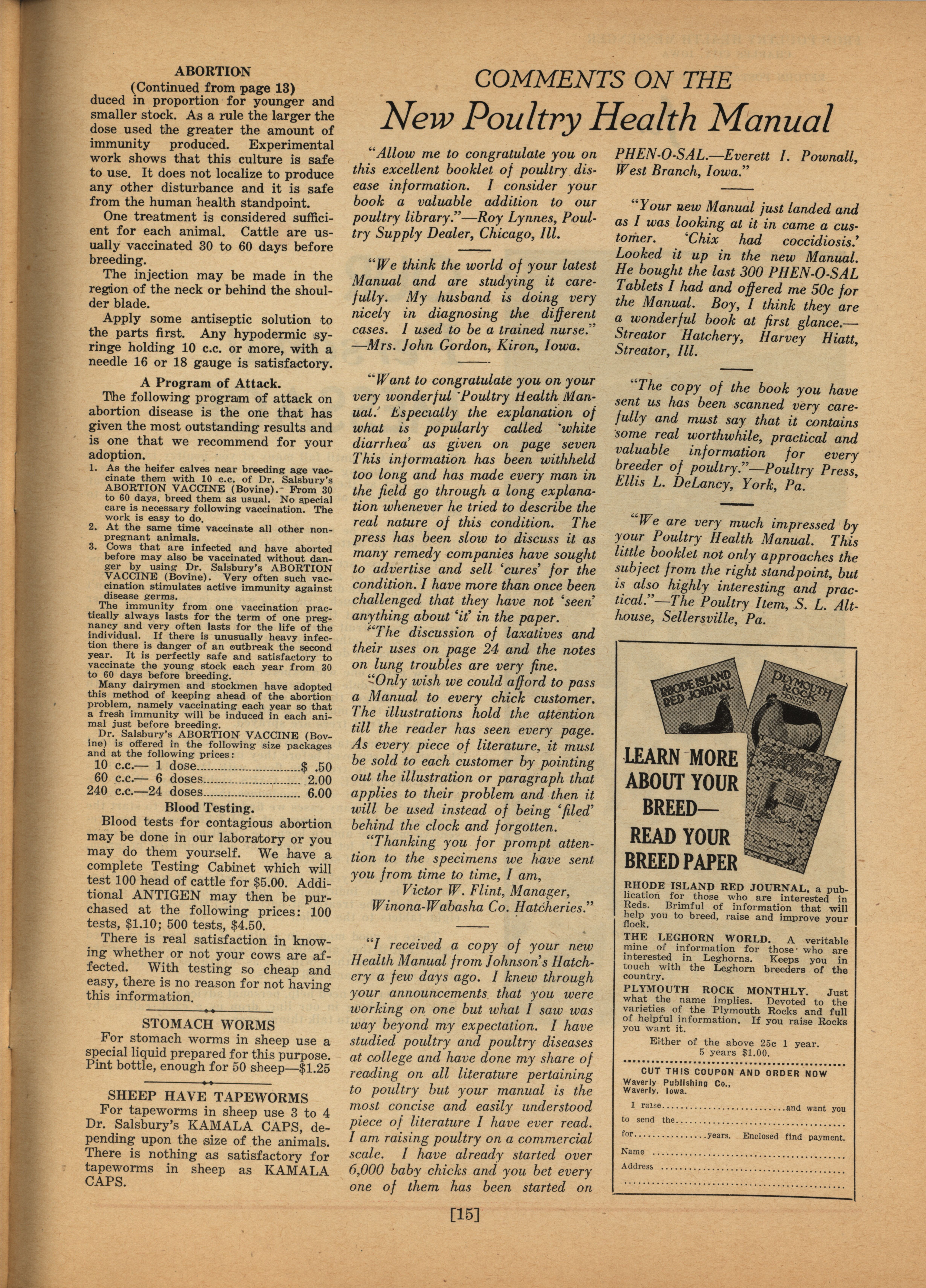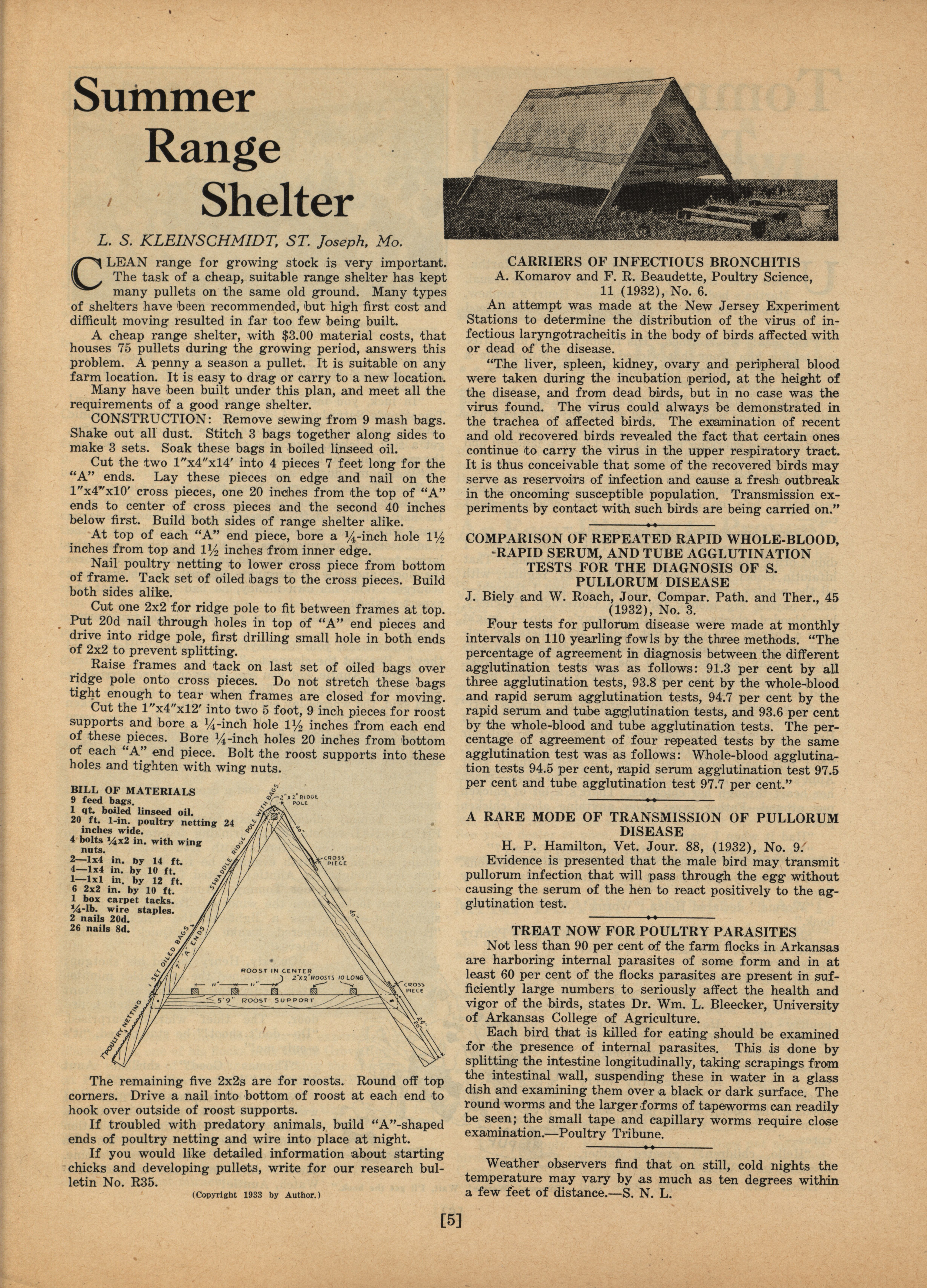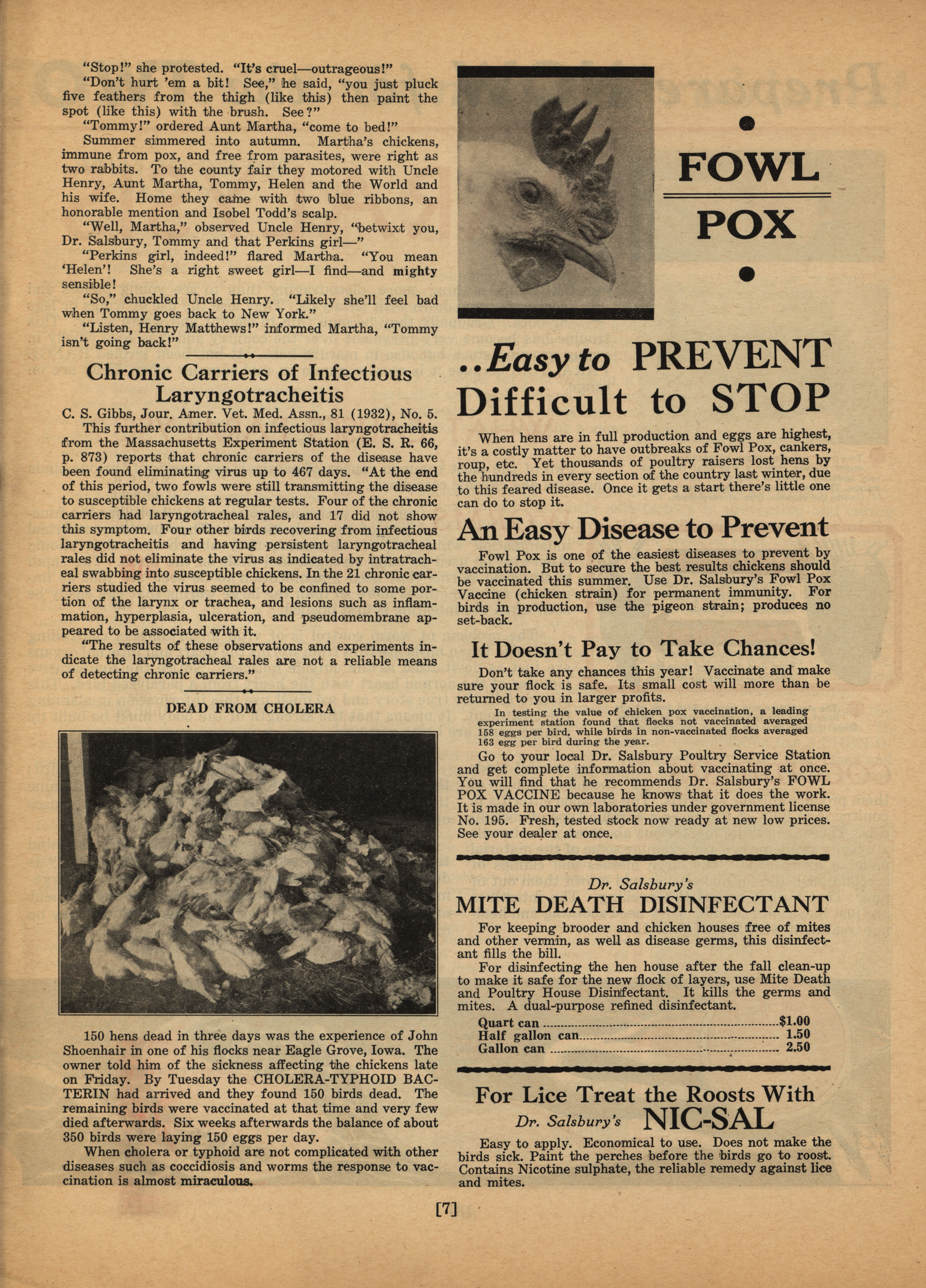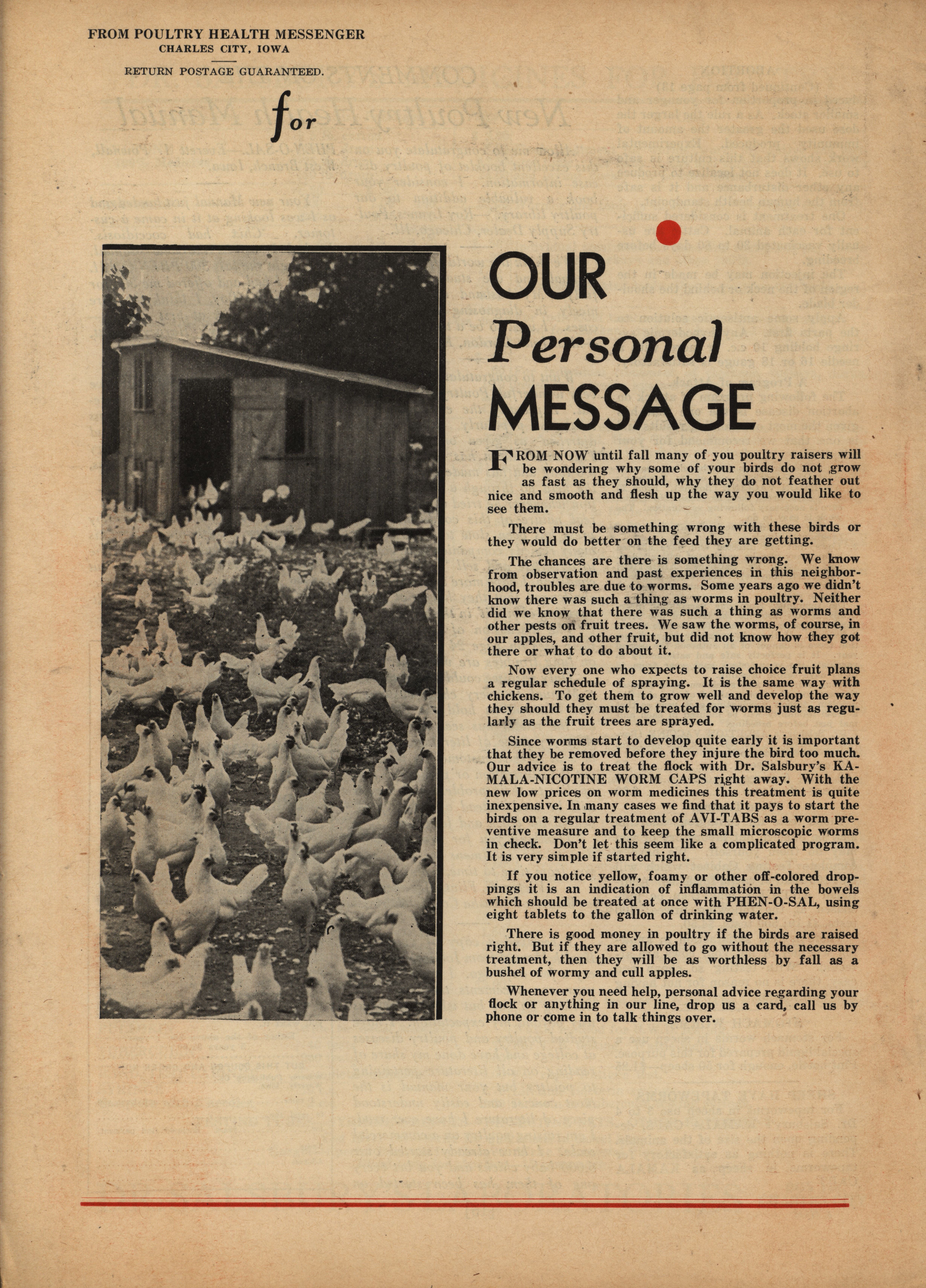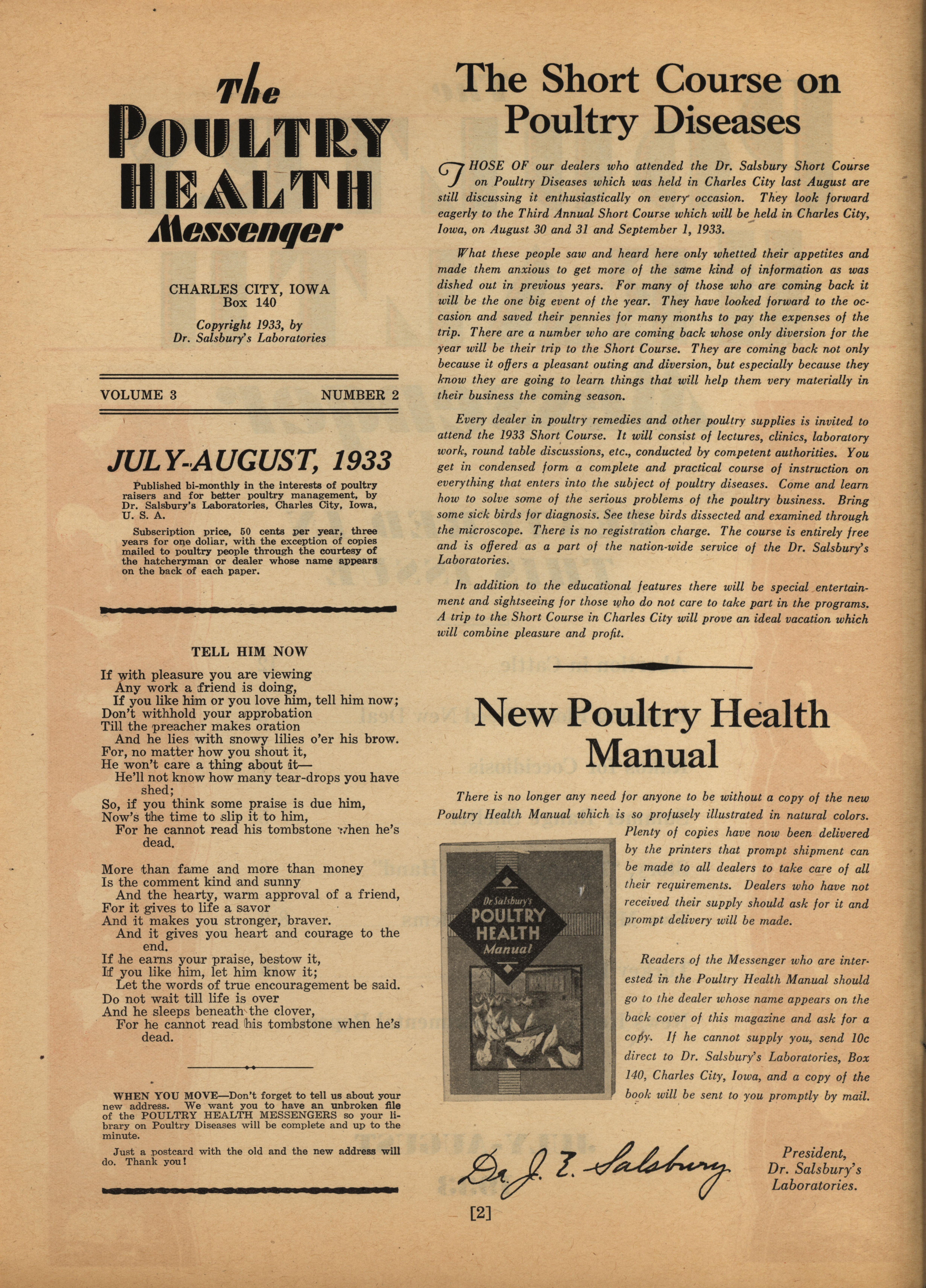 - "The poultry health messenger, July-August 1933", American Association of Avian Pathologists Collection, Iowa State University Library Digital Collections