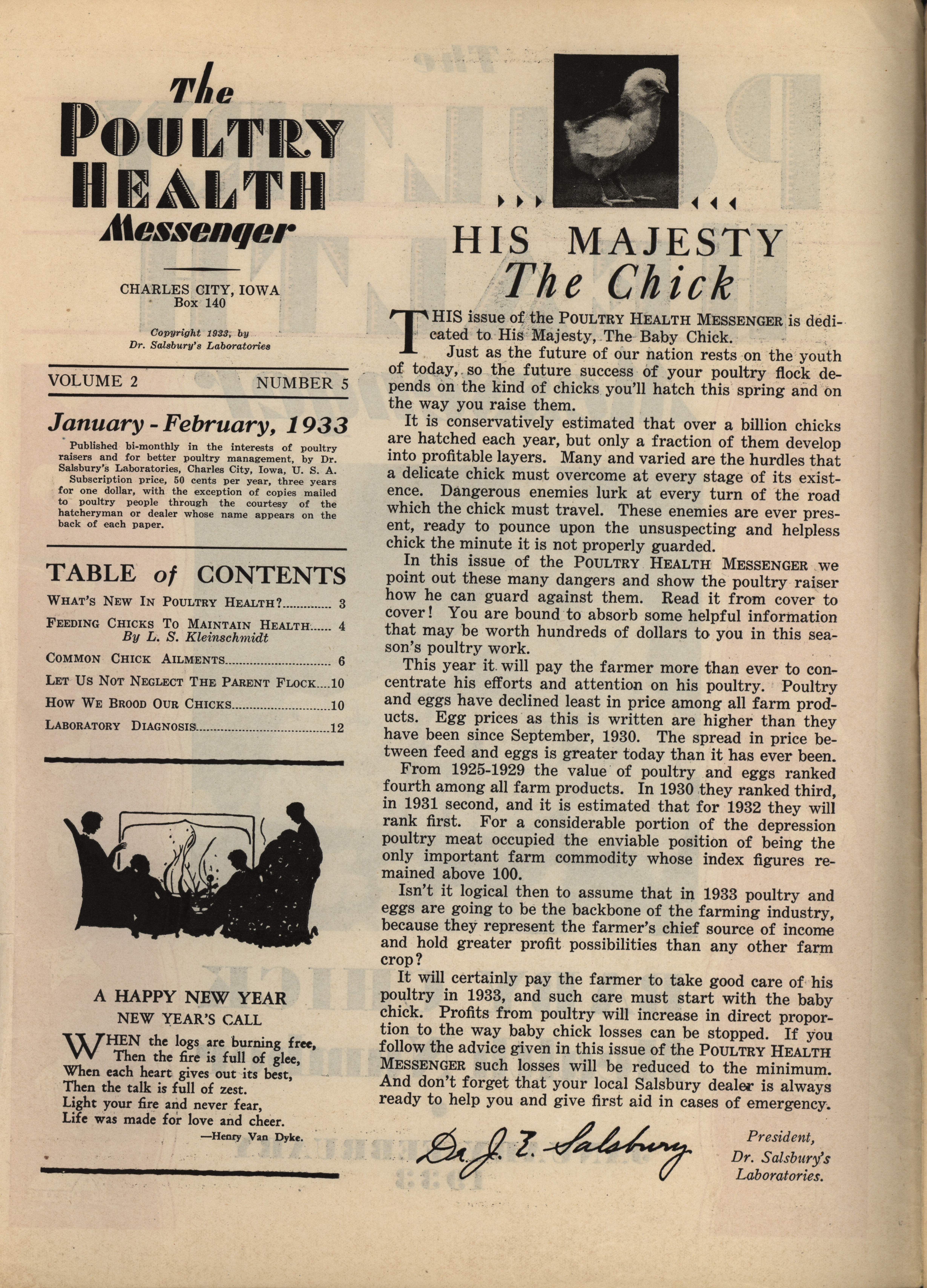 - "The poultry health messenger, January-February 1933", American Association of Avian Pathologists Collection, Iowa State University Library Digital Collections