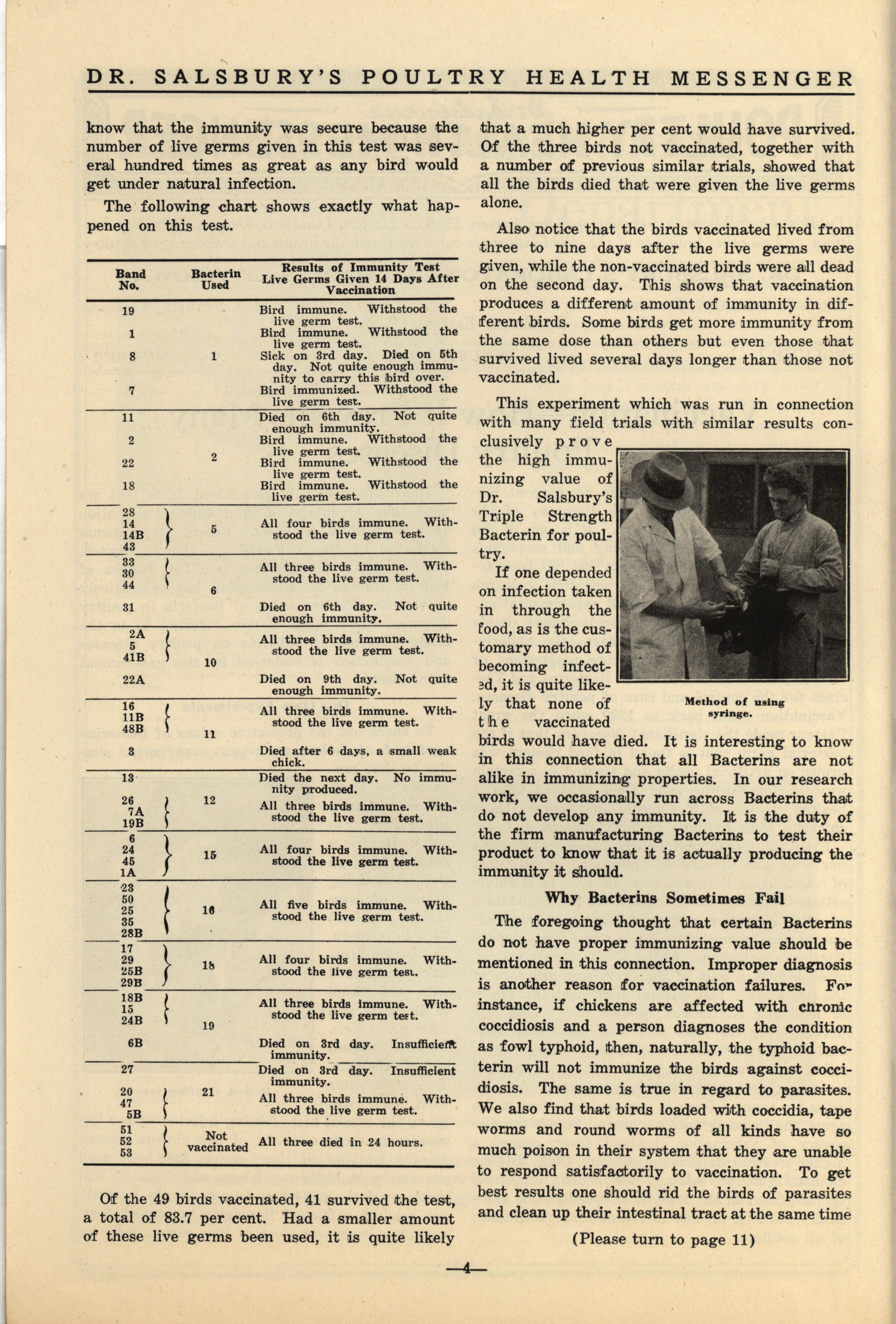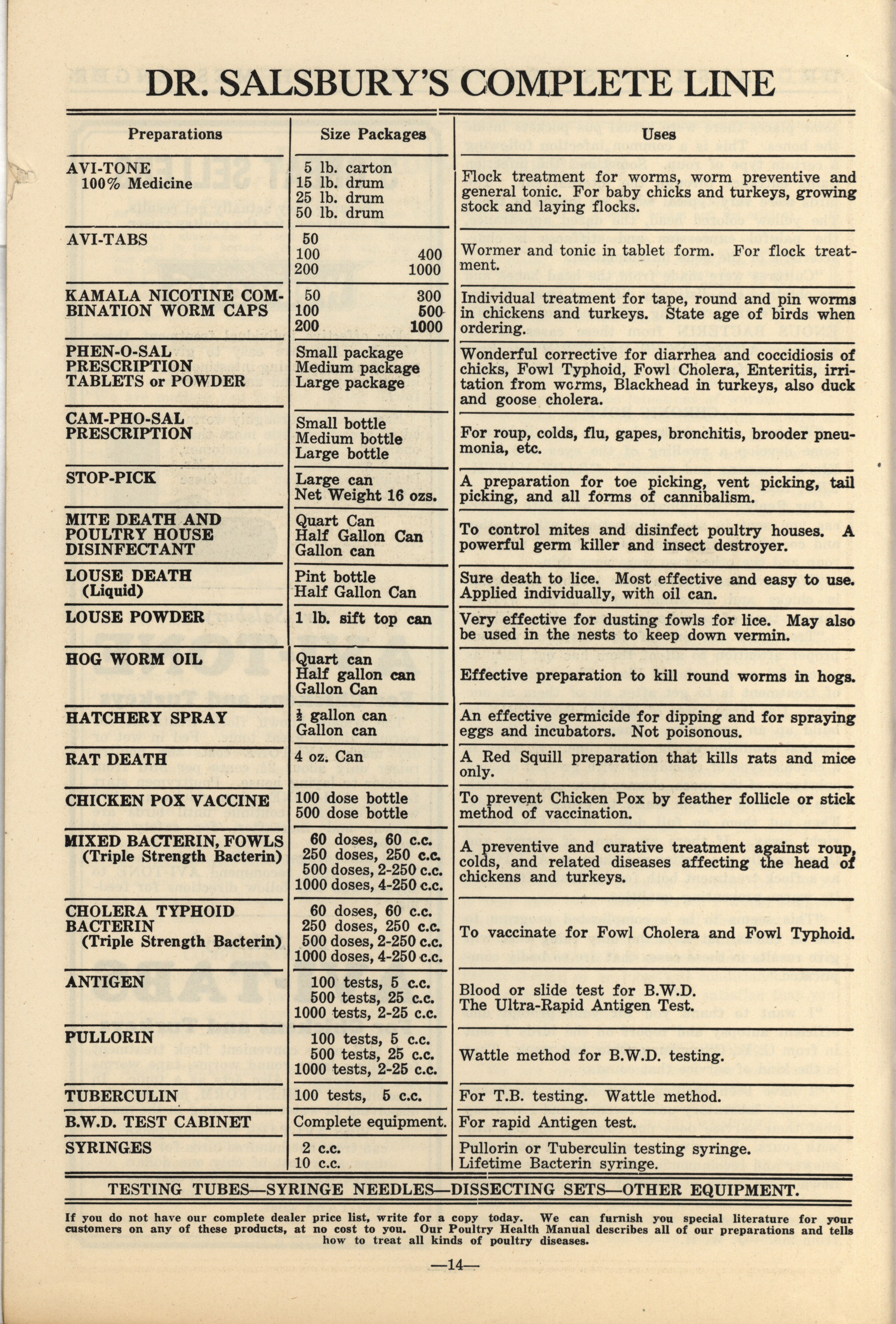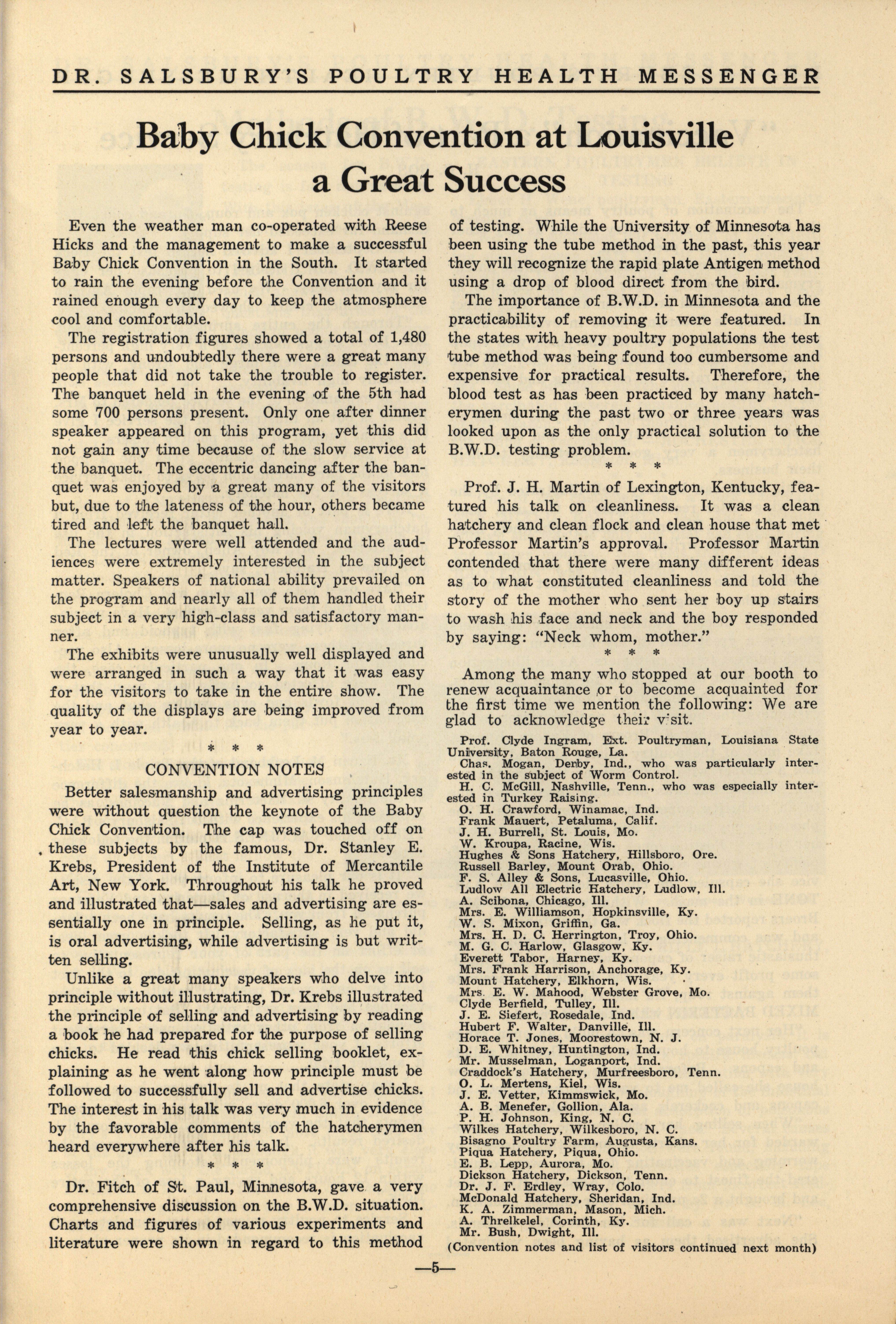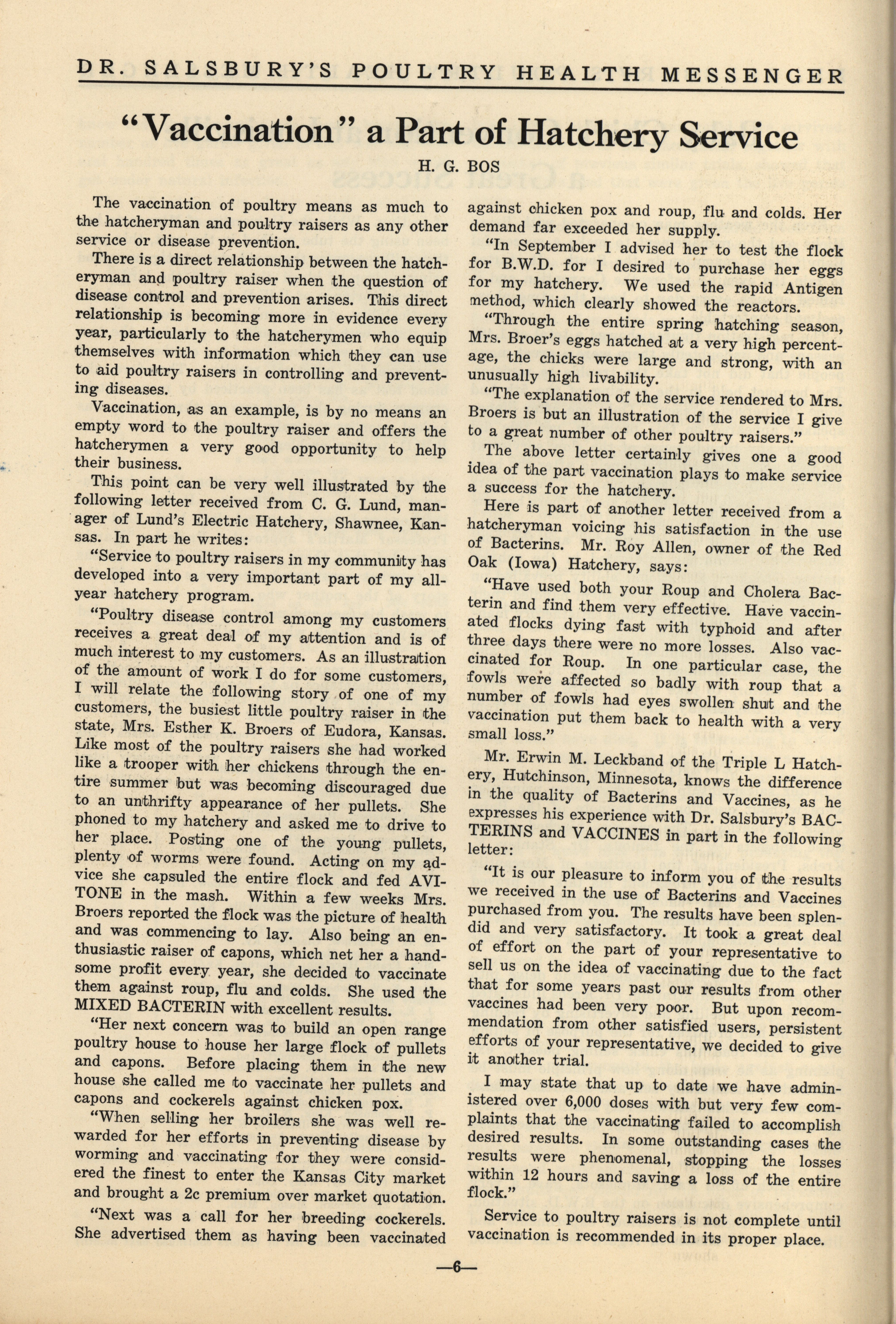- "Dr. Salsbury's poultry health messenger, August 1931", American Association of Avian Pathologists Collection, Iowa State University Library Digital Collections