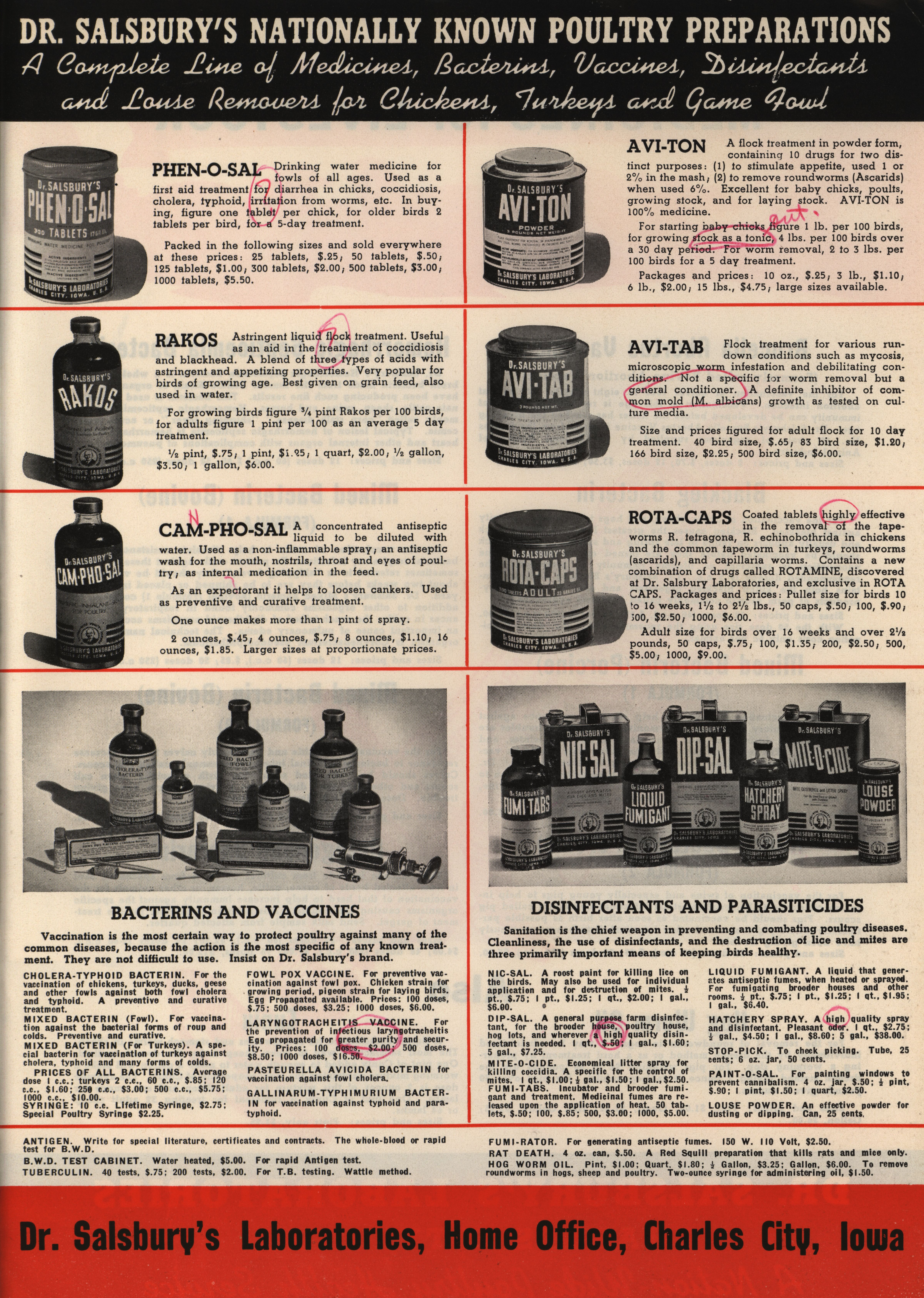 - "Dr. Salsbury's poultry health news, May-June 1940", American Association of Avian Pathologists Collection, Iowa State University Library Digital Collections