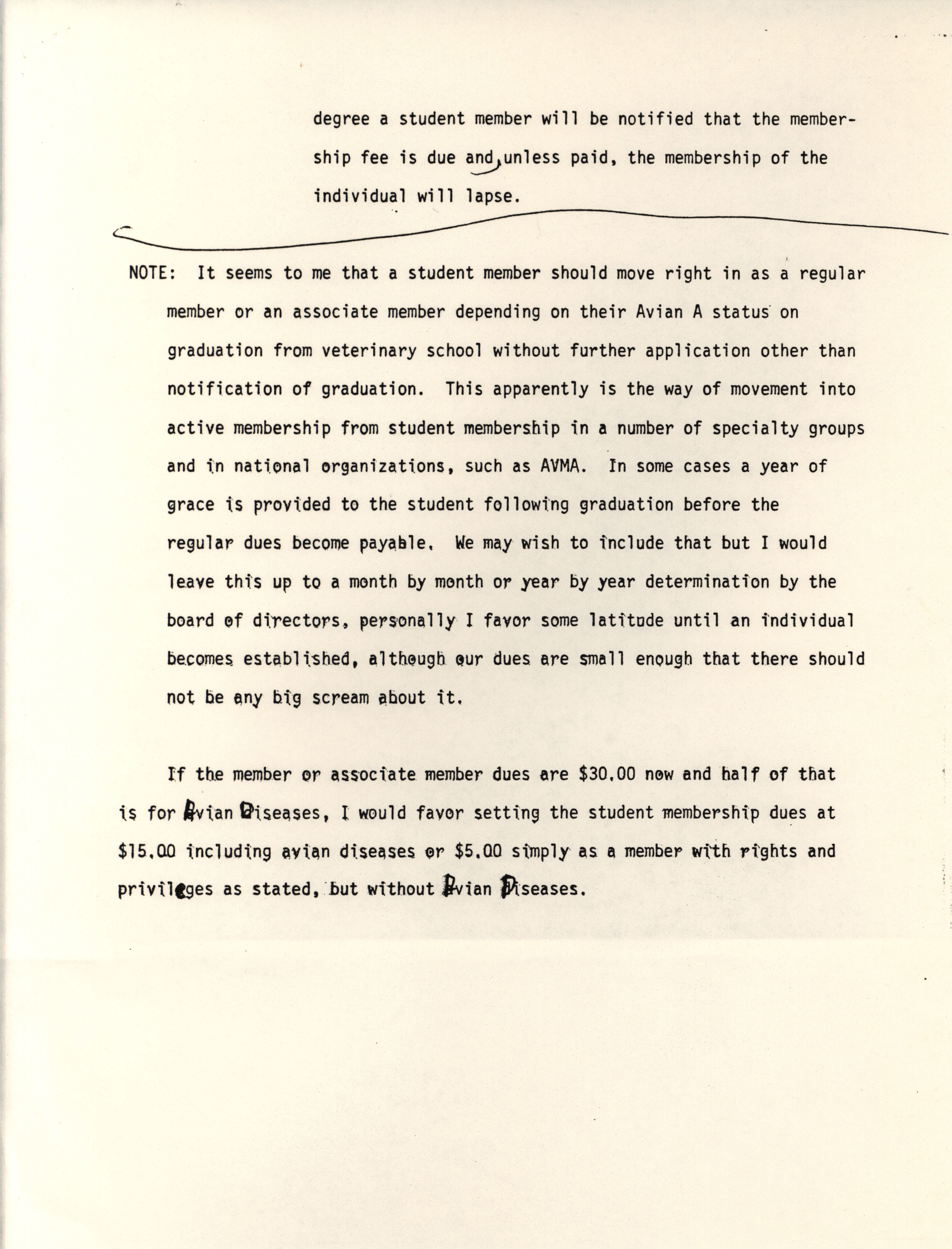 - "Proposed amendments to the by-laws of the American Association of Avian Pathologists", American Association of Avian Pathologists Collection, Iowa State University Library Digital Collections