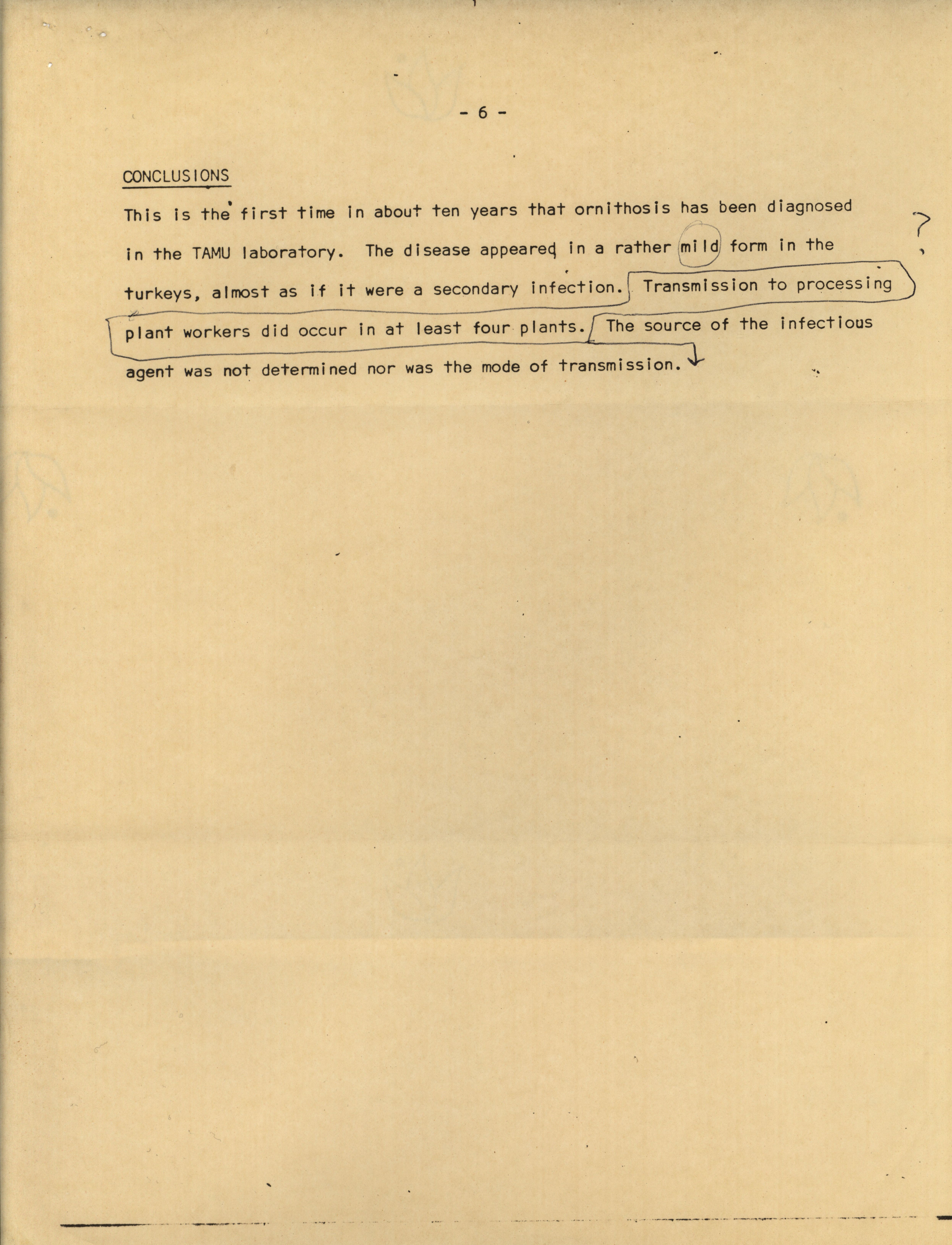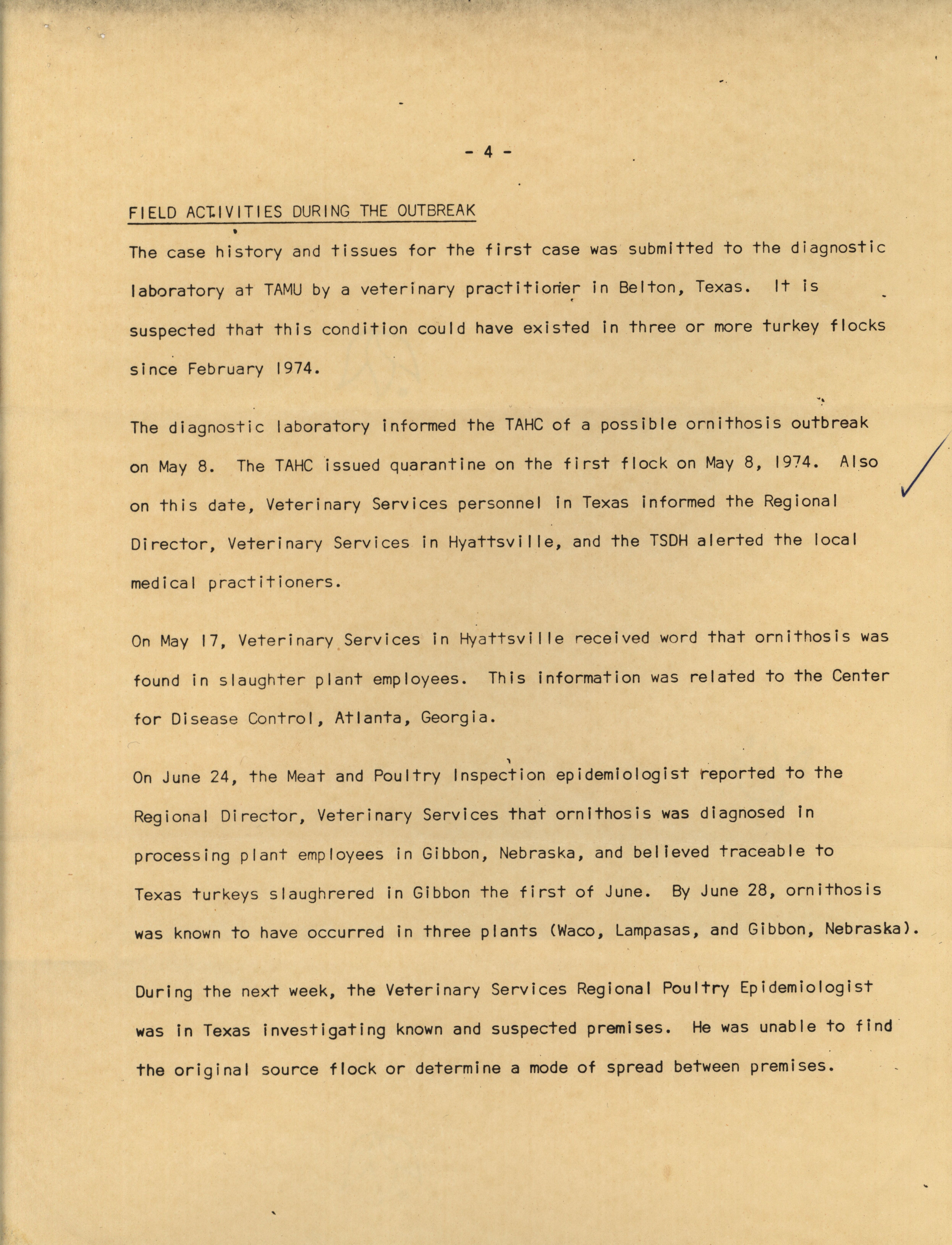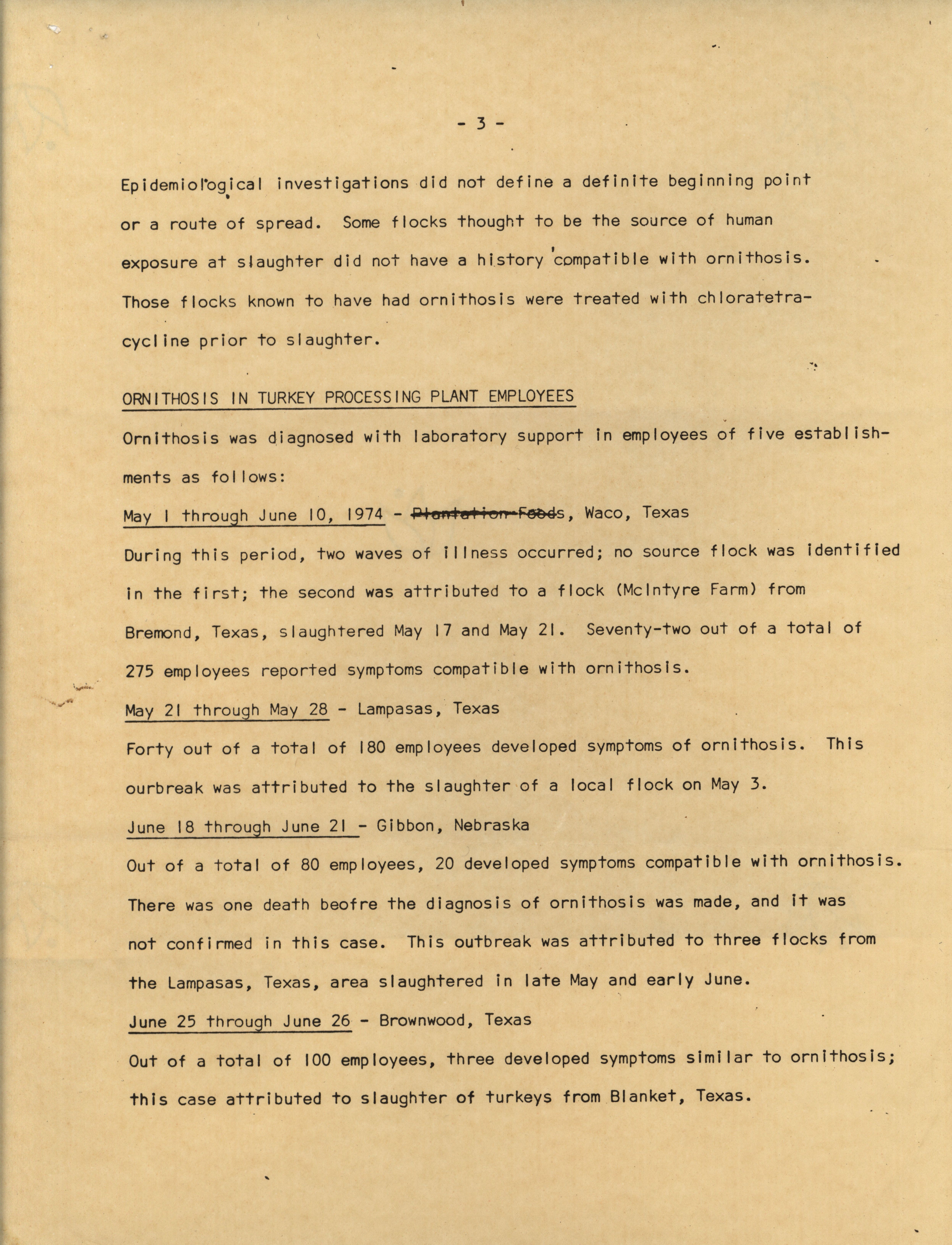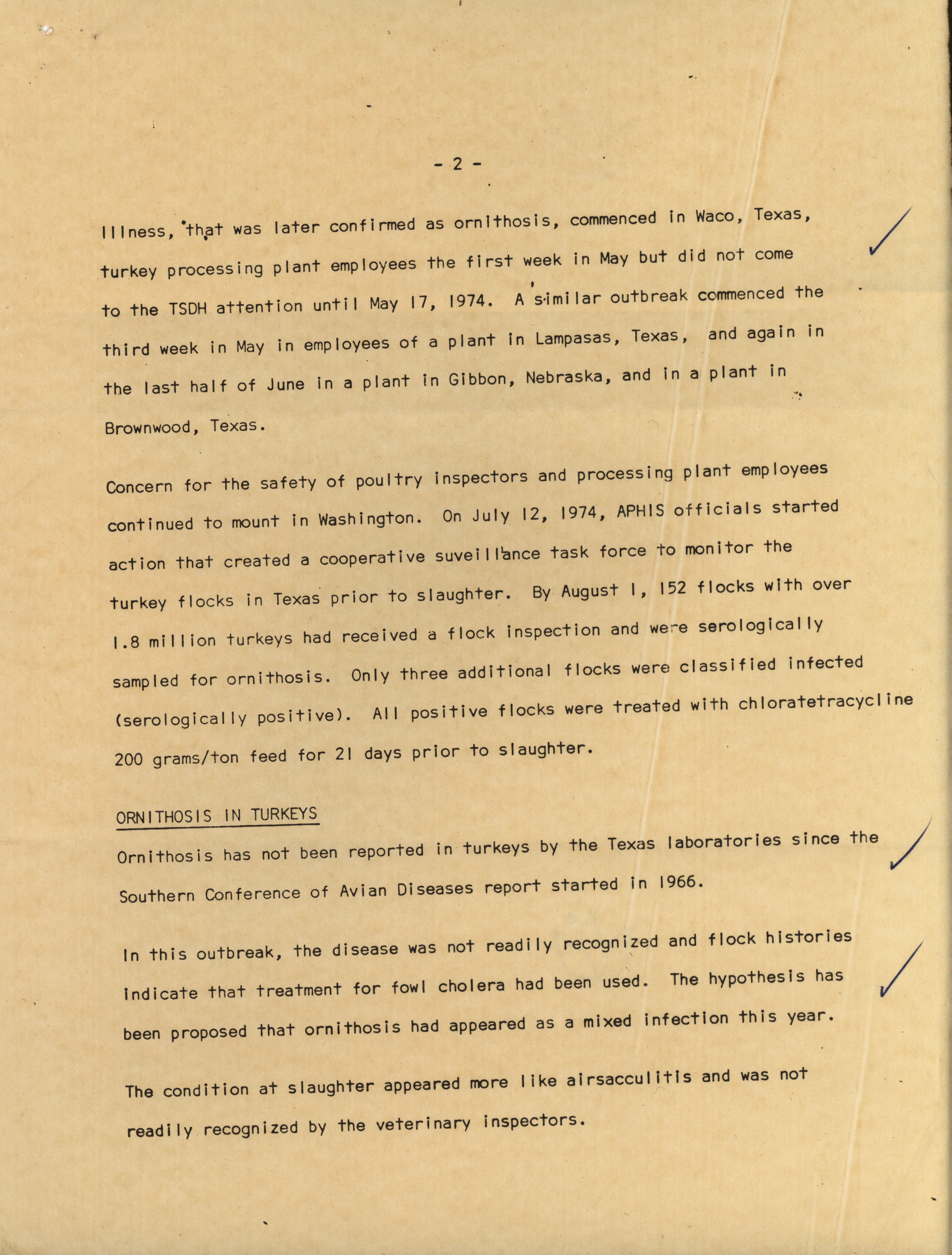 - A 1974 report describing the events of an ornithosis outbreak in turkey processing plants.