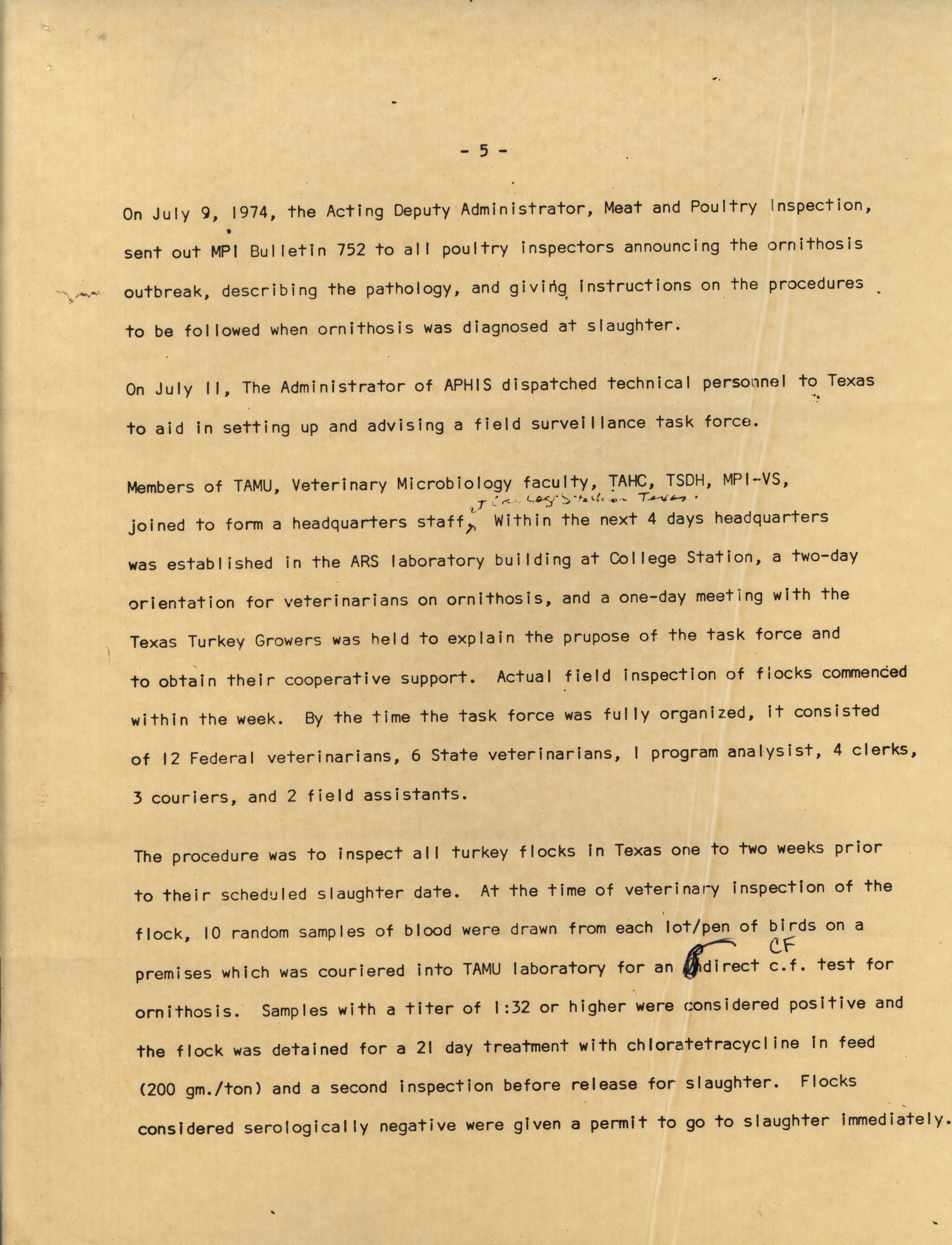 - American Association of Avian Pathologists: report on ornithosis outbreak in turkeys, 1974