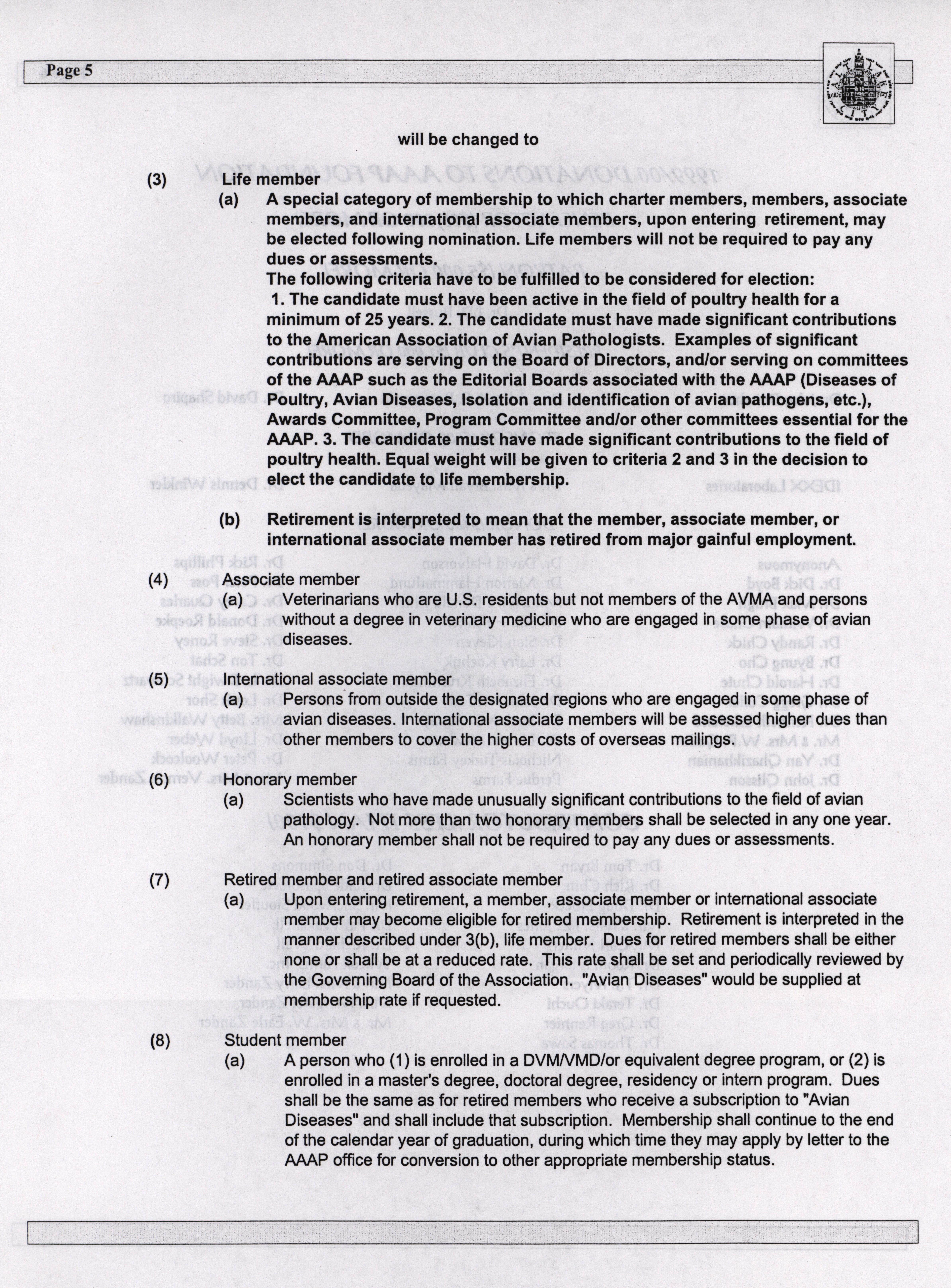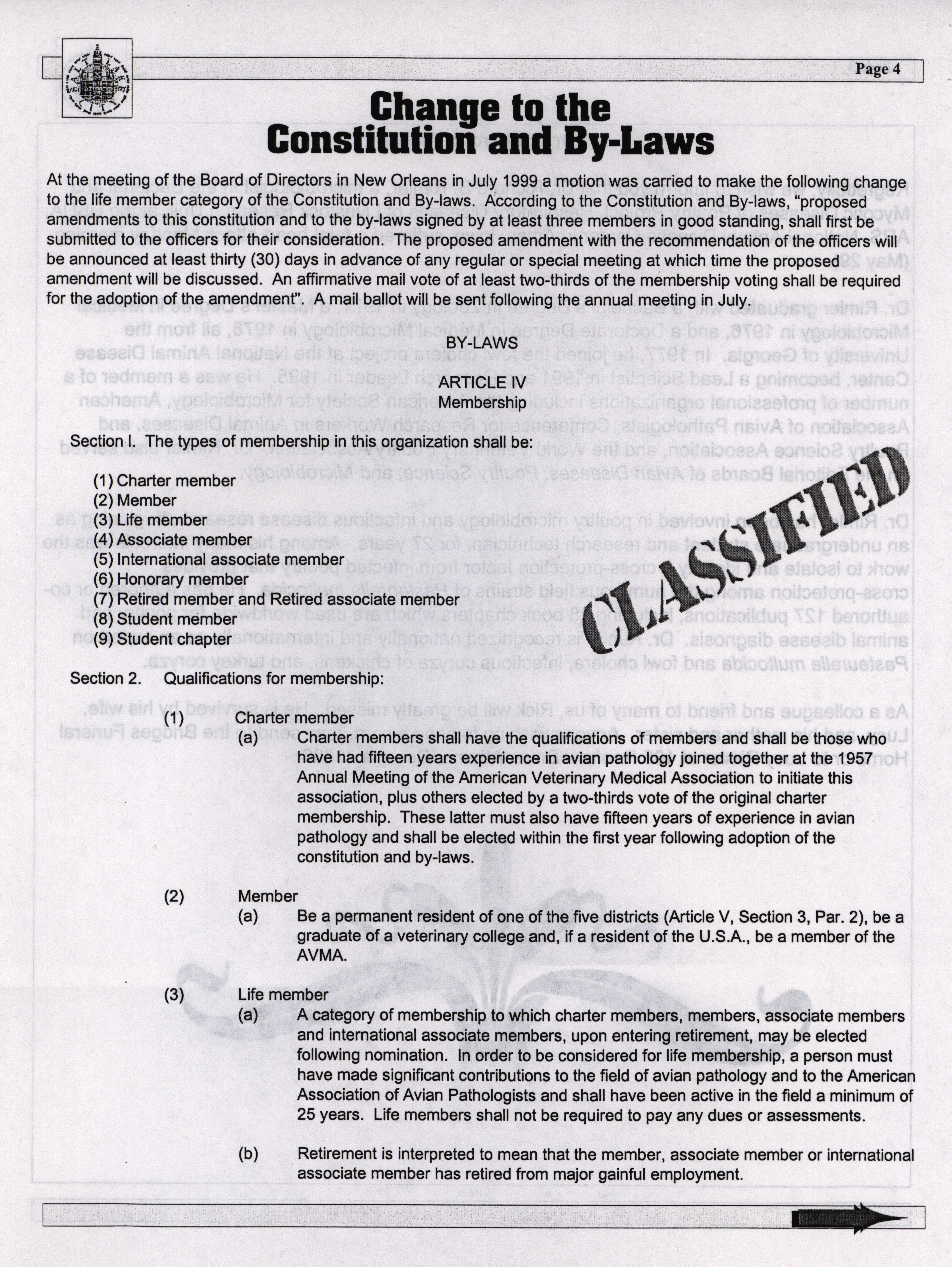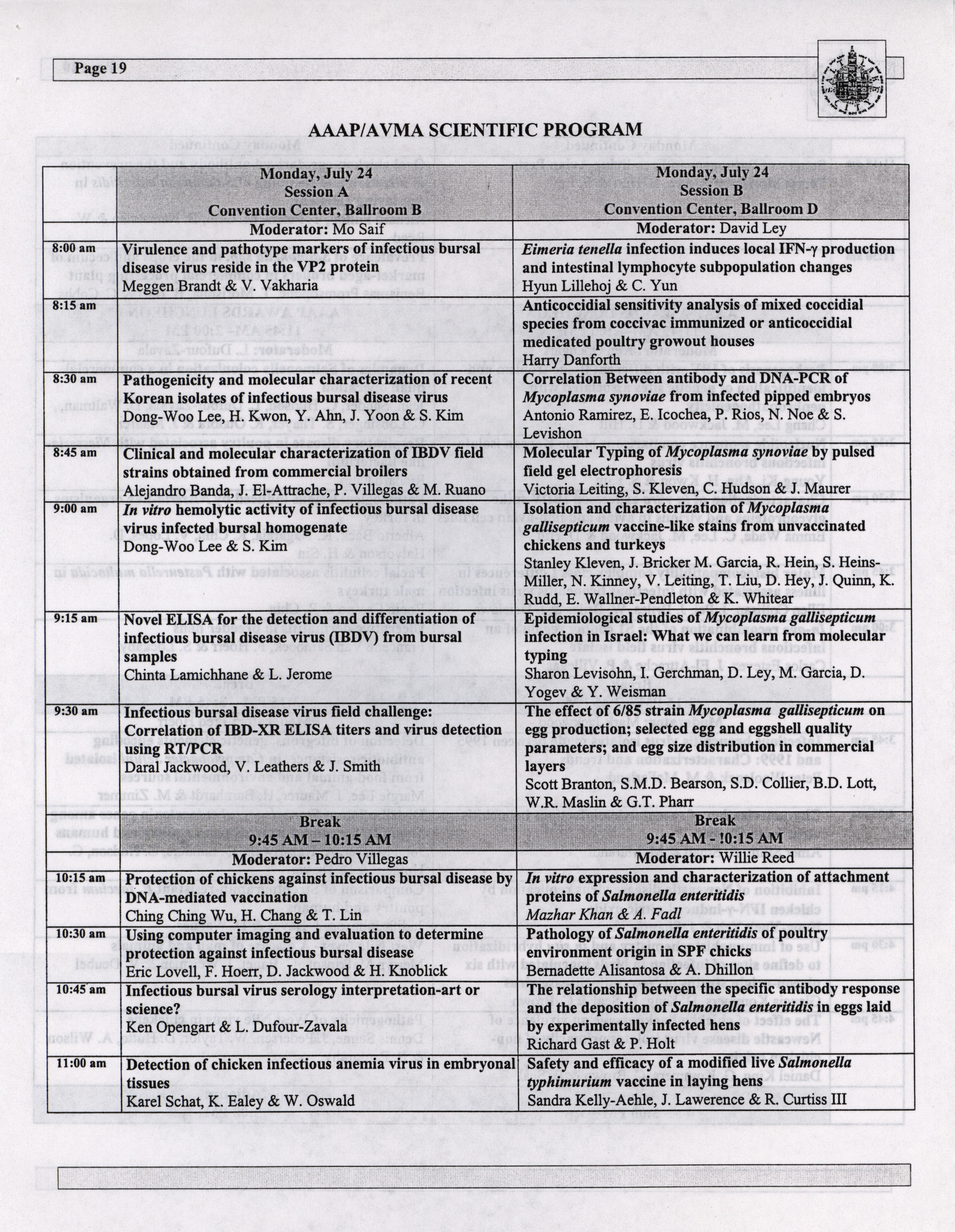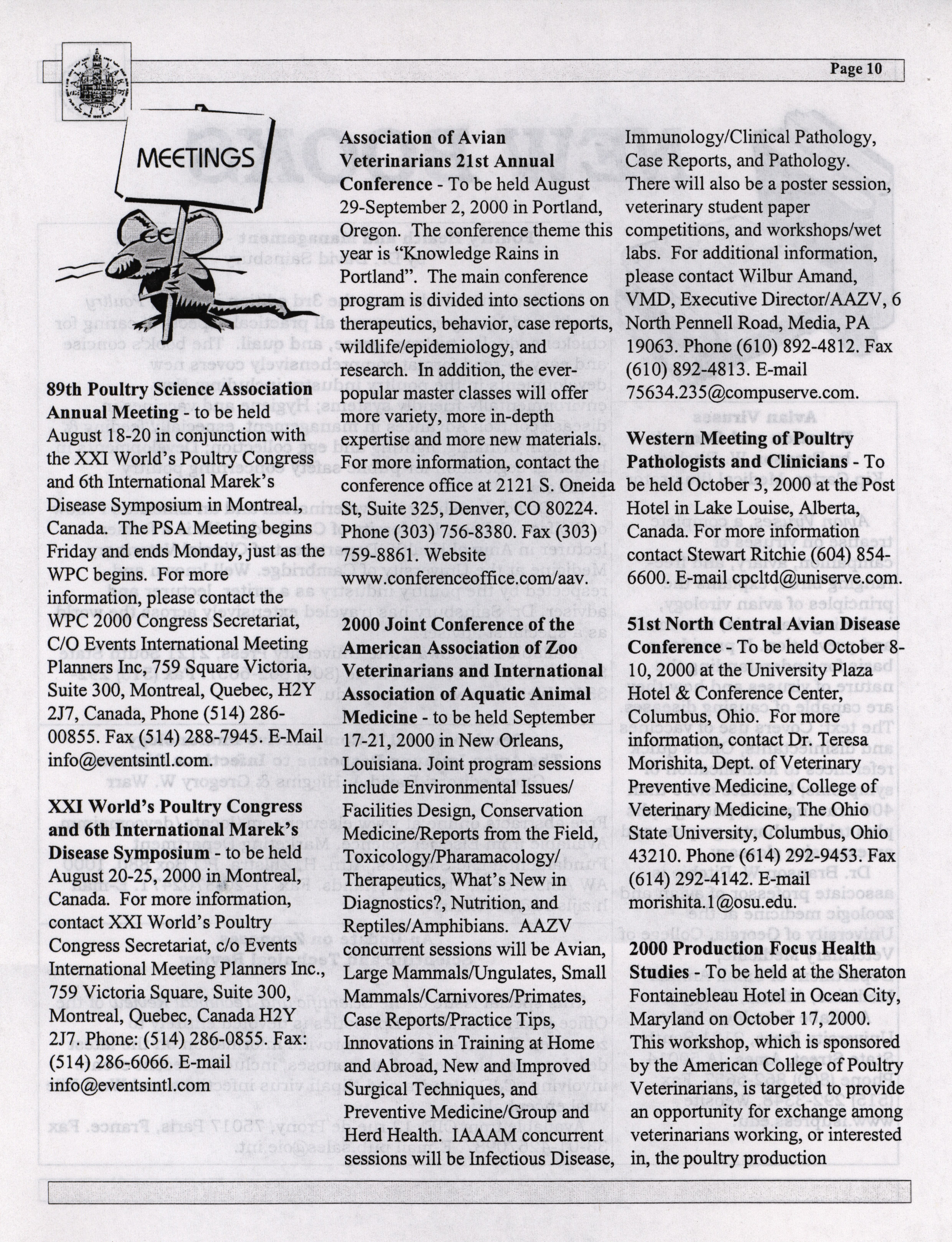 - The summer newsletter of the American Association of Avian Pathologists, June, 2000. The quarterly newsletter features several different topics, including changes to the AAAP constitution and by-laws, meeting schedules, and the 2000 AAAP/AVMA (American Veterinary Medical Association) scientific program.