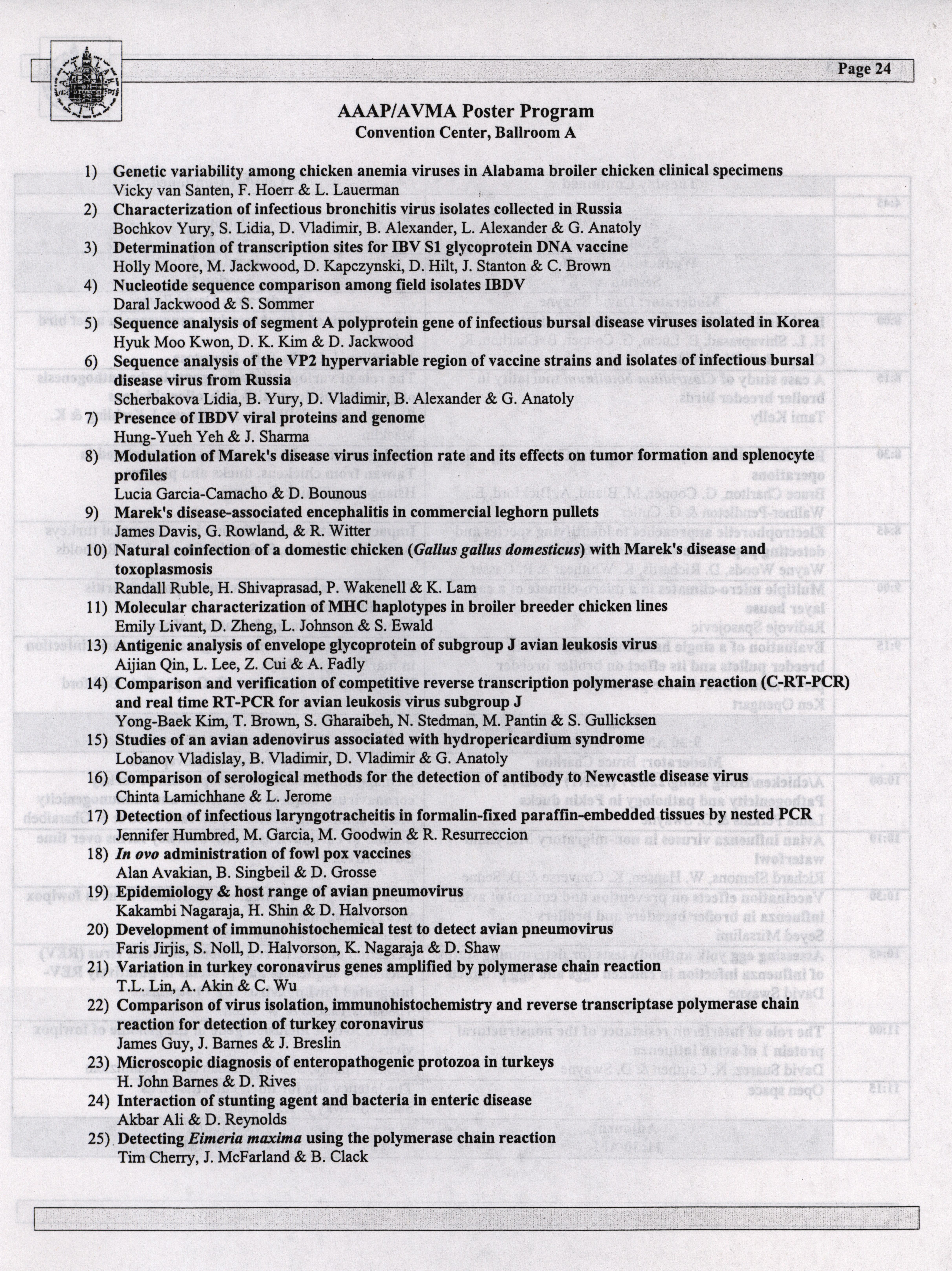 - "AAAP summer newsletter, June 2000", American Association of Avian Pathologists Collection, Iowa State University Library Digital Collections