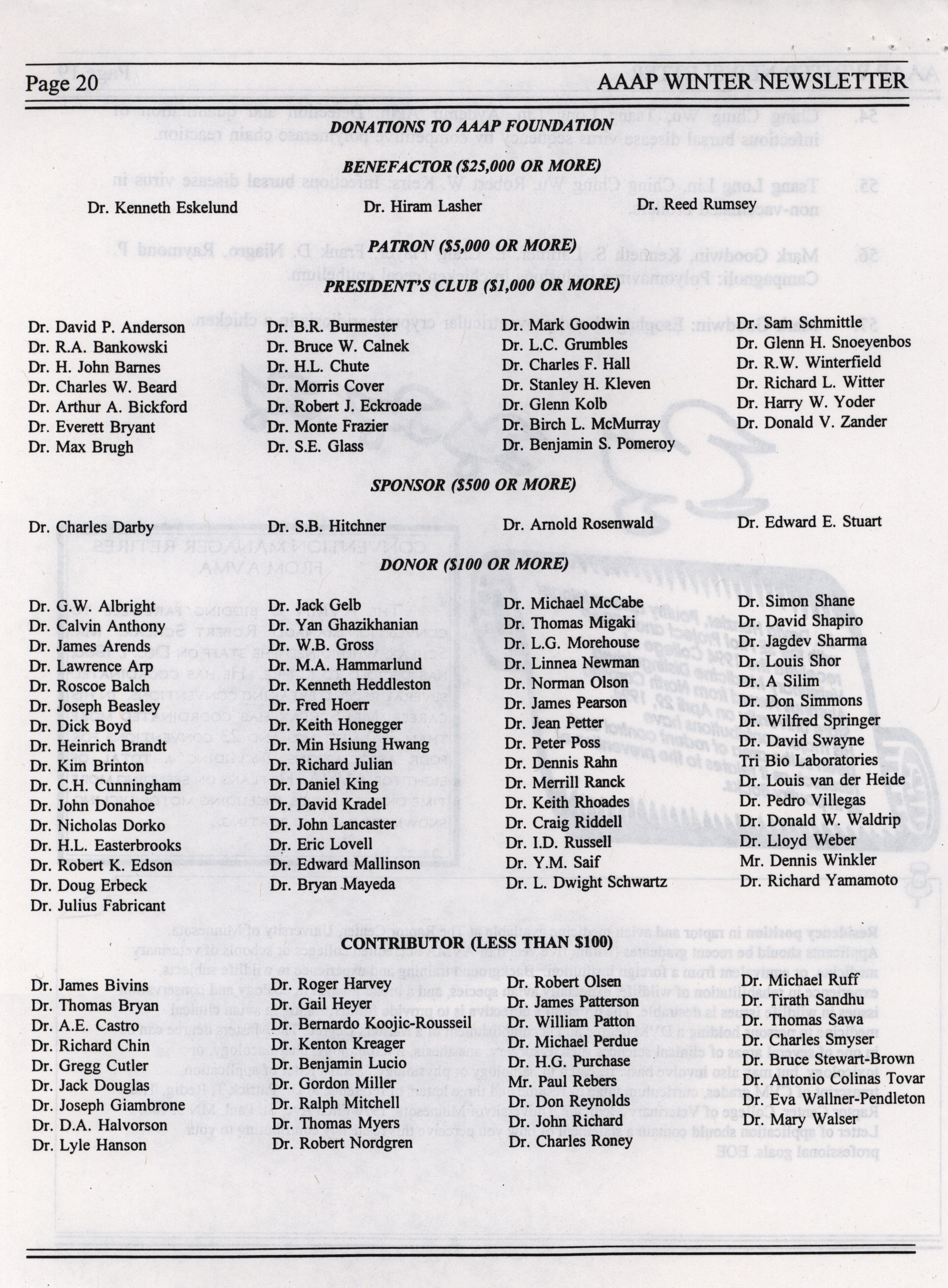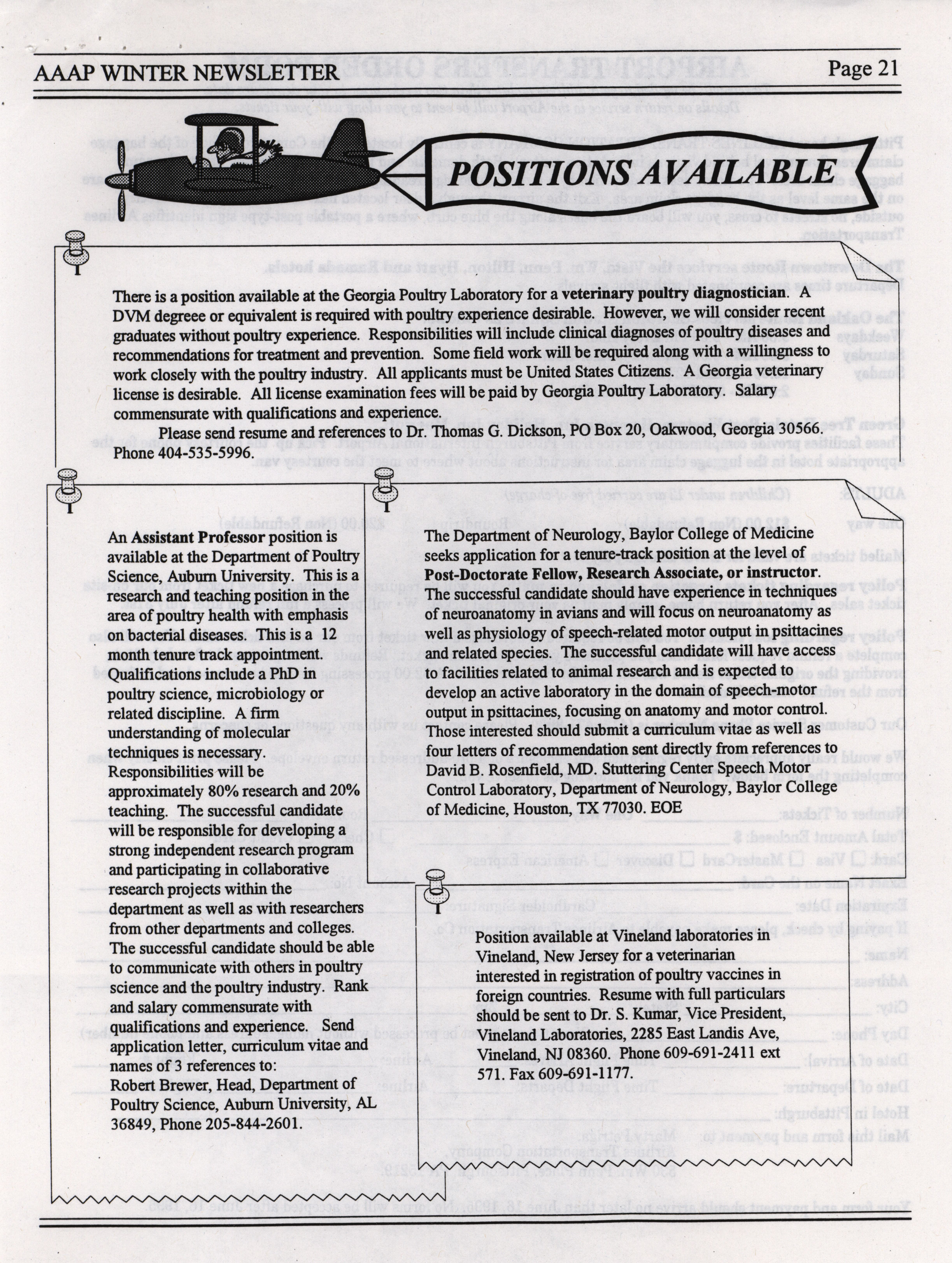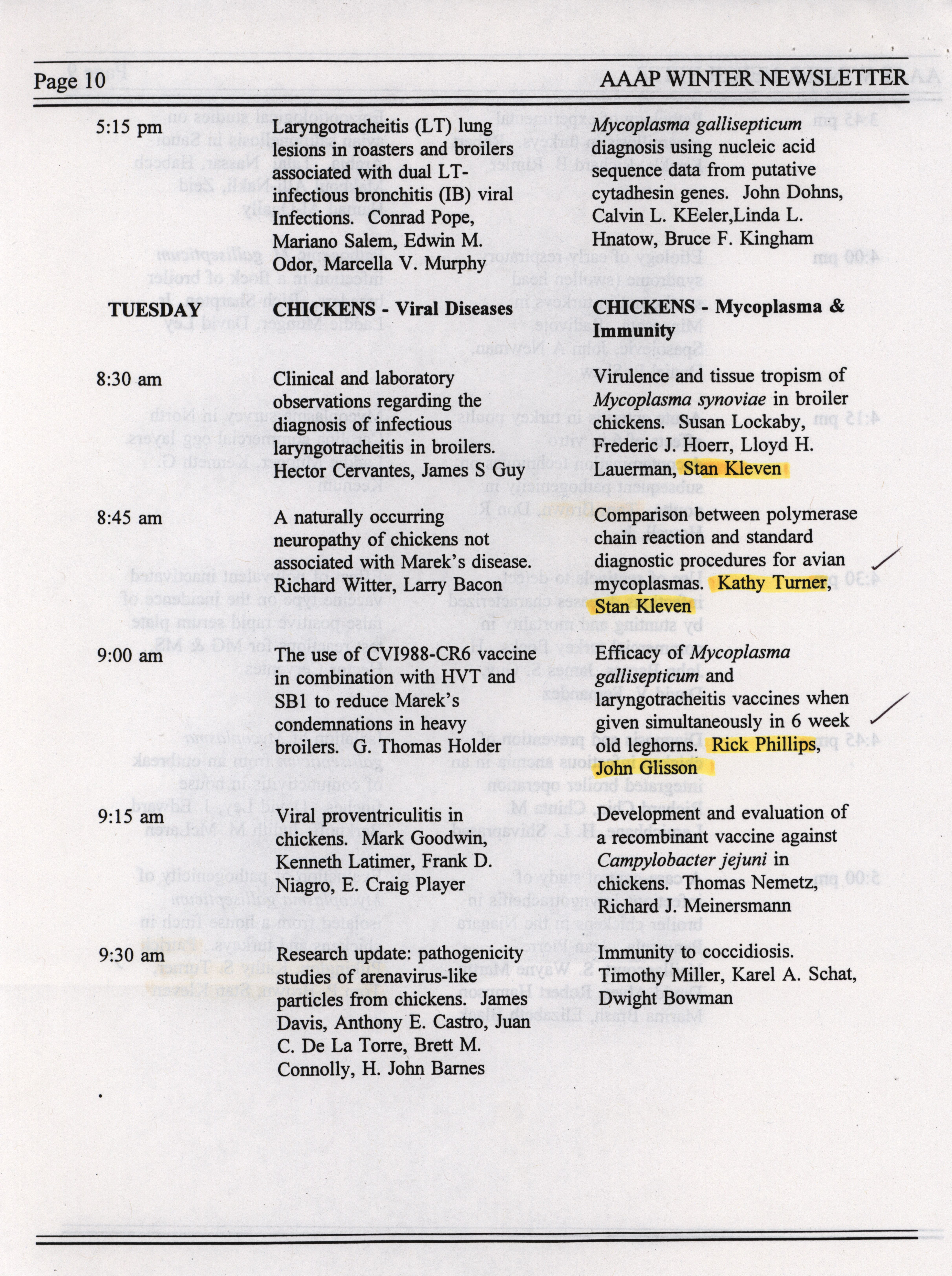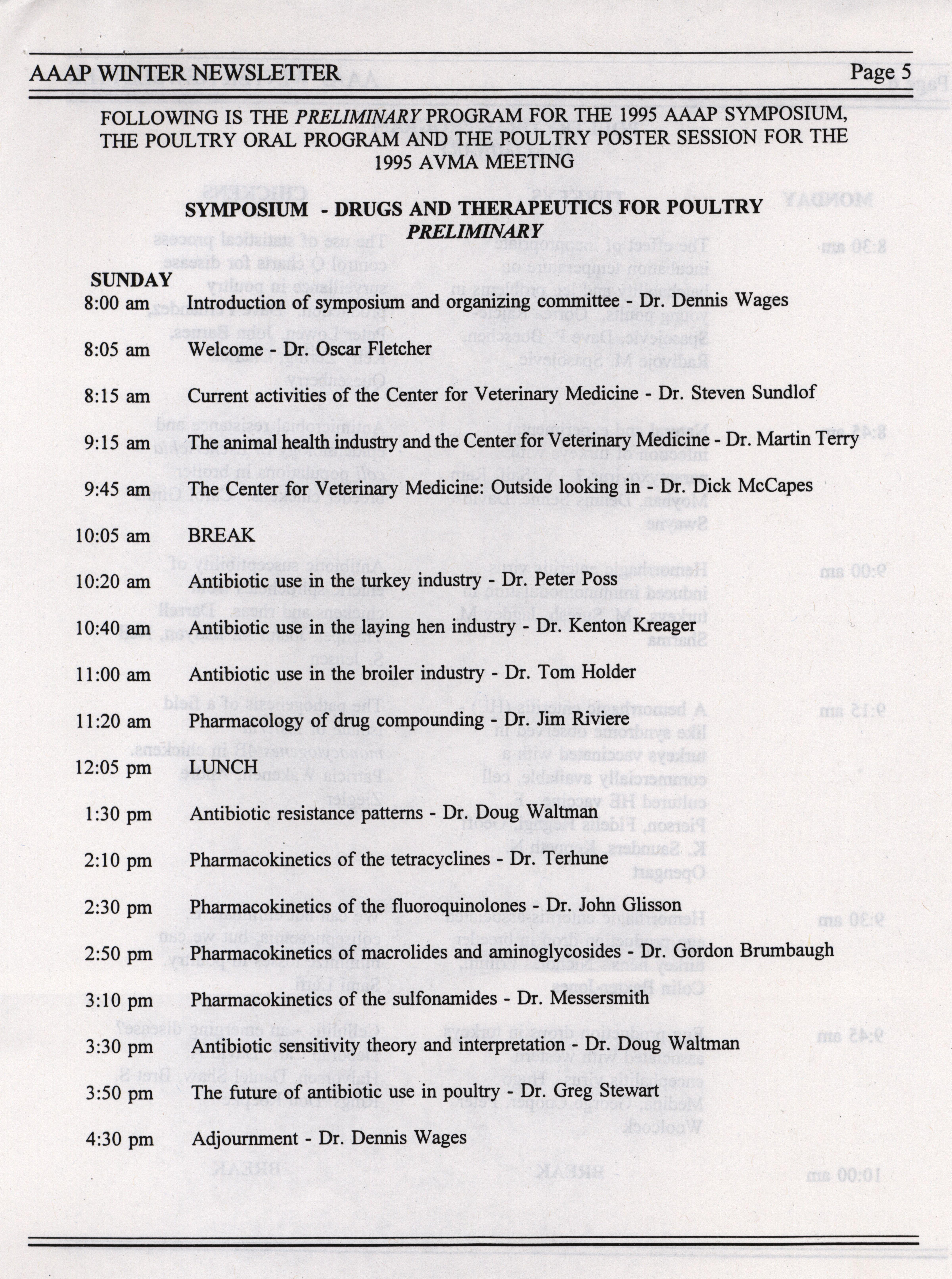 - The winter newsletter of the American Association of Avian Pathologists, January 1995. The quarterly newsletter features several different topics, including annual meeting information, the preliminary AAAP scientific program, donations to the AAAP foundation and meeting announcements.