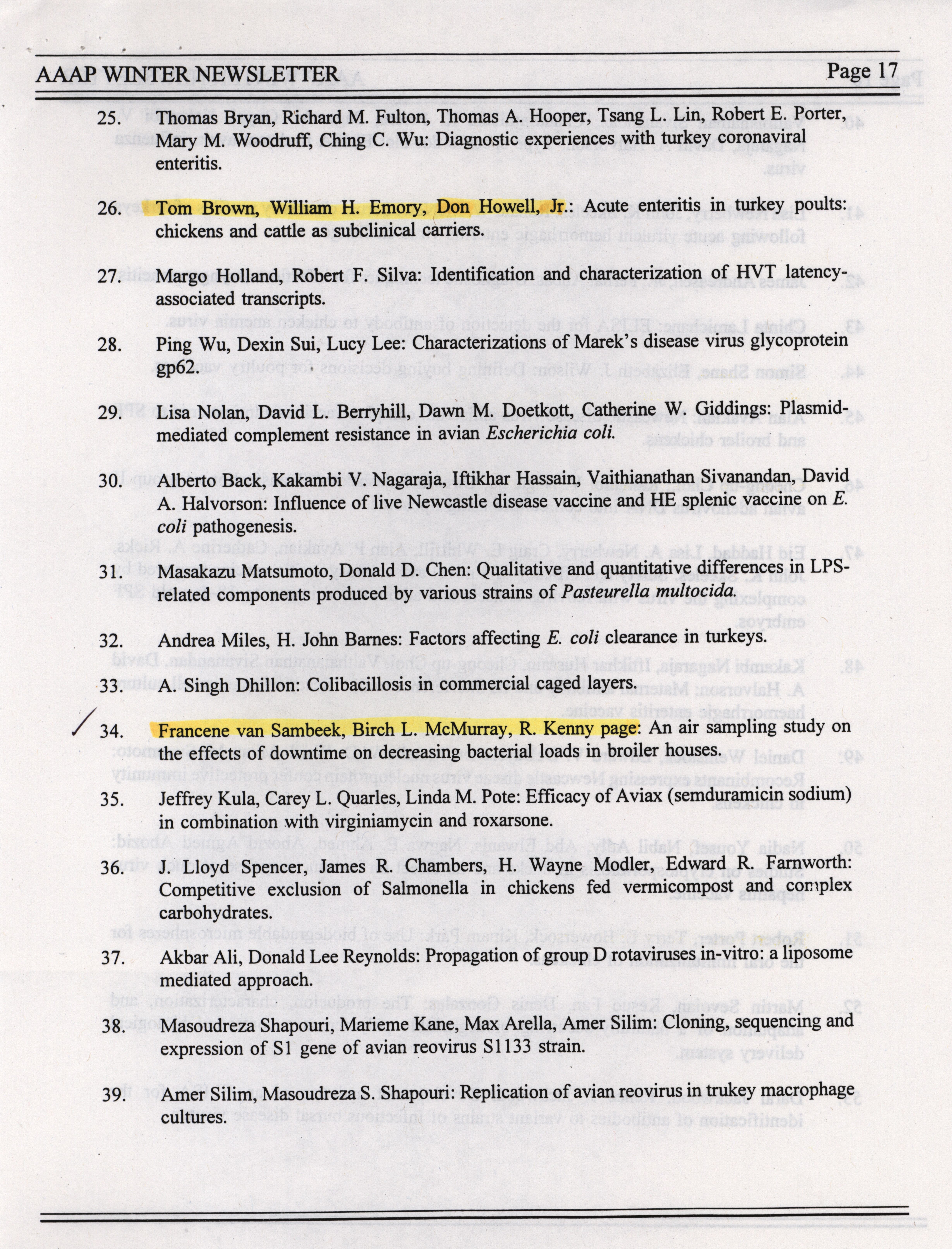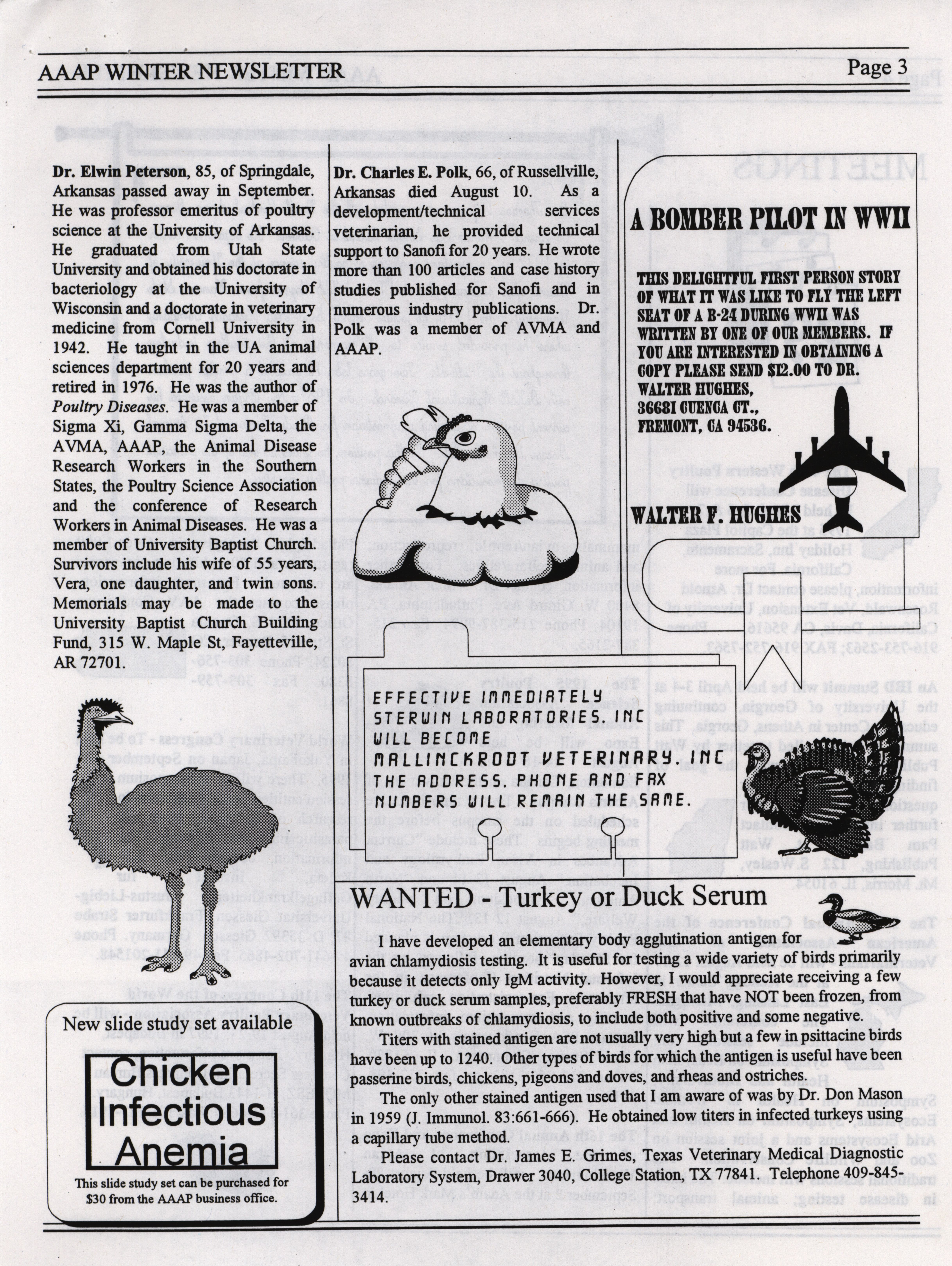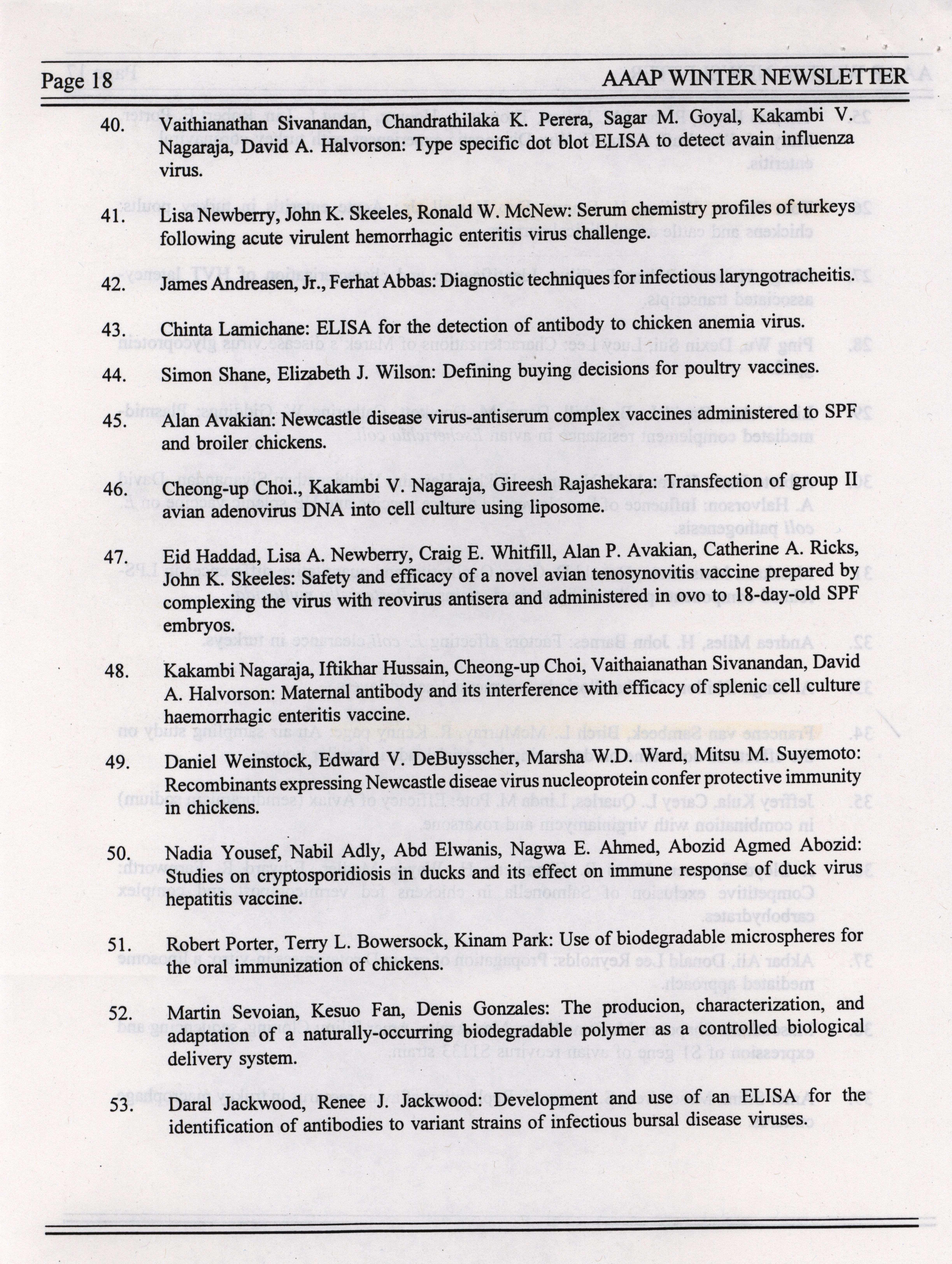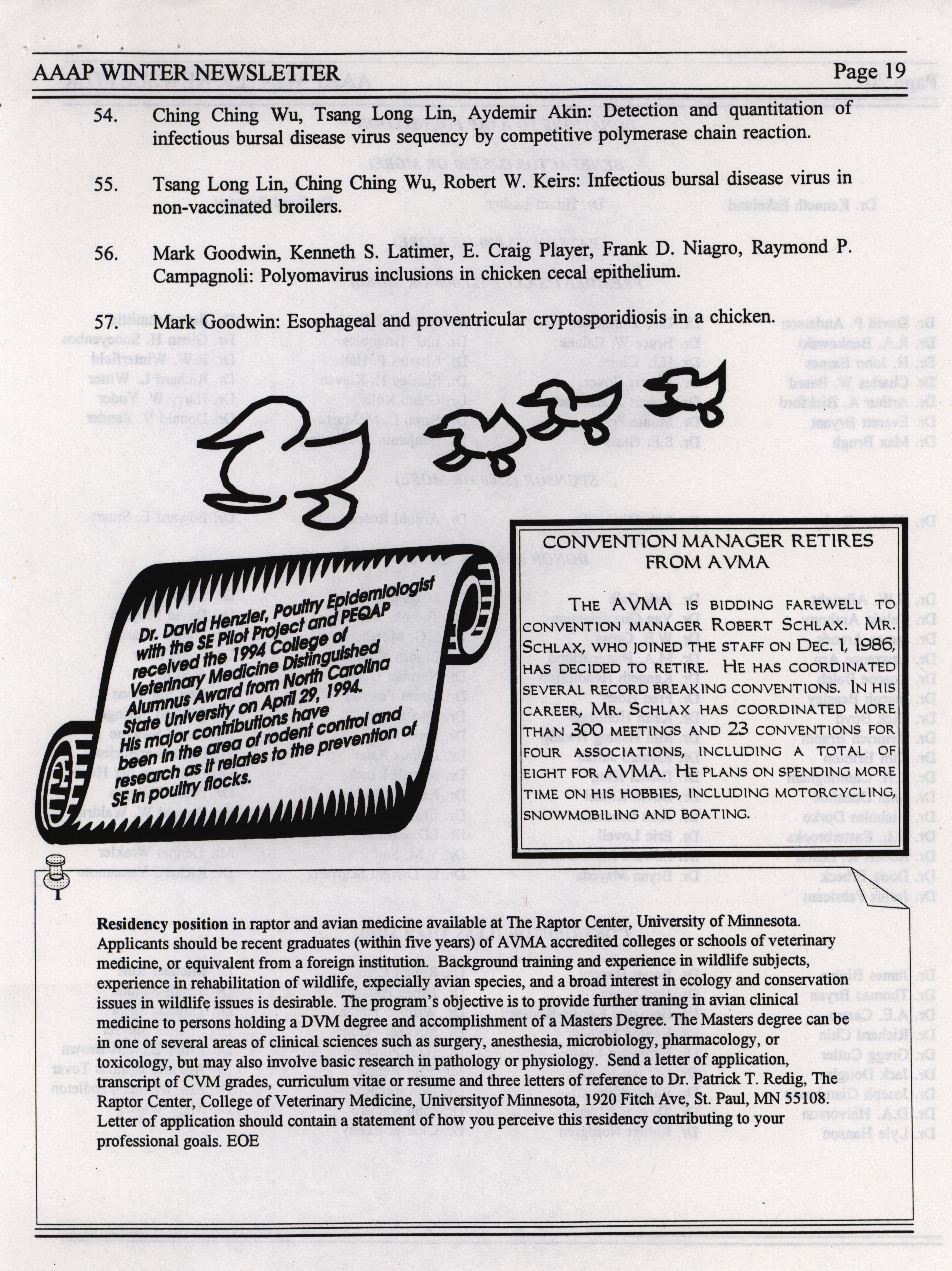 - "AAAP winter newsletter, January 1995", American Association of Avian Pathologists Collection, Iowa State University Library Digital Collections