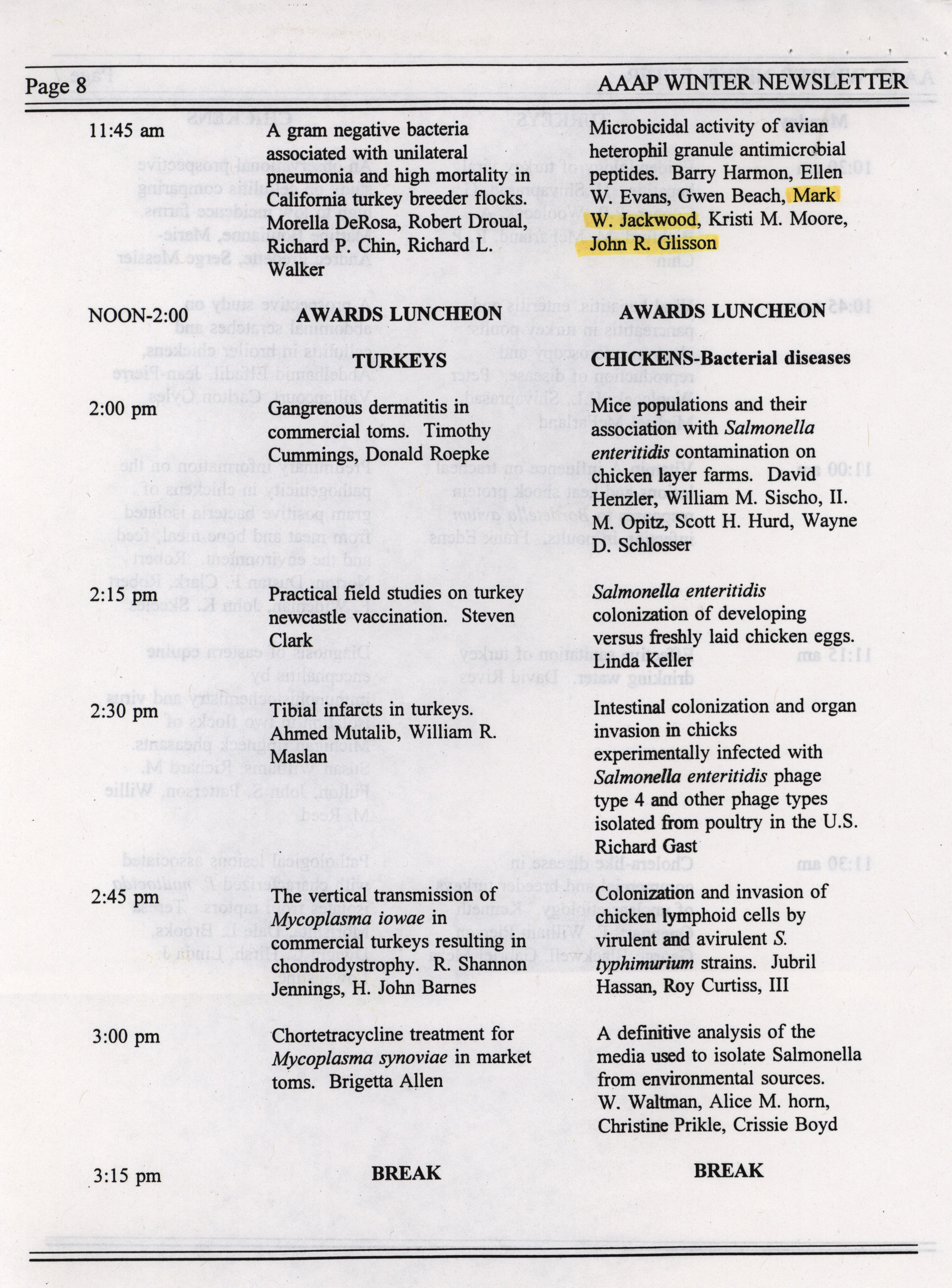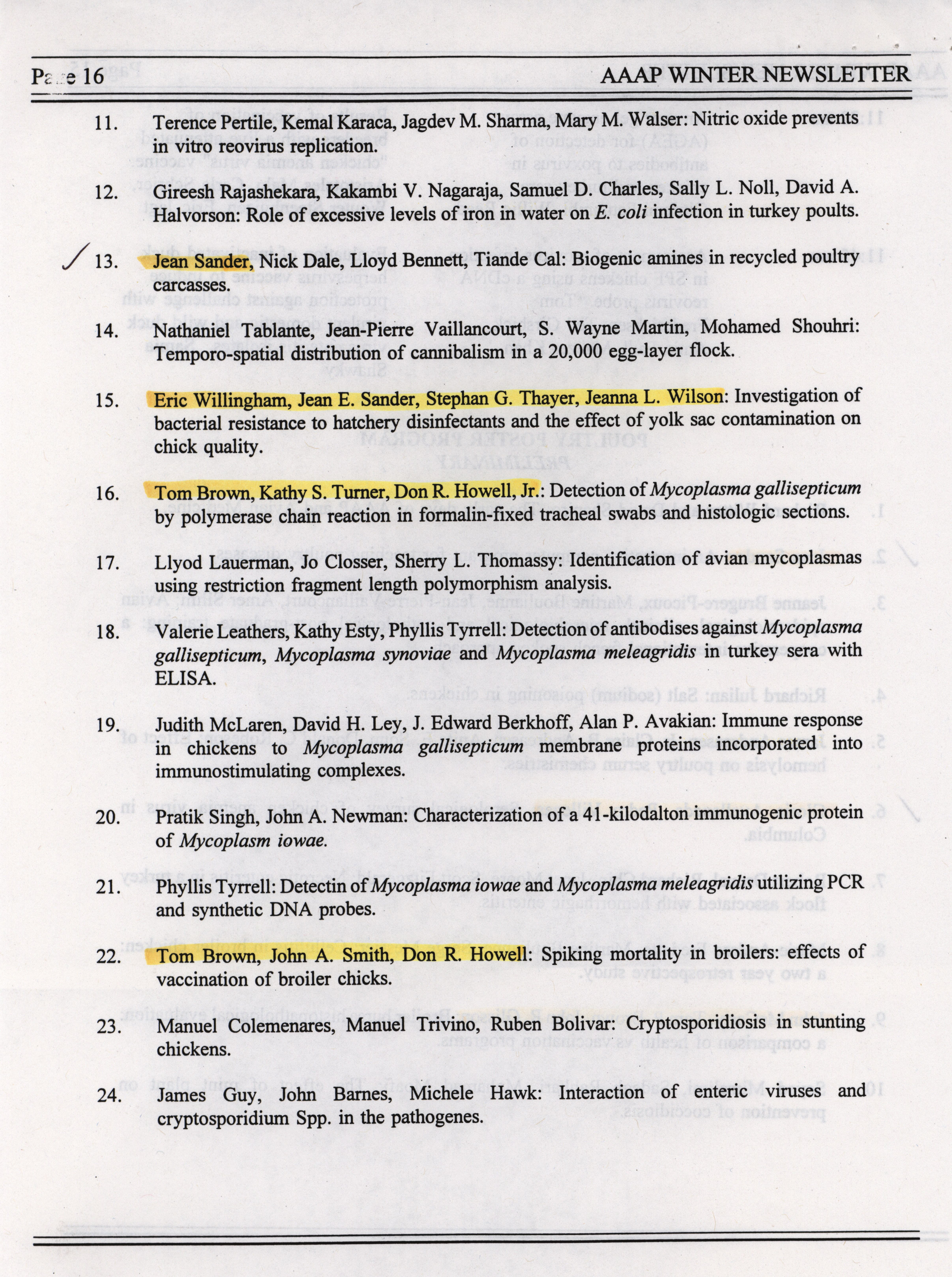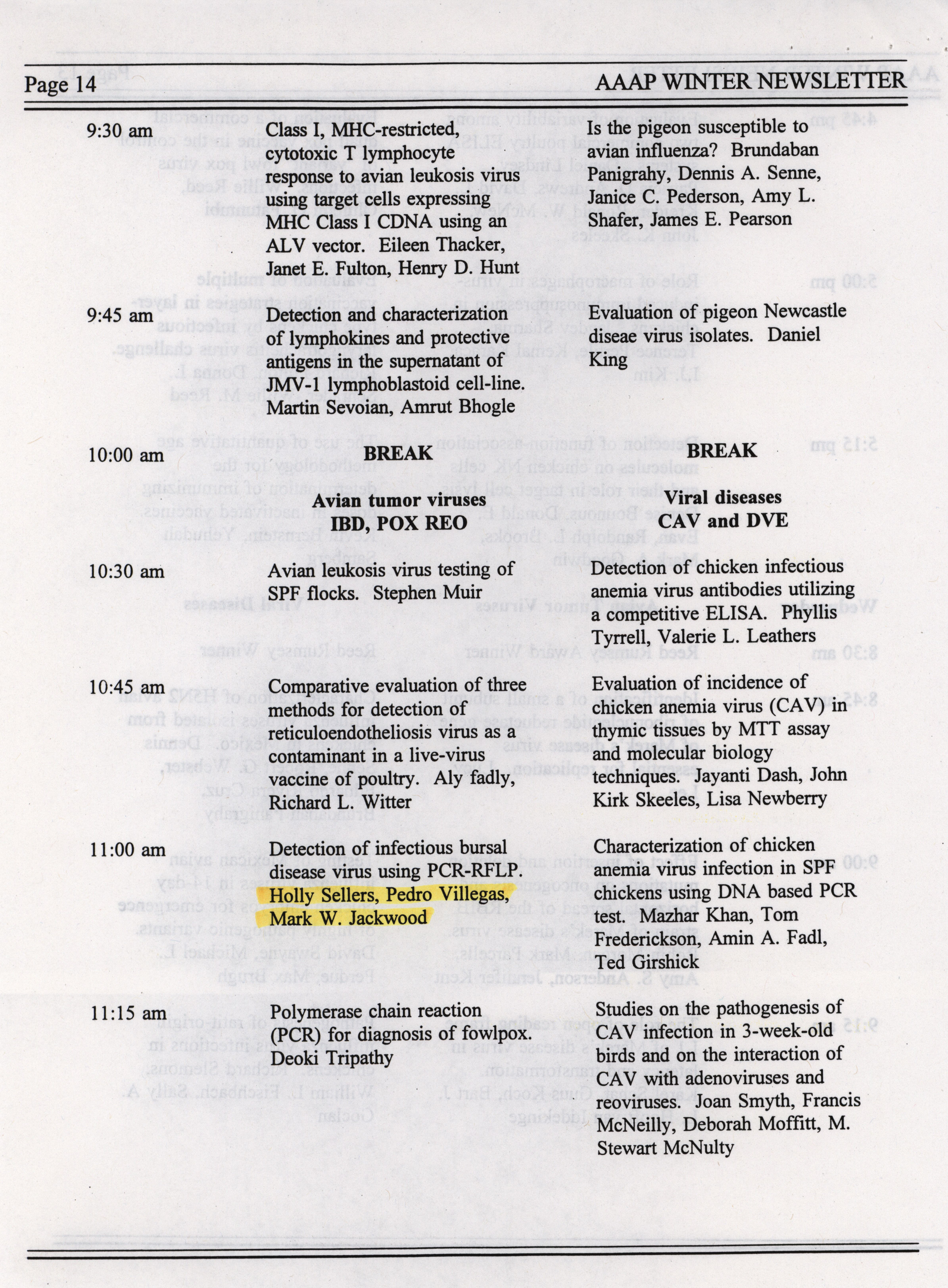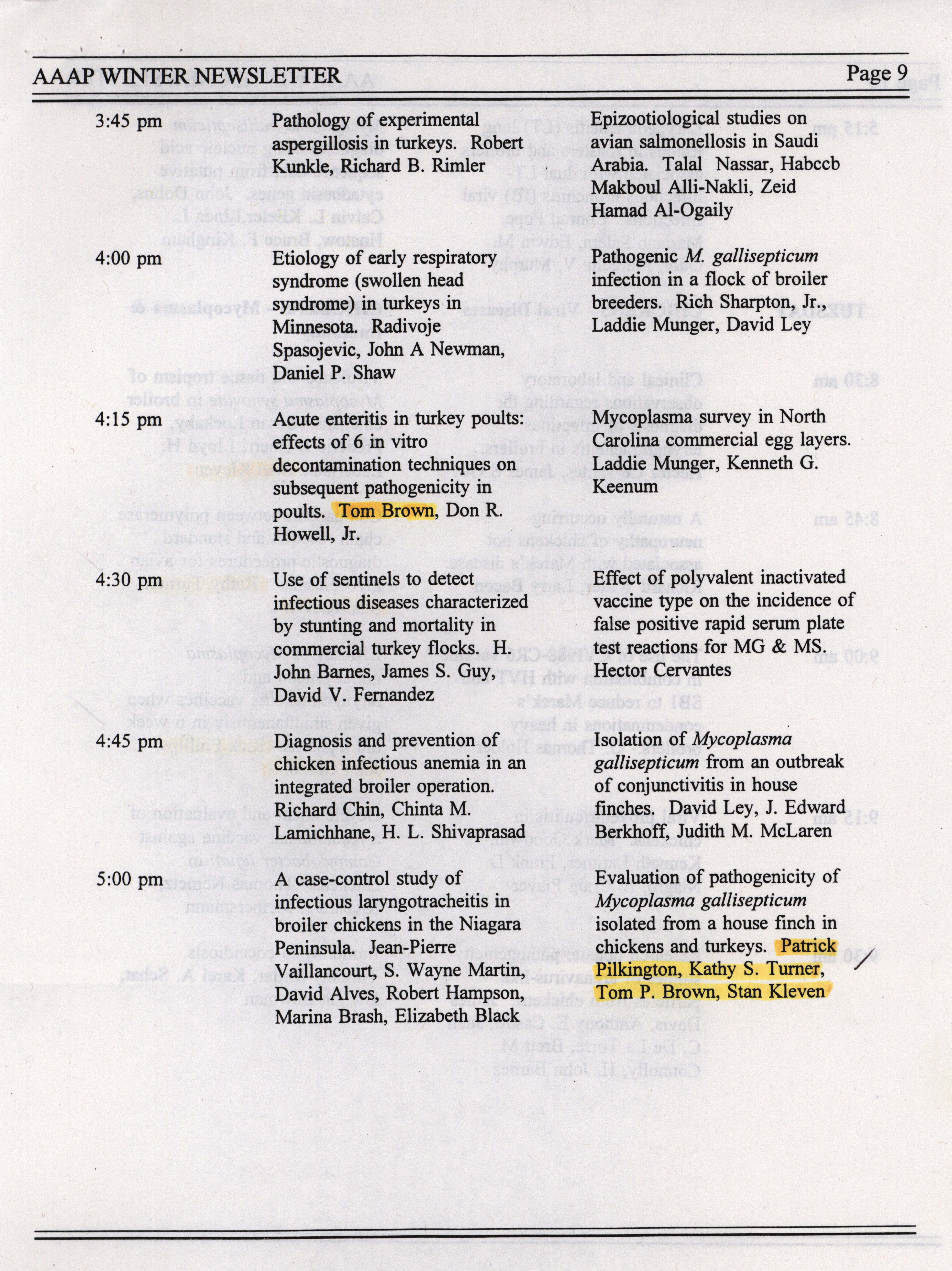 - "AAAP winter newsletter, January 1995", American Association of Avian Pathologists Collection, Iowa State University Library Digital Collections