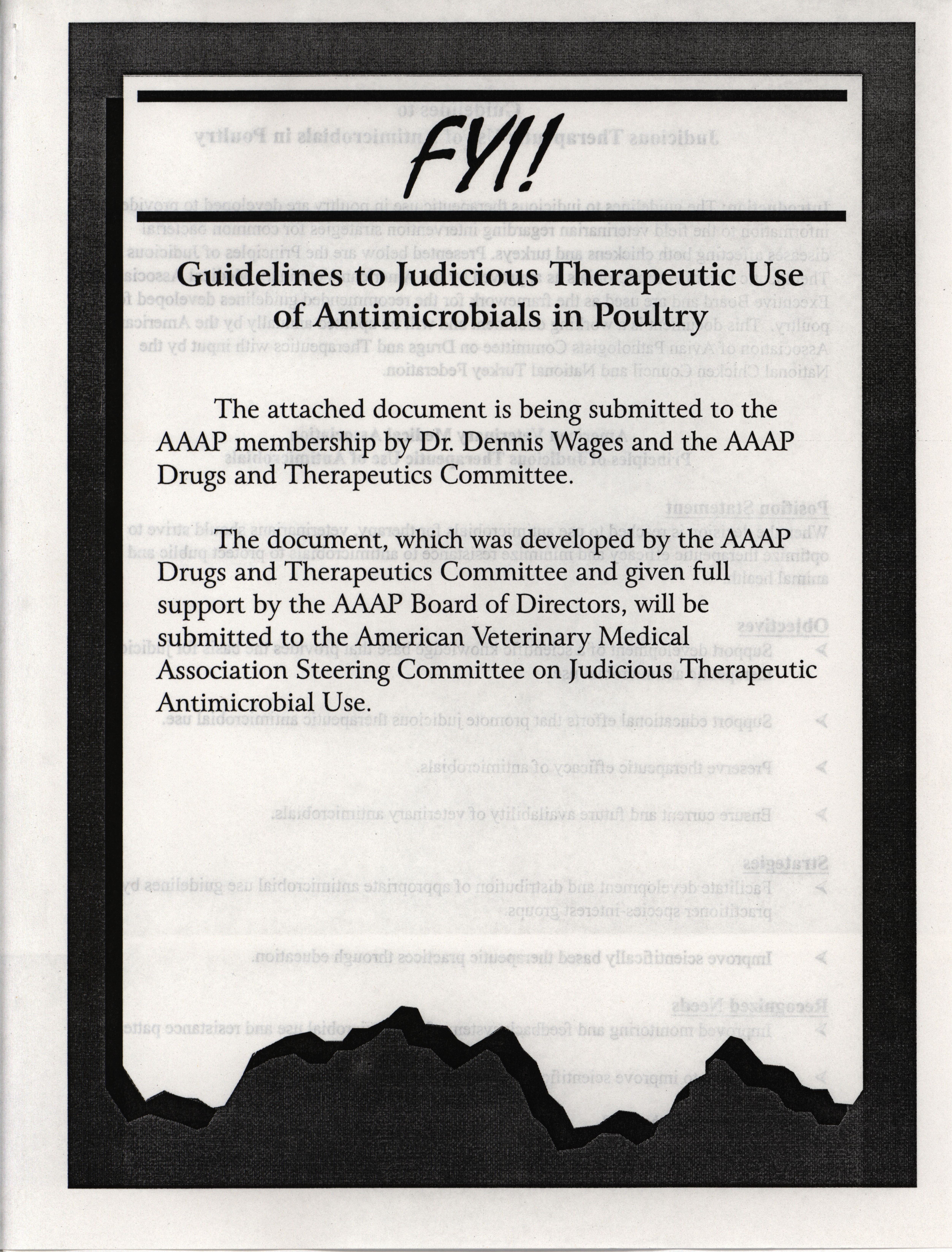 - Document of guidelines to judicious therapeutic use of antimicrobials in poultry developed by the American Association of Avian Pathologists drugs and therapeutics committee.