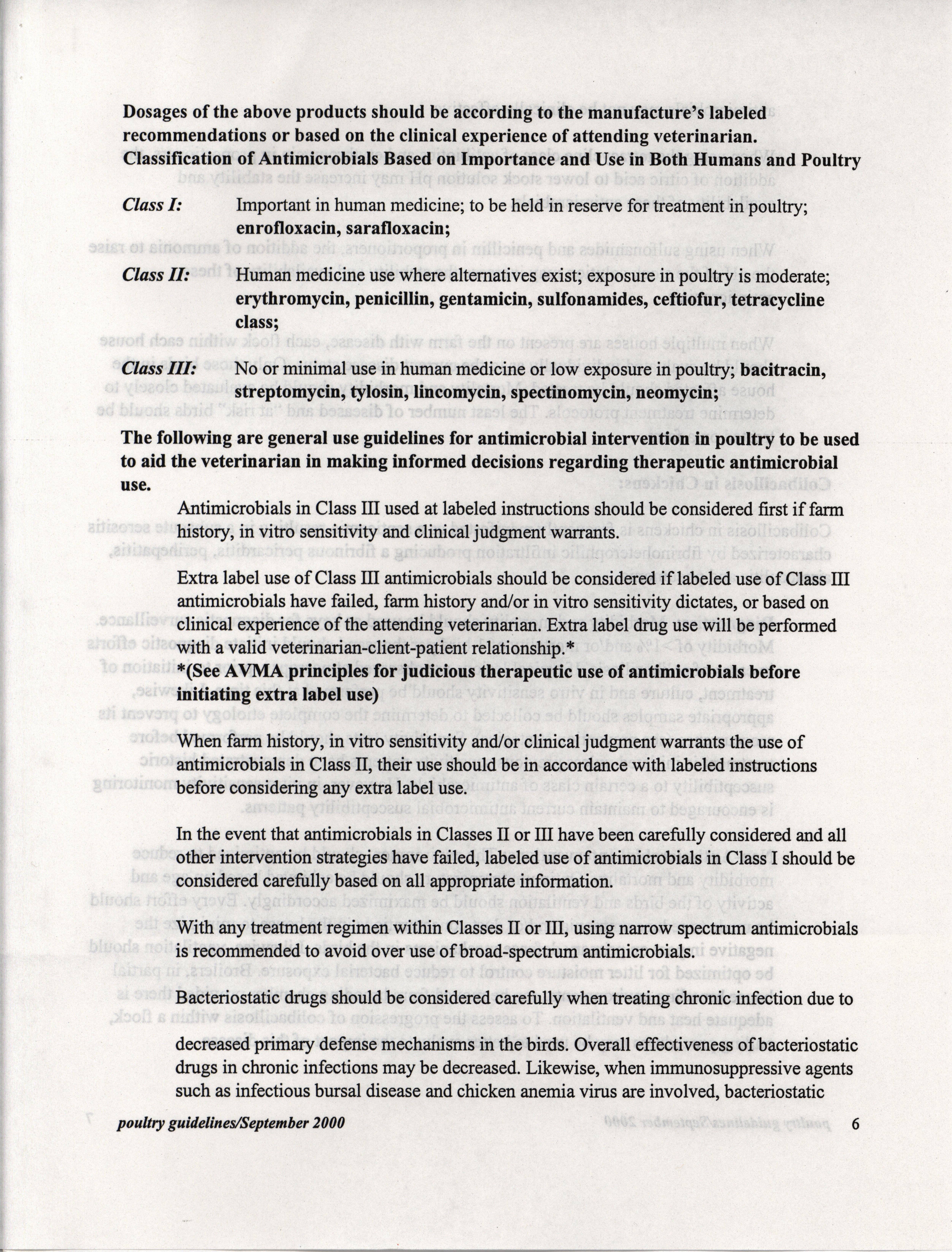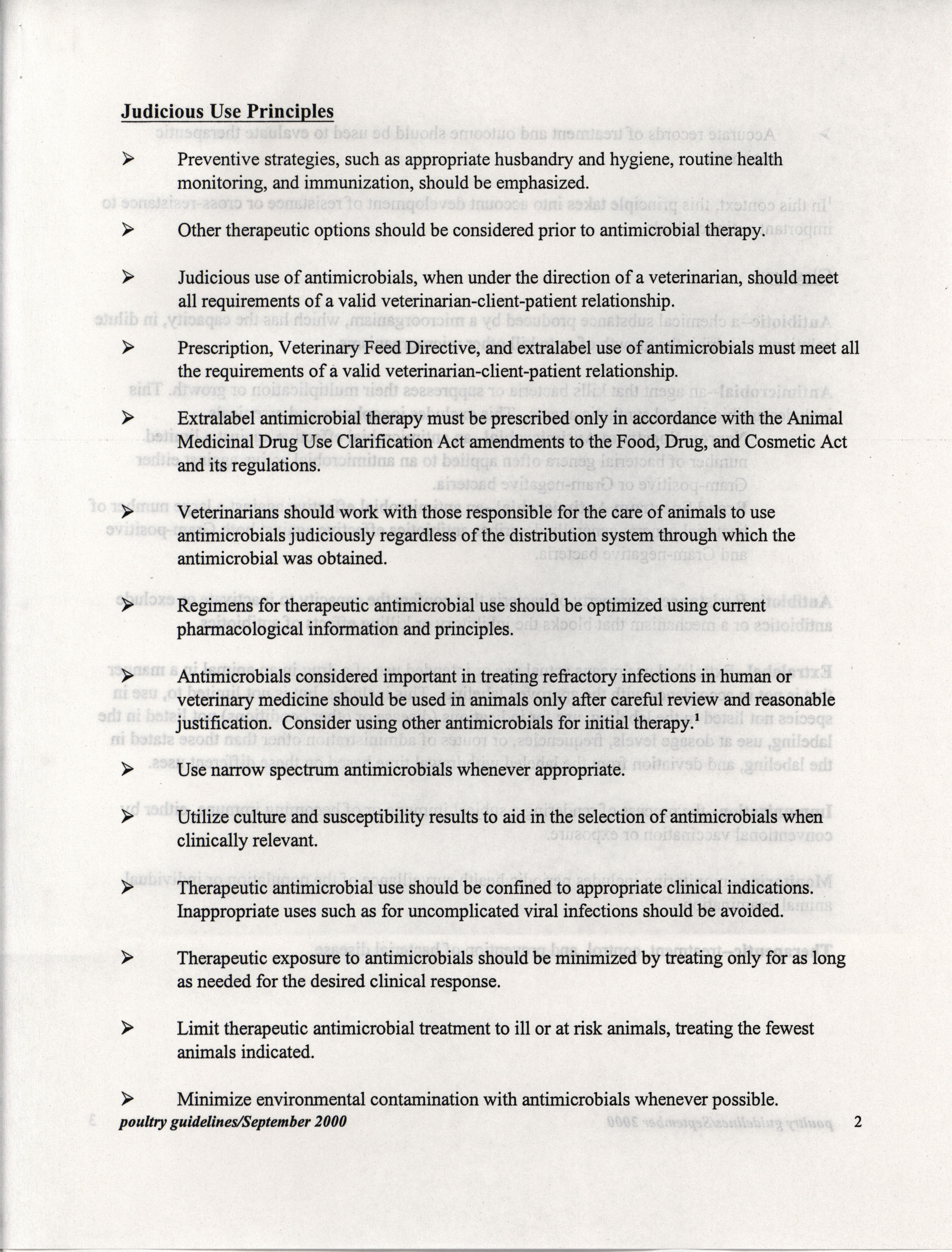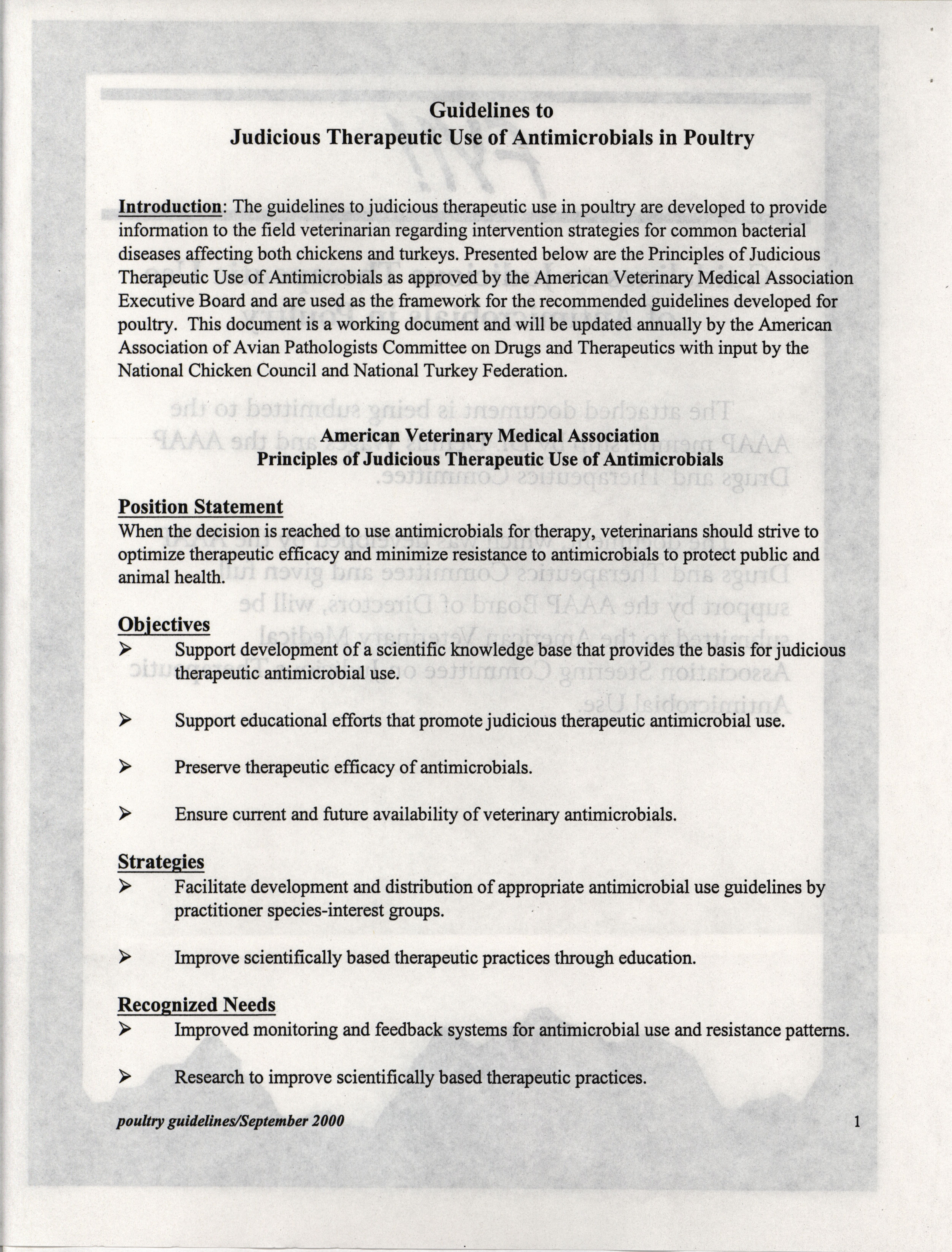 - American Association of Avian Pathologists guidelines to judicious therapeutic use of antimicrobials in poultry, September 2000