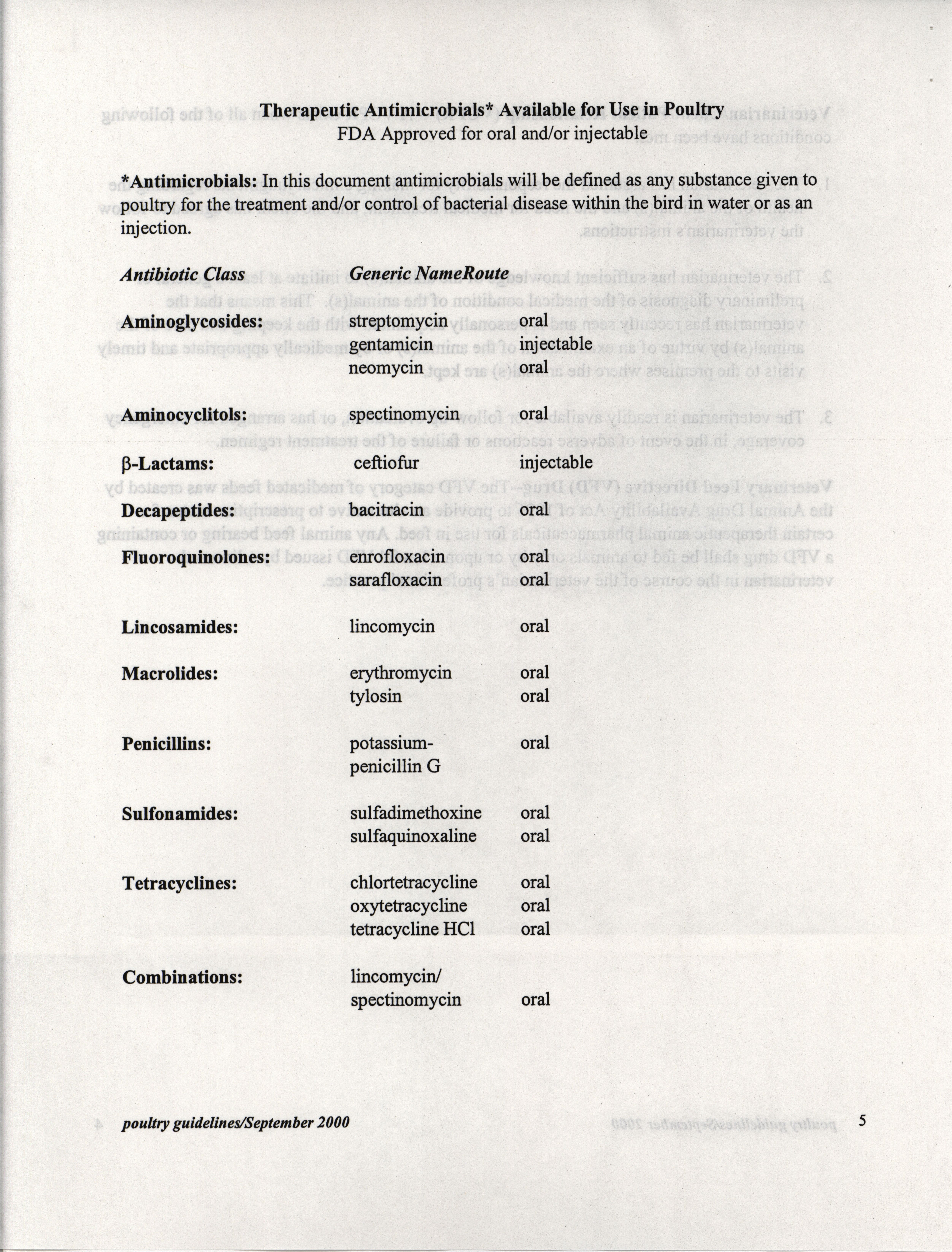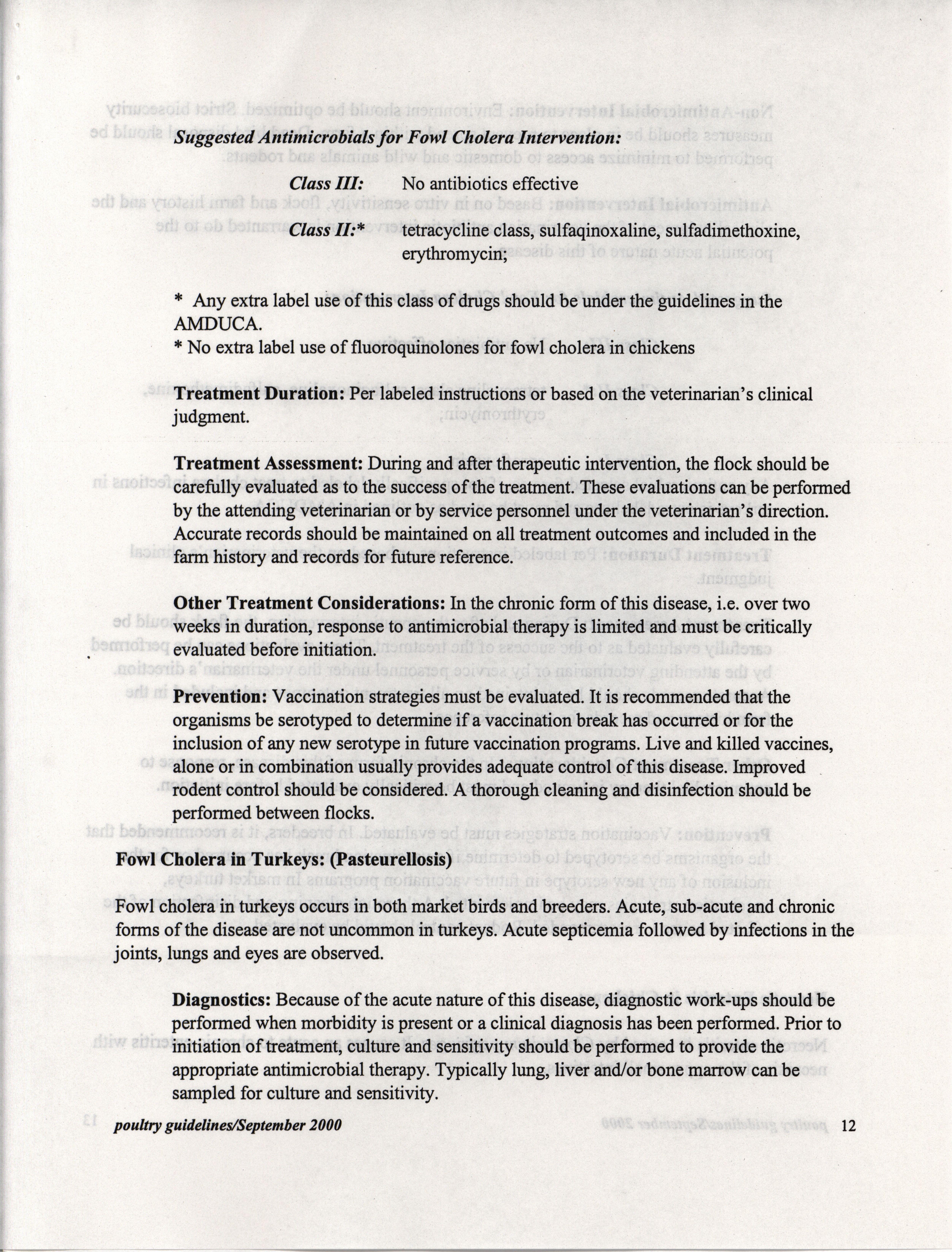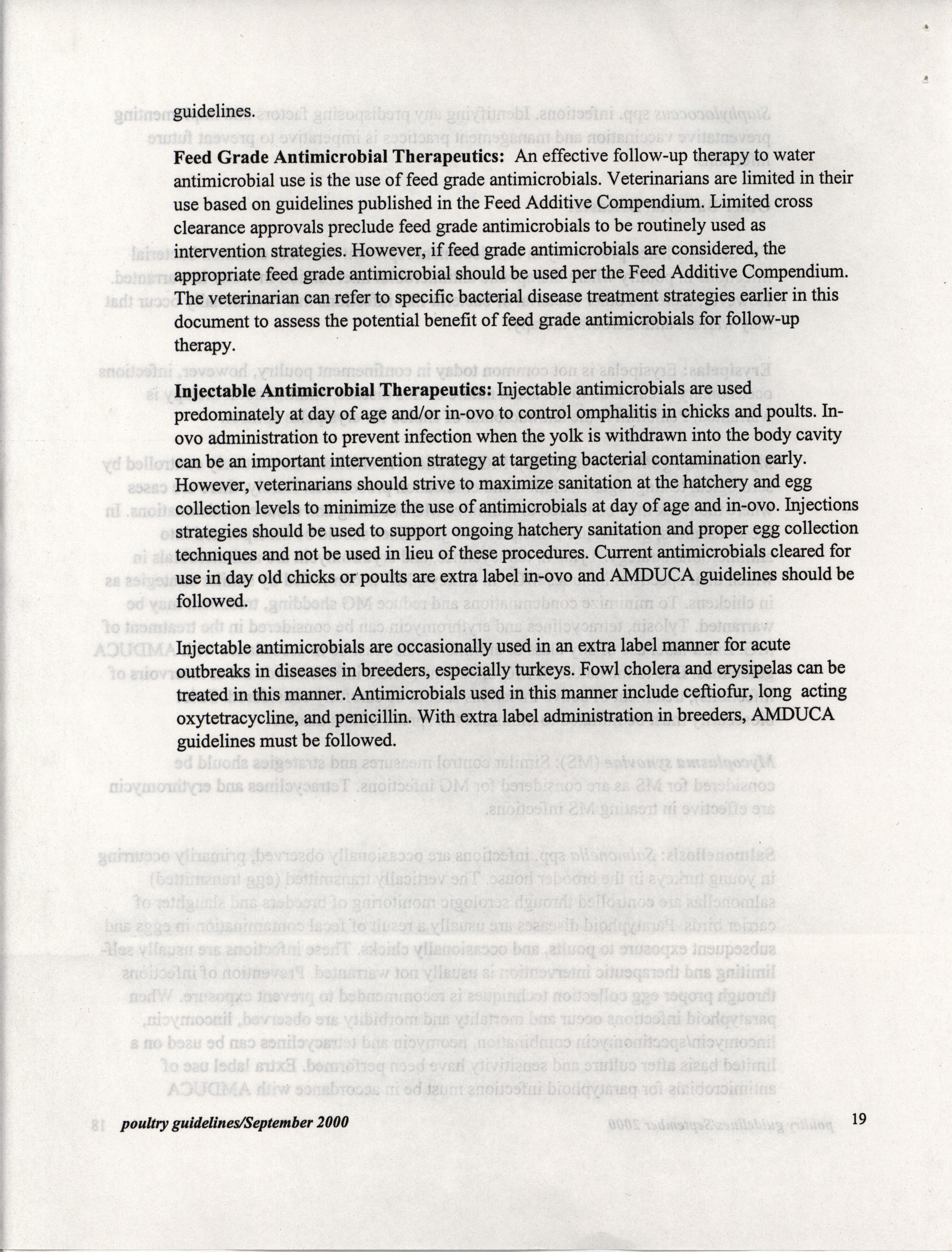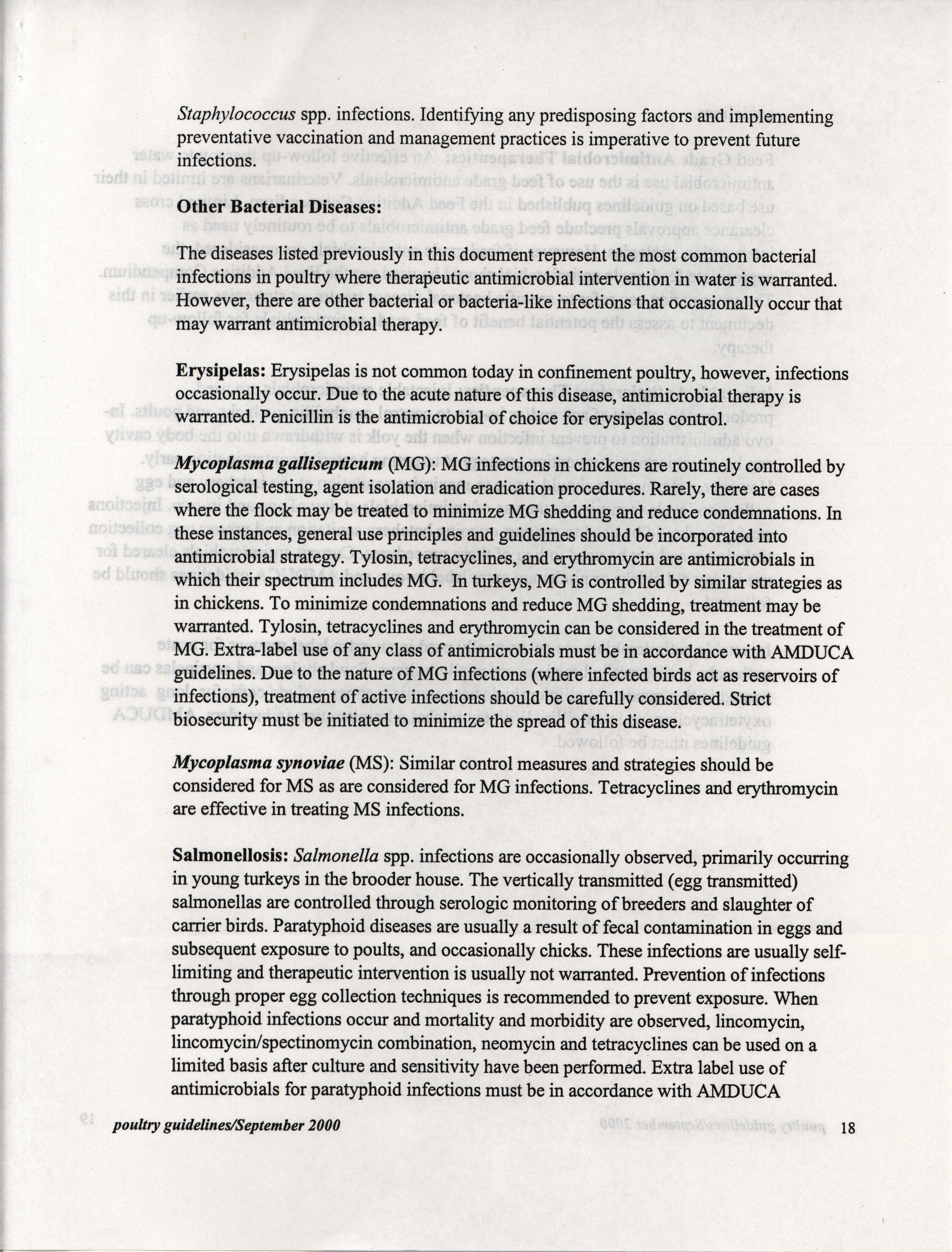 - American Association of Avian Pathologists guidelines to judicious therapeutic use of antimicrobials in poultry, September 2000