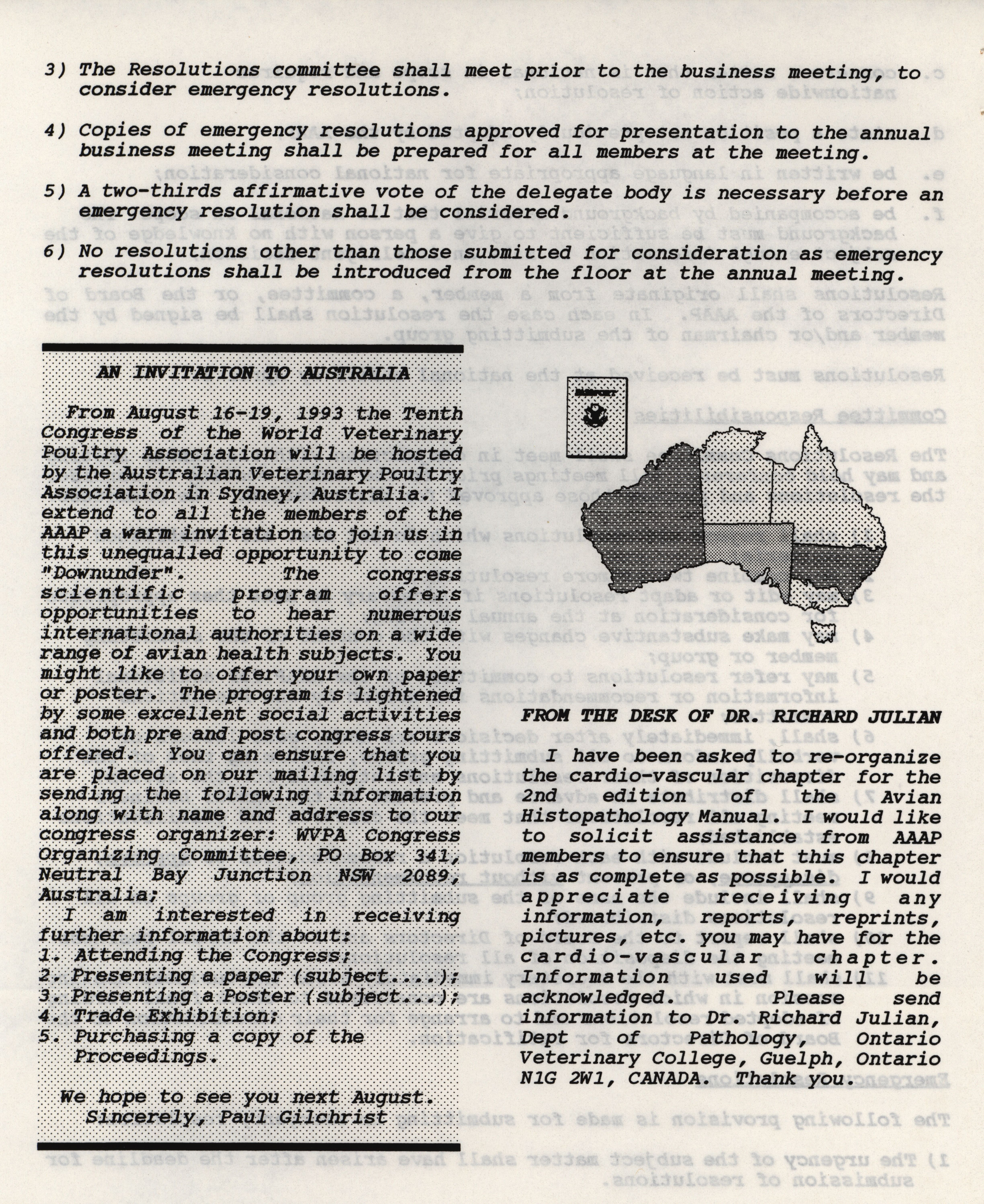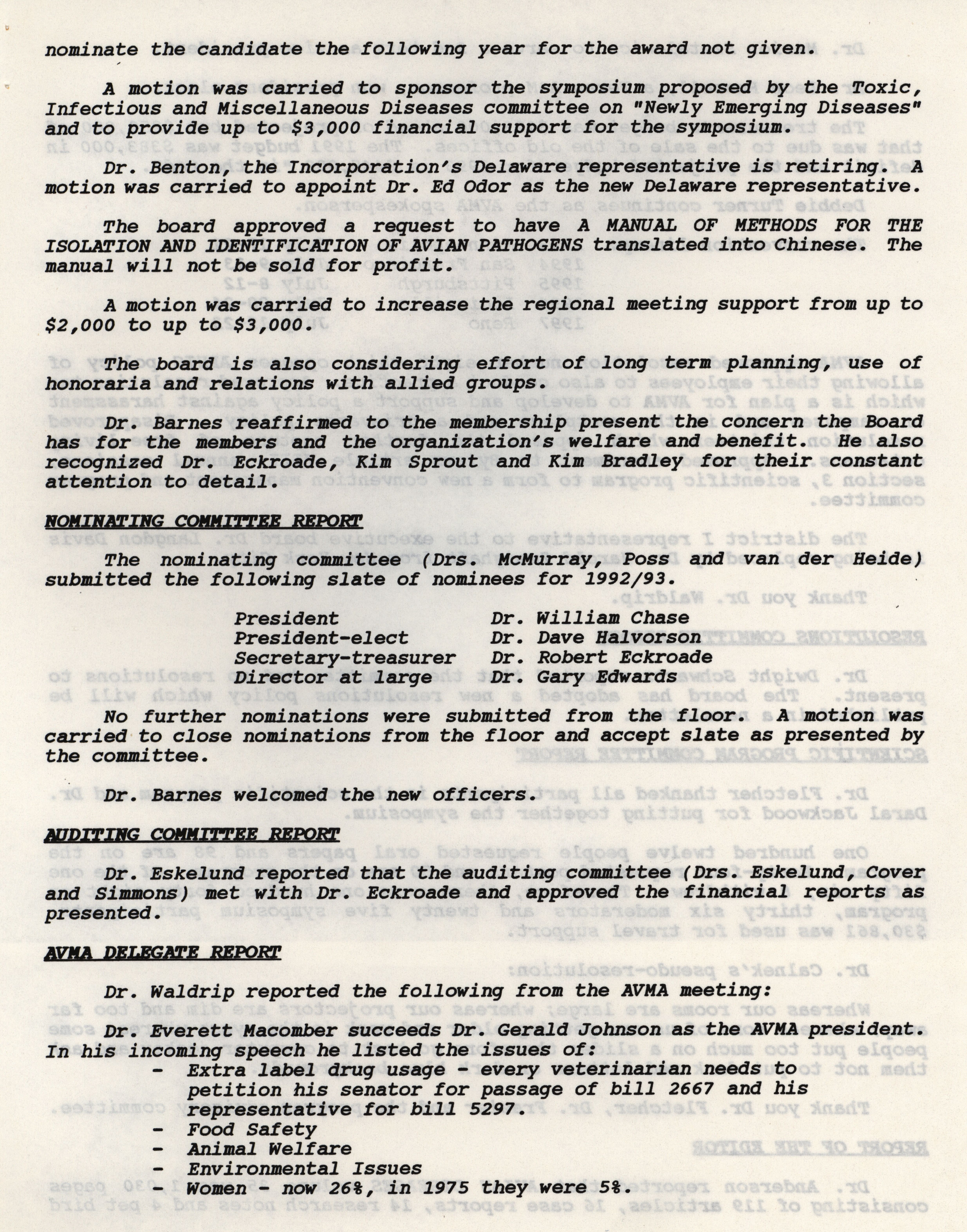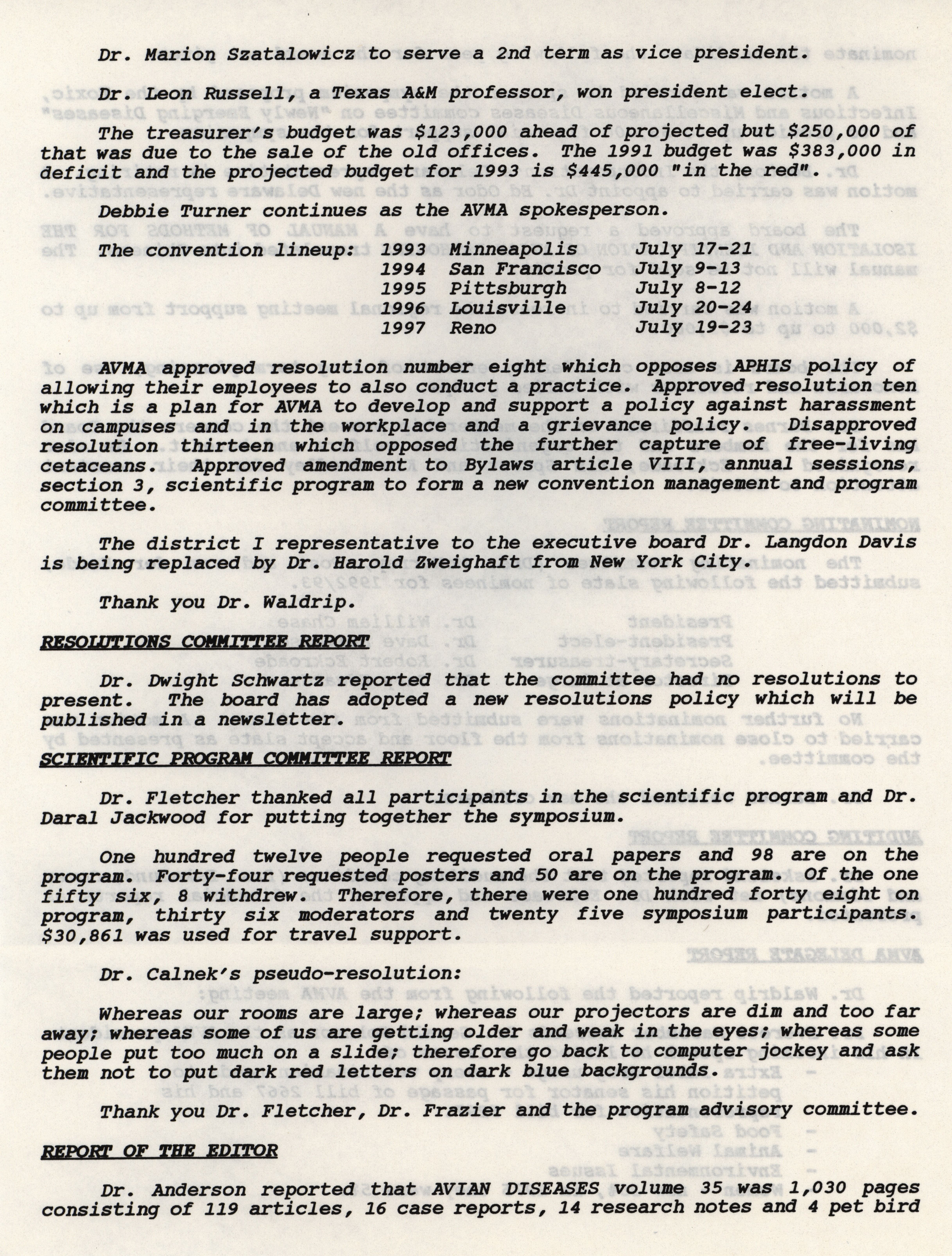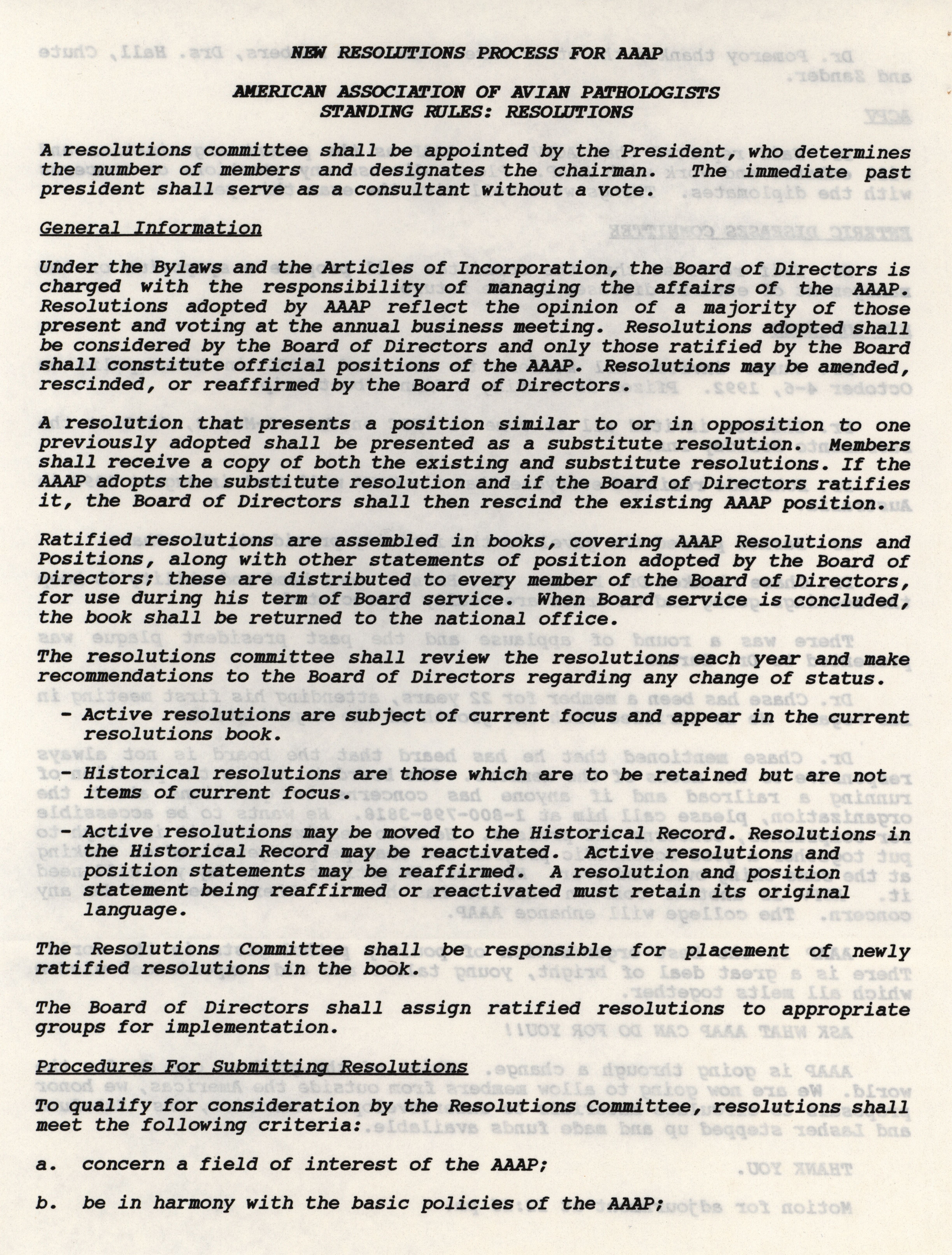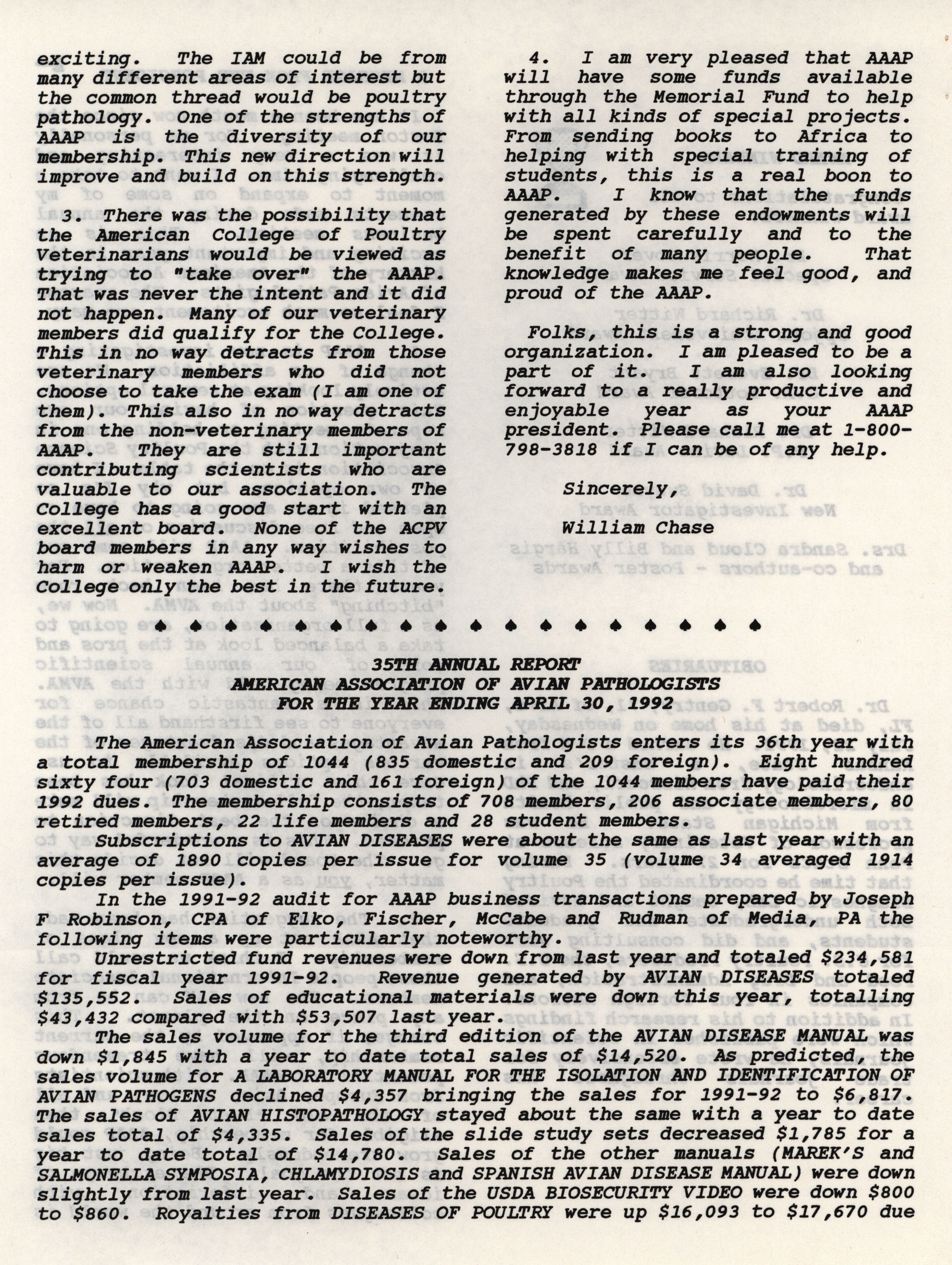 - The newsletter of the American Association of Avian Pathologists, September 16, 1992. The quarterly newsletter features several different topics, including minutes of the 35th annual meeting of the AAAP, new resolutions process for the AAAP and 1991/1992 committee reports.