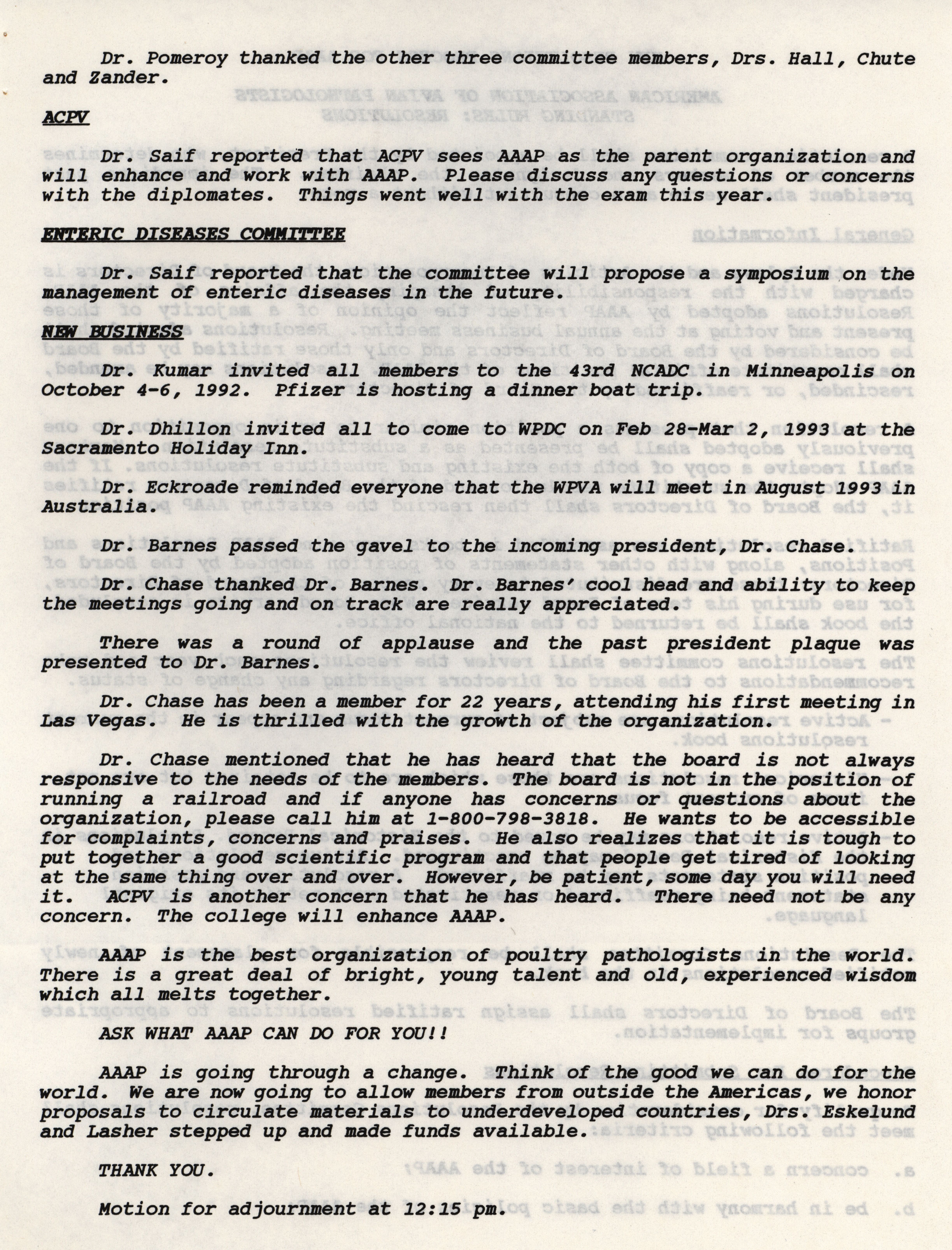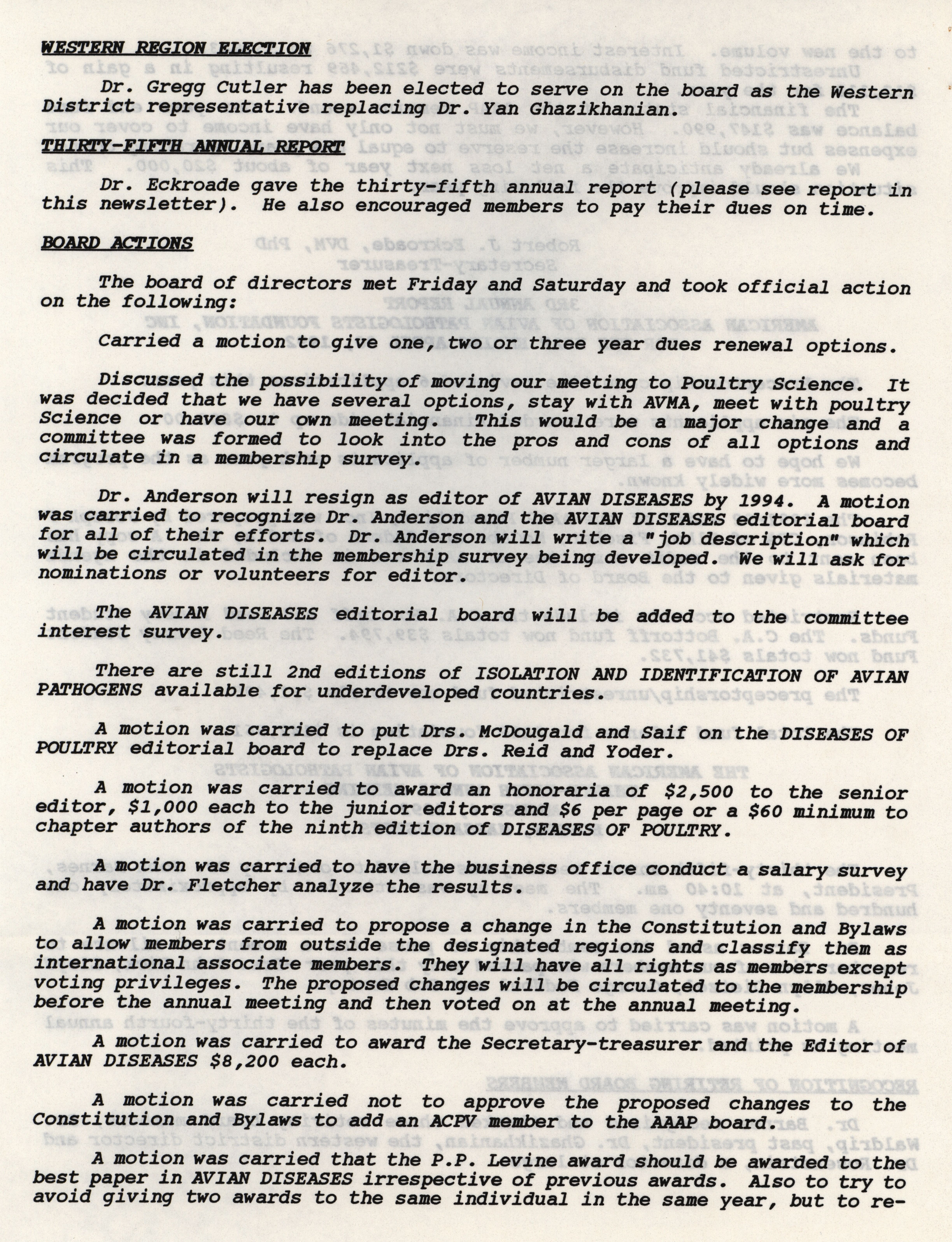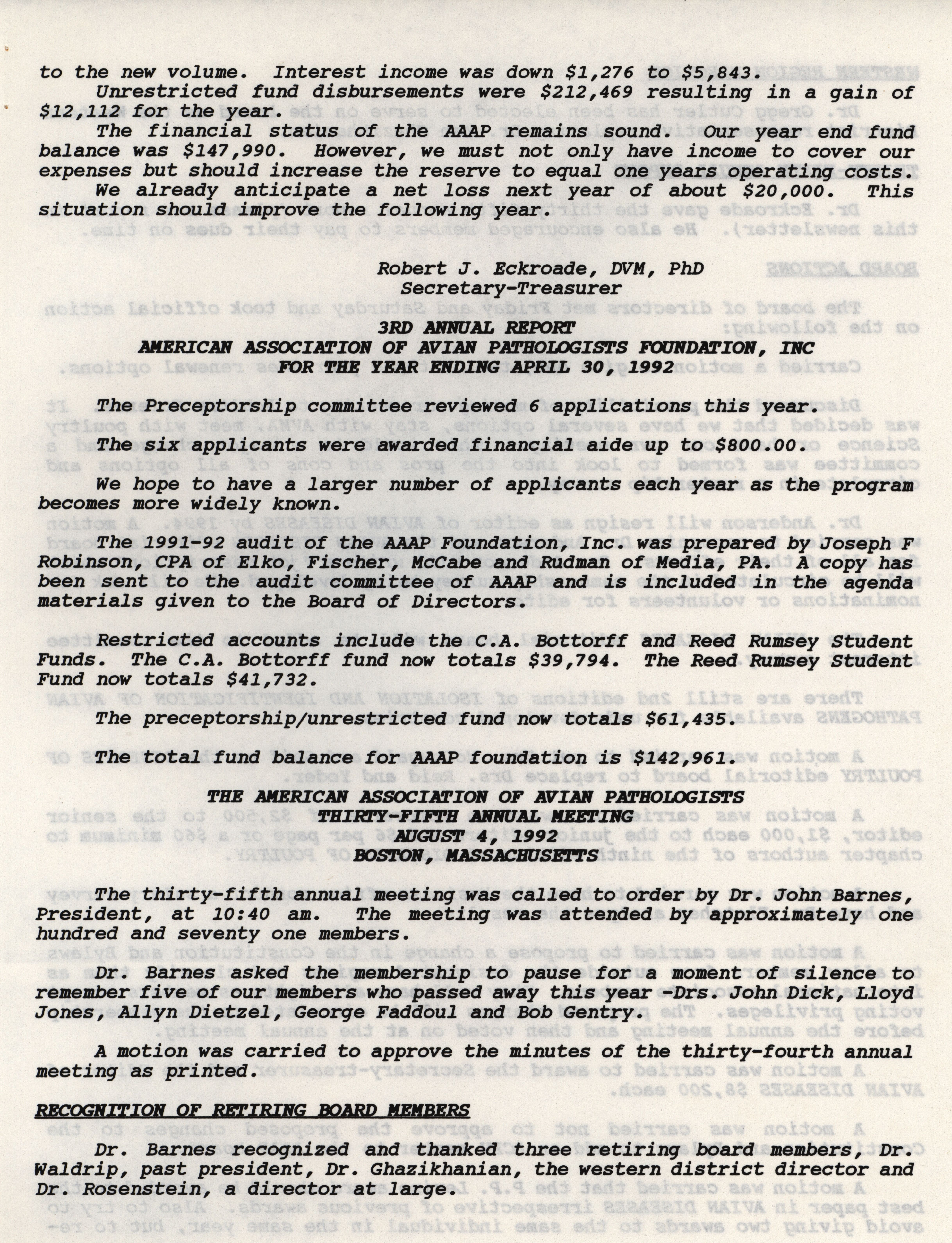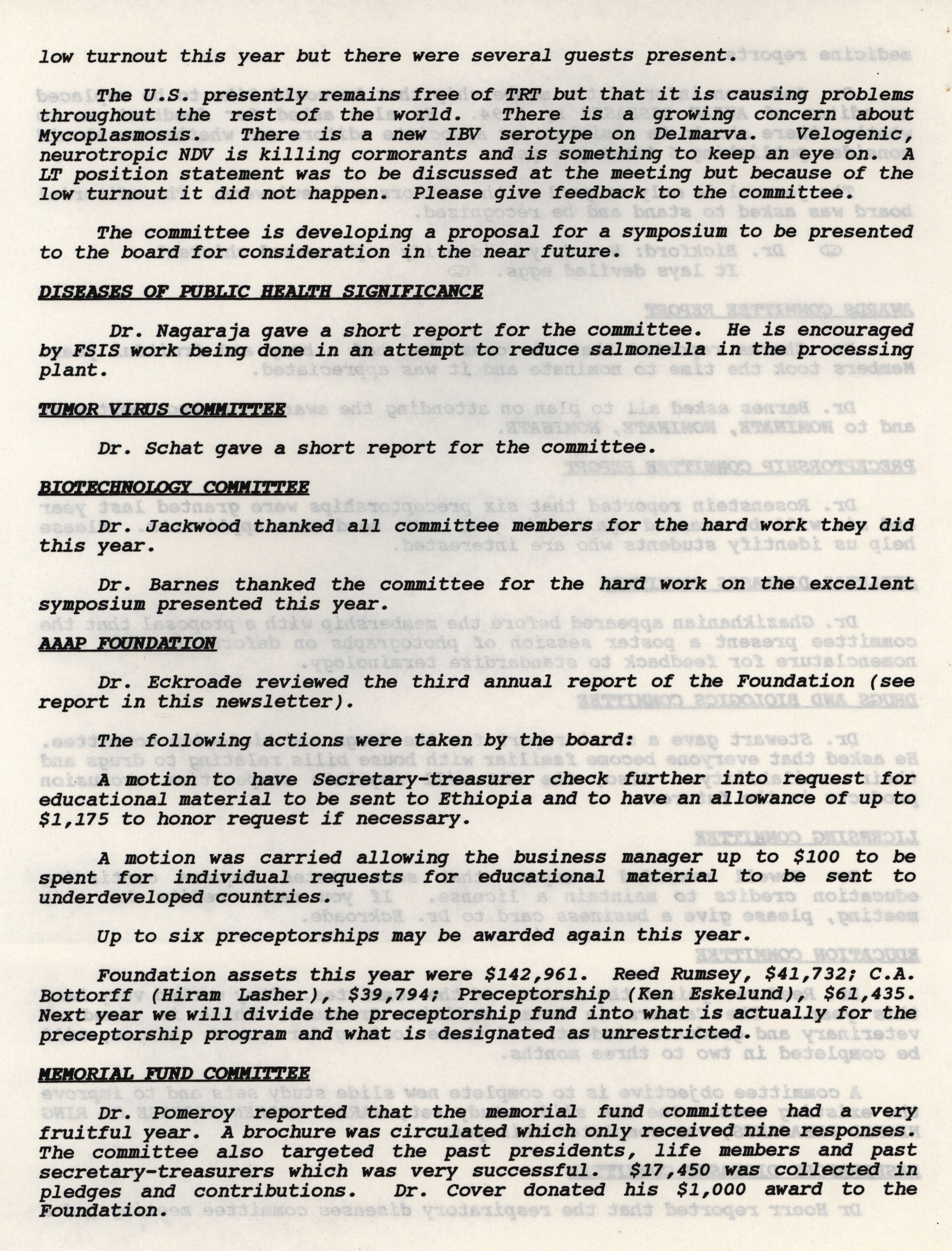 - The newsletter of the American Association of Avian Pathologists, September 16, 1992. The quarterly newsletter features several different topics, including minutes of the 35th annual meeting of the AAAP, new resolutions process for the AAAP and 1991/1992 committee reports.