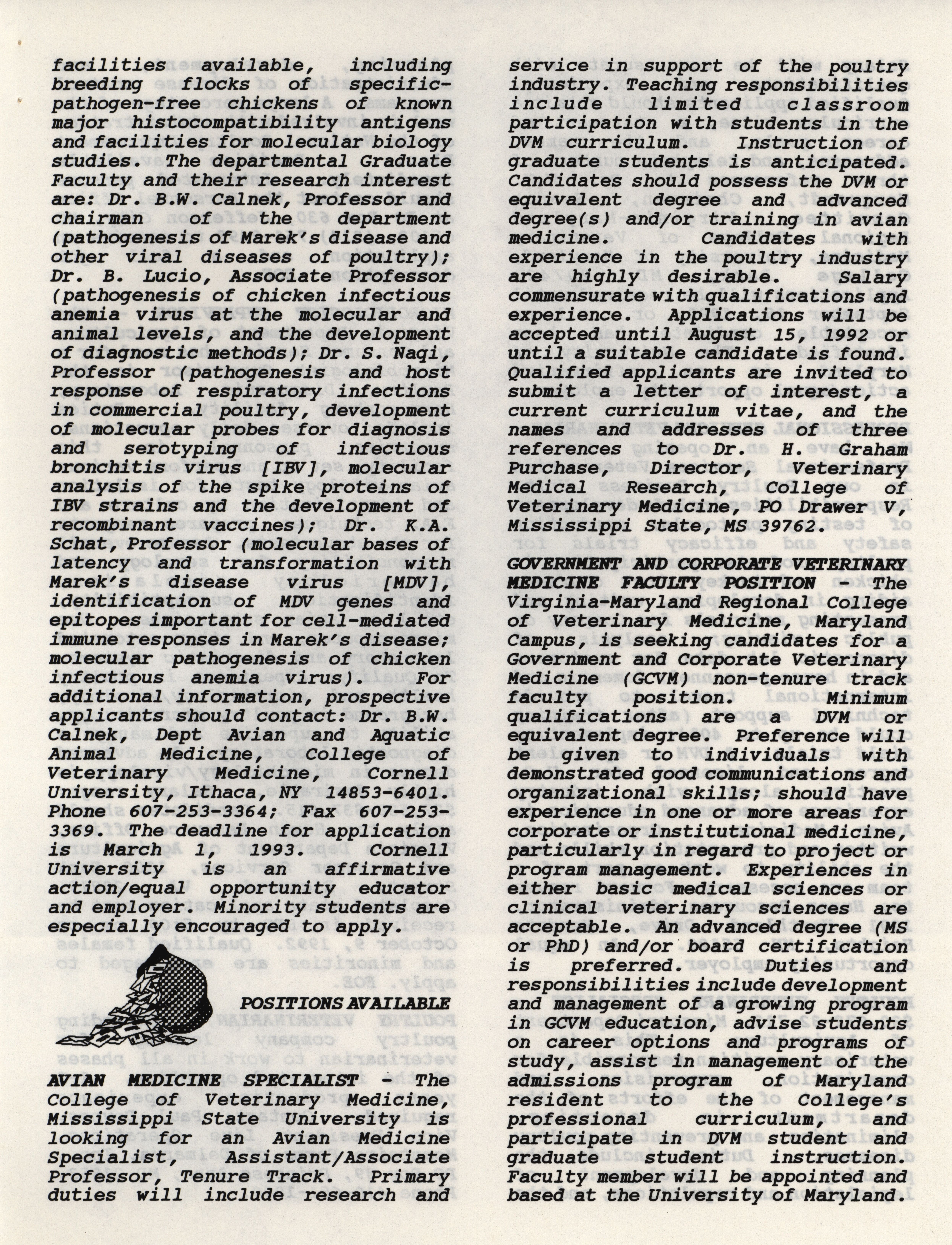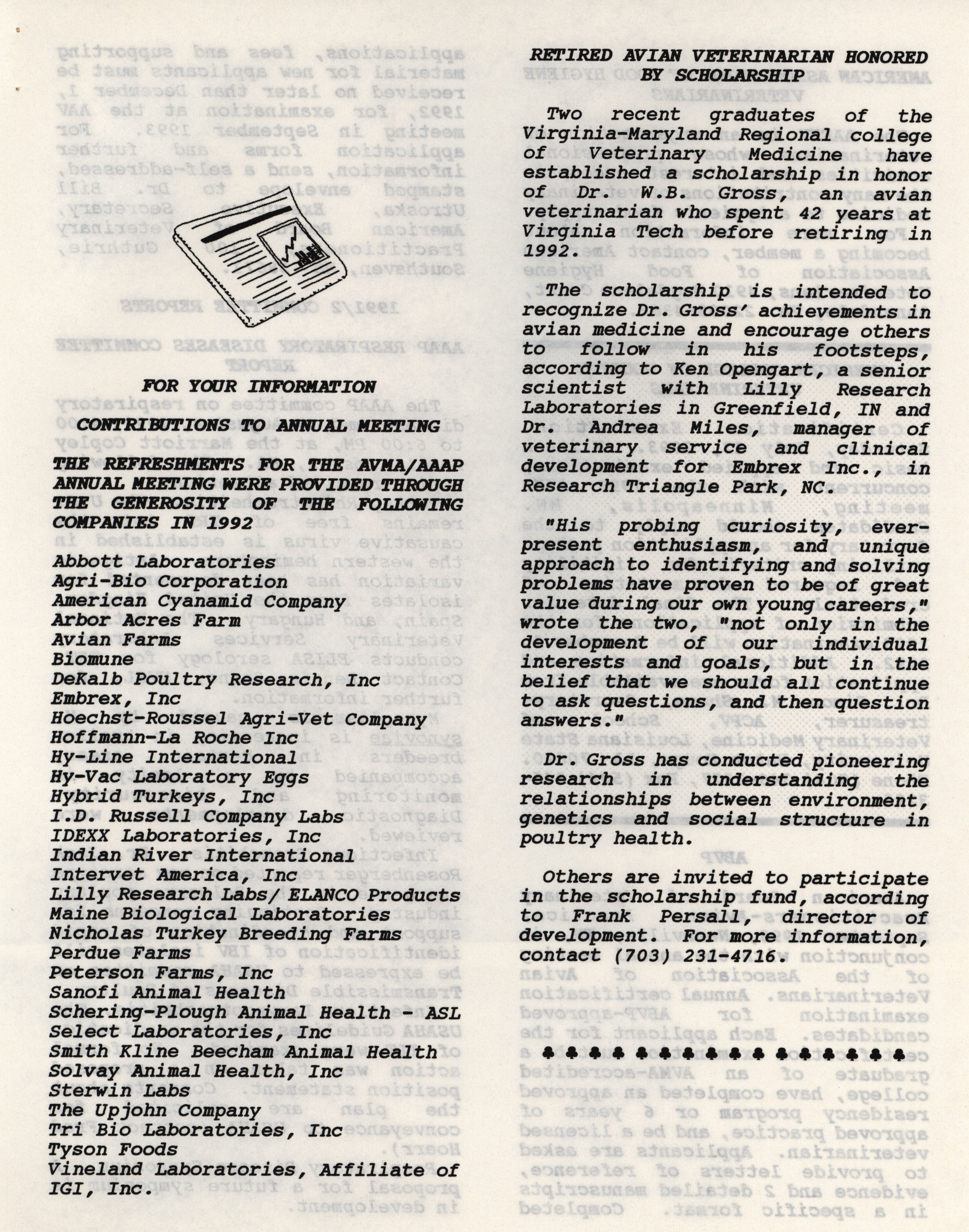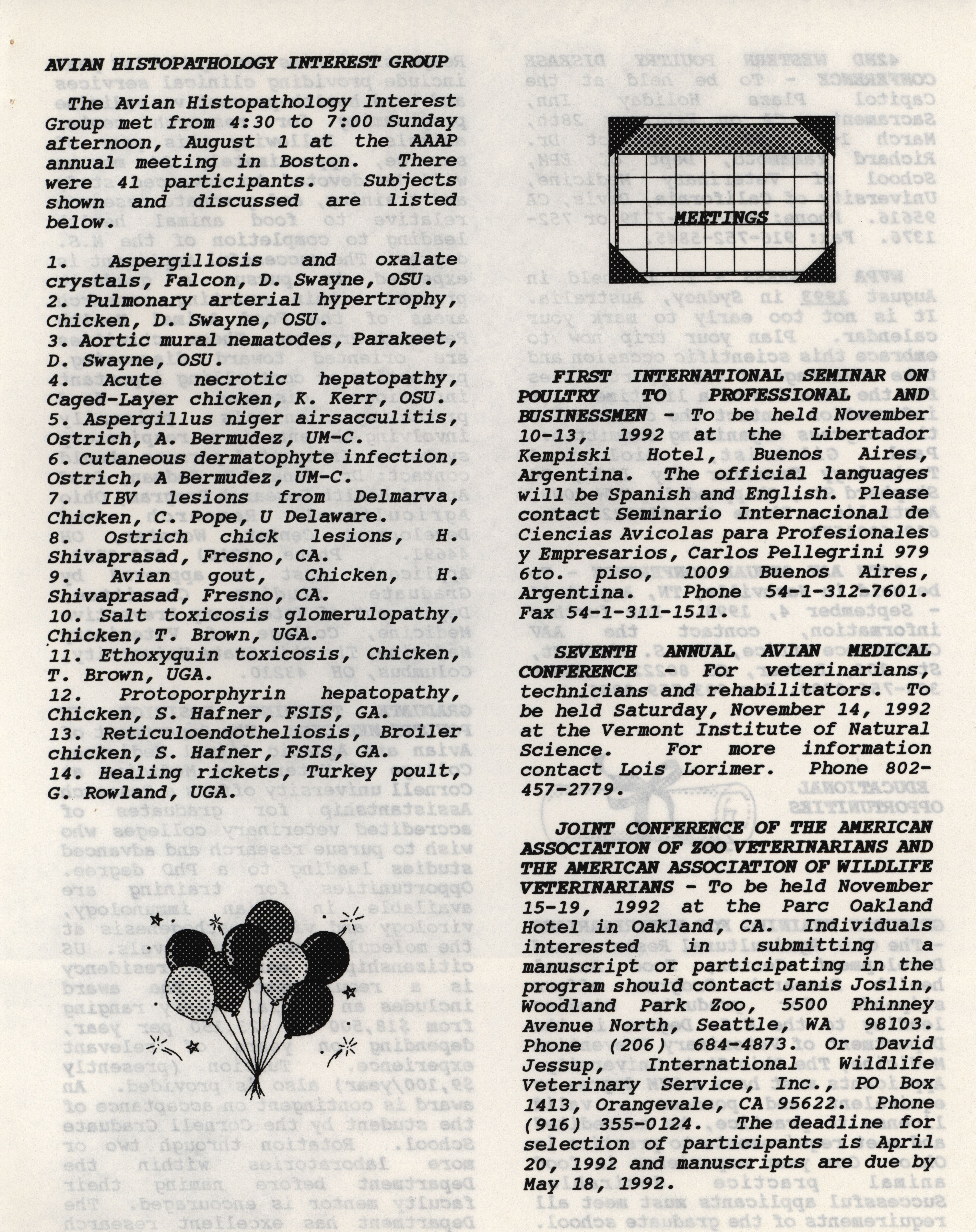 - "AAAP newsletter, September 16, 1992", American Association of Avian Pathologists Collection, Iowa State University Library Digital Collections
