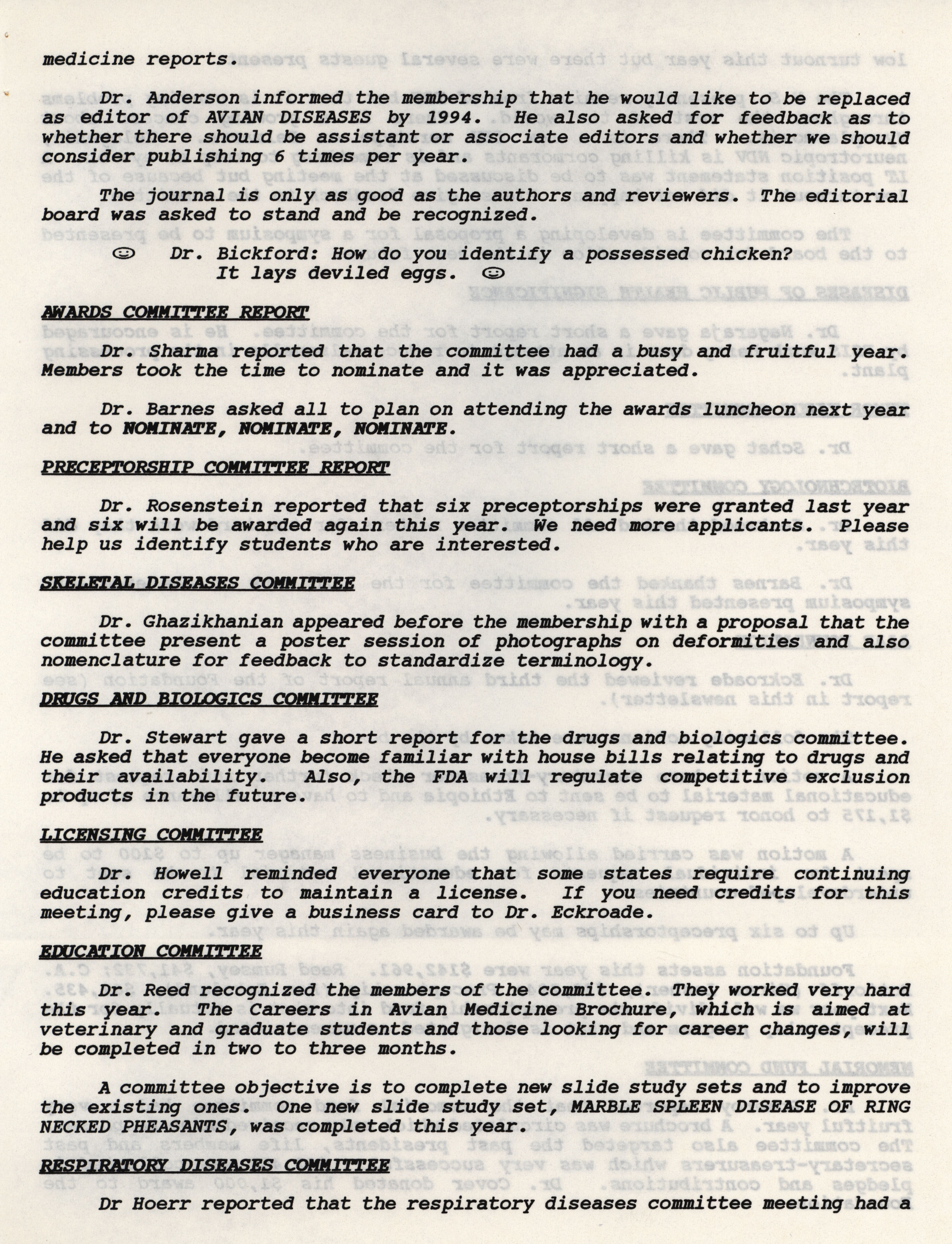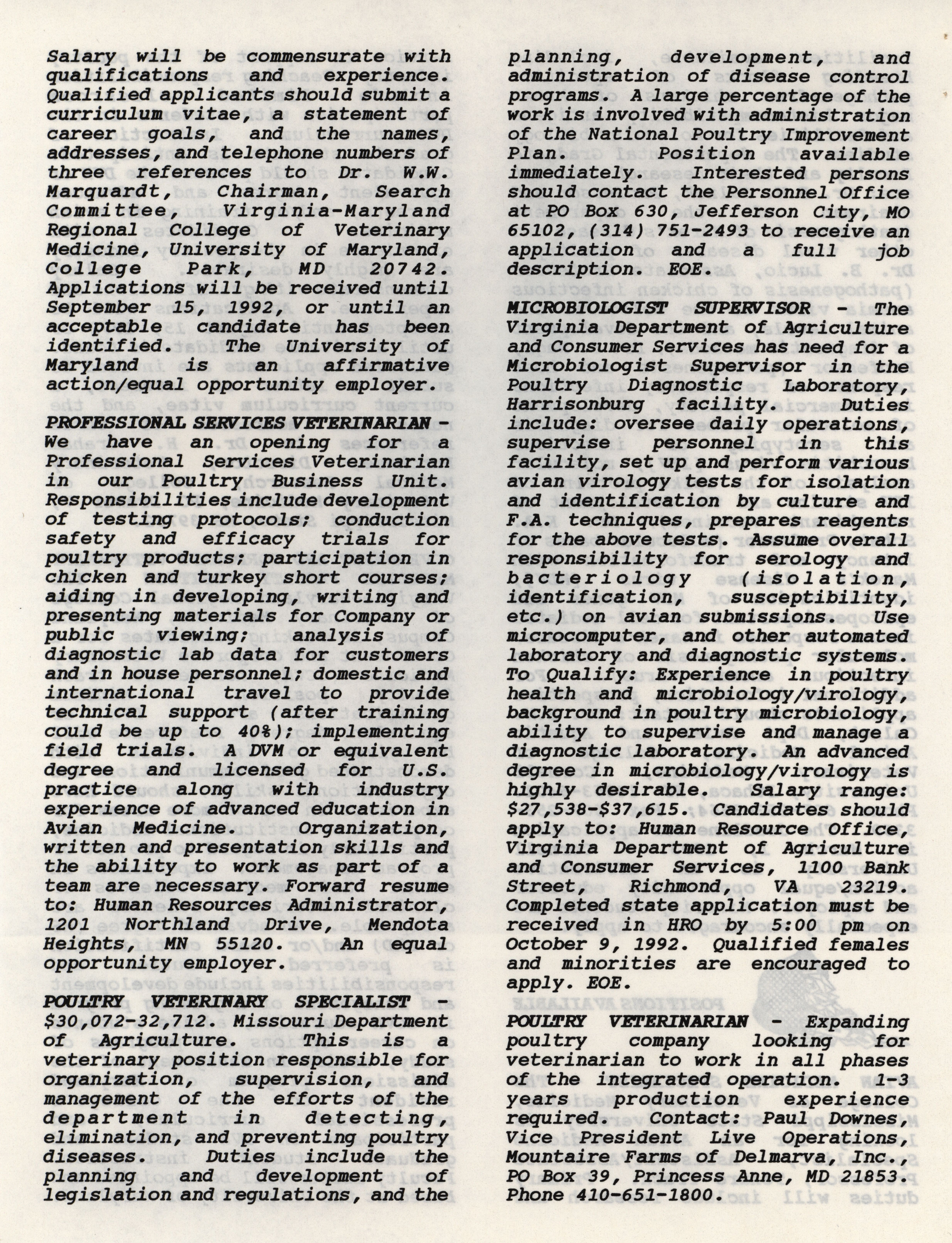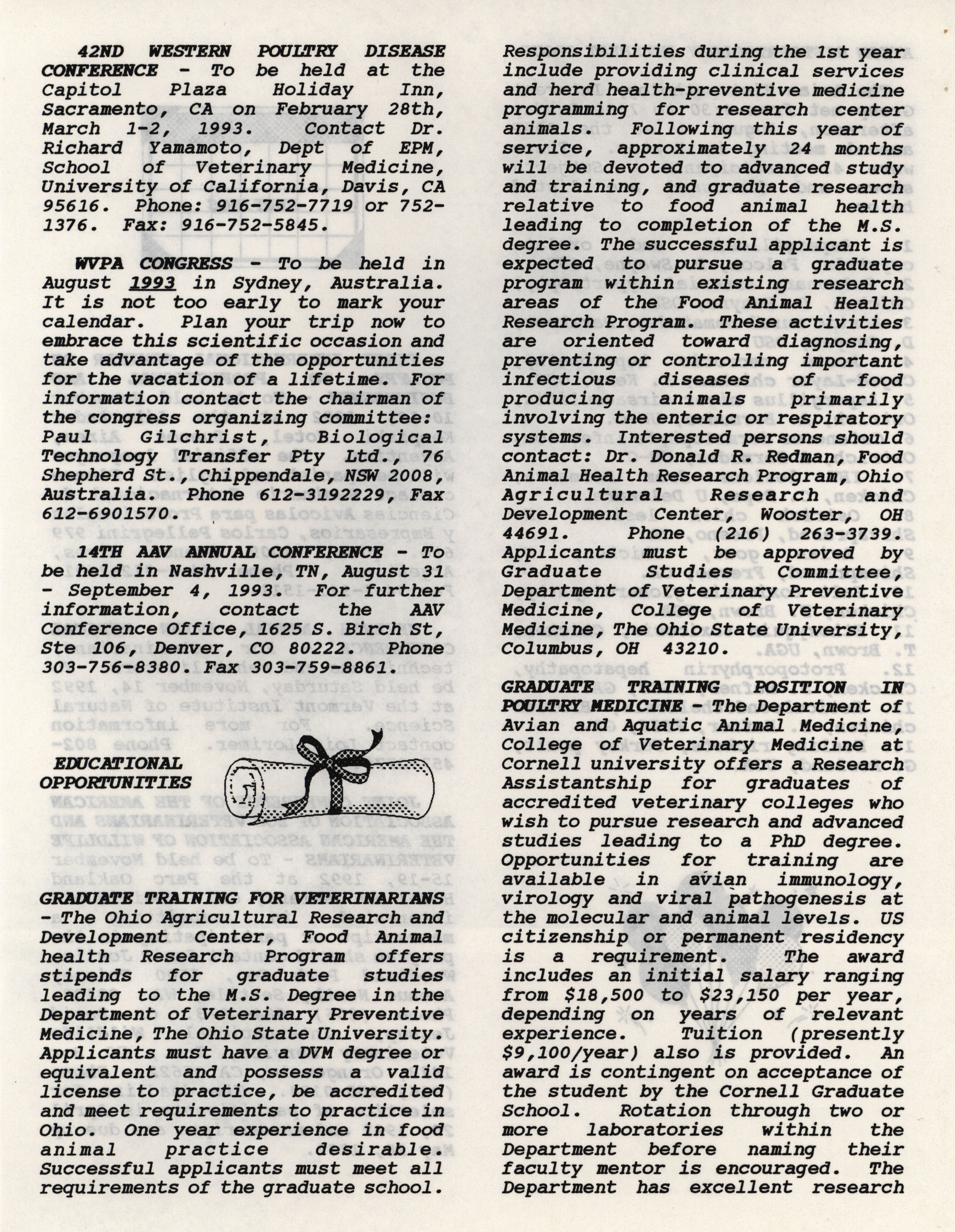 - "AAAP newsletter, September 16, 1992", American Association of Avian Pathologists Collection, Iowa State University Library Digital Collections