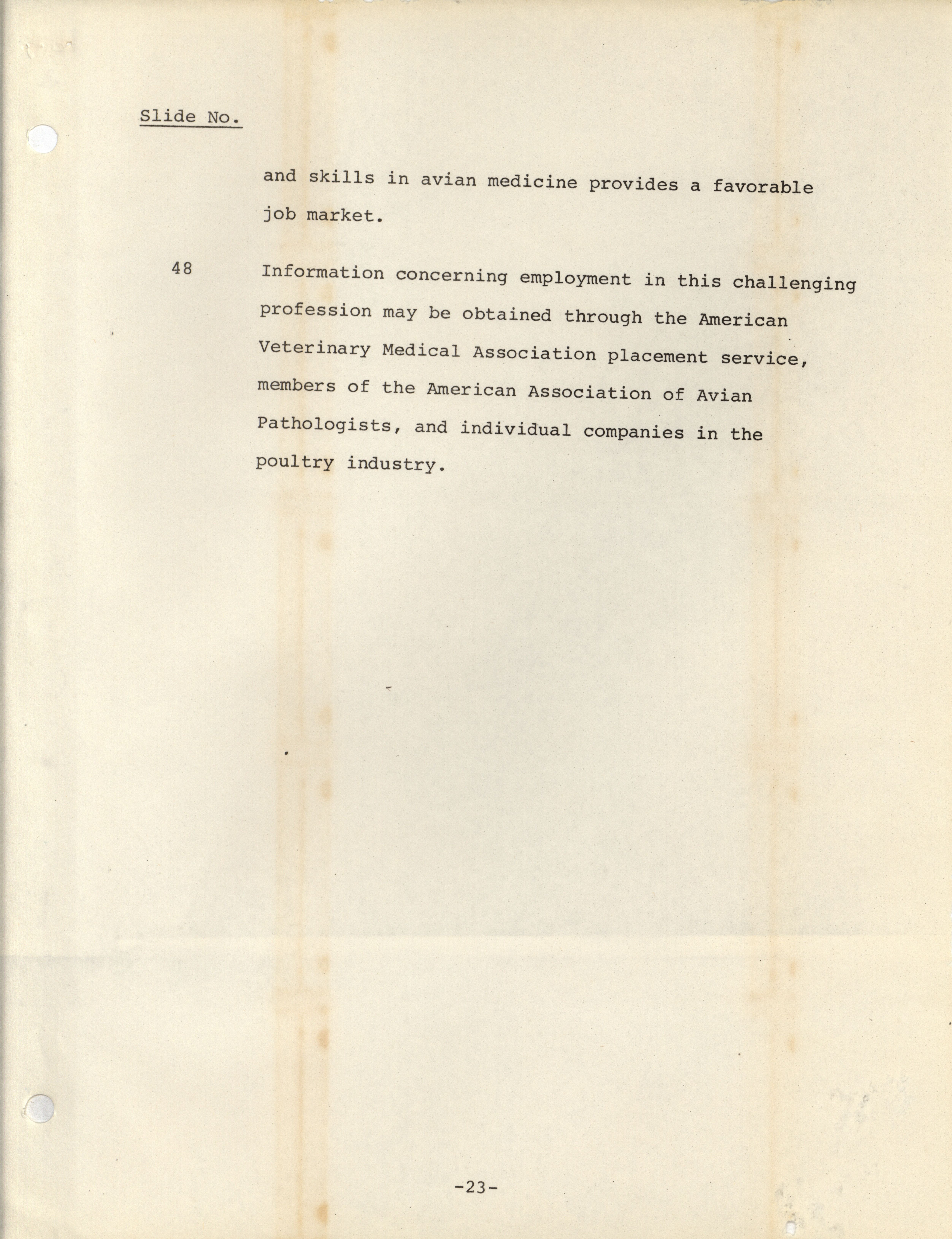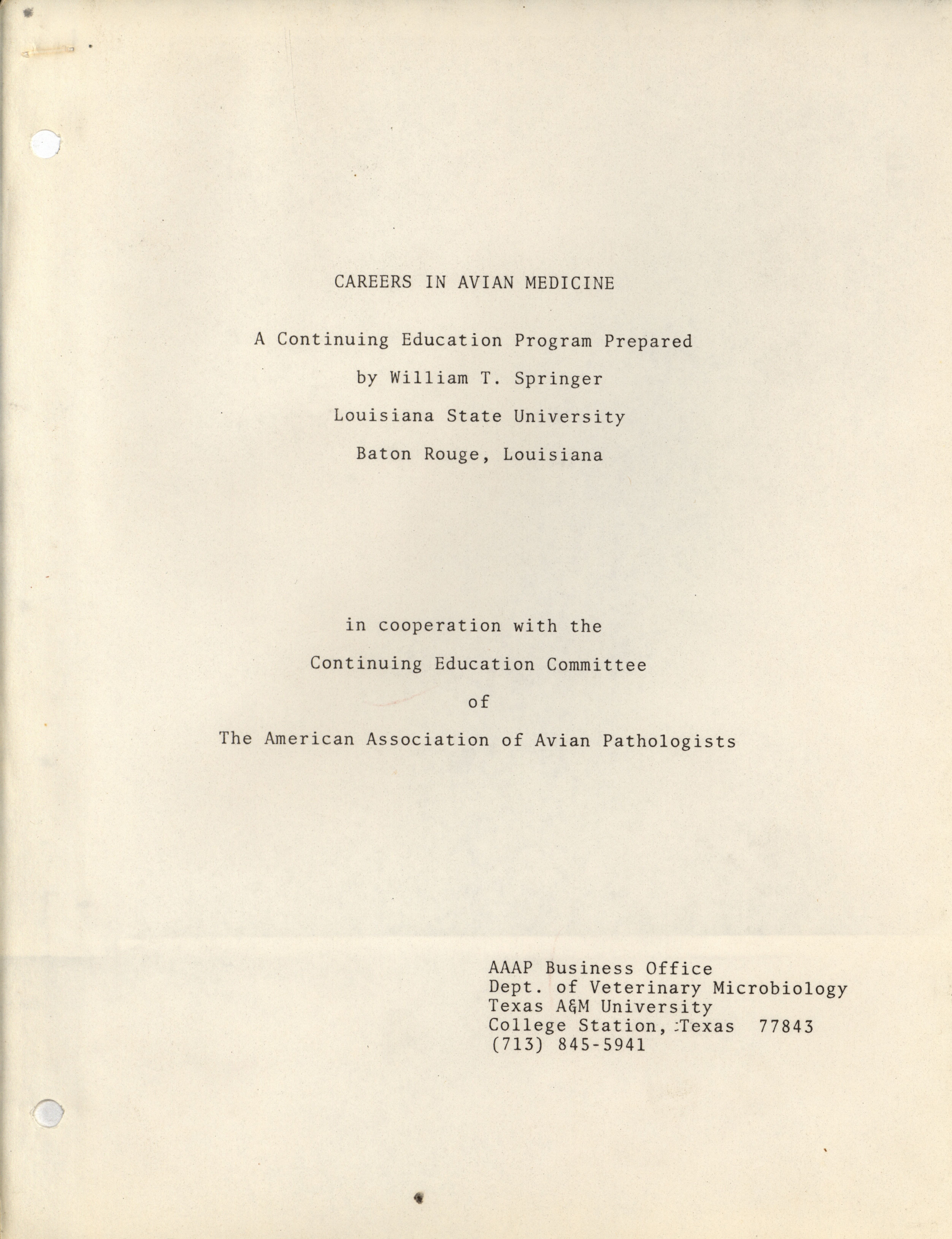 - "American Association of Avian Pathologists careers in avian medicine continuing education program", American Association of Avian Pathologists Collection, Iowa State University Library Digital Collections