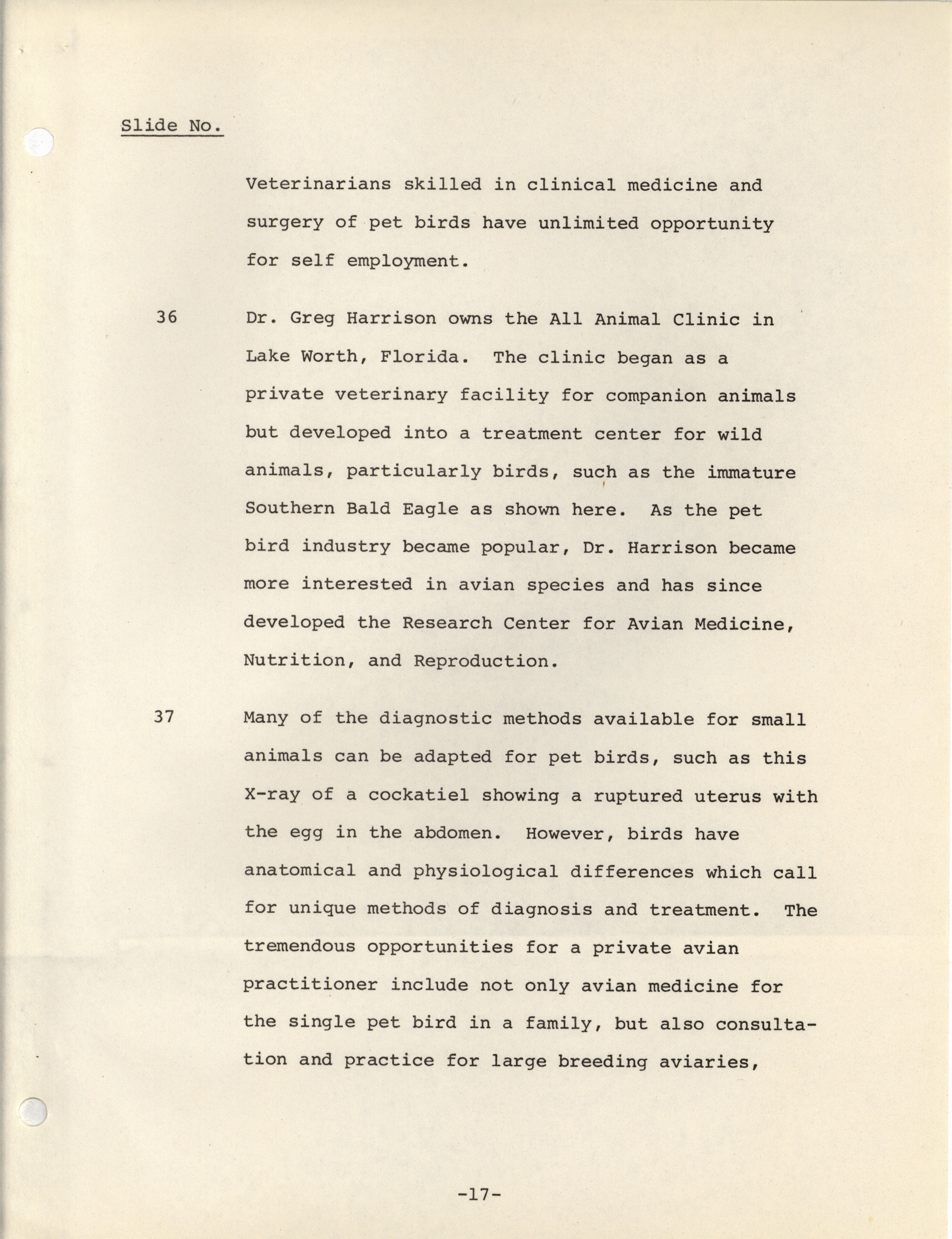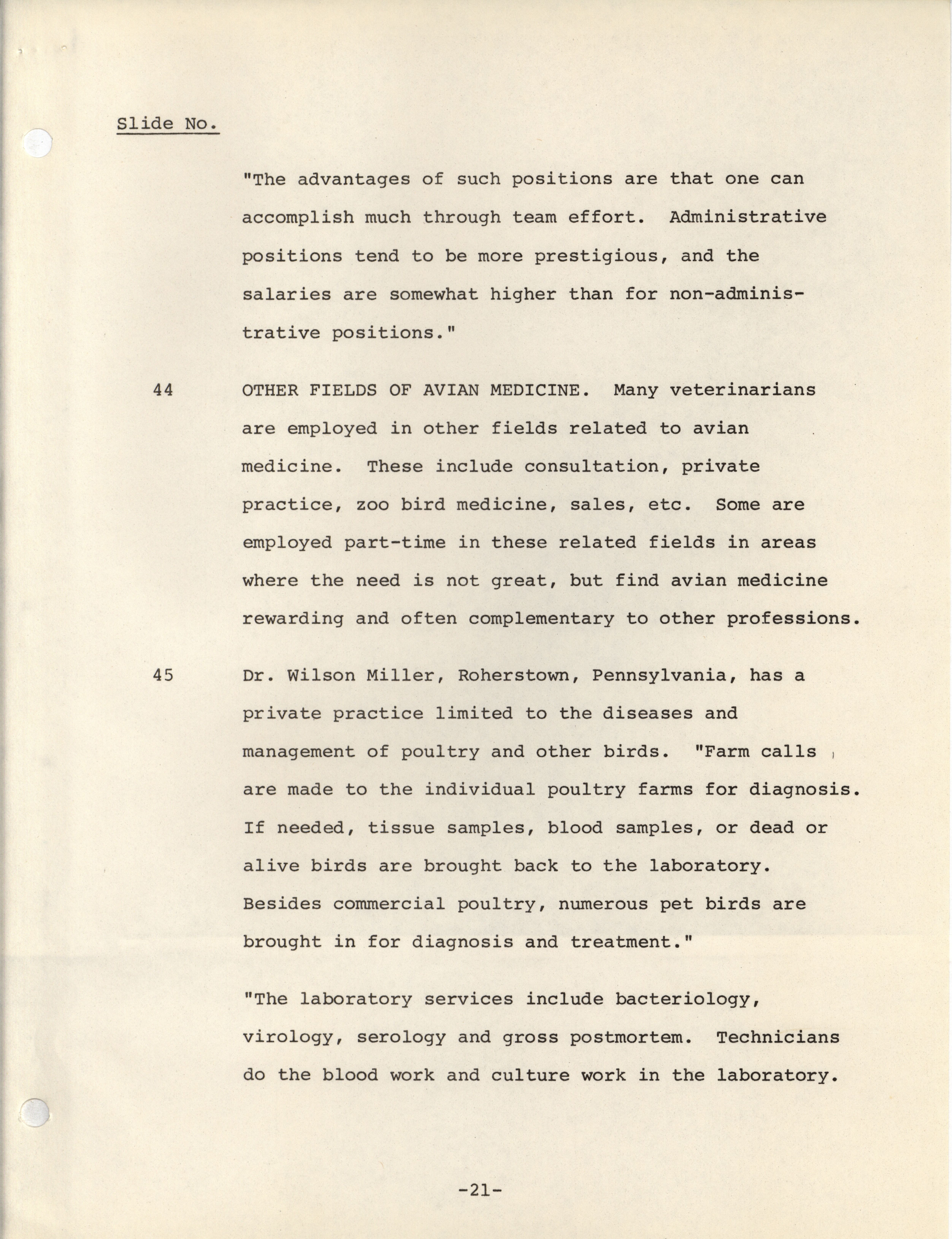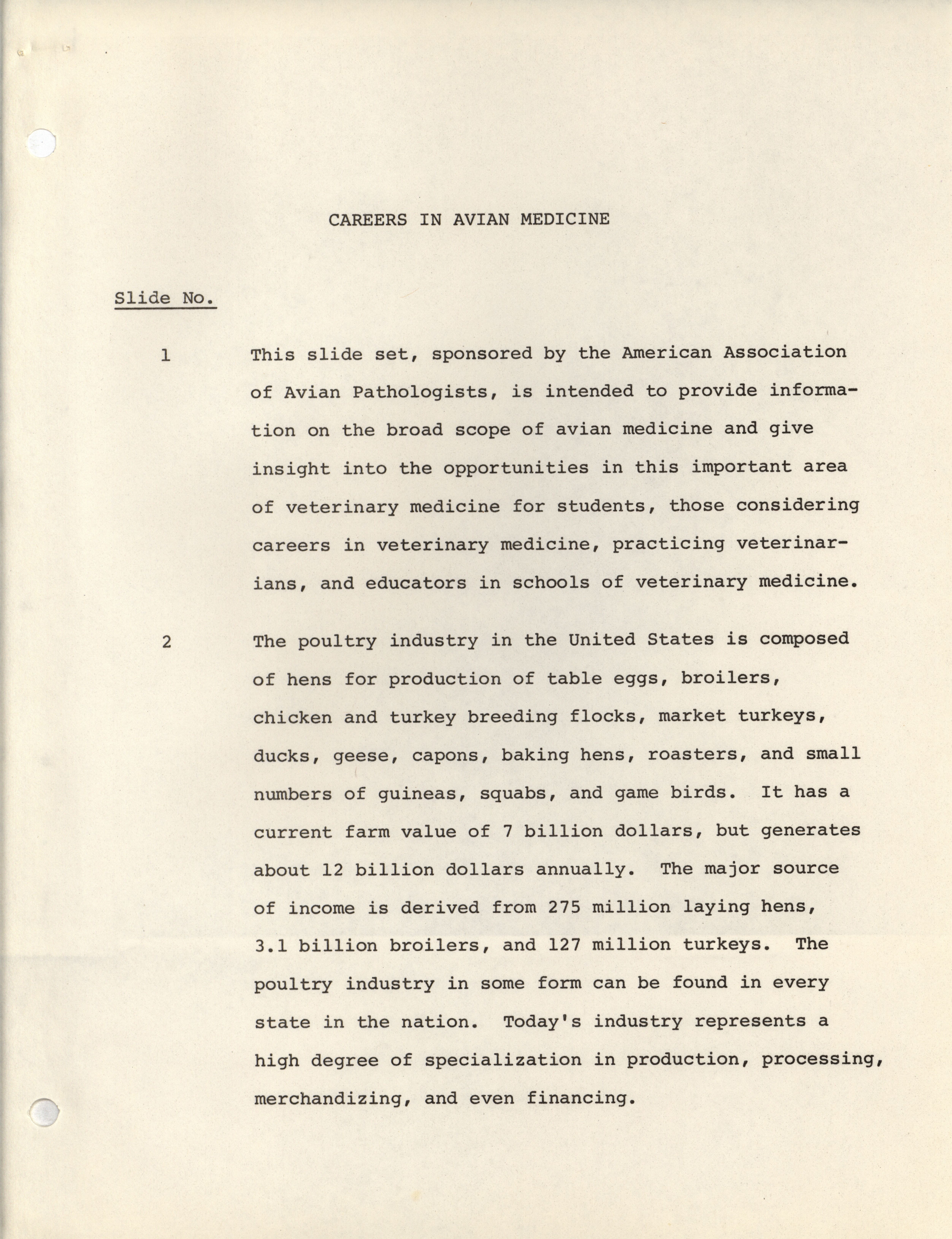 - Notes meant to accompany a slideshow presenting the possible career paths of avian medicinal practitioners.