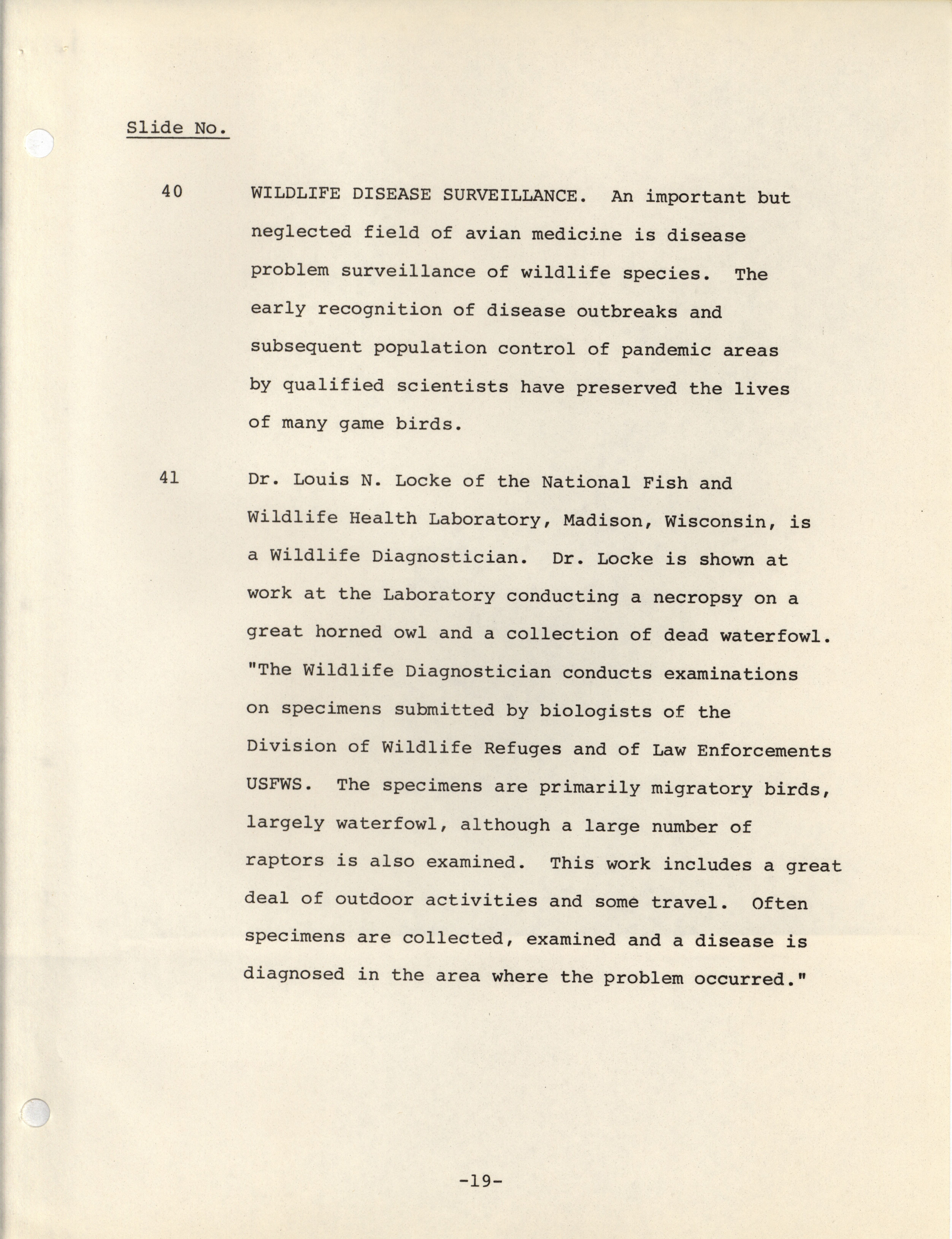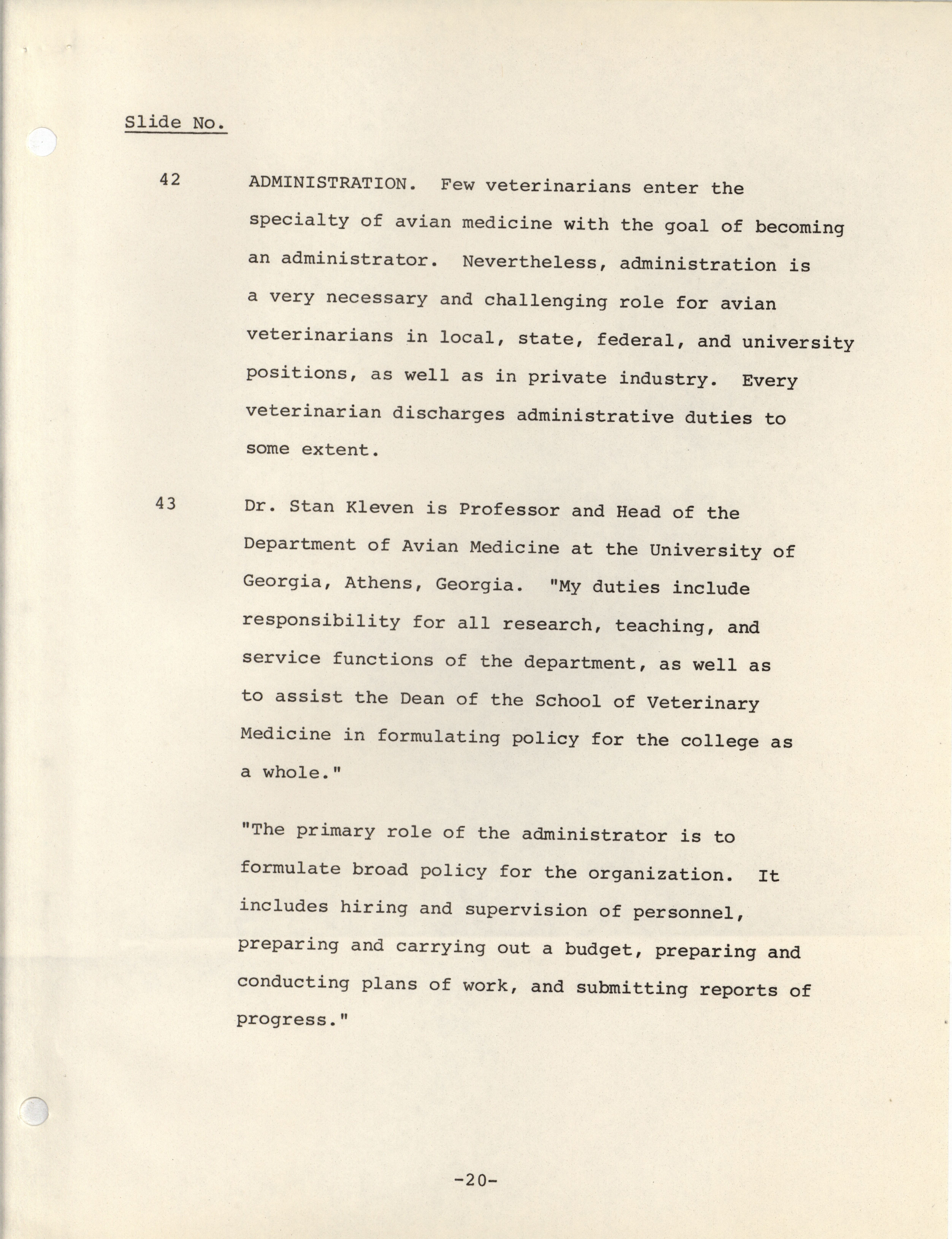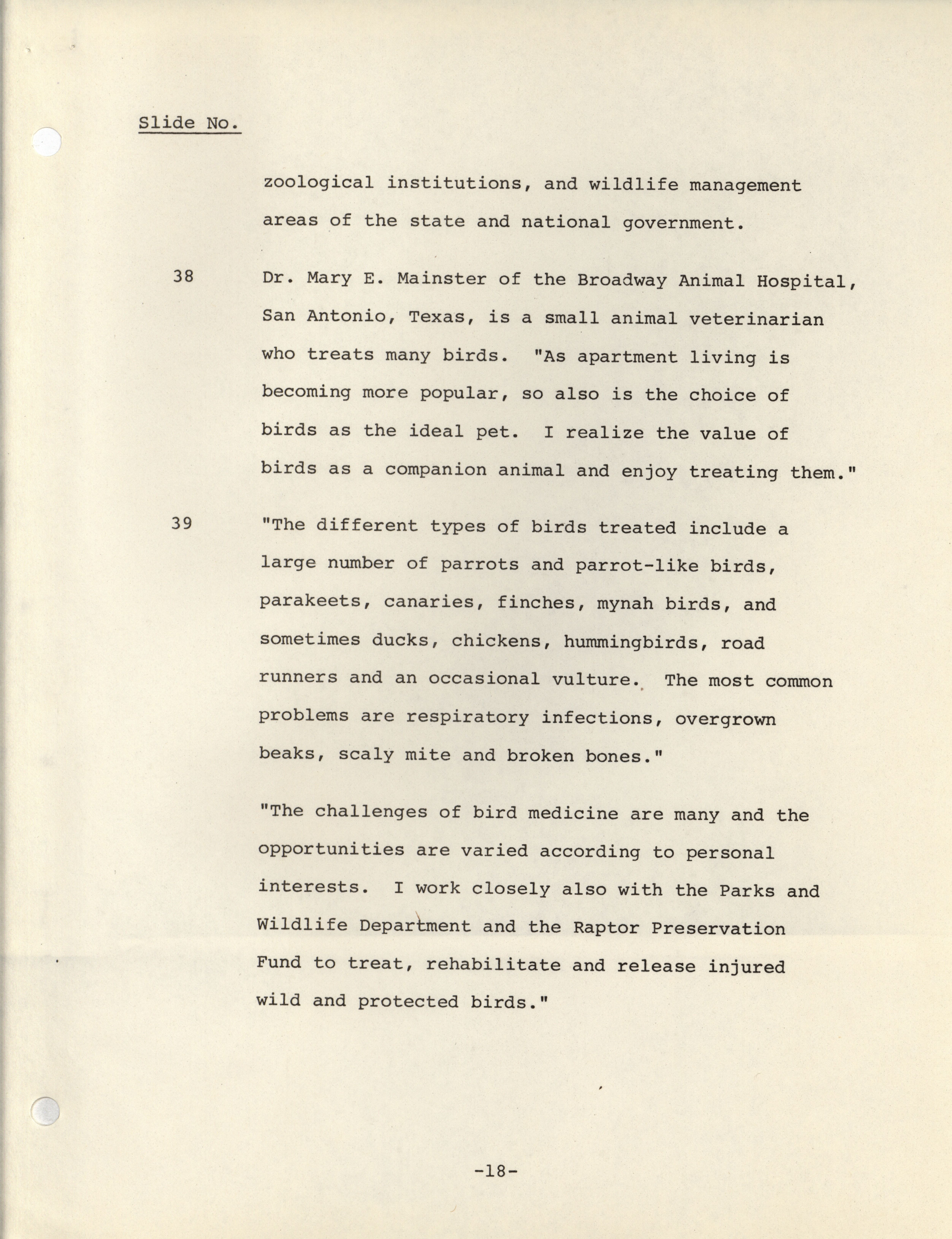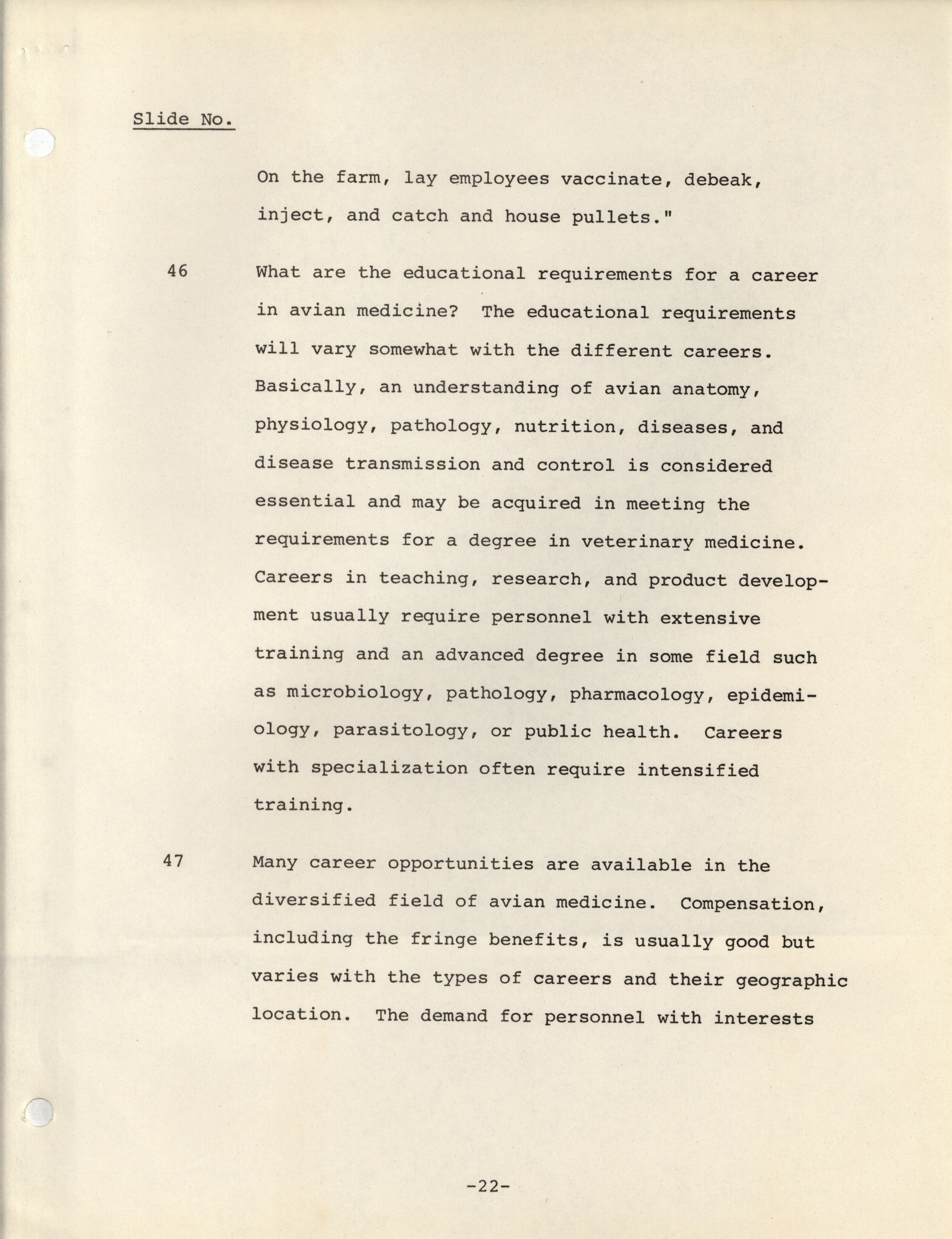 - Notes meant to accompany a slideshow presenting the possible career paths of avian medicinal practitioners.