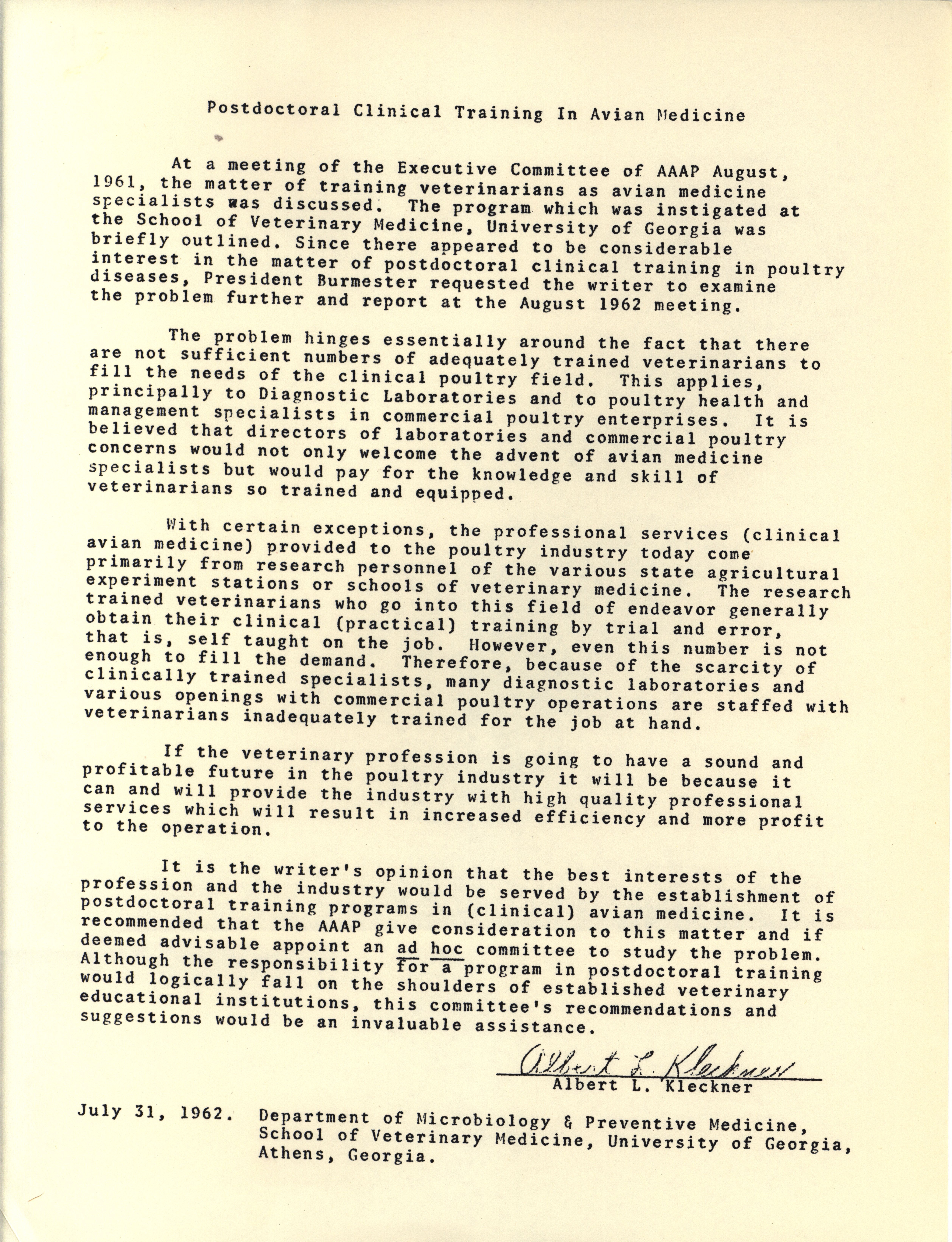 - Report from the American Association of Avian Pathologists leukosis committee from August 13, 1962 describing the committee's actions from the past year and future objectives.