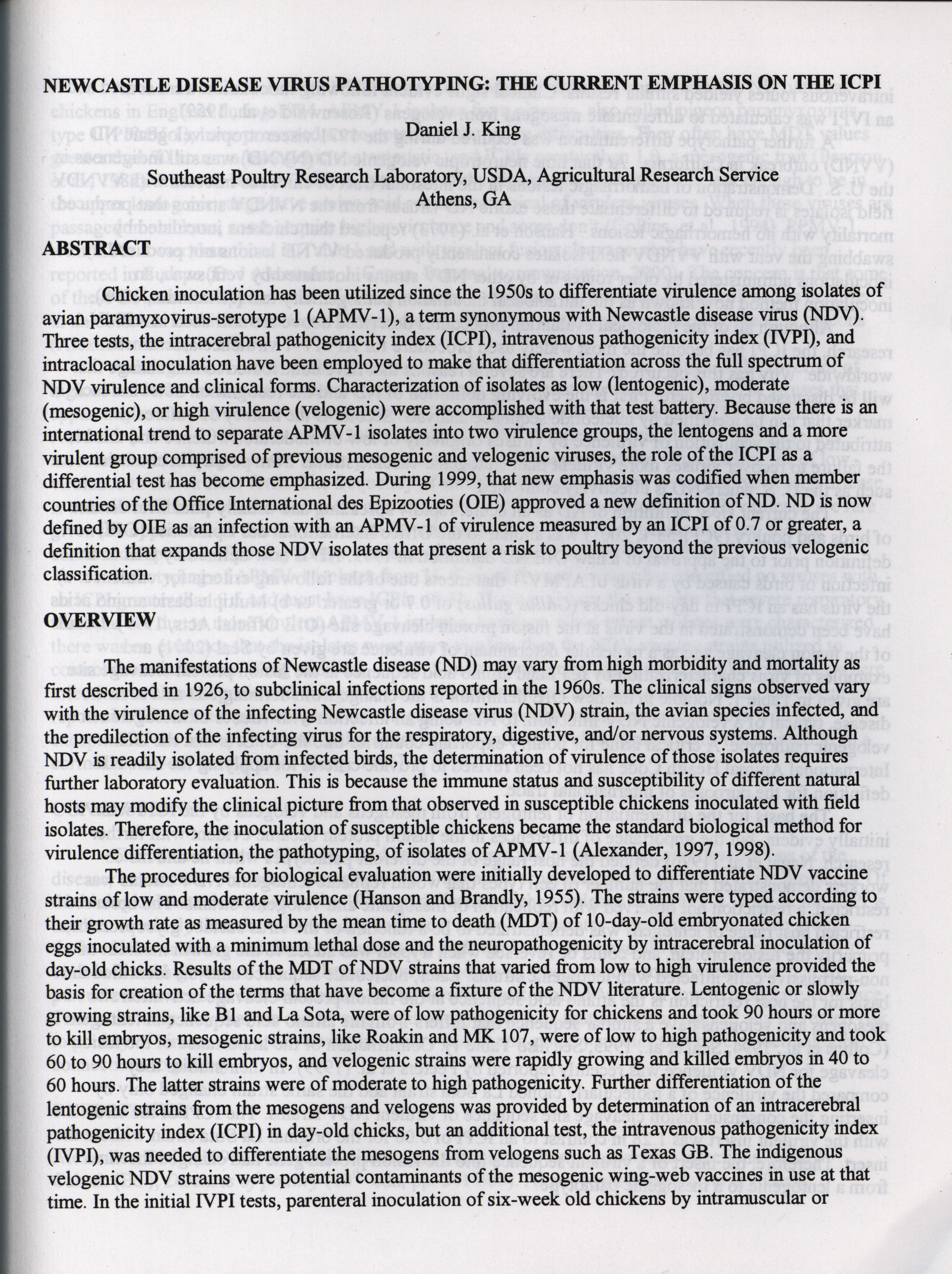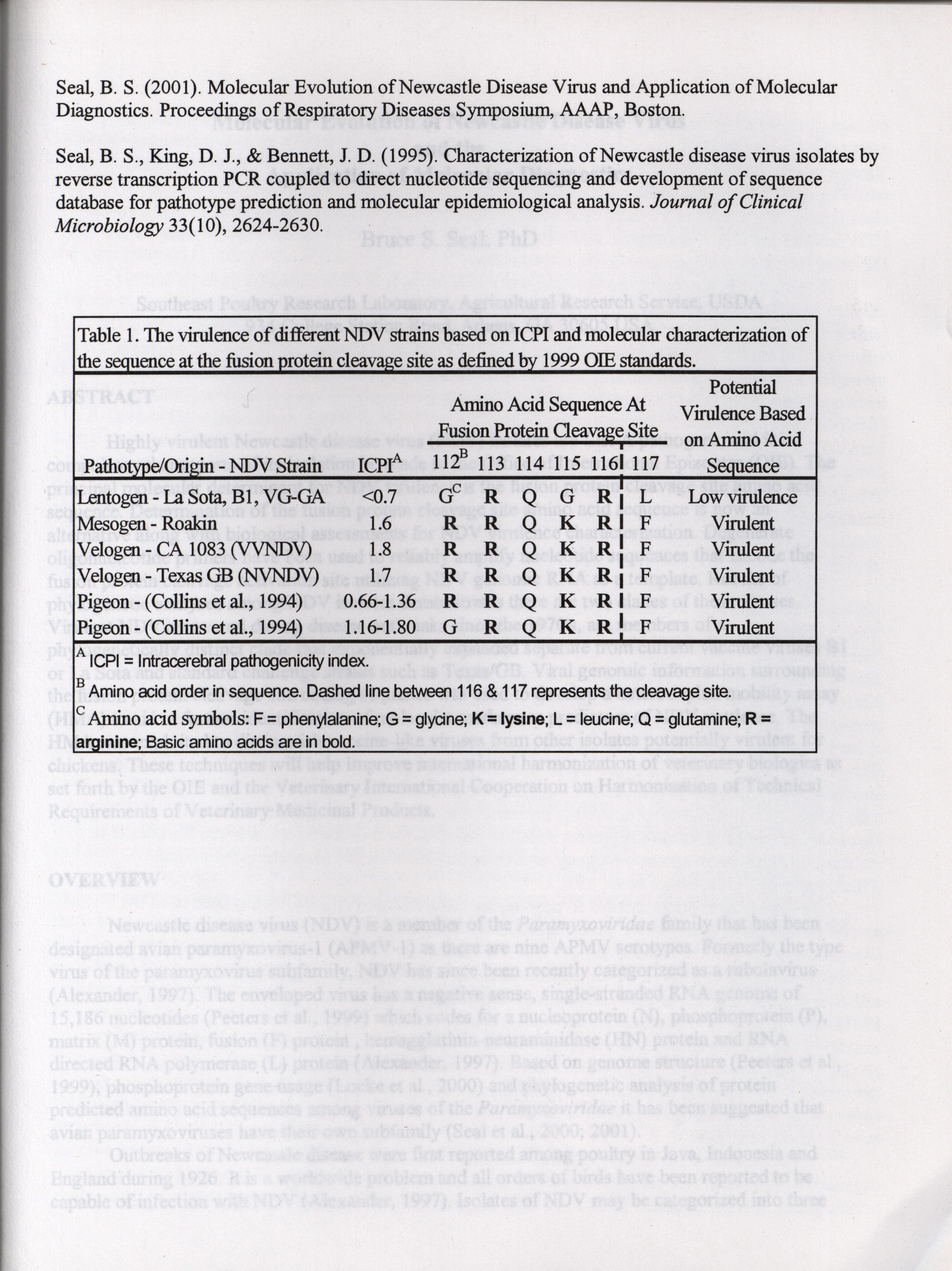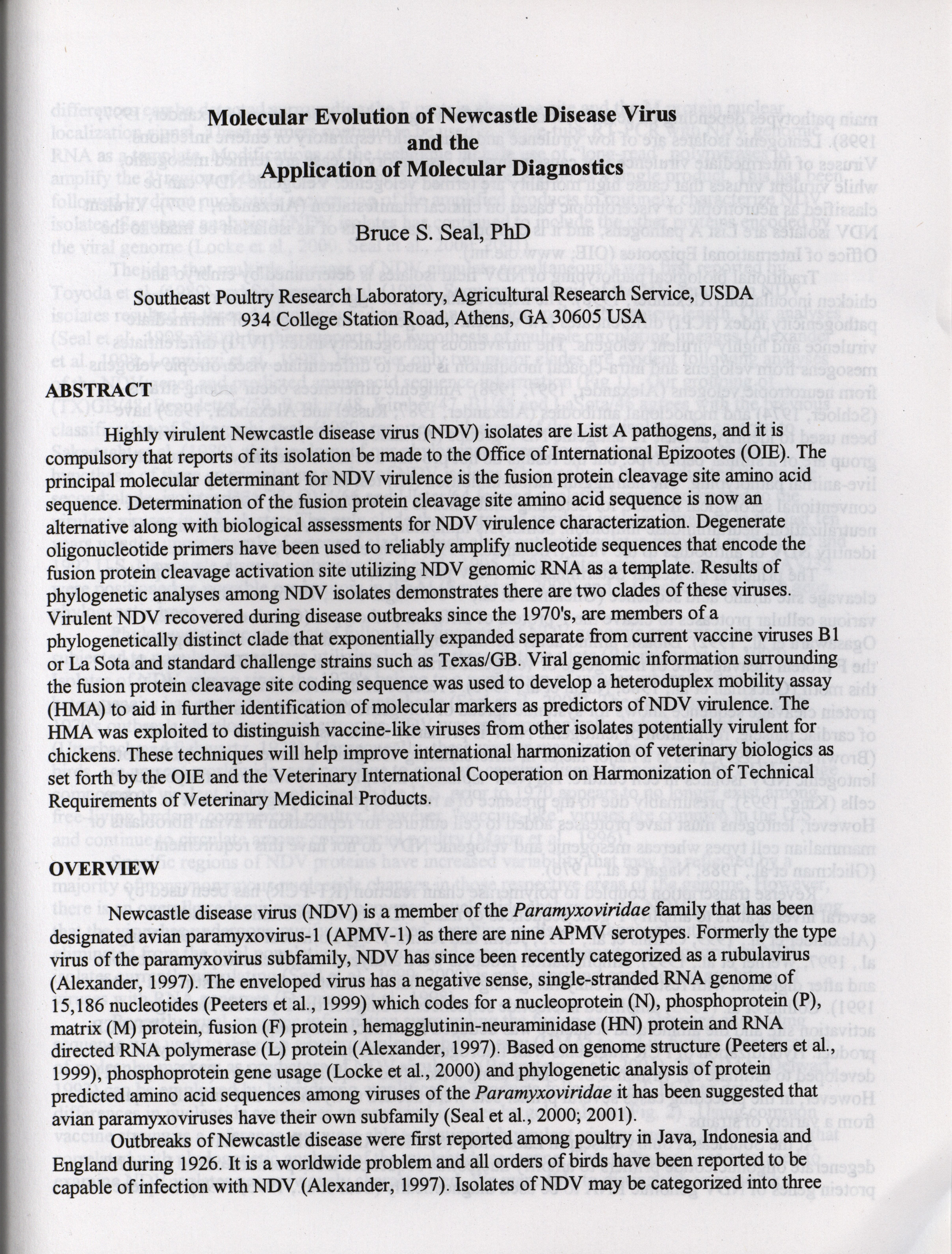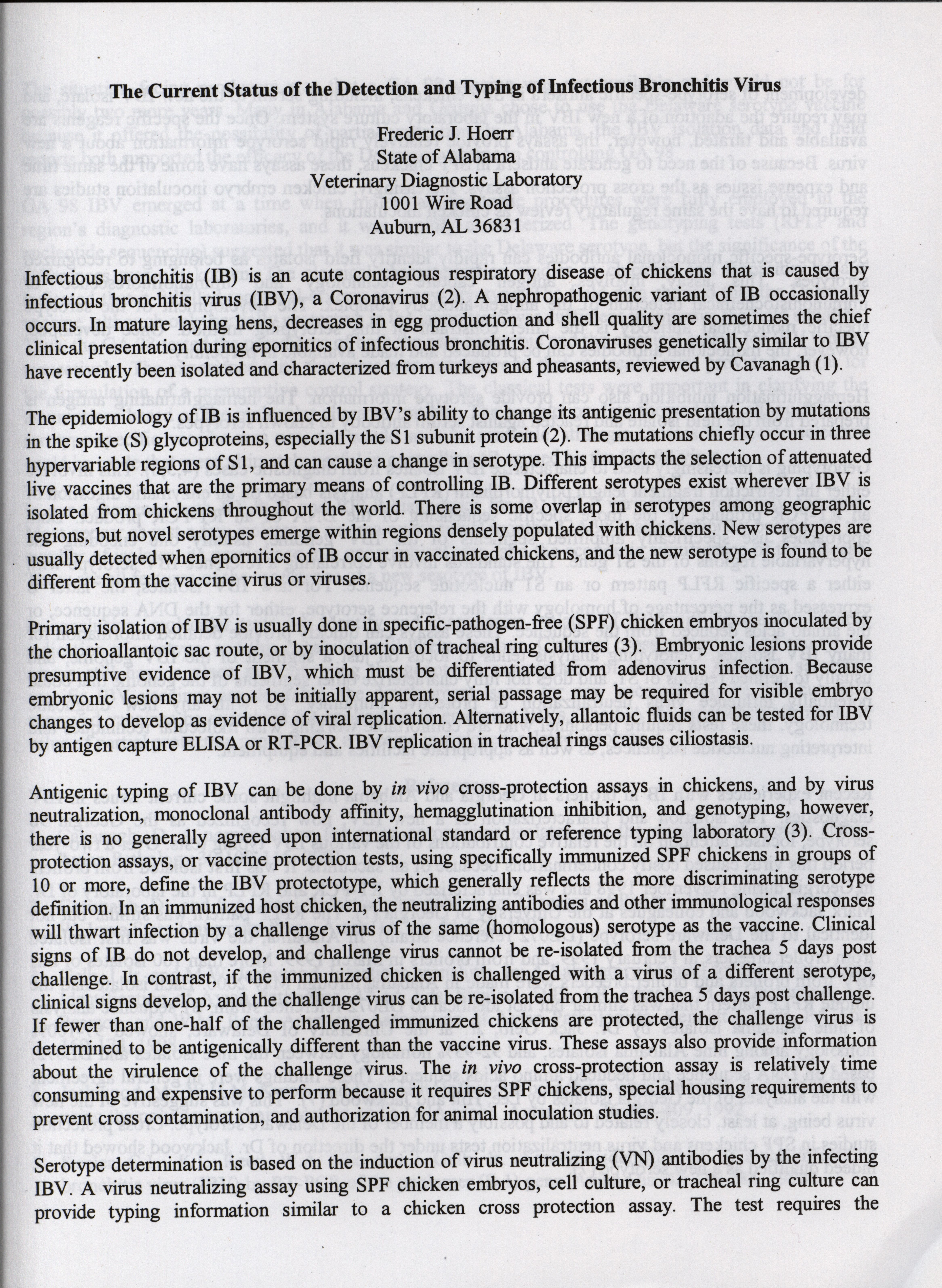American Association of Avian Pathologists respiratory diseases of poultry symposium 2001 Item Info