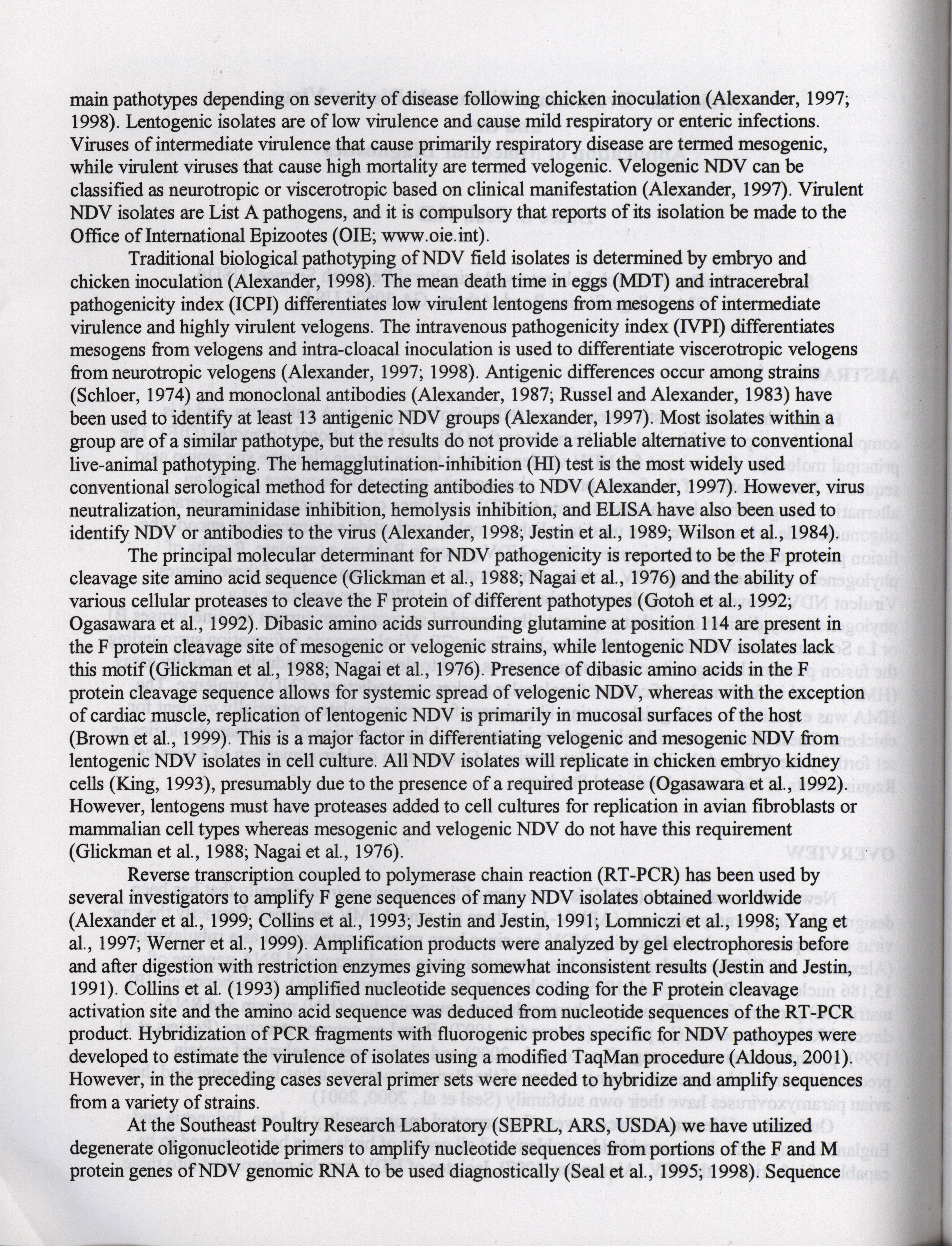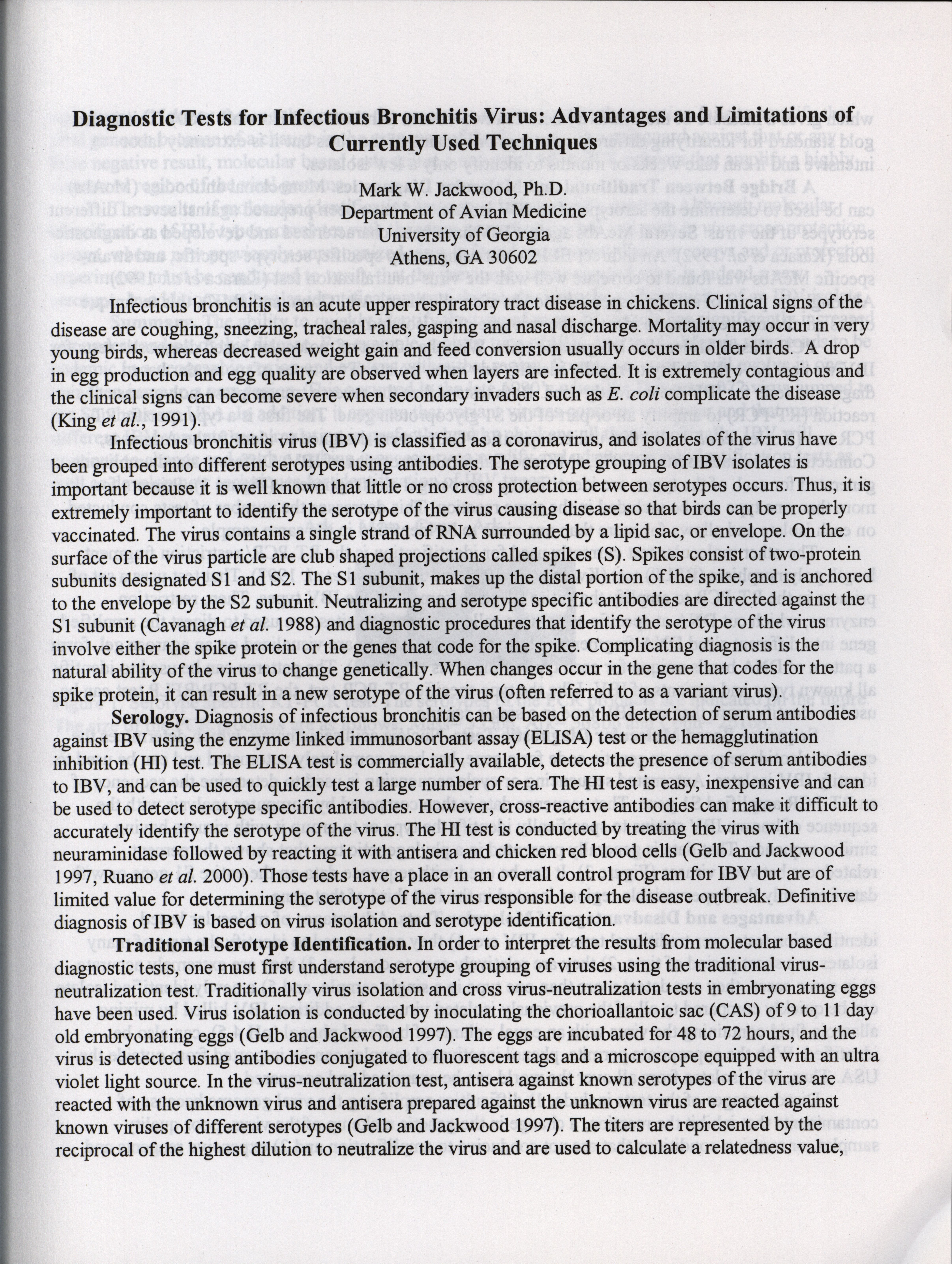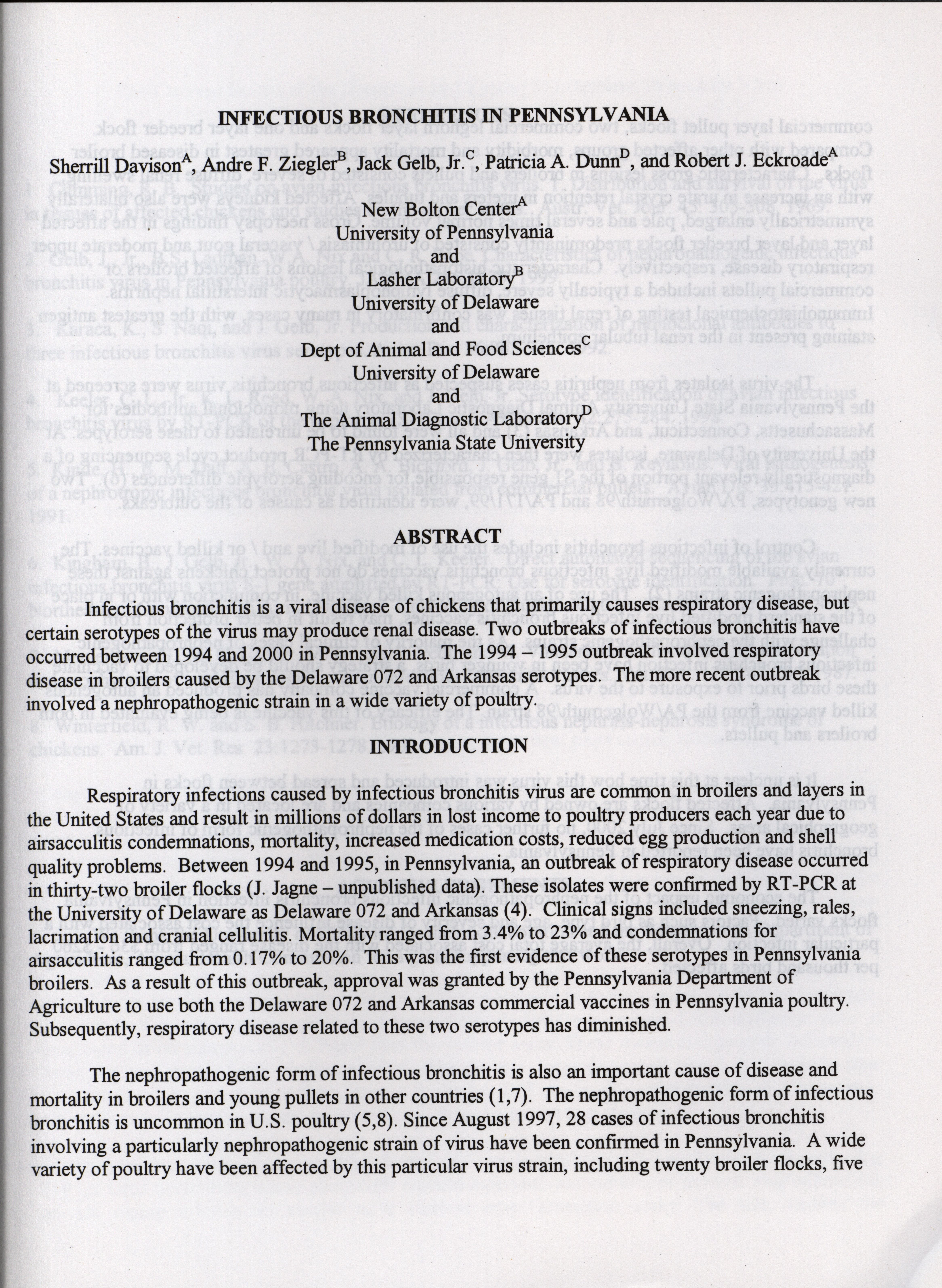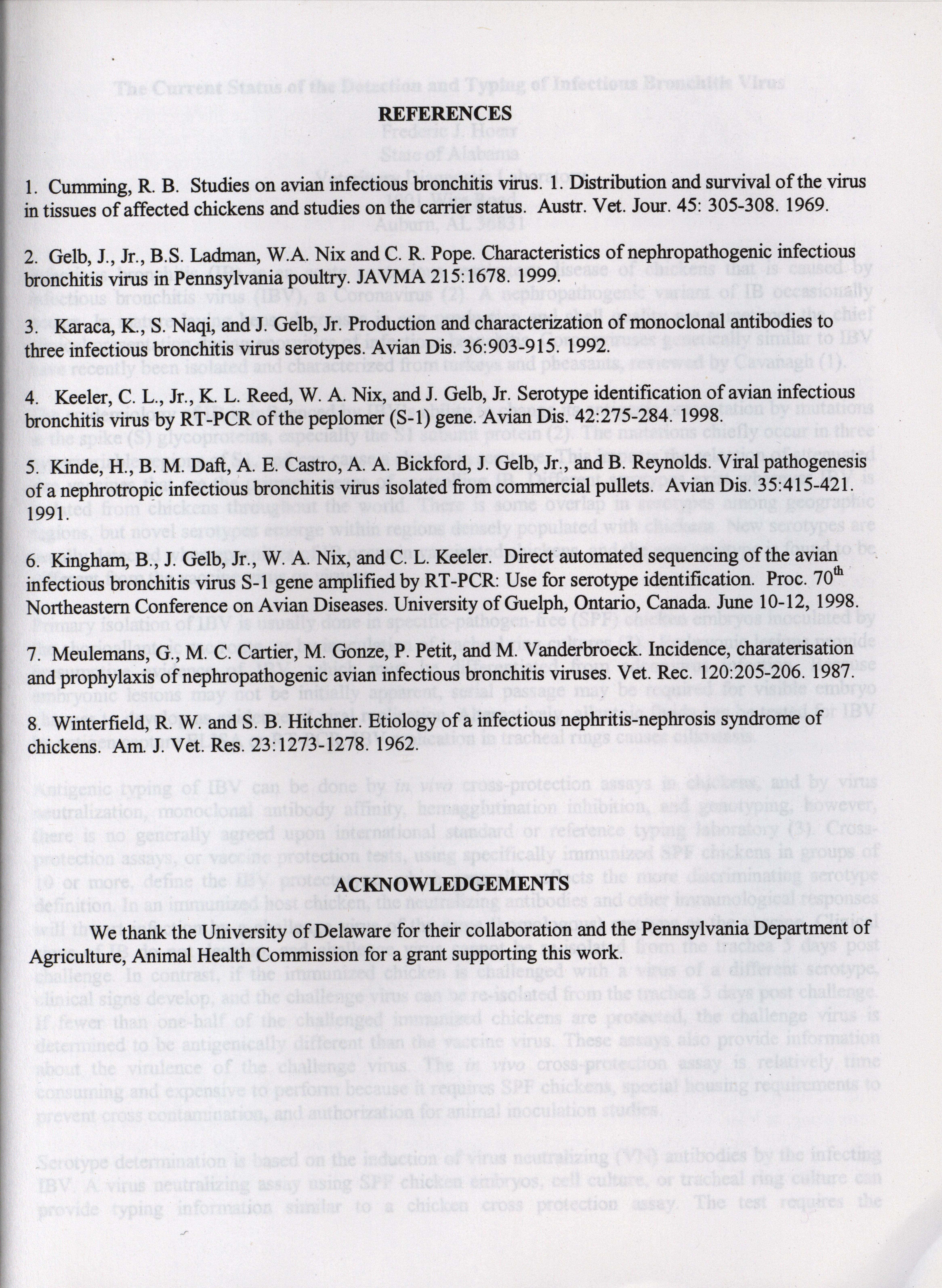 American Association of Avian Pathologists respiratory diseases of poultry symposium 2001 Item Info
