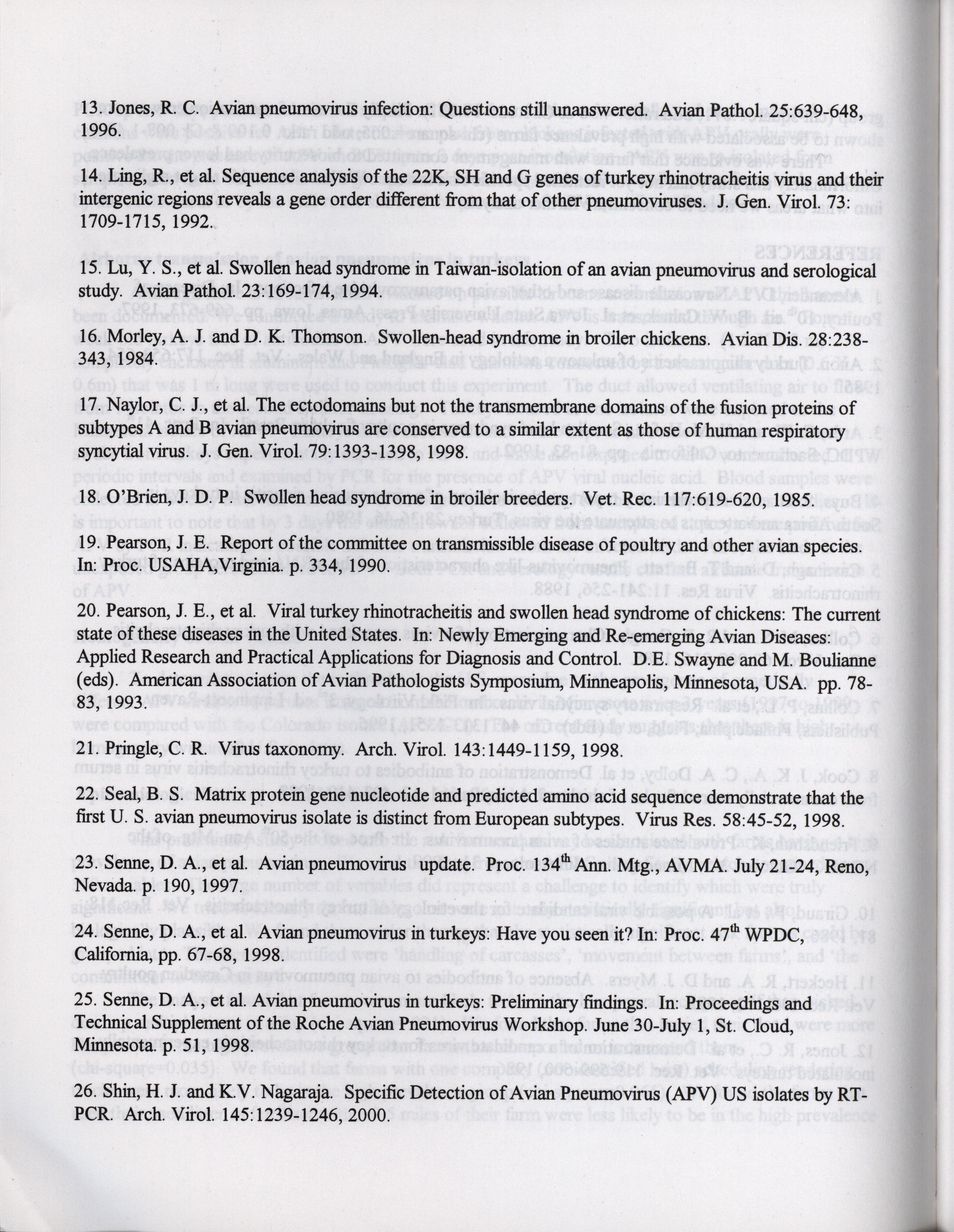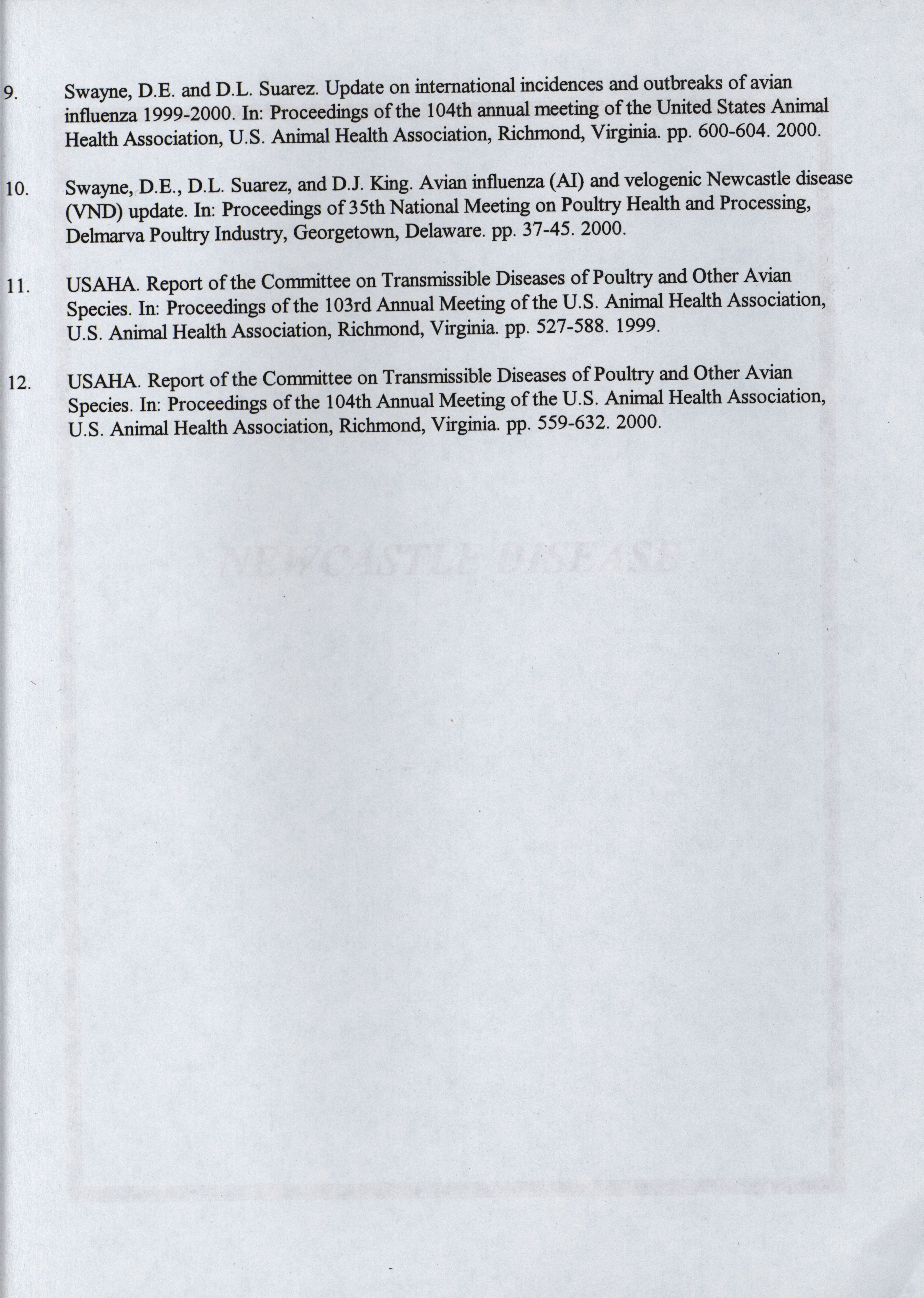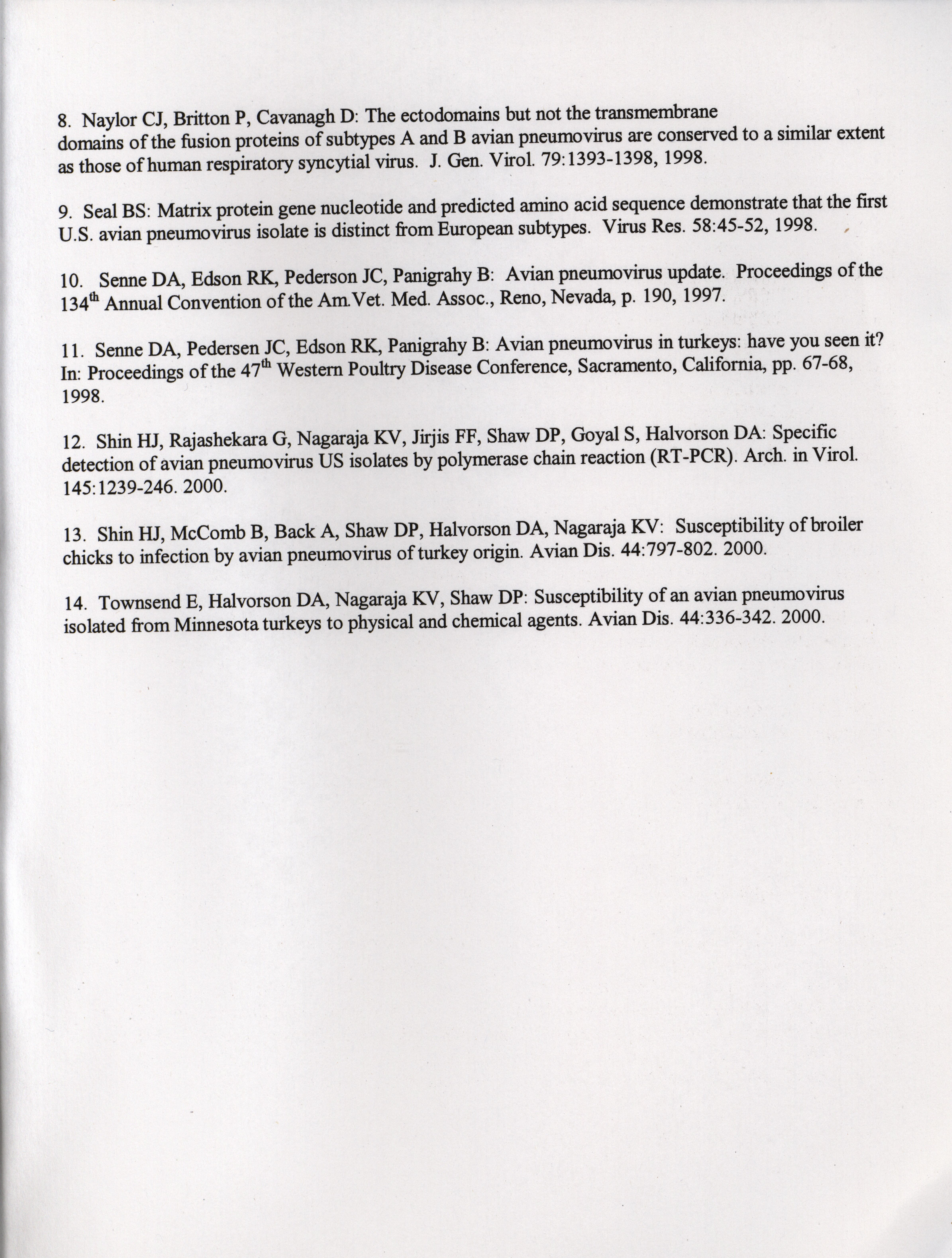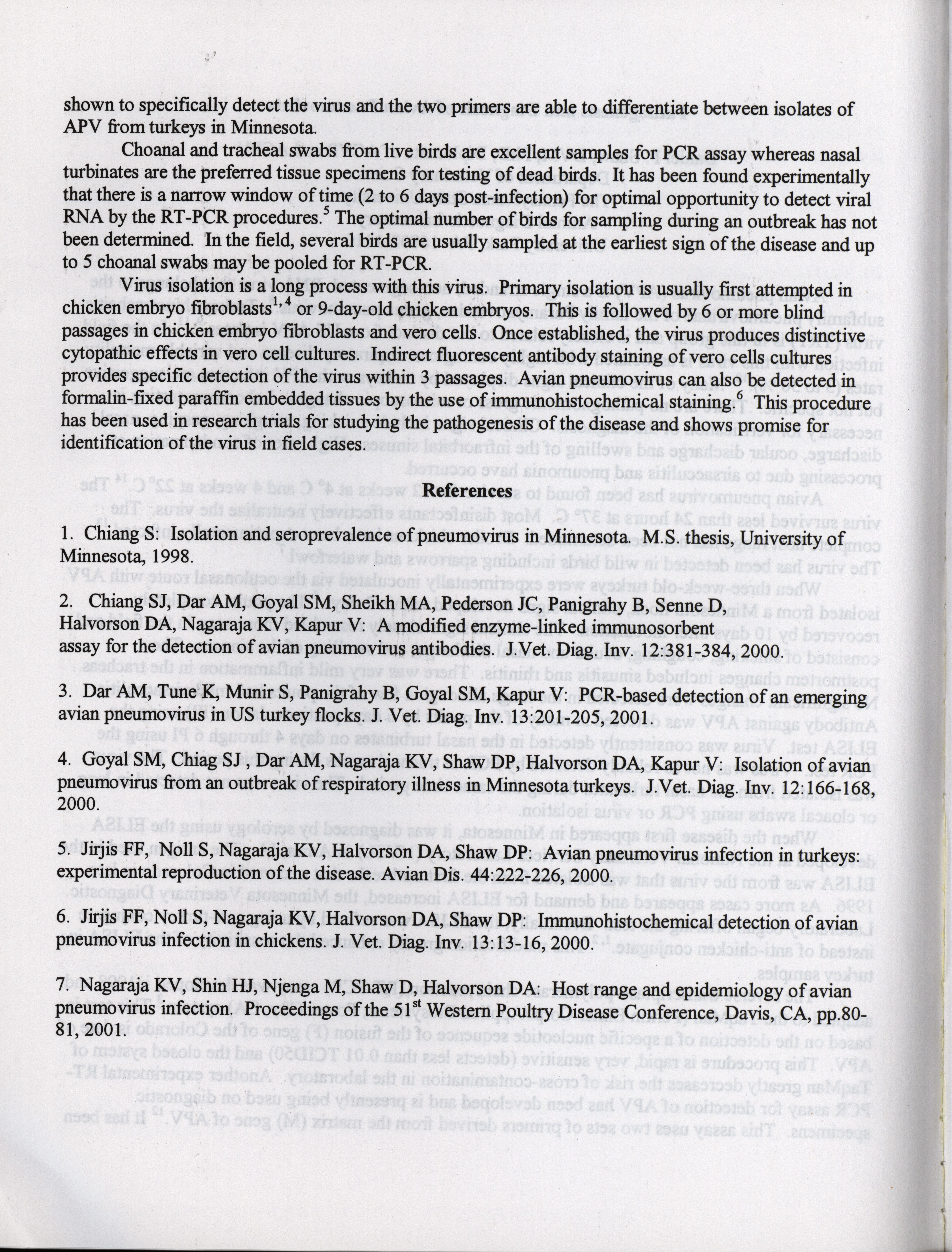 - "American Association of Avian Pathologists respiratory diseases of poultry symposium 2001", American Association of Avian Pathologists Collection, Iowa State University Library Digital Collections