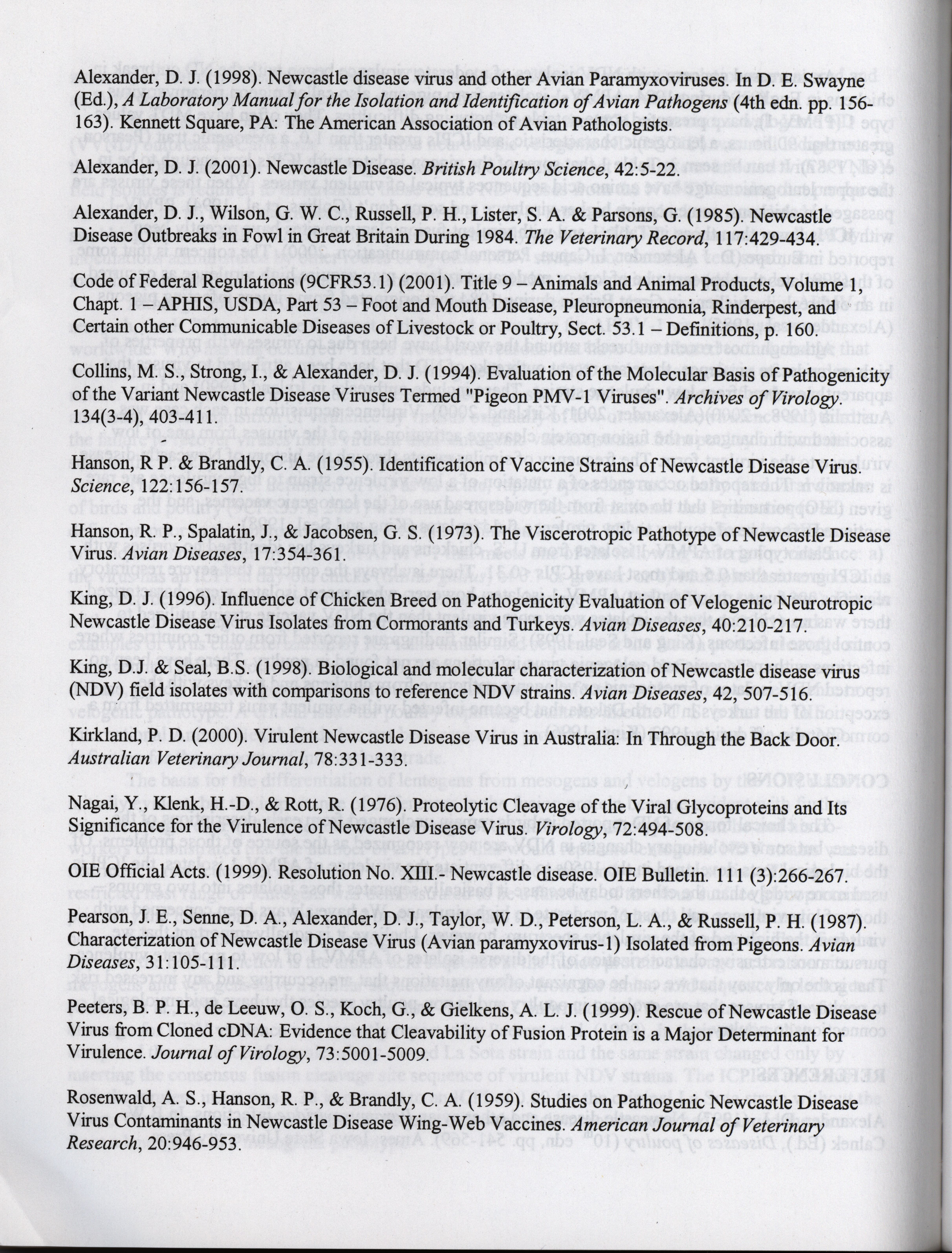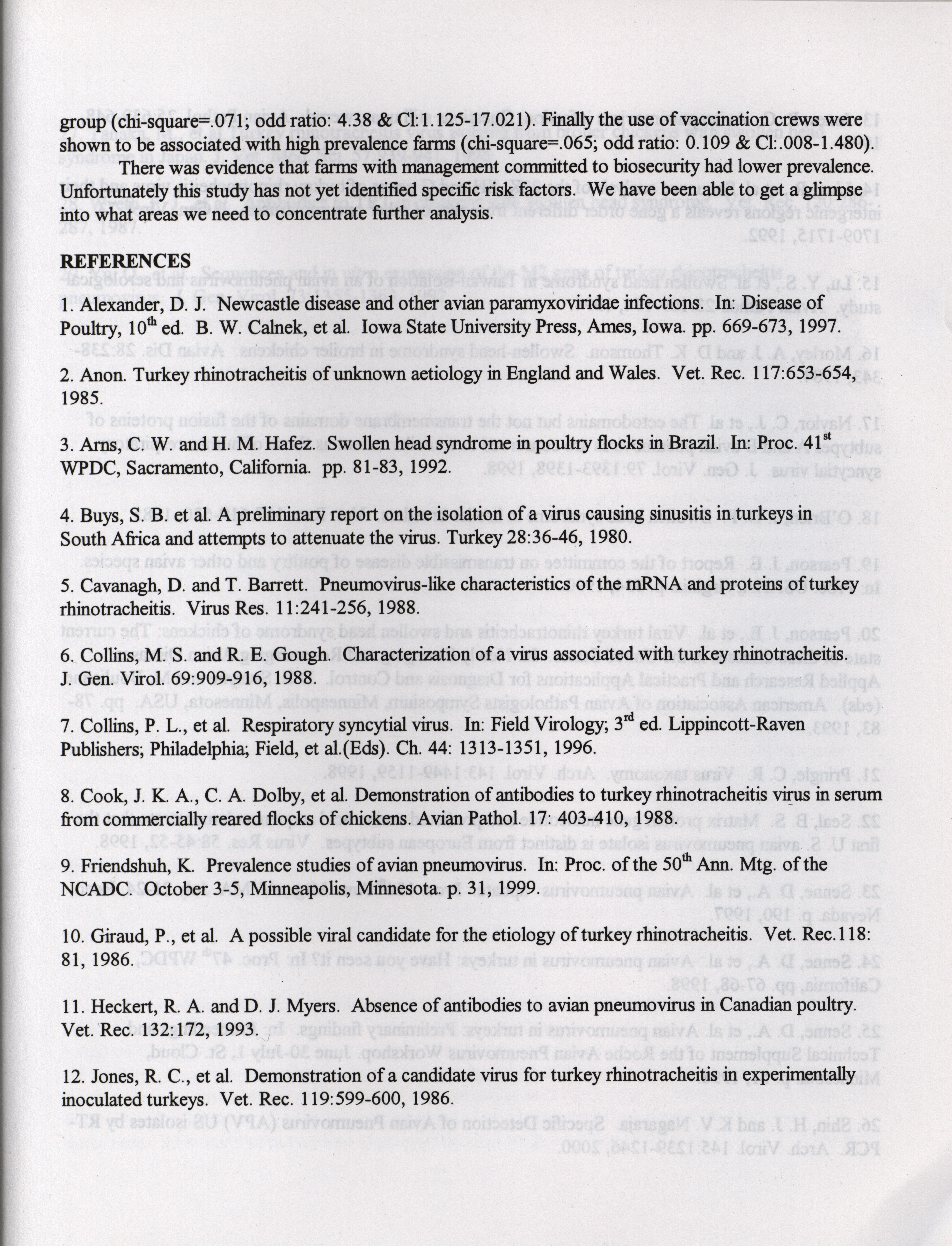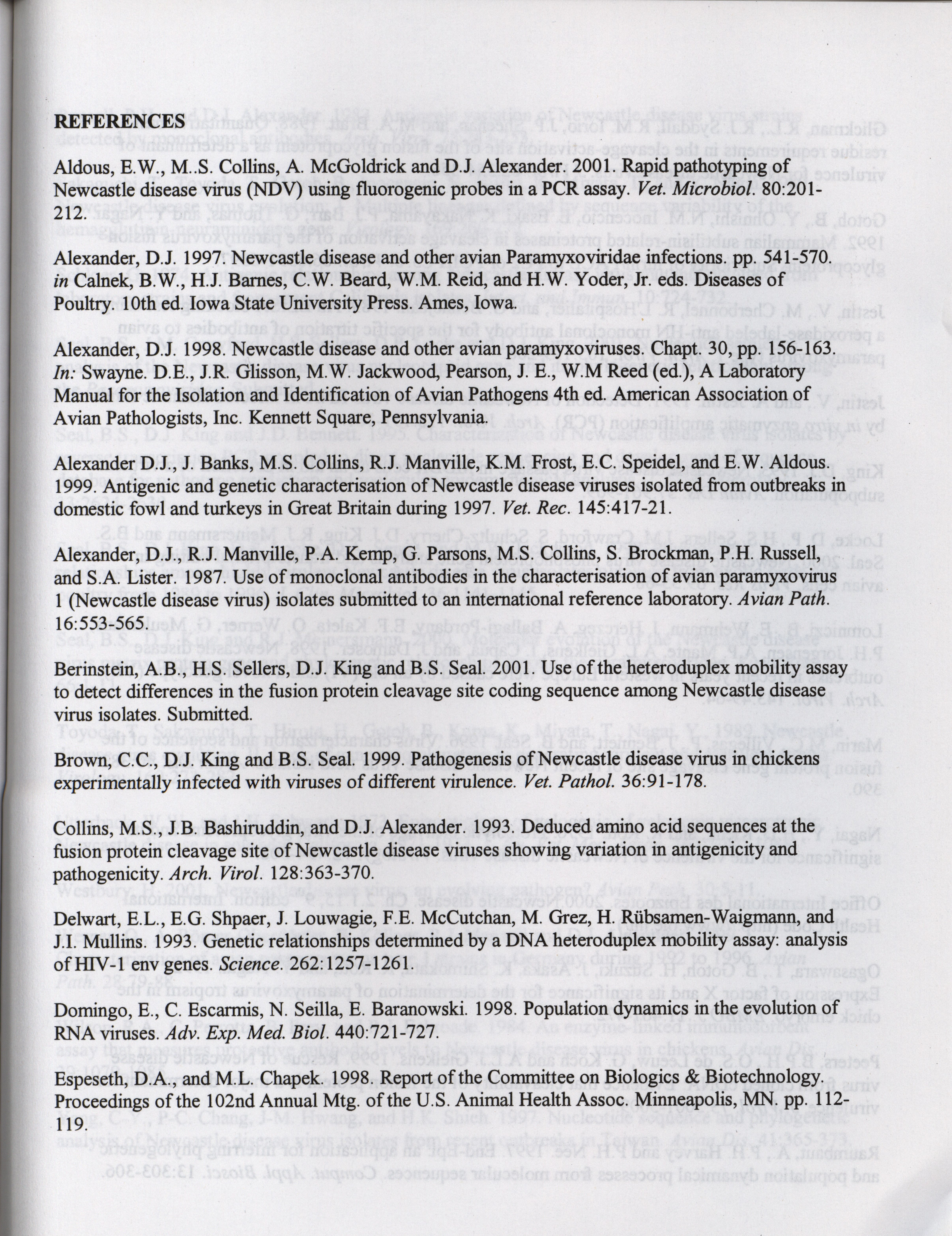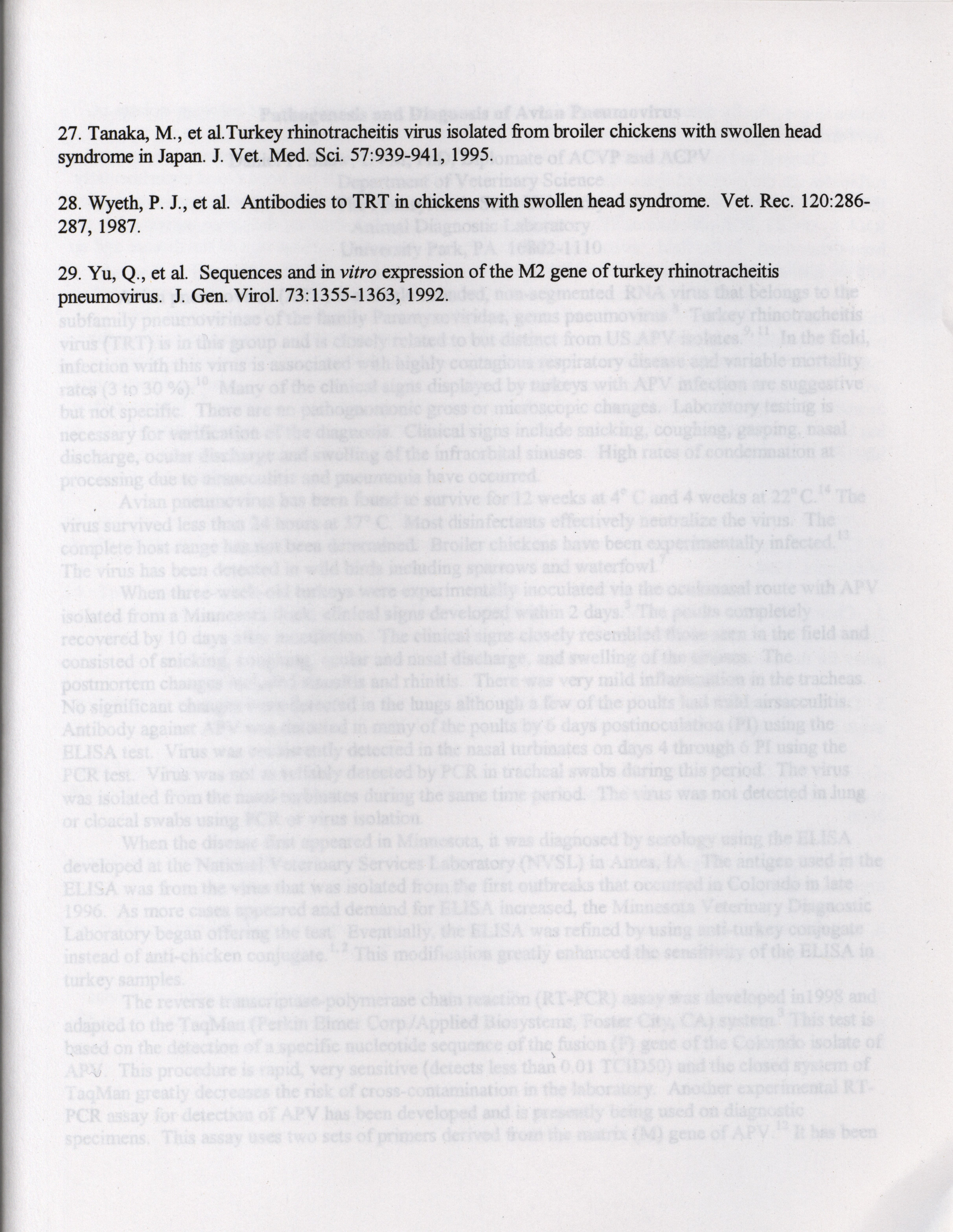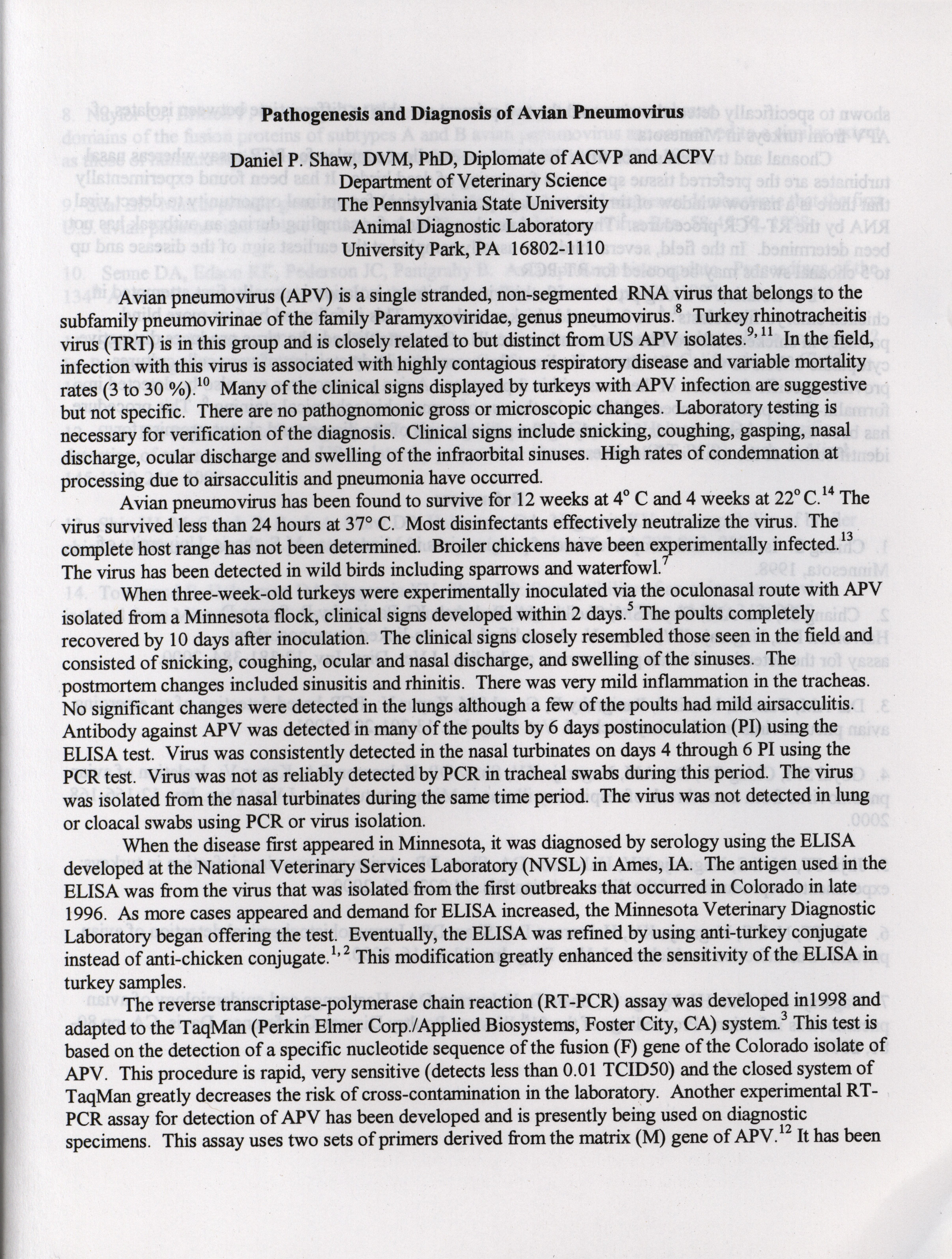 - "American Association of Avian Pathologists respiratory diseases of poultry symposium 2001", American Association of Avian Pathologists Collection, Iowa State University Library Digital Collections