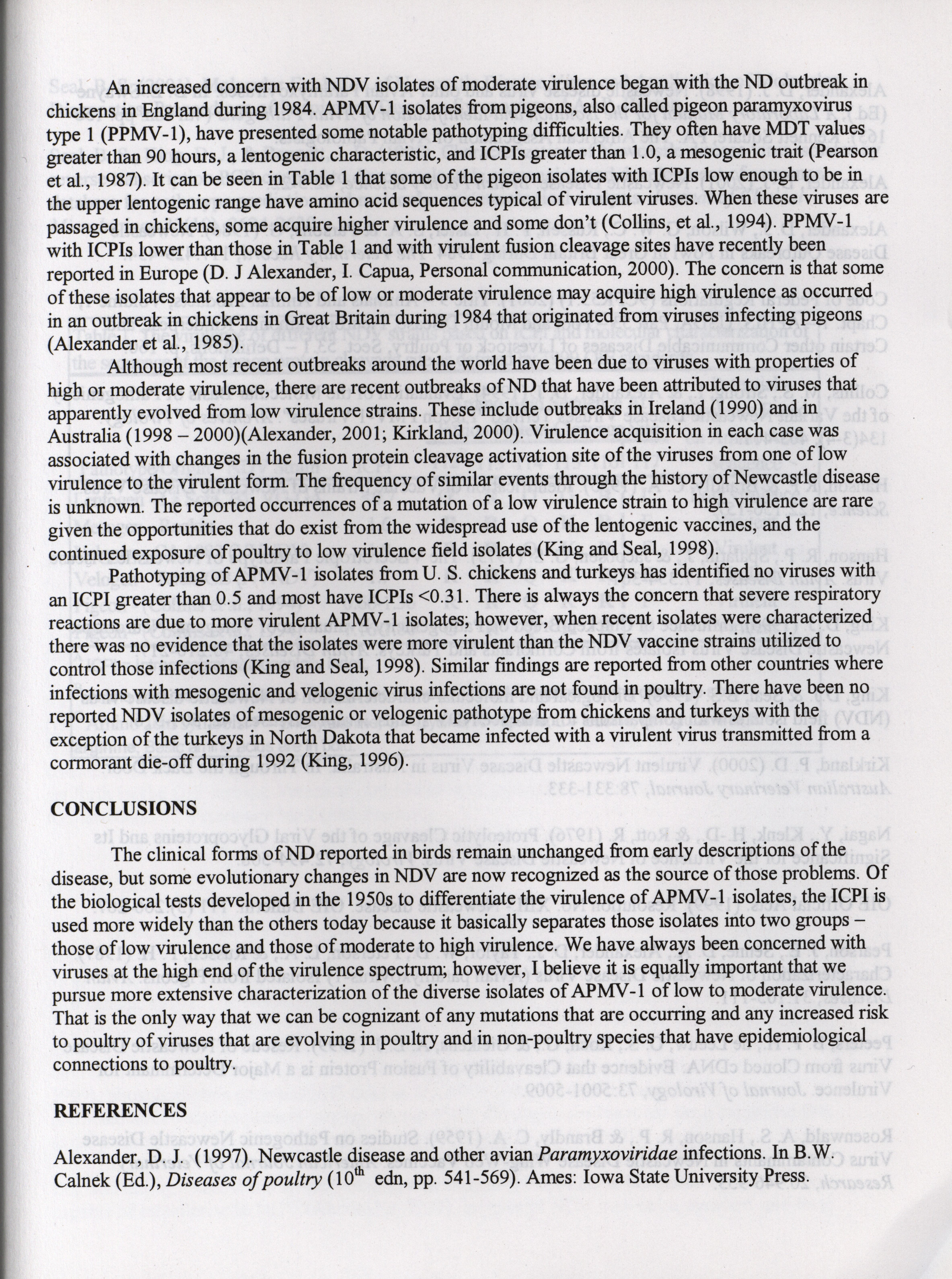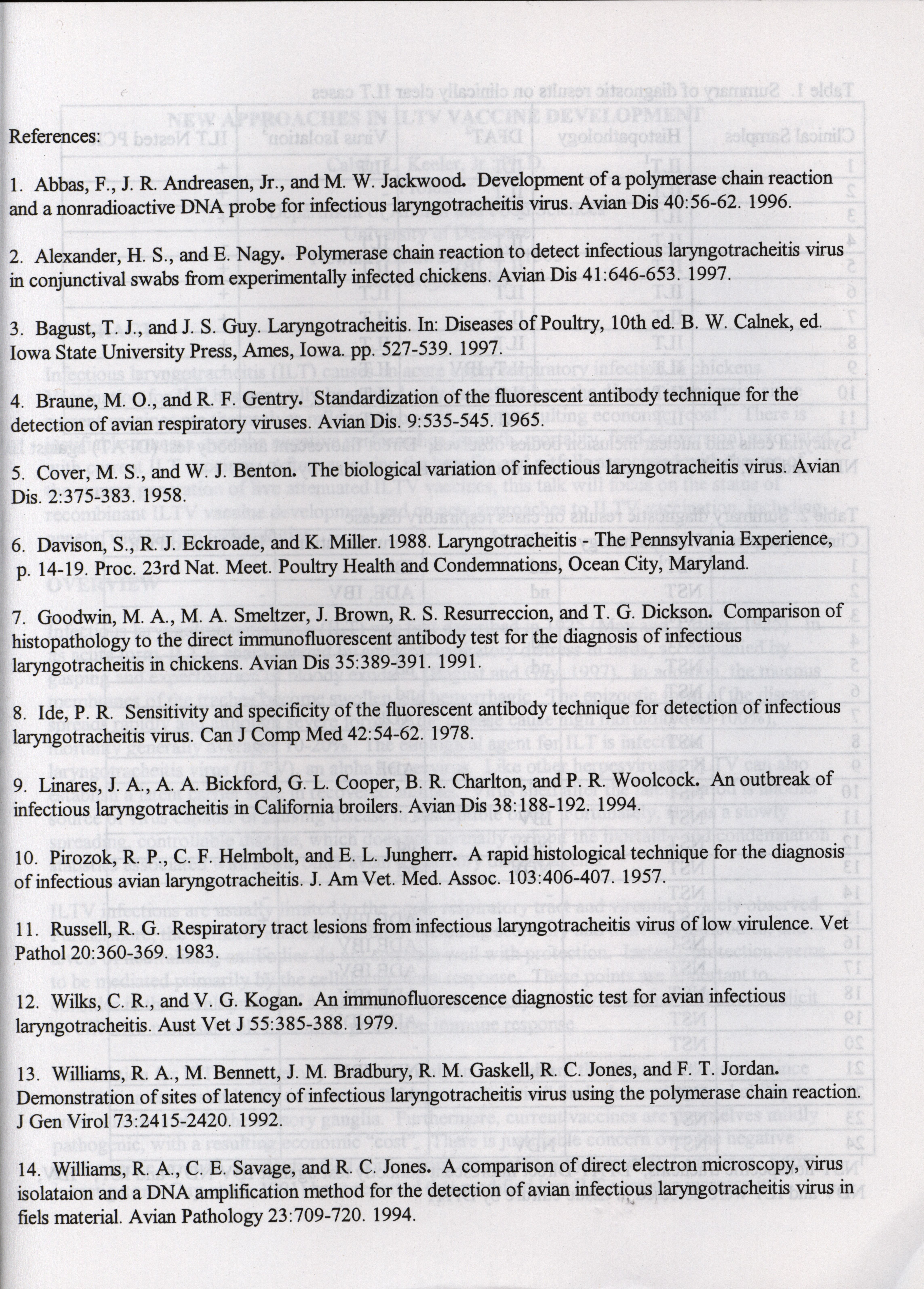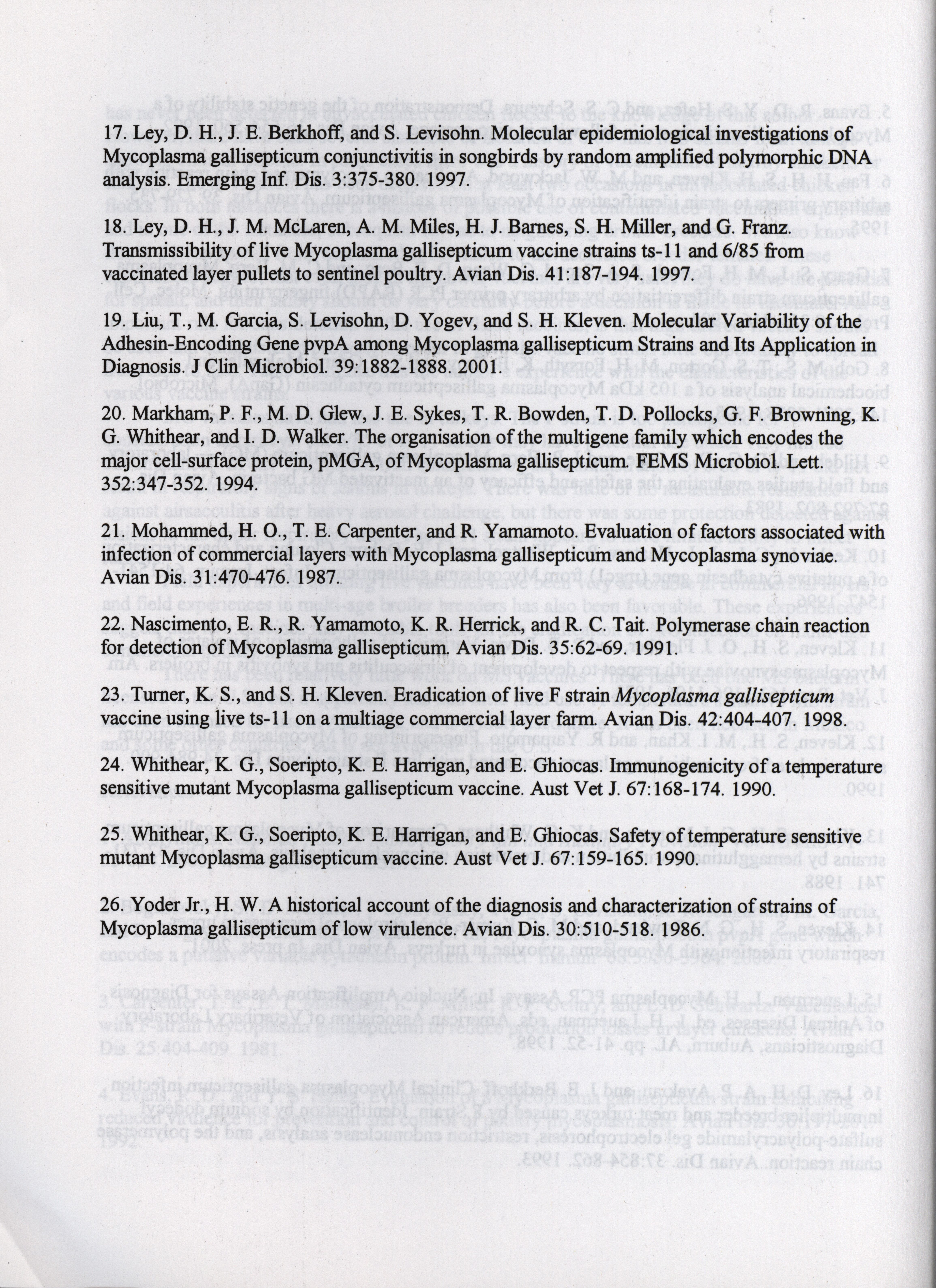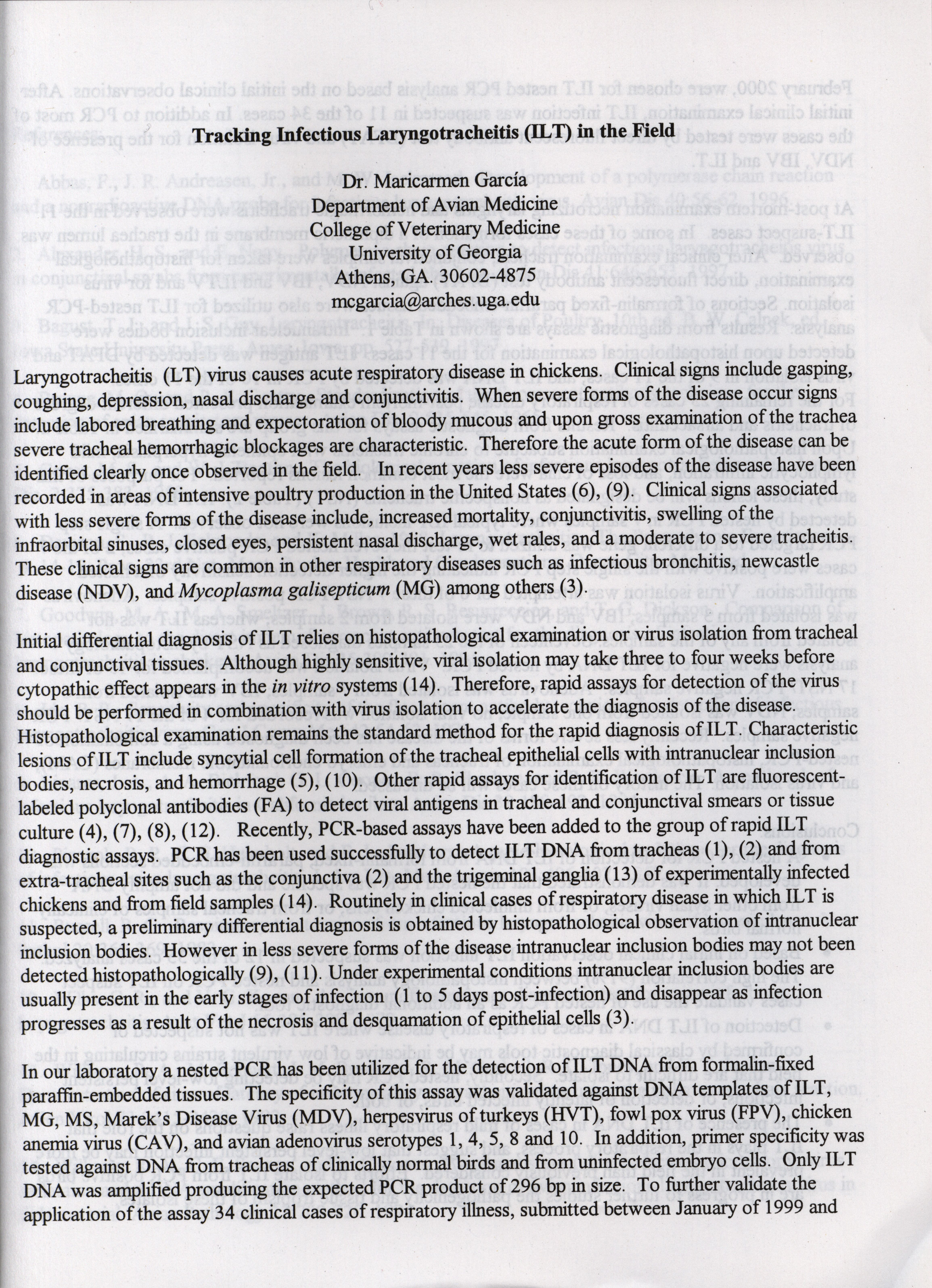 - "American Association of Avian Pathologists respiratory diseases of poultry symposium 2001", American Association of Avian Pathologists Collection, Iowa State University Library Digital Collections