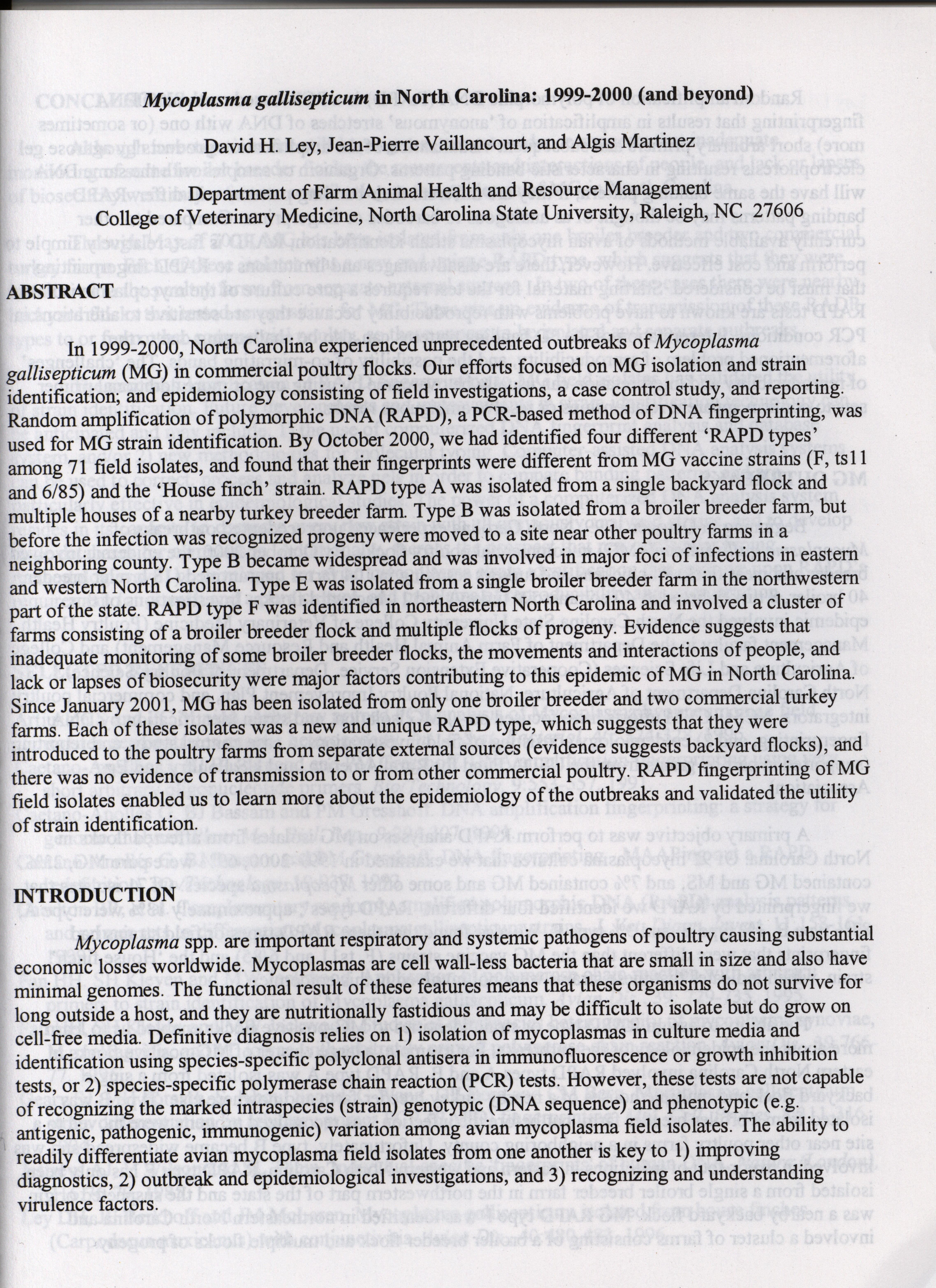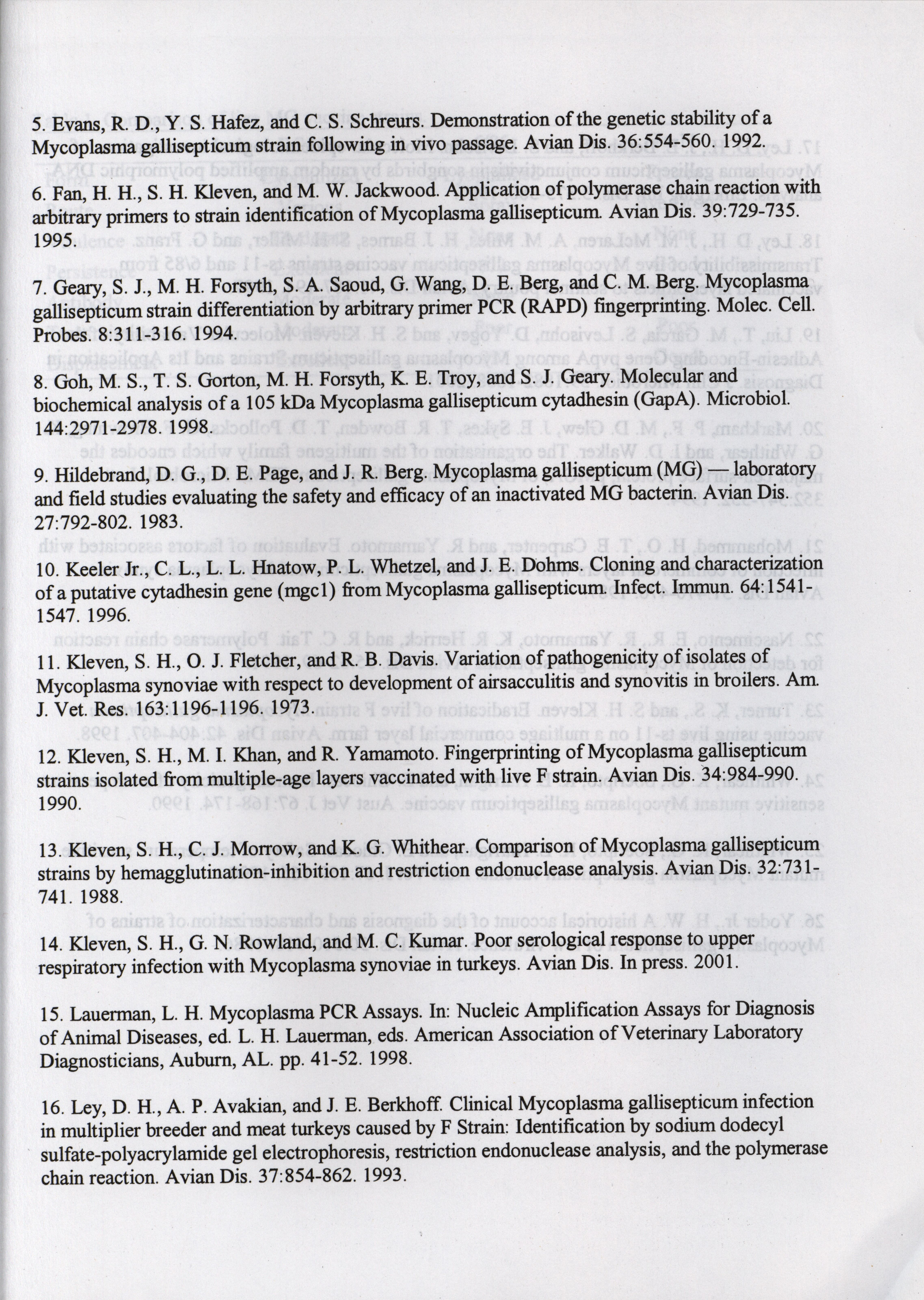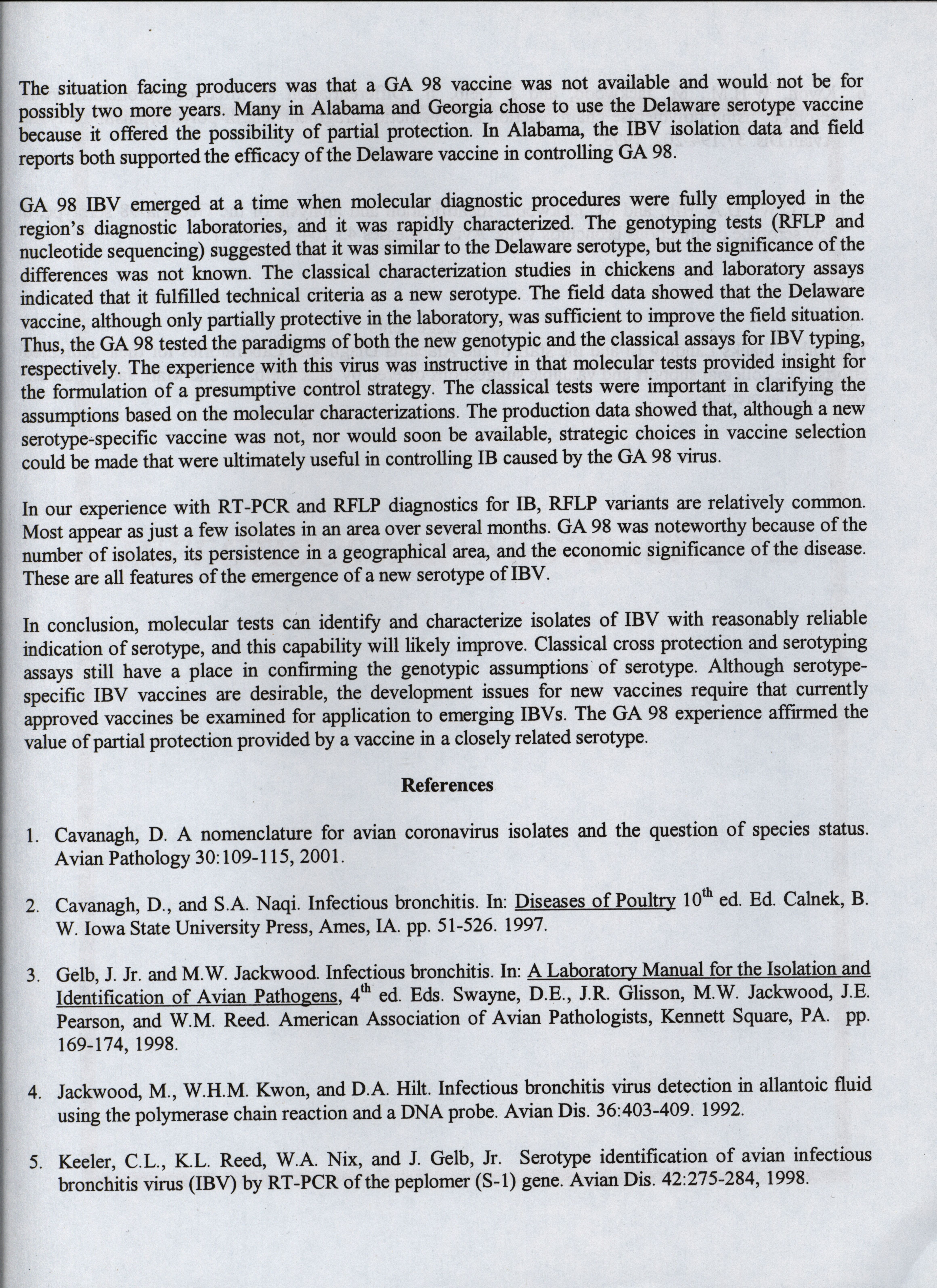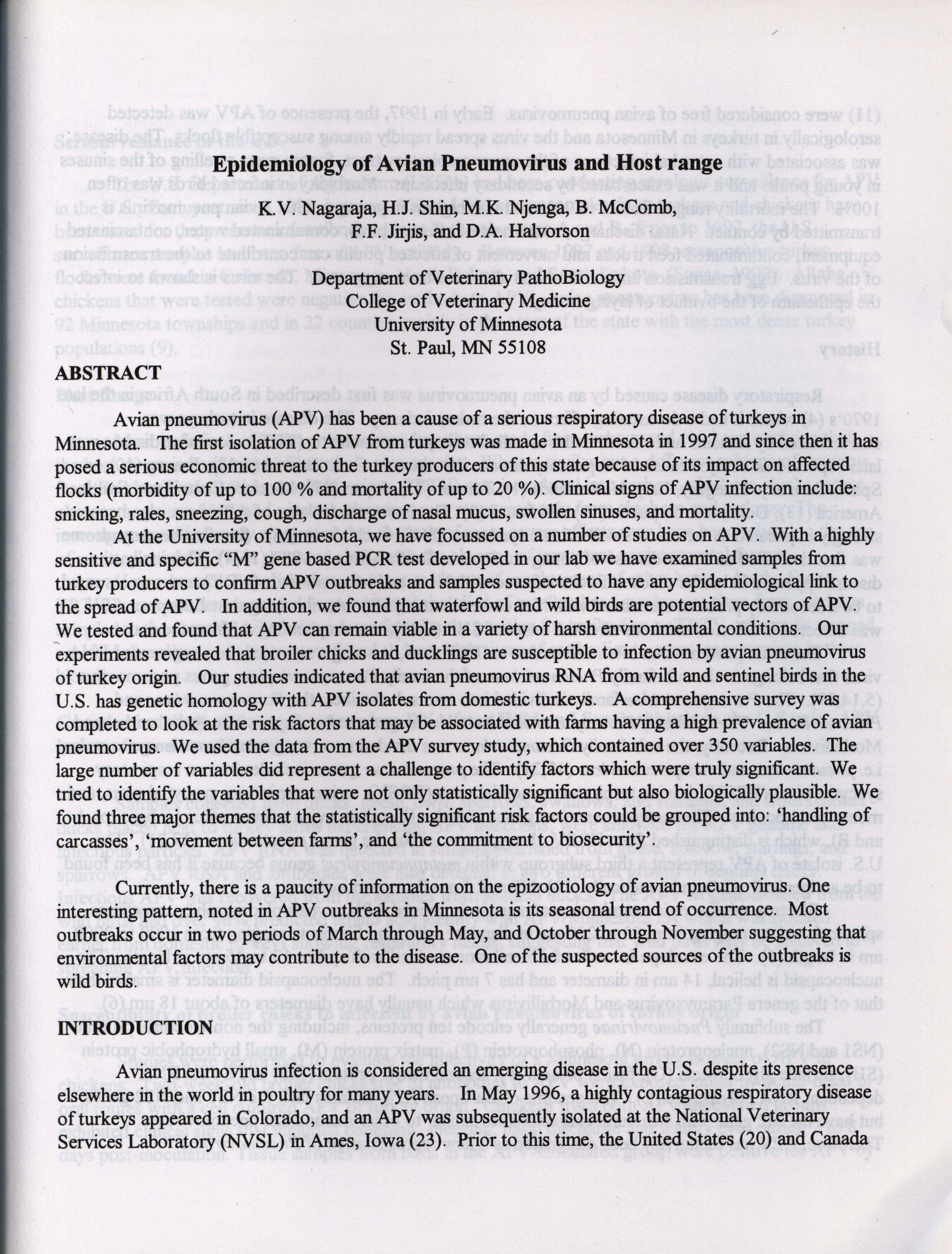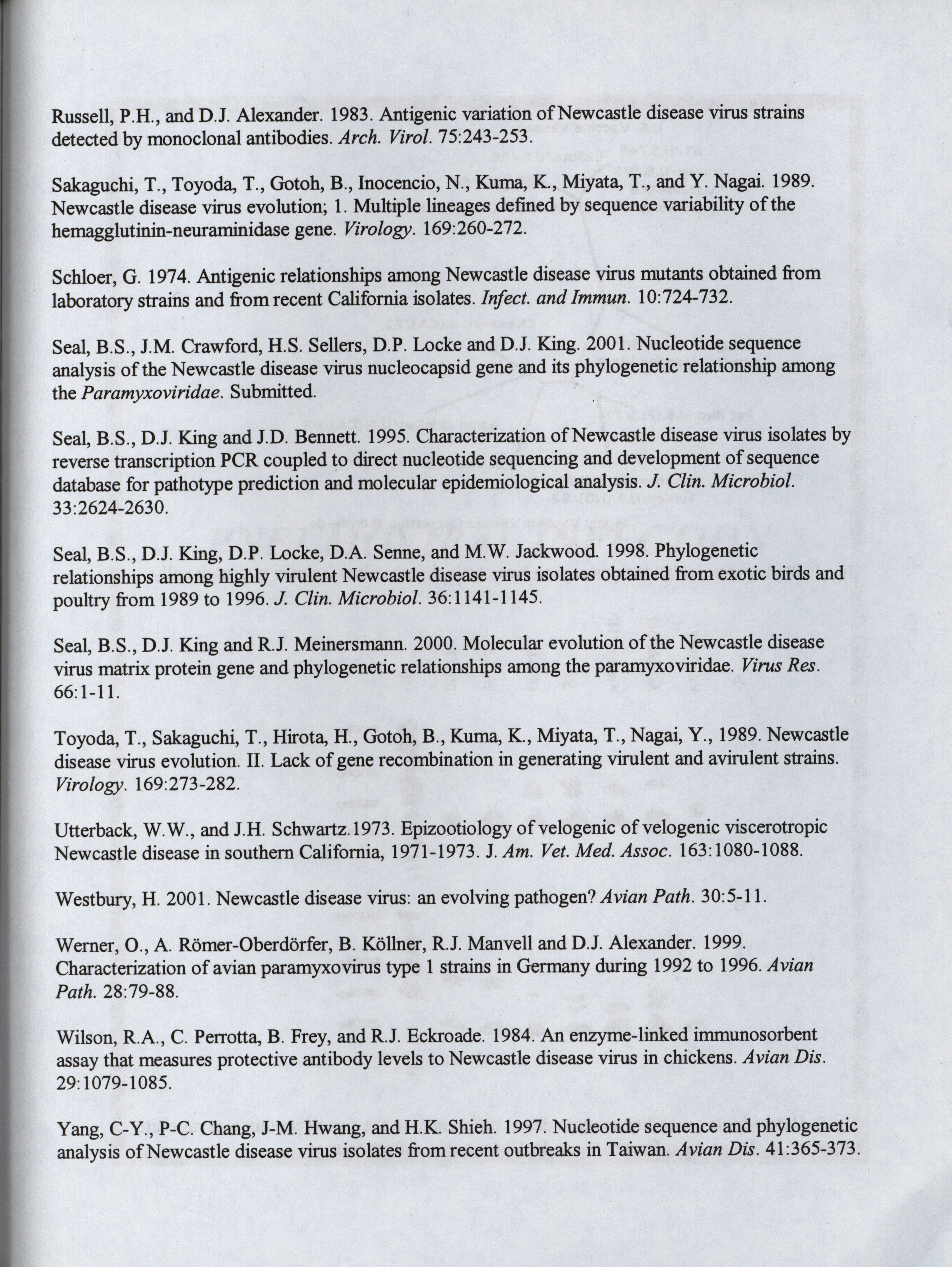 - "American Association of Avian Pathologists respiratory diseases of poultry symposium 2001", American Association of Avian Pathologists Collection, Iowa State University Library Digital Collections
