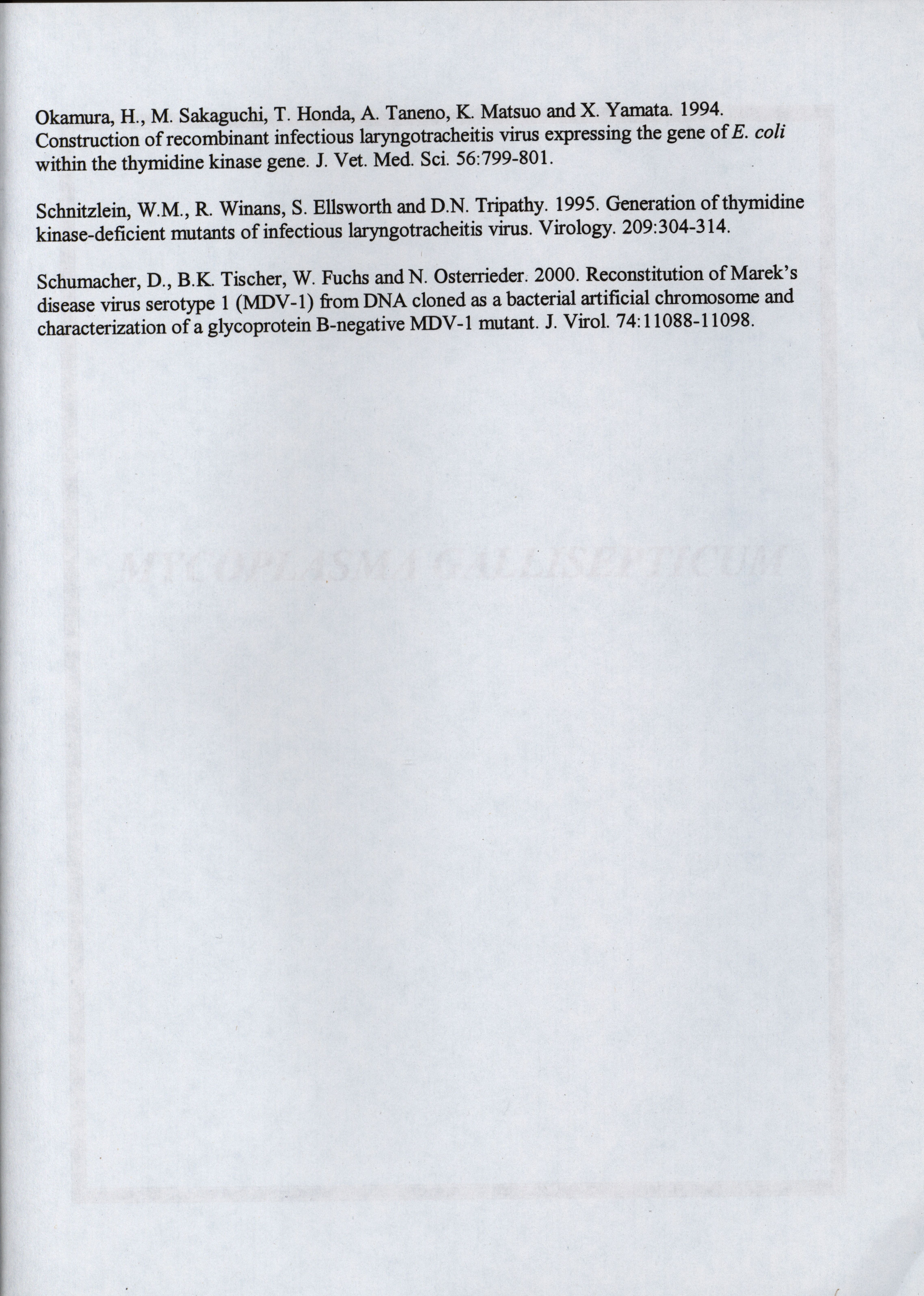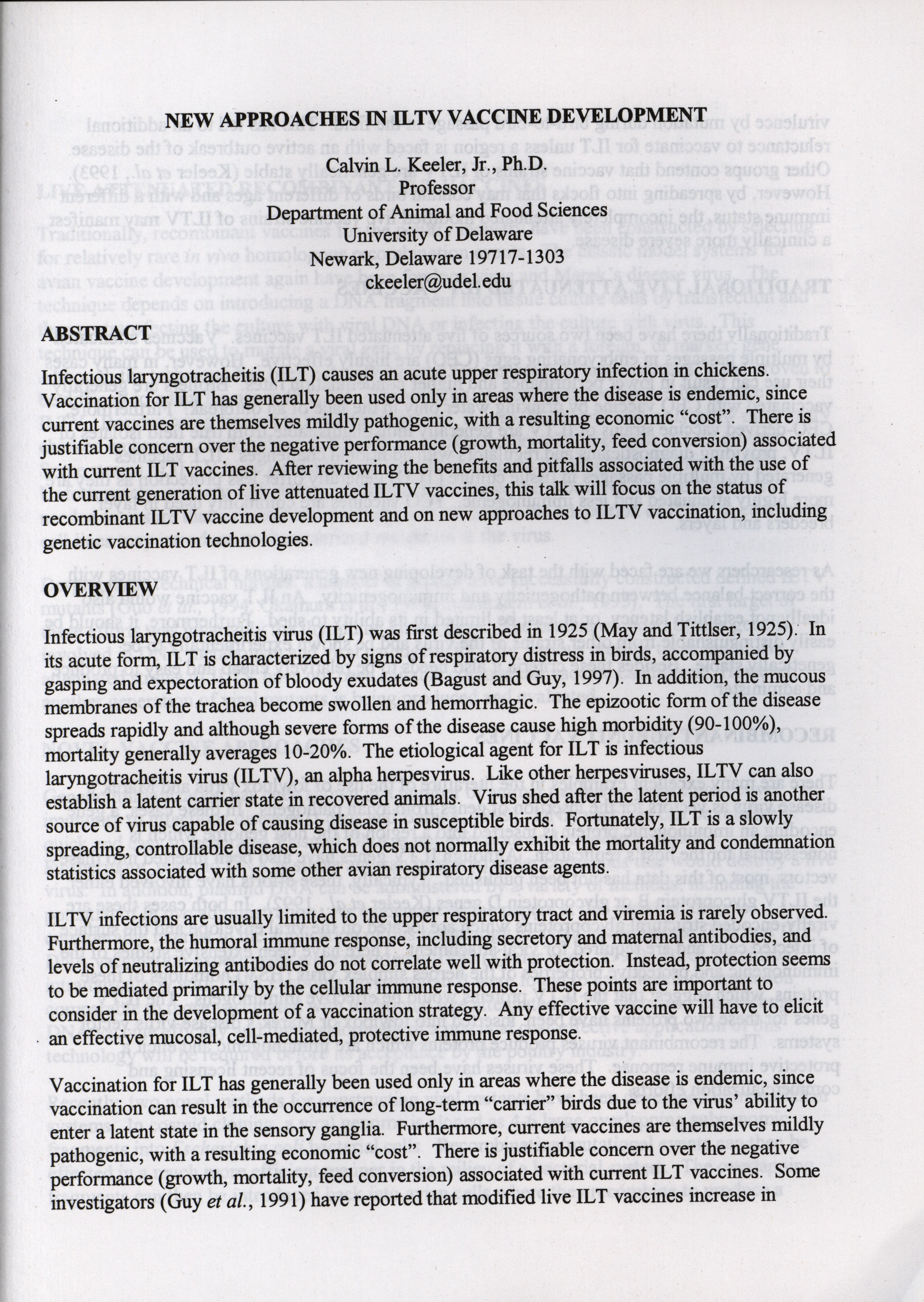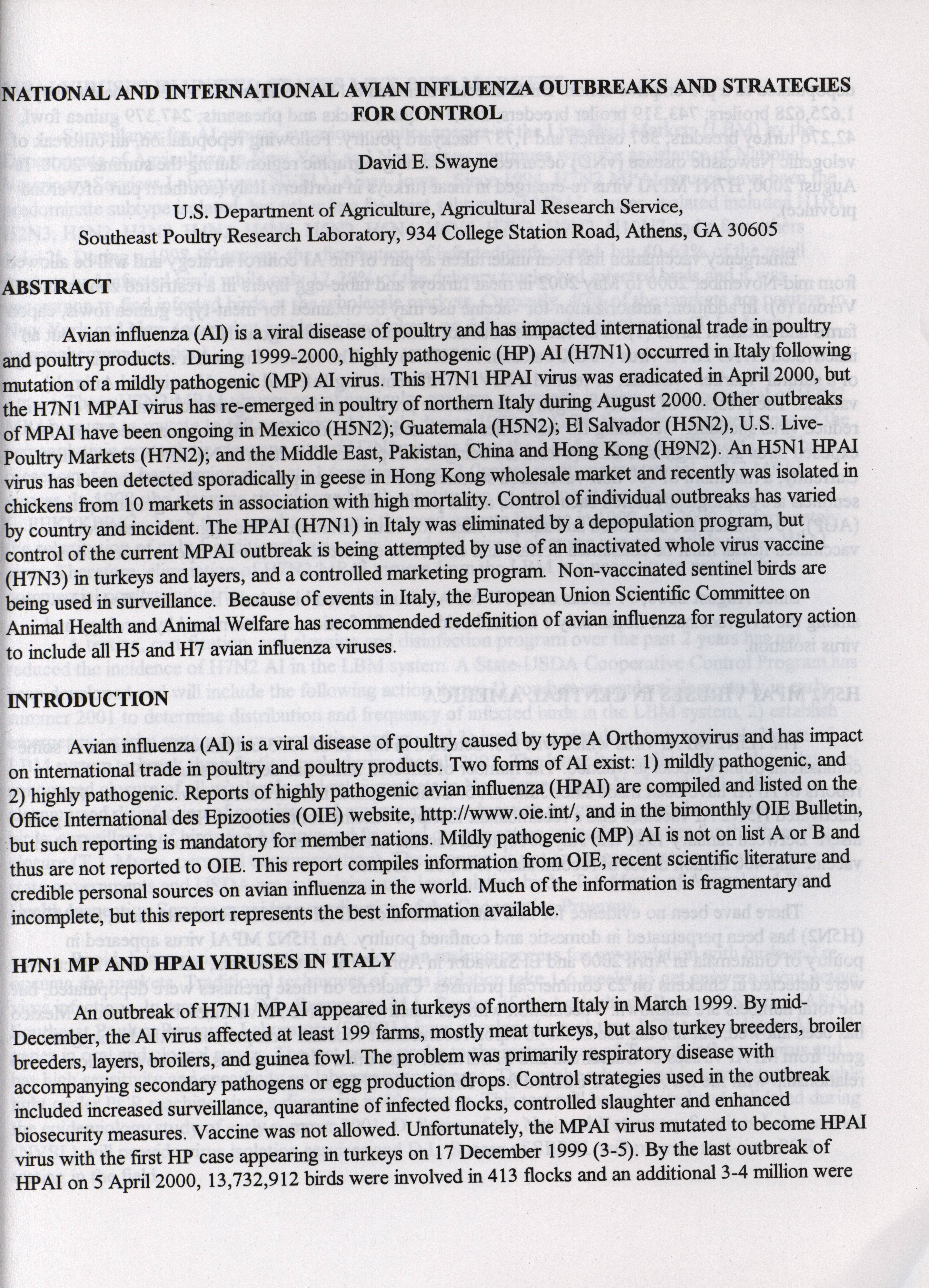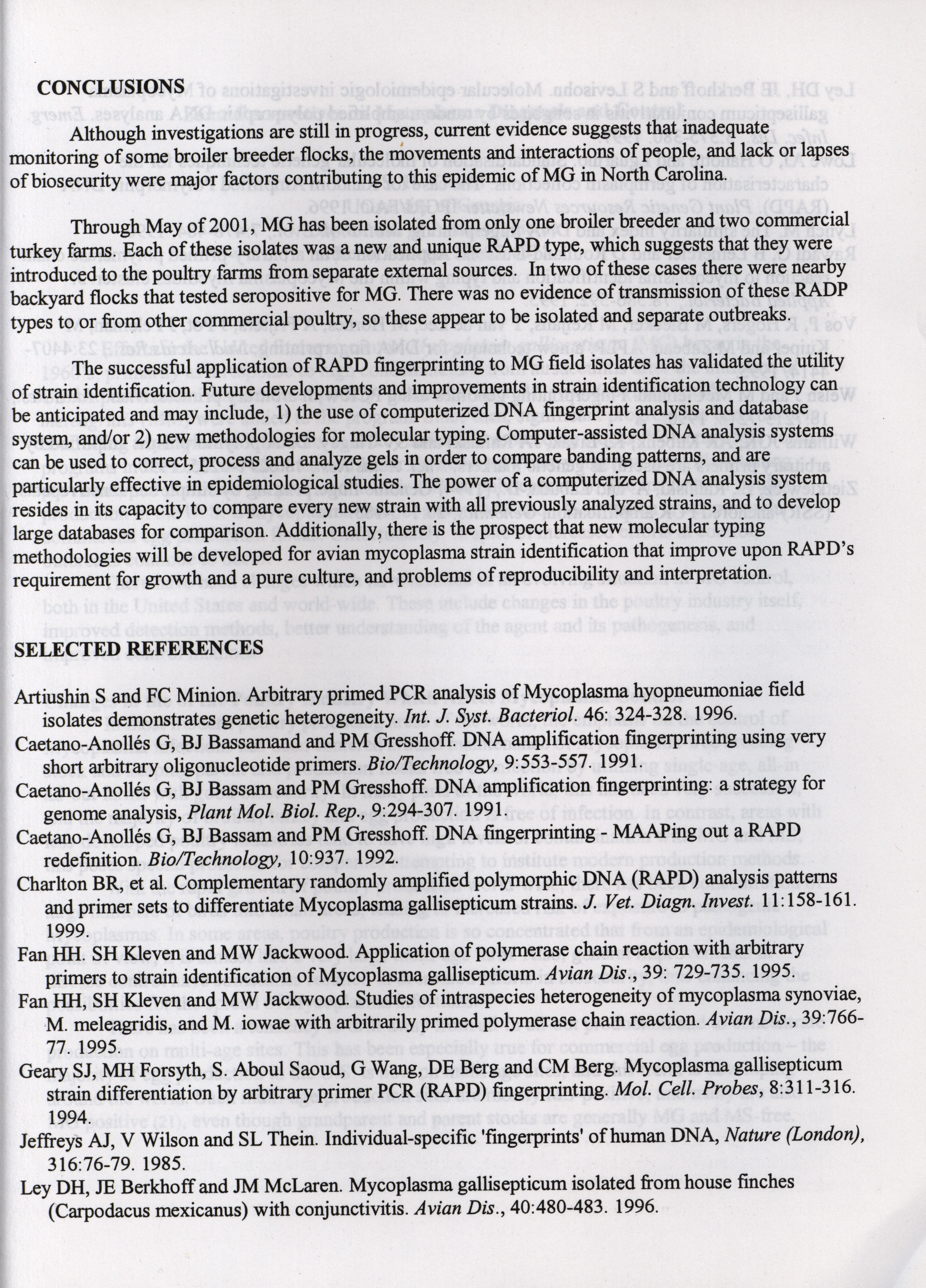 - "American Association of Avian Pathologists respiratory diseases of poultry symposium 2001", American Association of Avian Pathologists Collection, Iowa State University Library Digital Collections