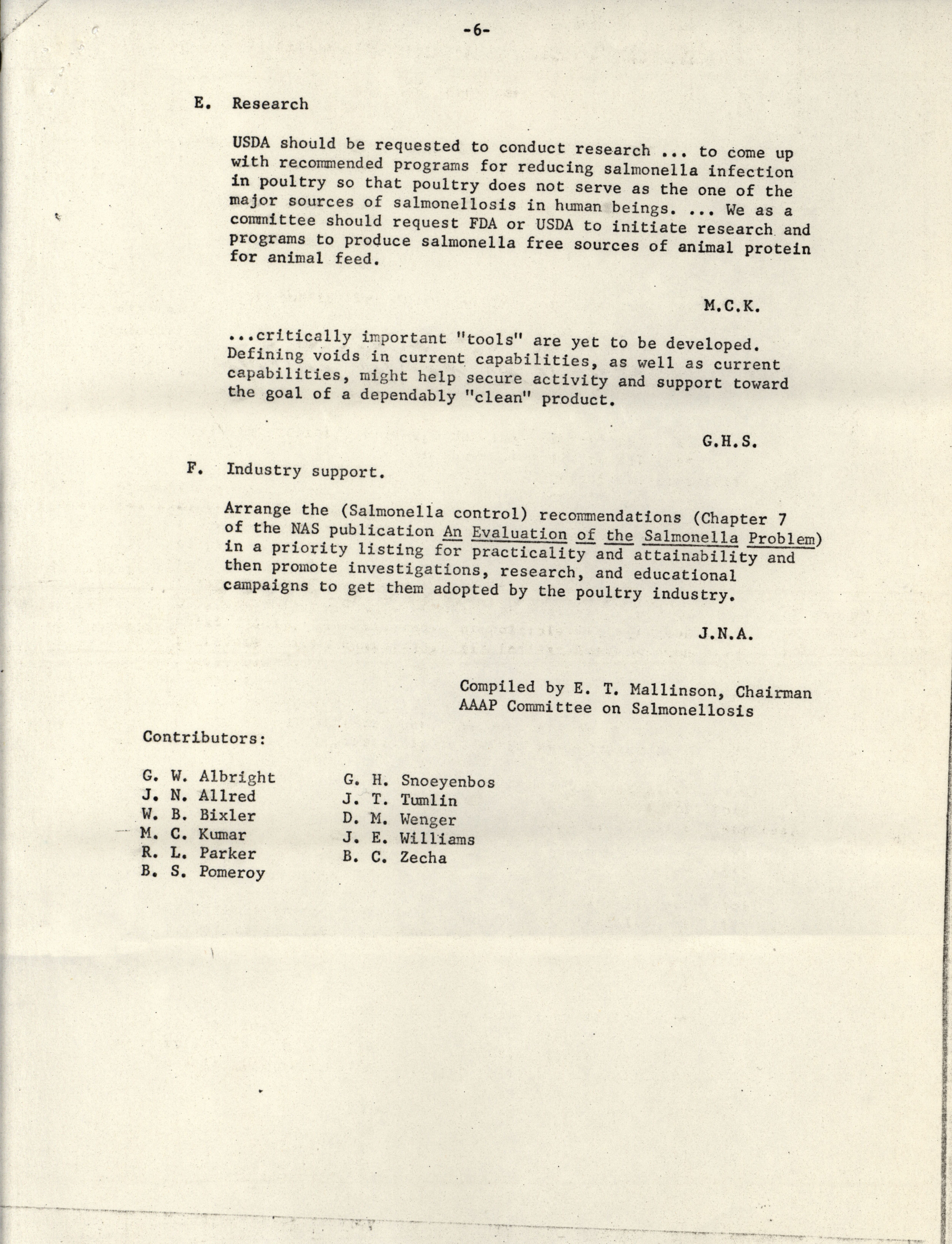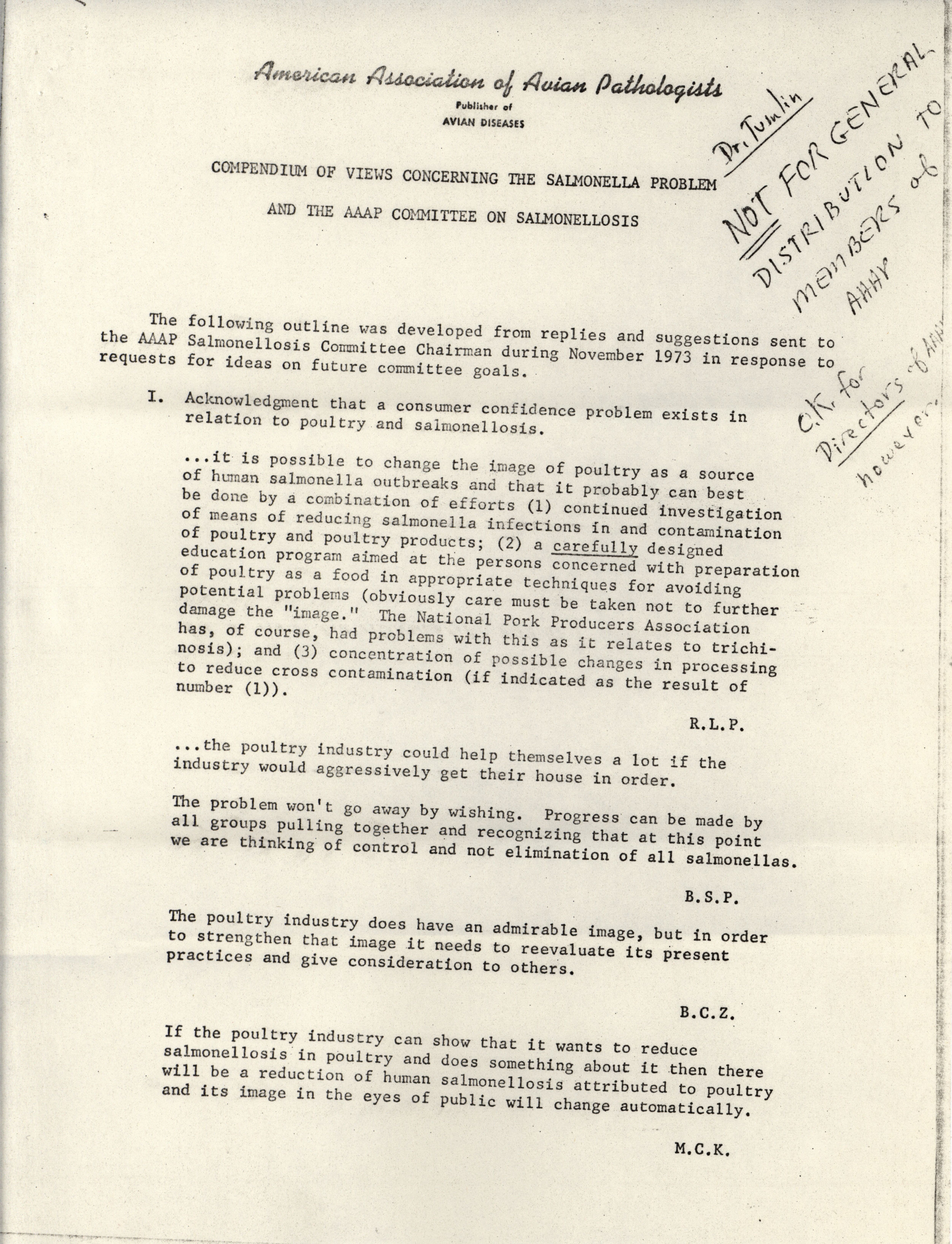 - "American Association of Avian Pathologists compendium of views concerning the salmonella problem and the AAAP committee on salmonellosis", American Association of Avian Pathologists Collection, Iowa State University Library Digital Collections