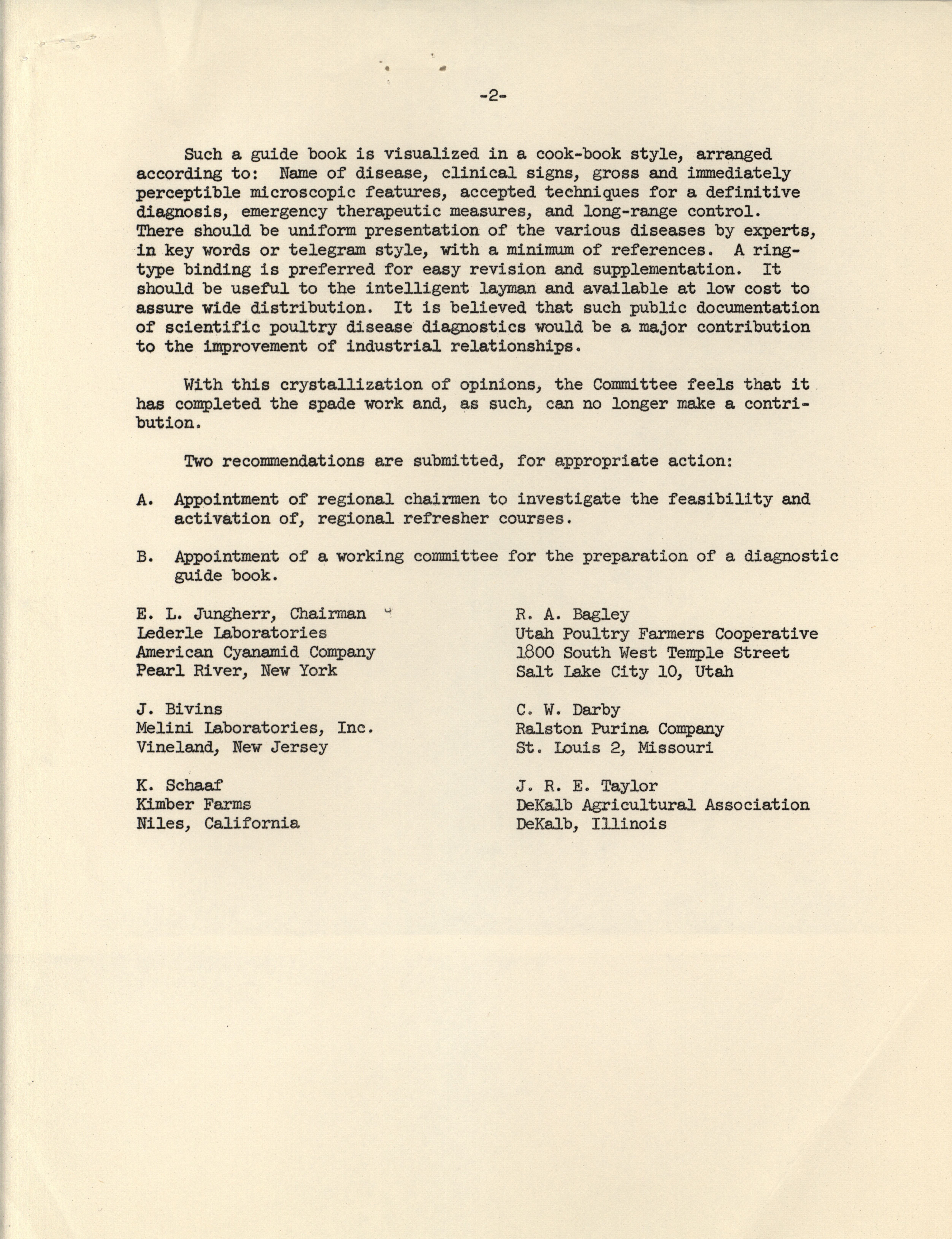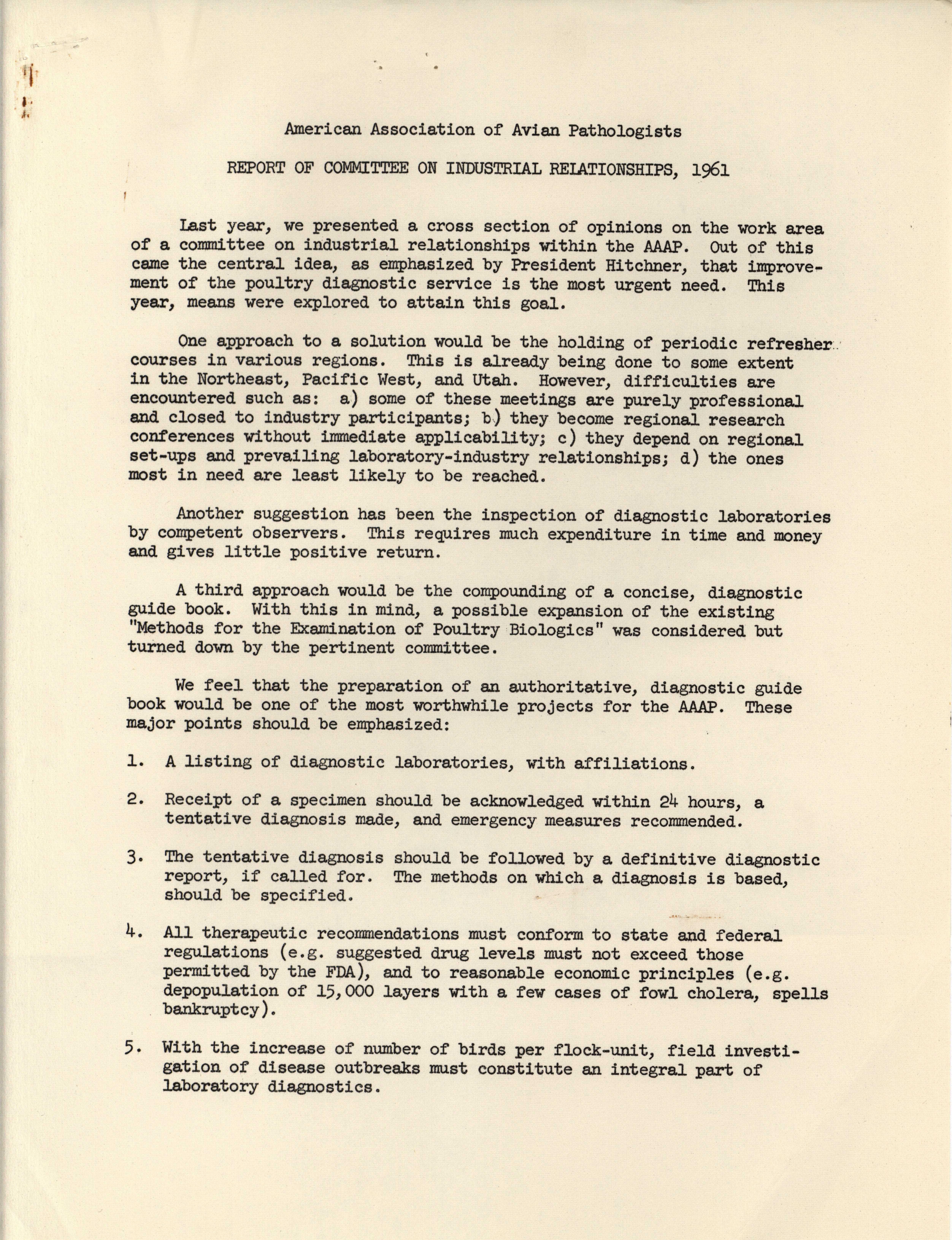 - "American Association of Avian Pathologists report of committee on industrial relationships, 1961", American Association of Avian Pathologists Collection, Iowa State University Library Digital Collections