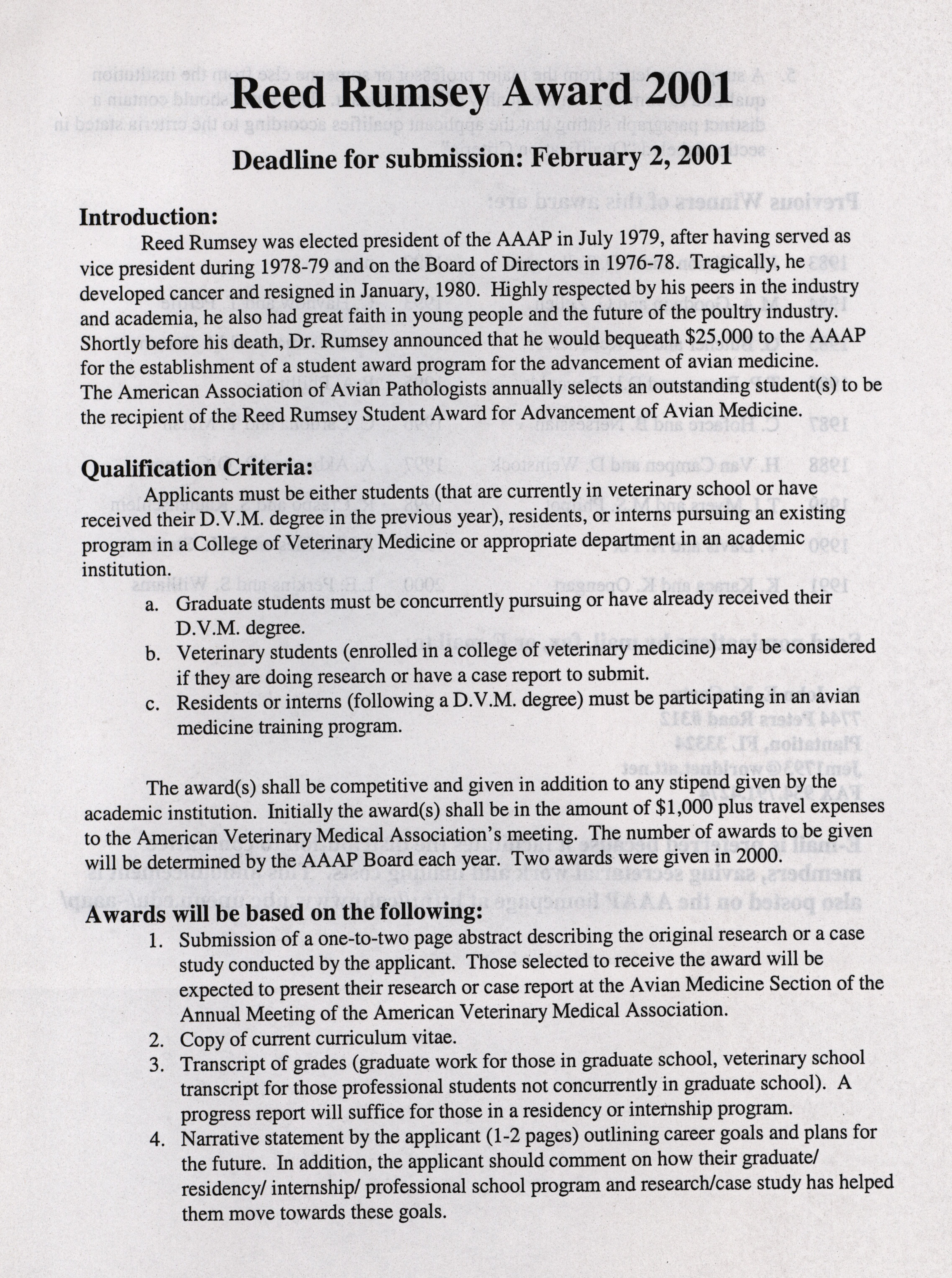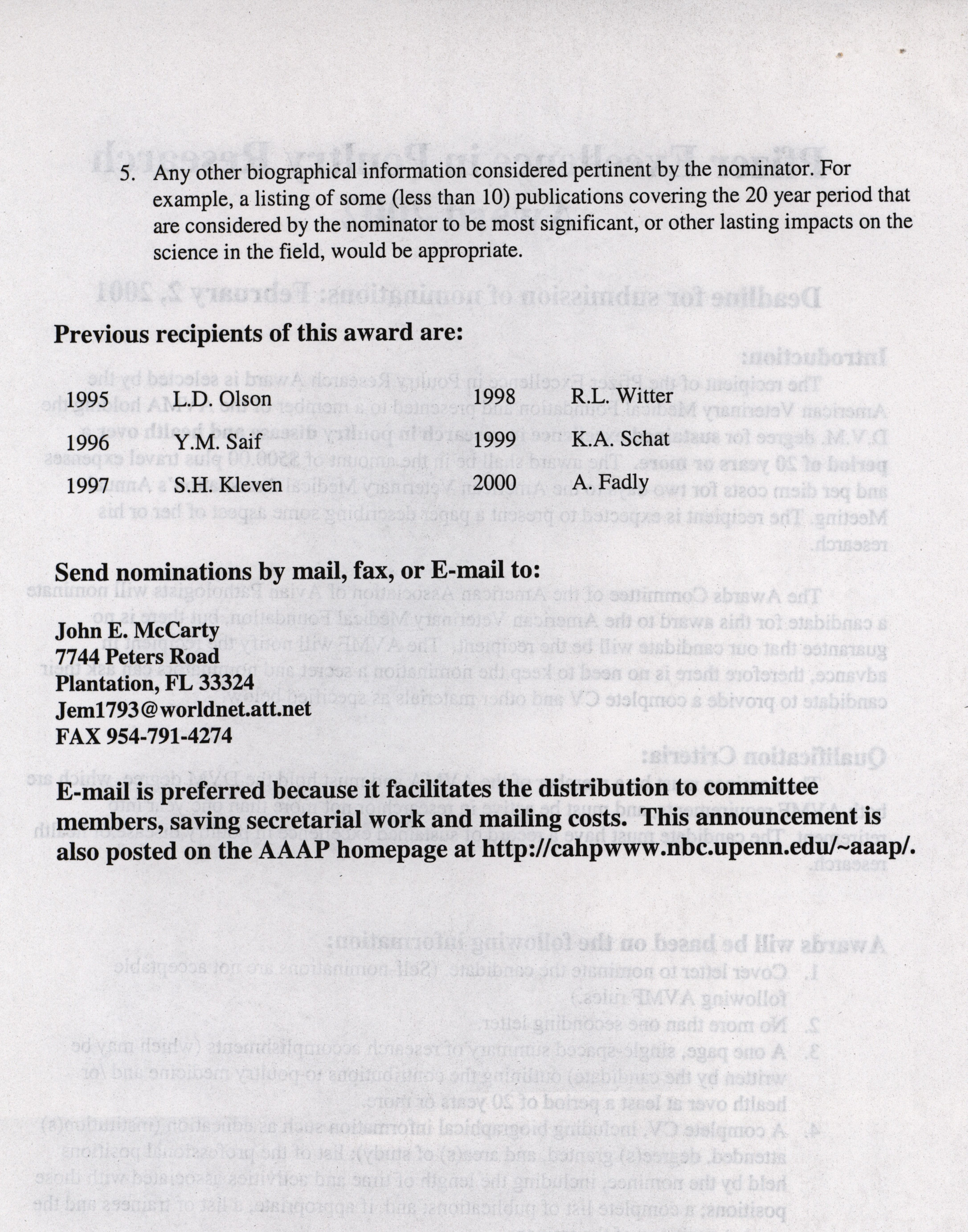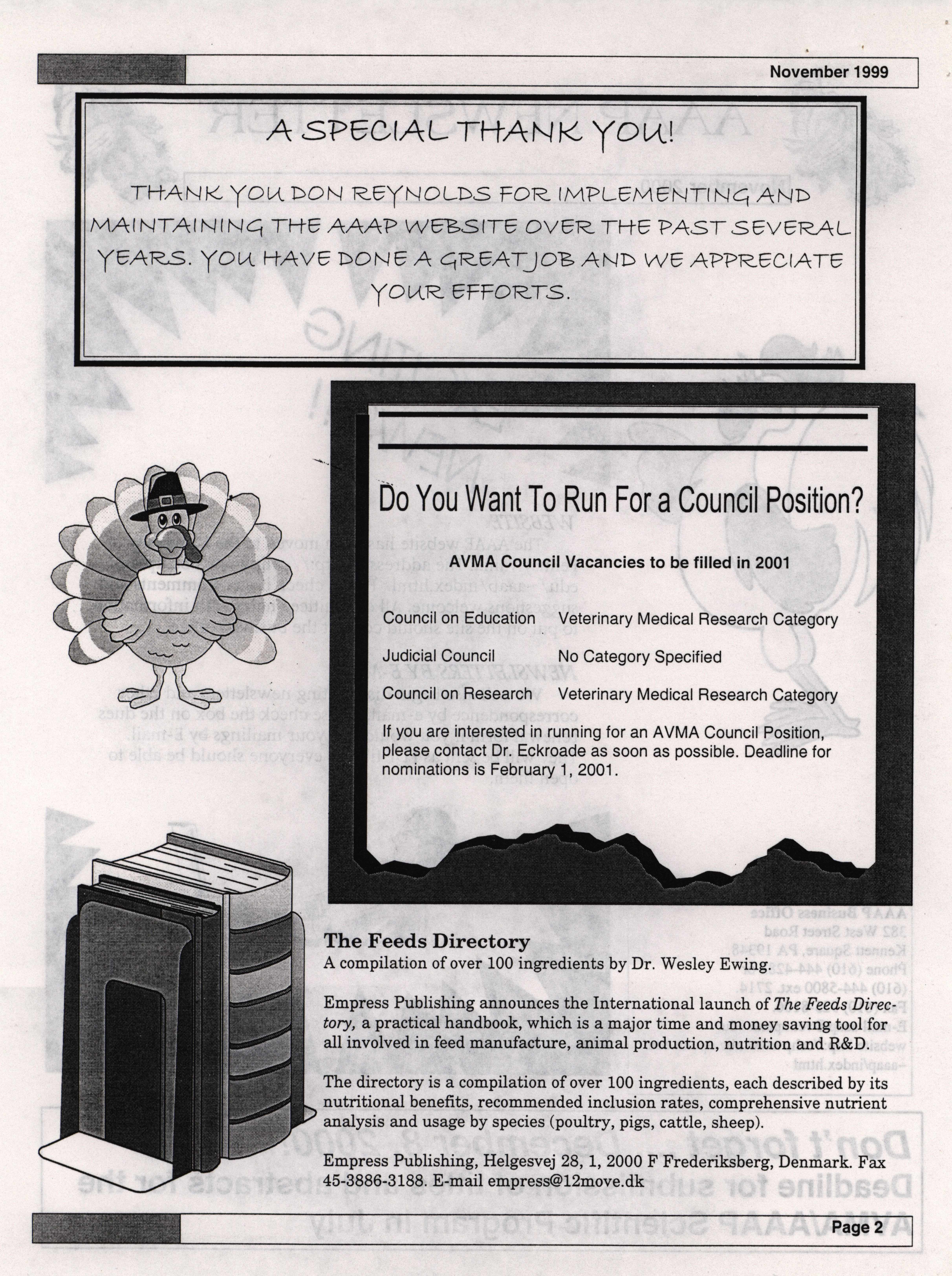 - "AAAP newsletter, November 2000", American Association of Avian Pathologists Collection, Iowa State University Library Digital Collections