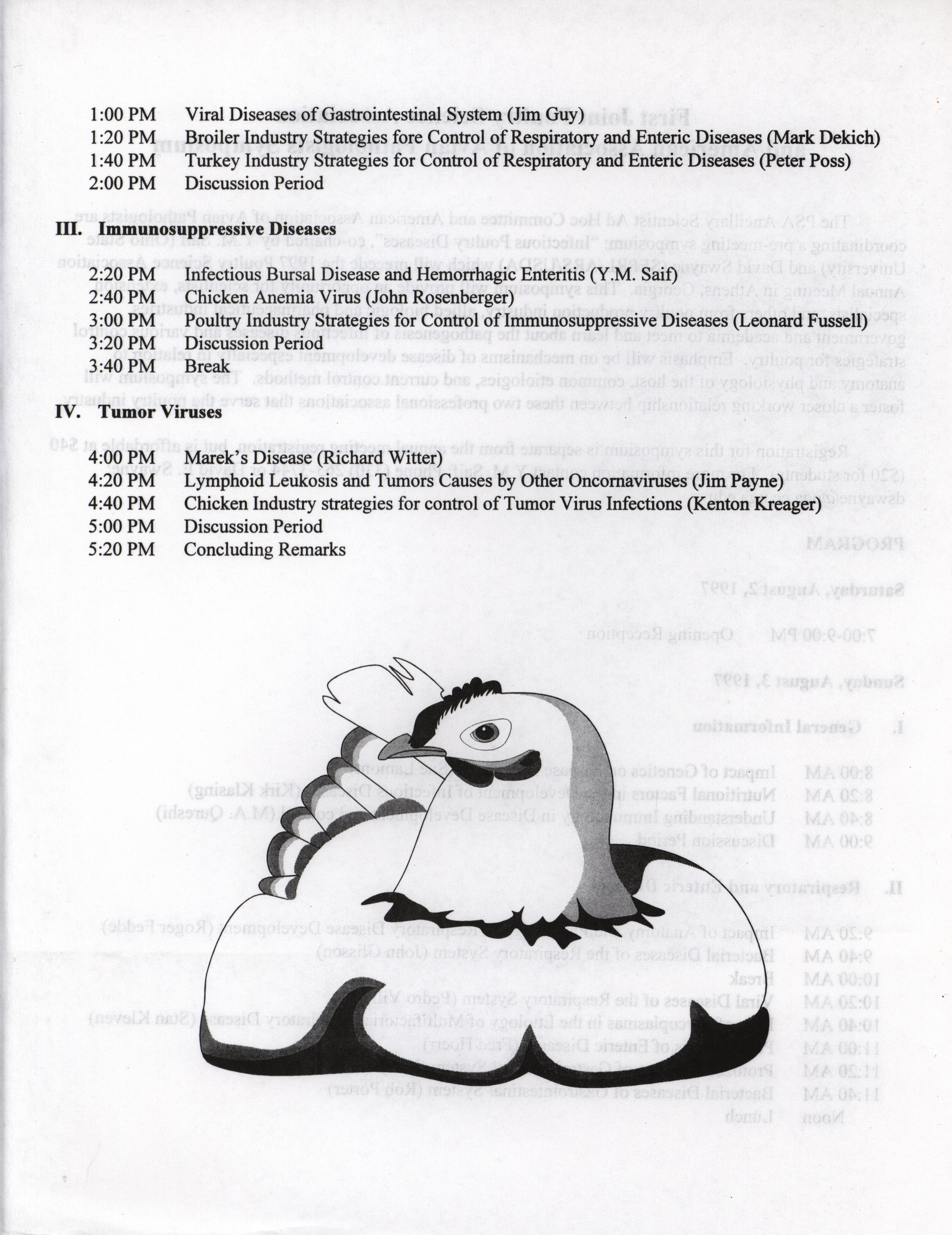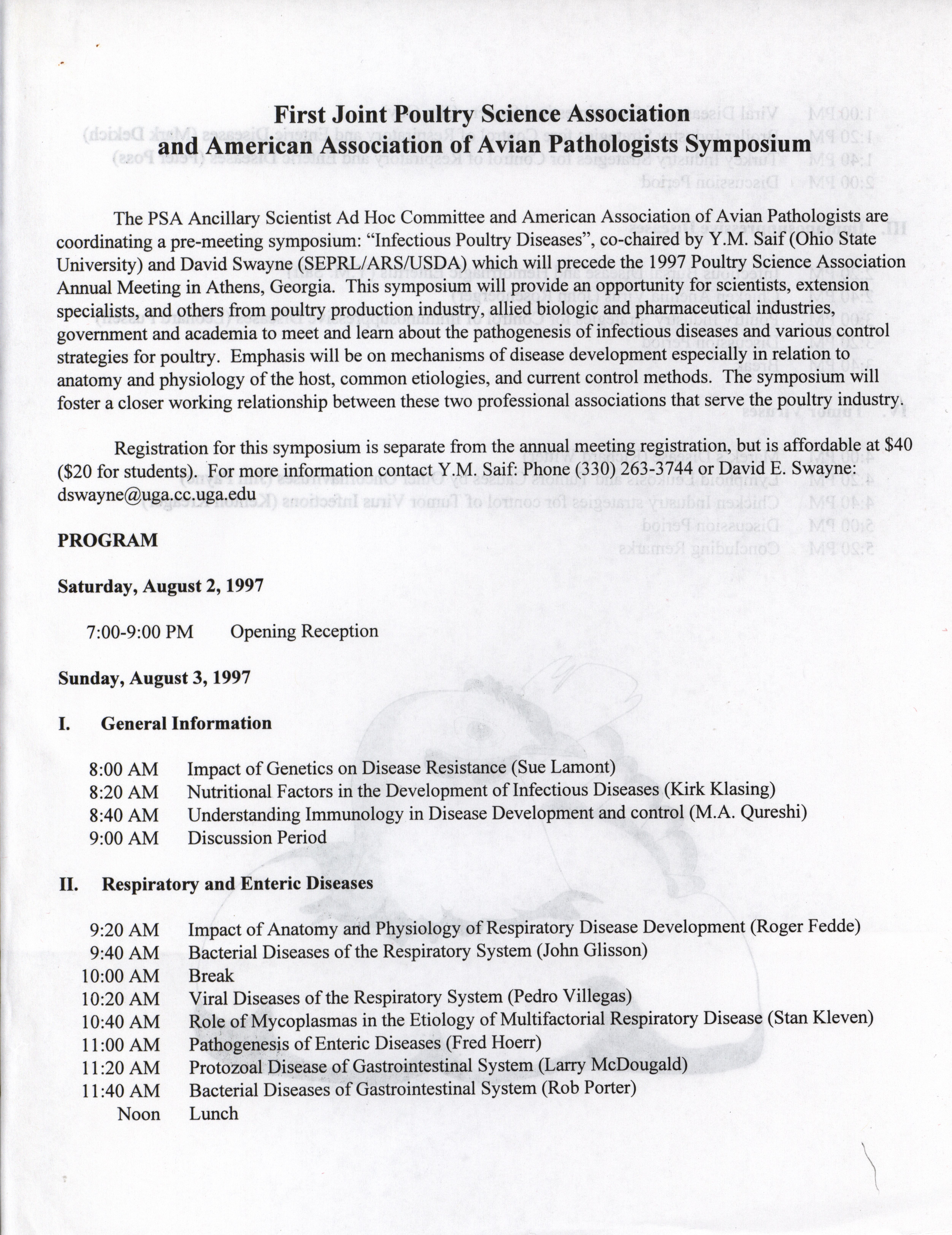 - Program for the First Joint Poultry Science Association and American Association of Avian Pathologists Symposium on August 2-3, 1997.