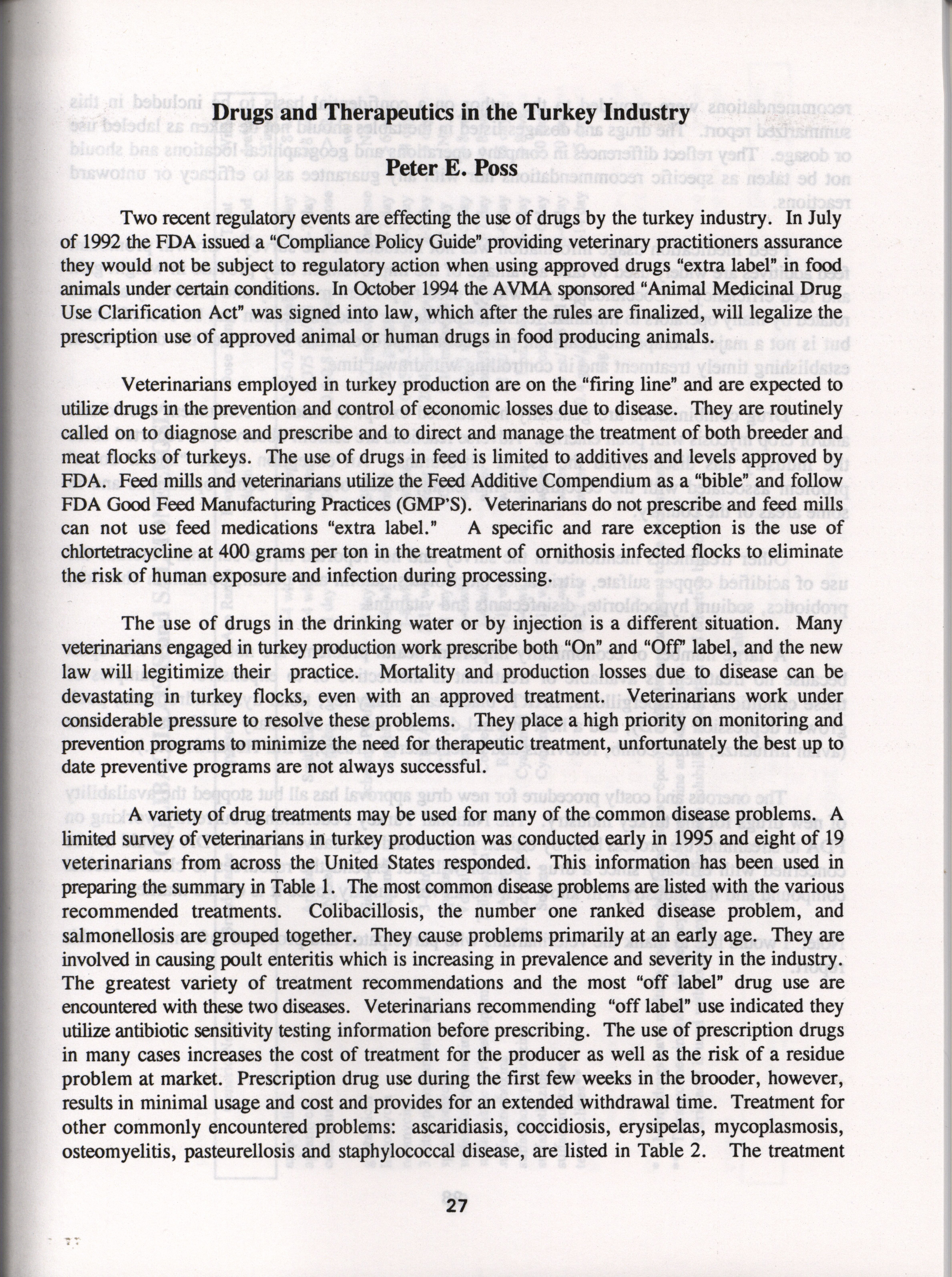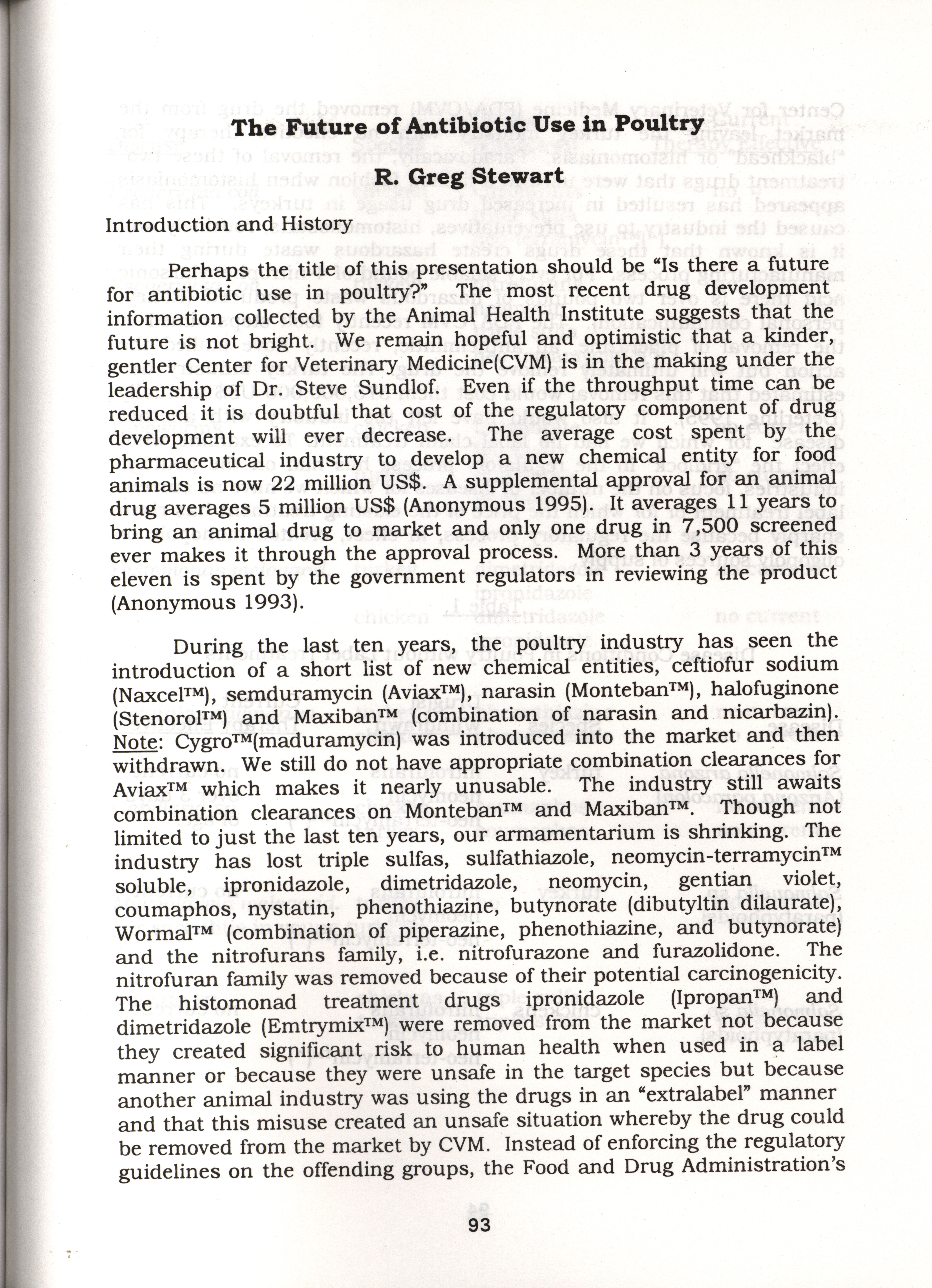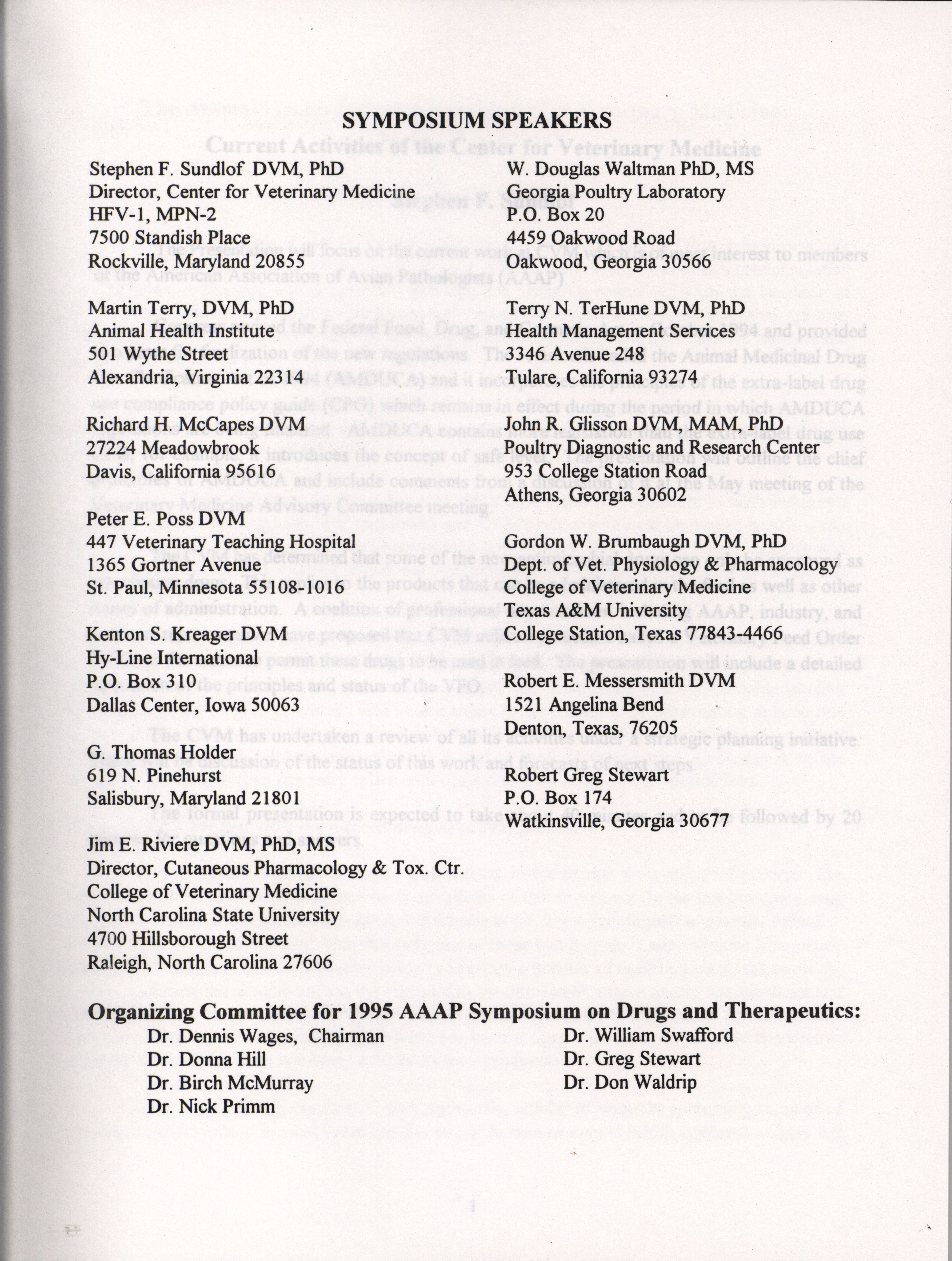 - American Association of Avian Pathologists symposium on drugs and therapeutics for poultry, July 9, 1995