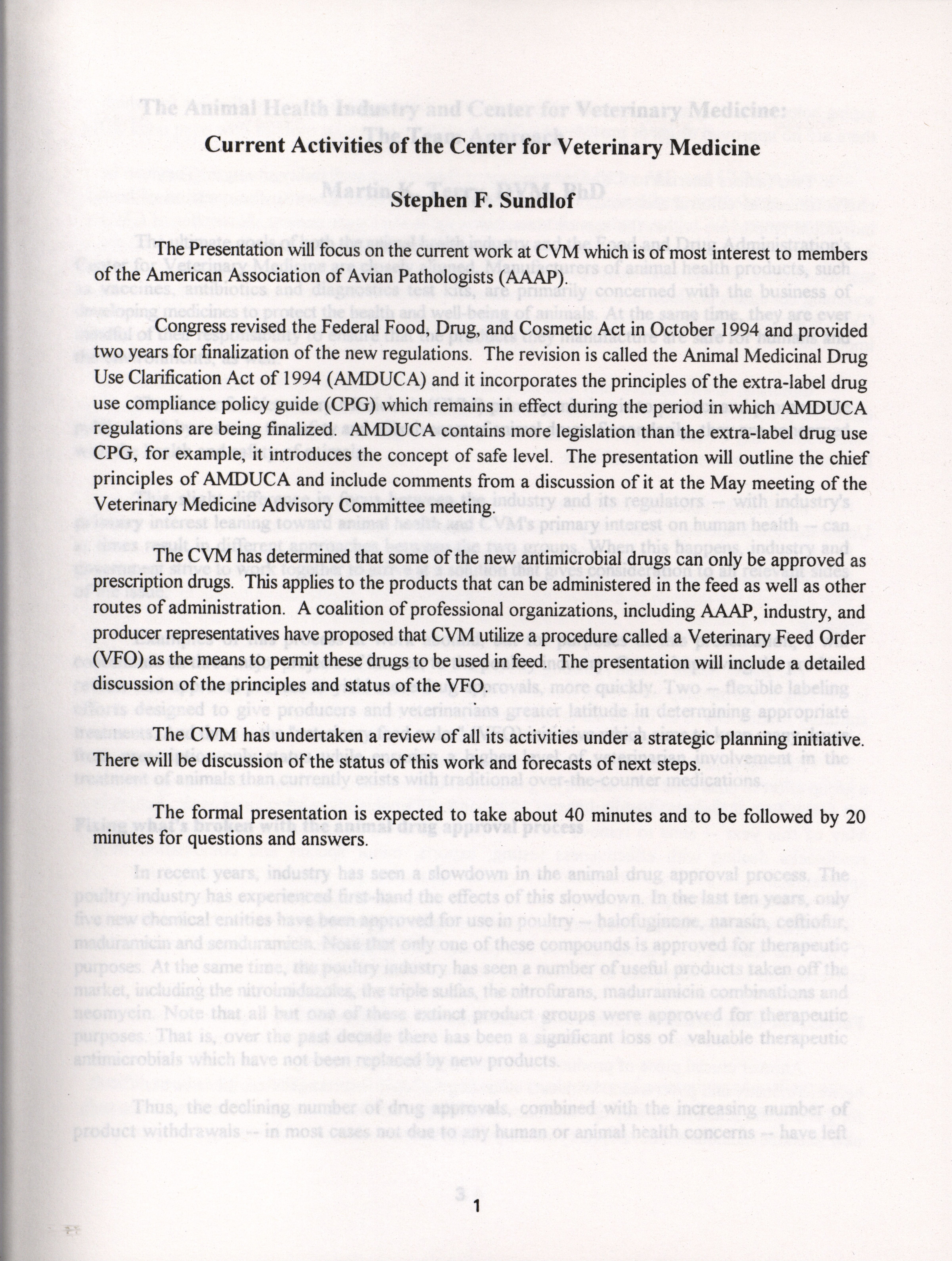 American Association of Avian Pathologists symposium on drugs and therapeutics for poultry, July 9, 1995 Item Info