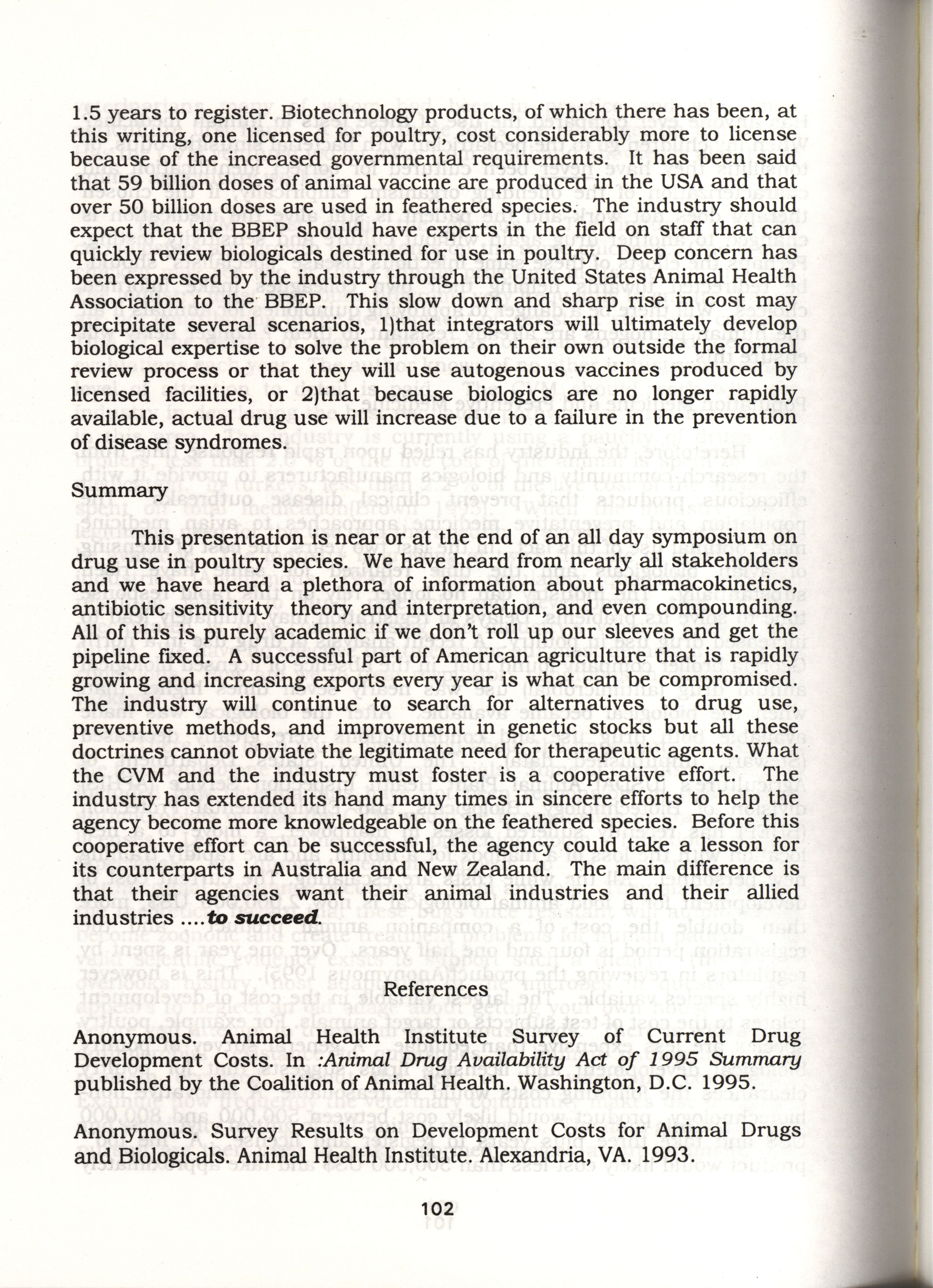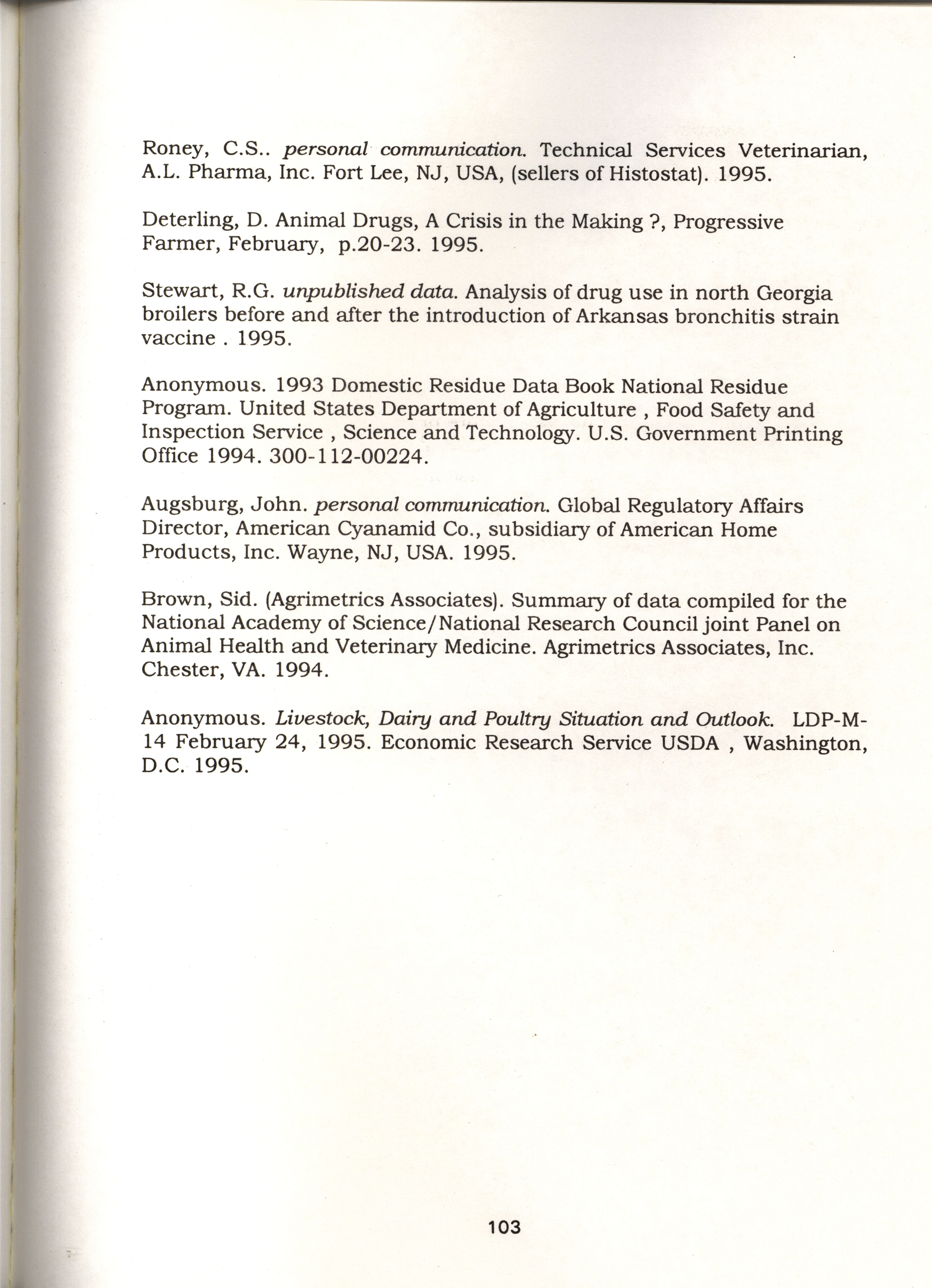 - "American Association of Avian Pathologists symposium on drugs and therapeutics for poultry, July 9, 1995", American Association of Avian Pathologists Collection, Iowa State University Library Digital Collections
