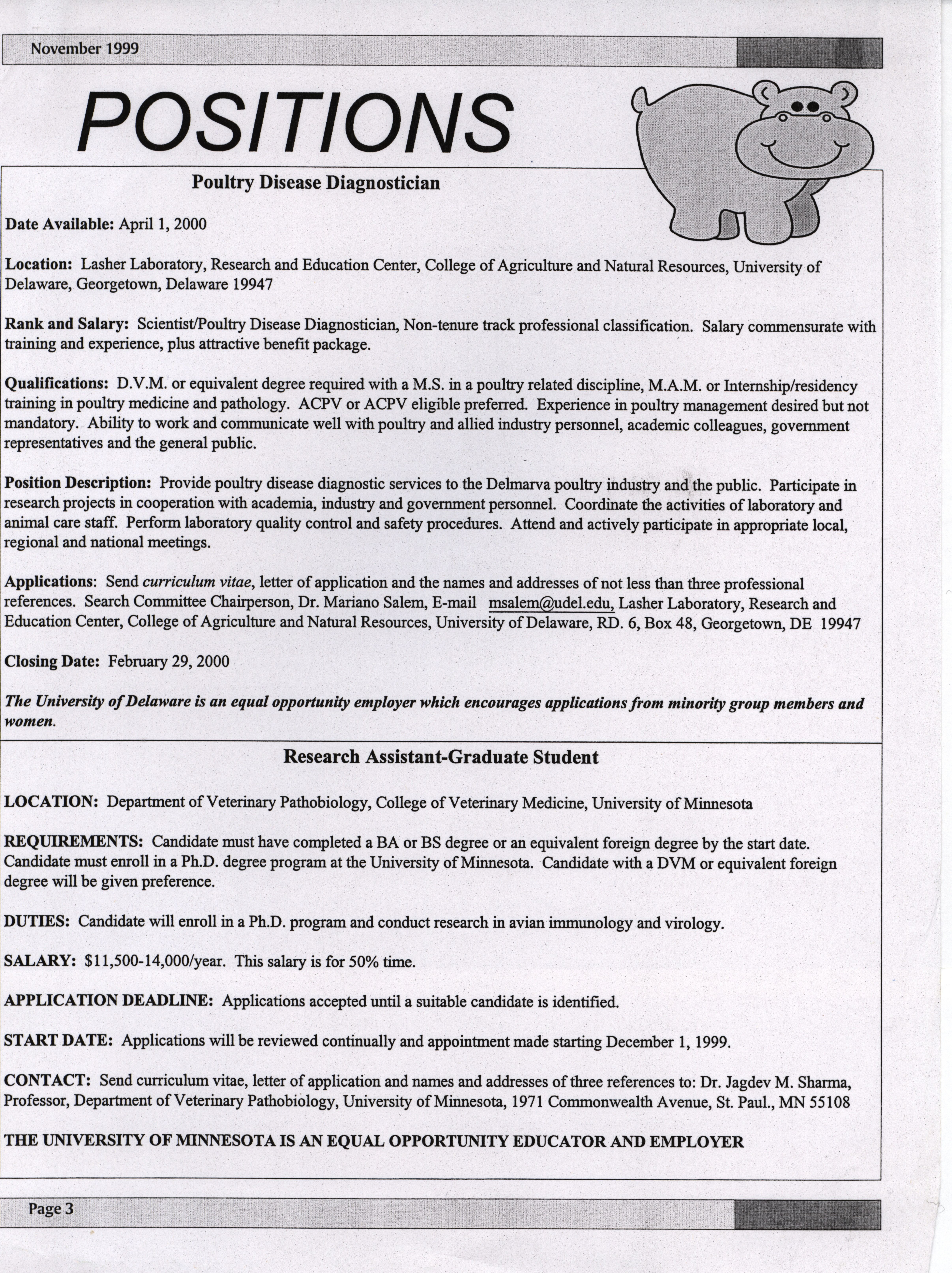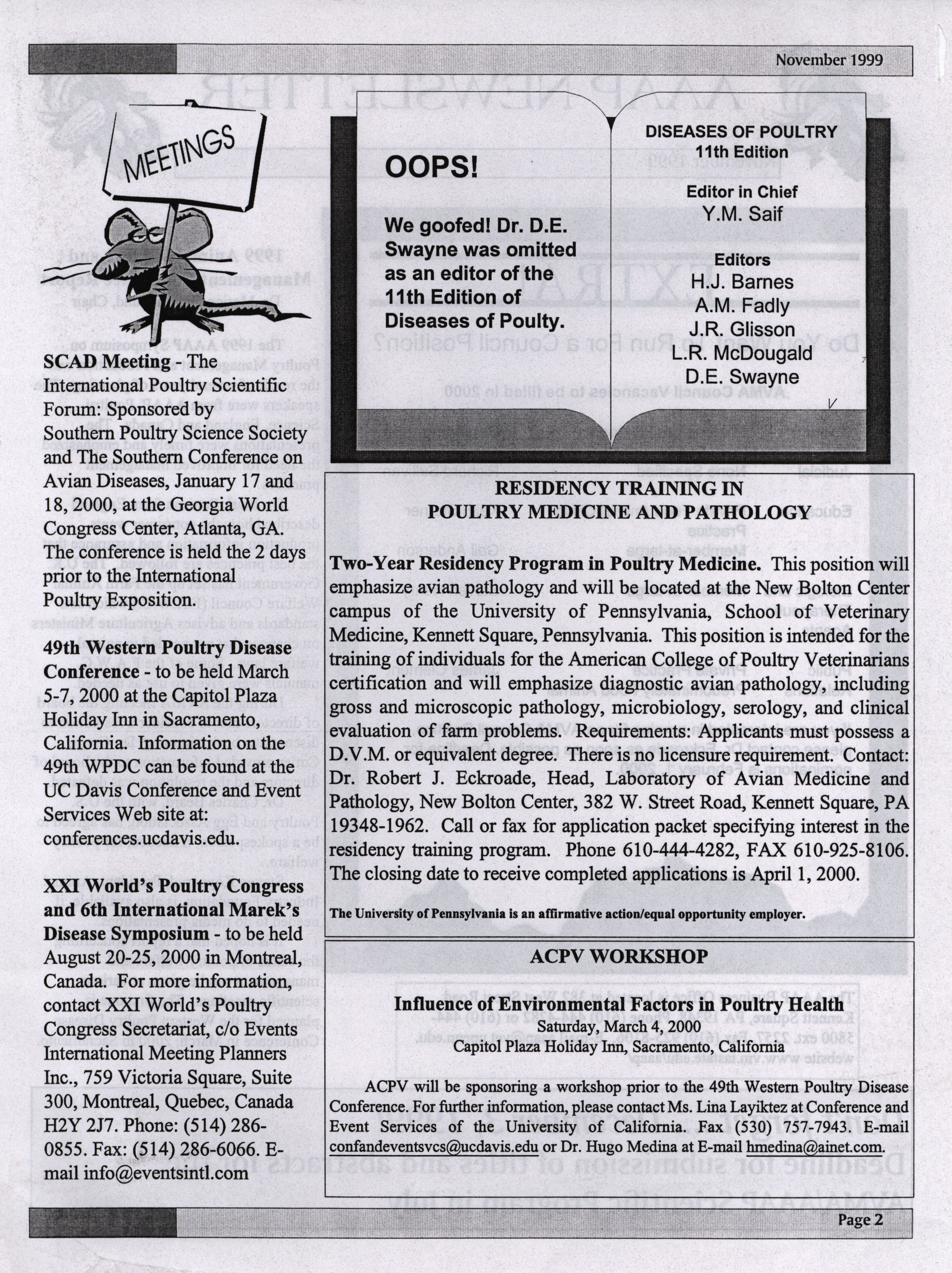 - "AAAP newsletter, November 1999", American Association of Avian Pathologists Collection, Iowa State University Library Digital Collections