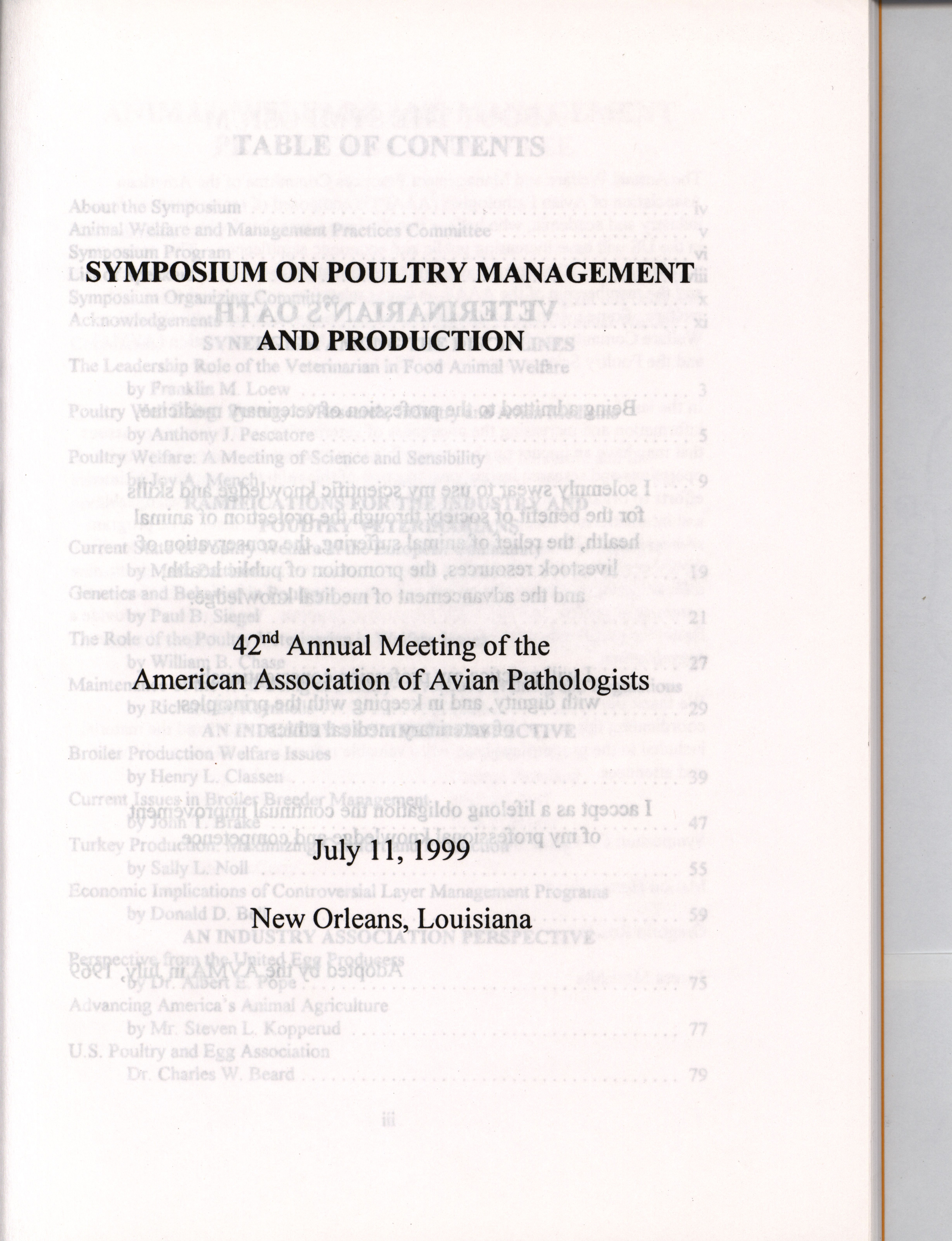 American Association of Avian Pathologists symposium on poultry management and production, July 11, 1999 Item Info