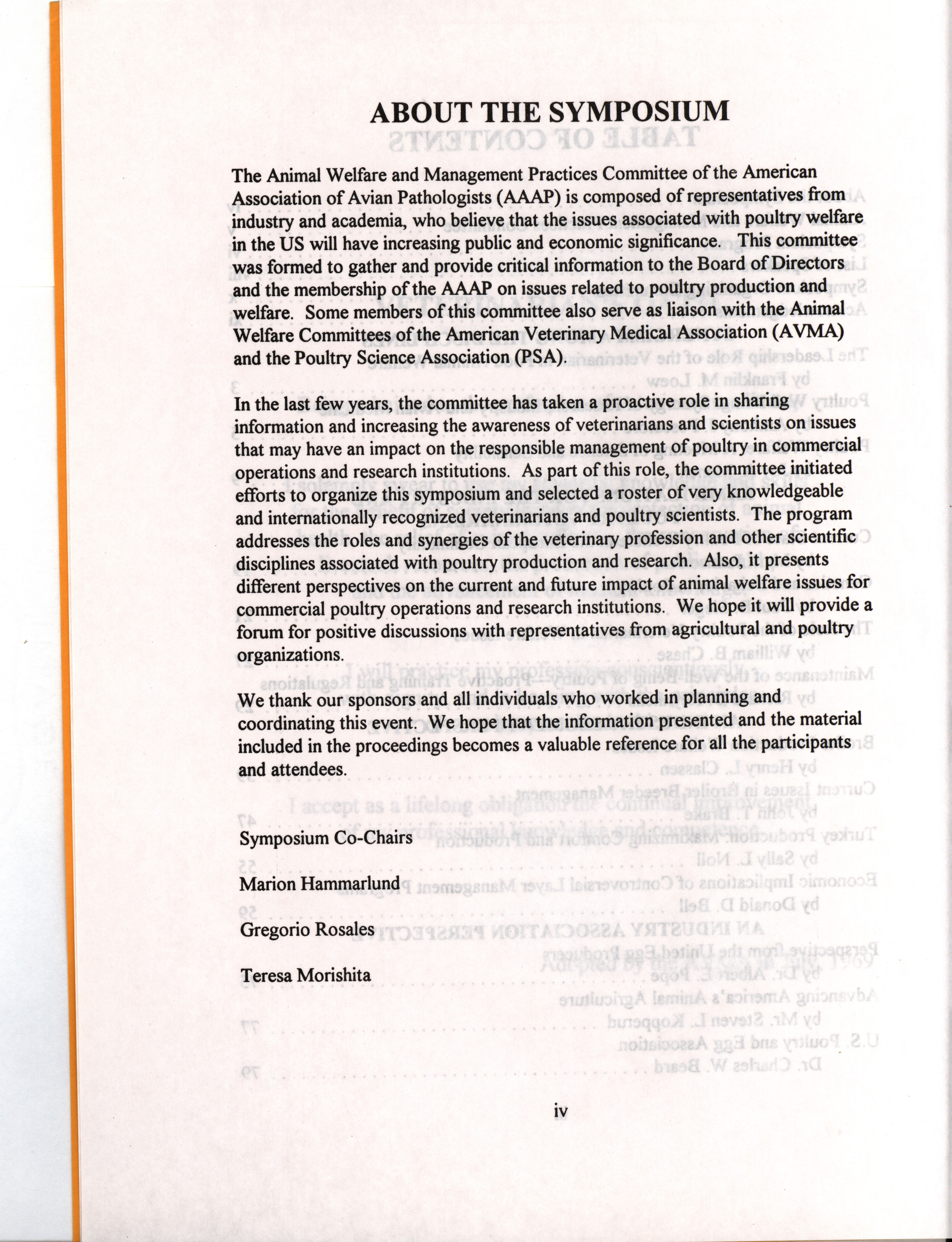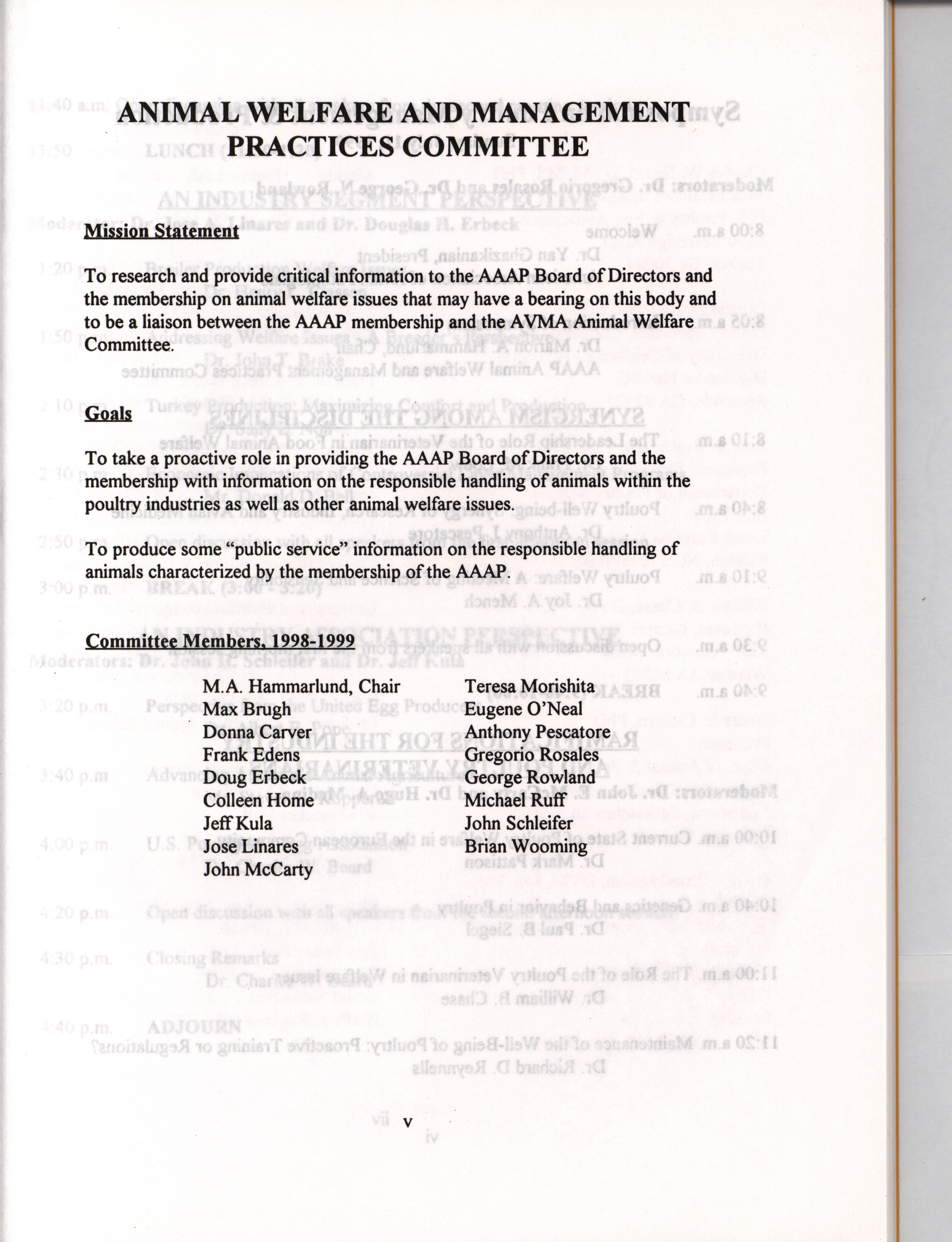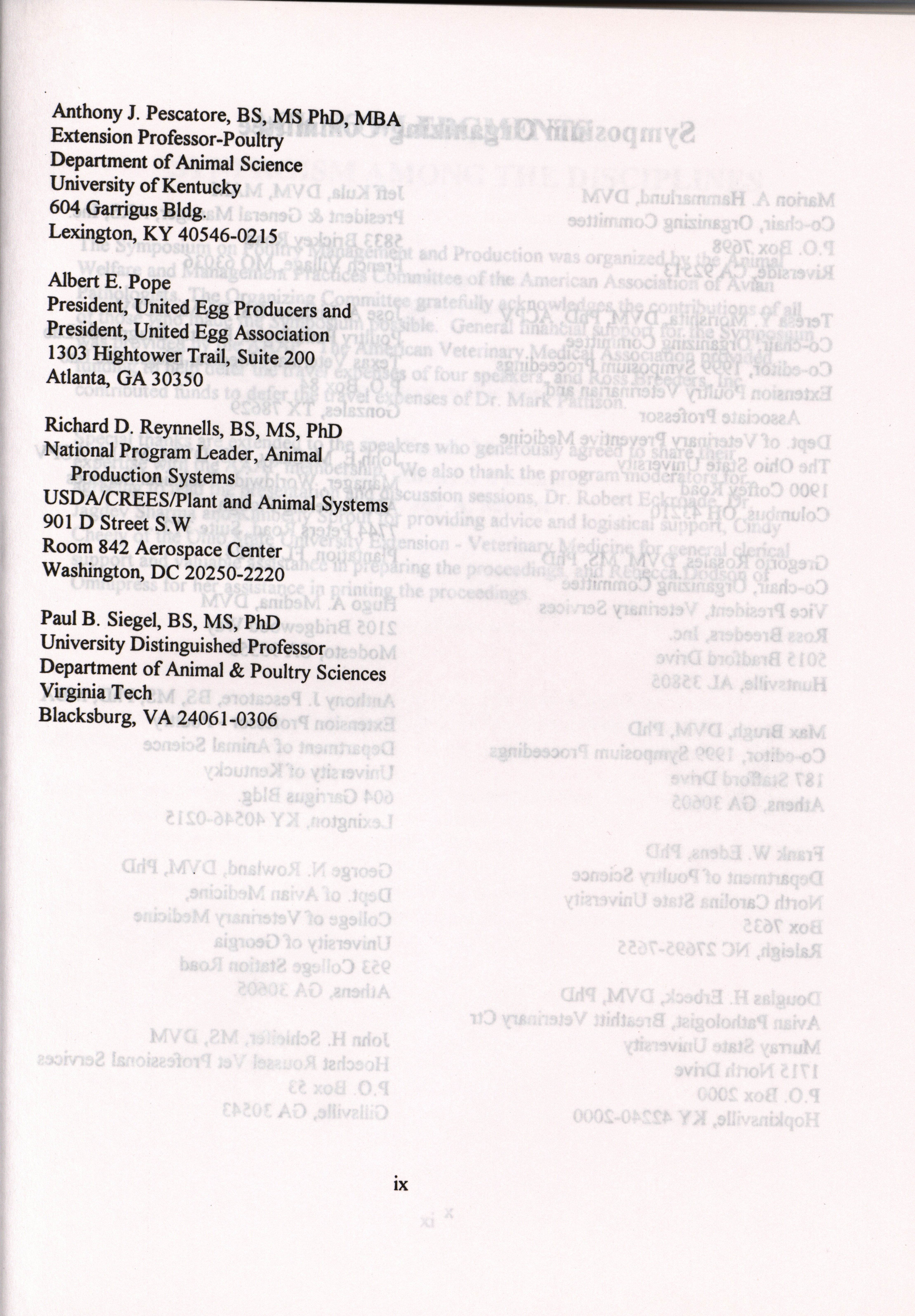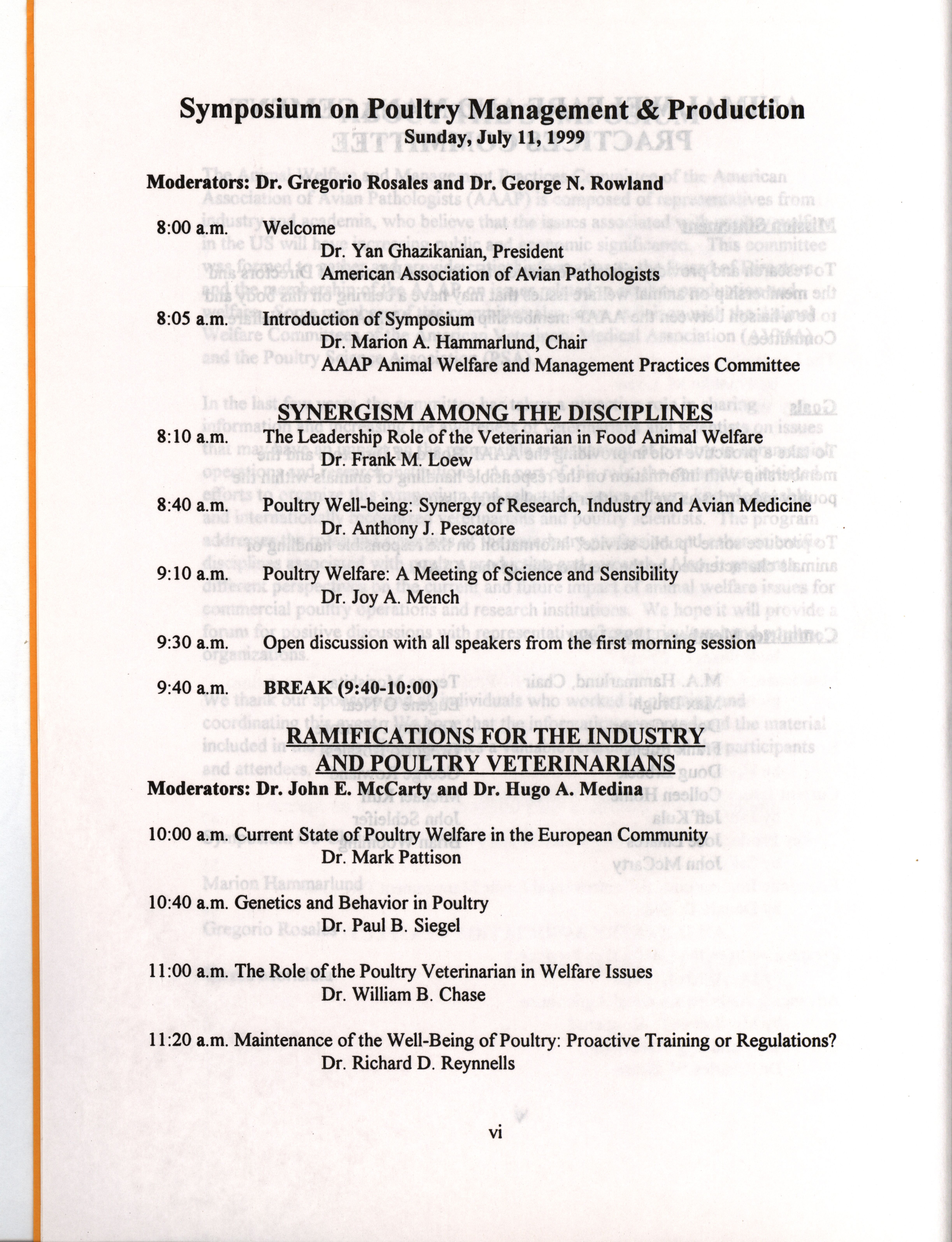 - "American Association of Avian Pathologists symposium on poultry management and production, July 11, 1999", American Association of Avian Pathologists Collection, Iowa State University Library Digital Collections