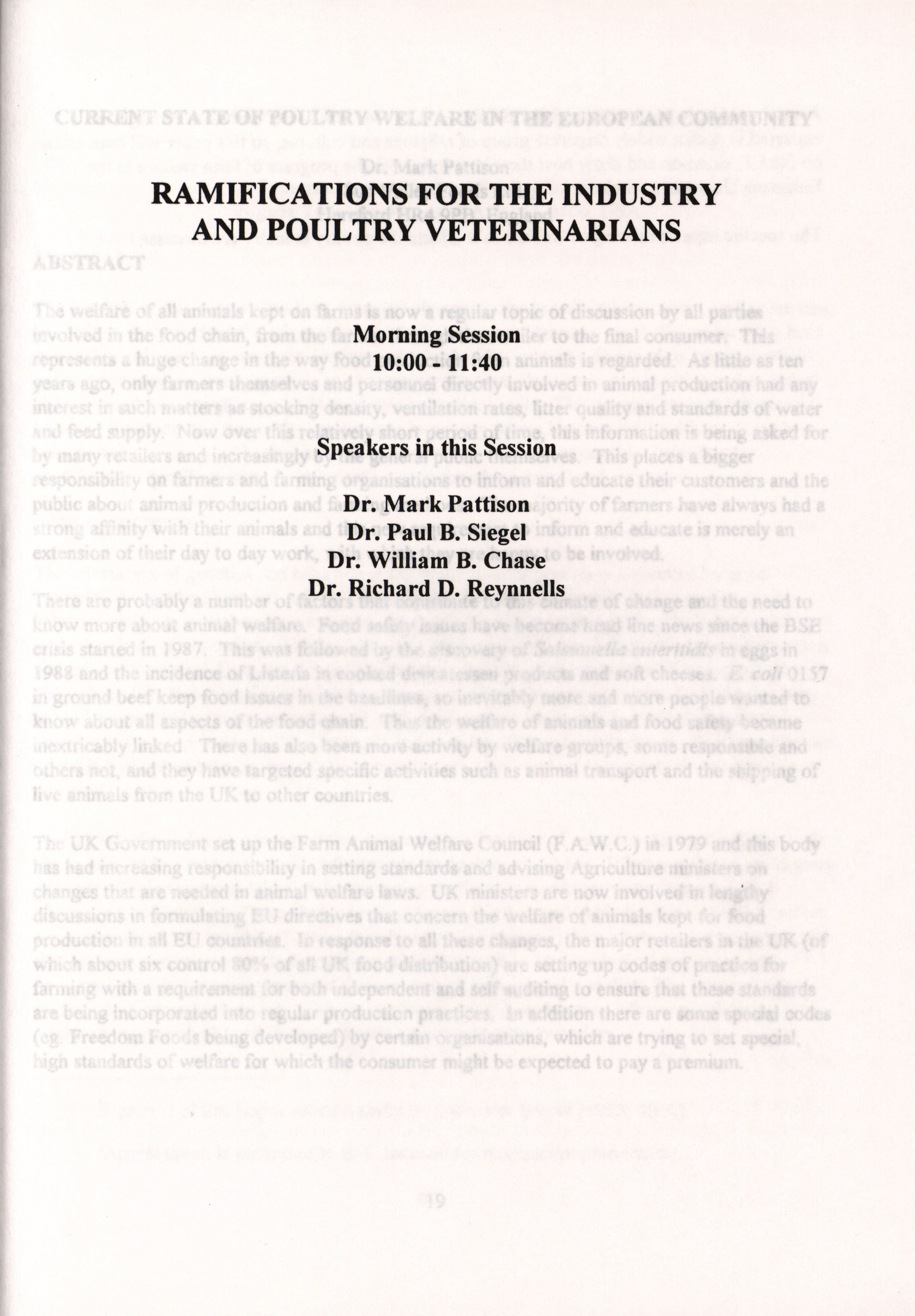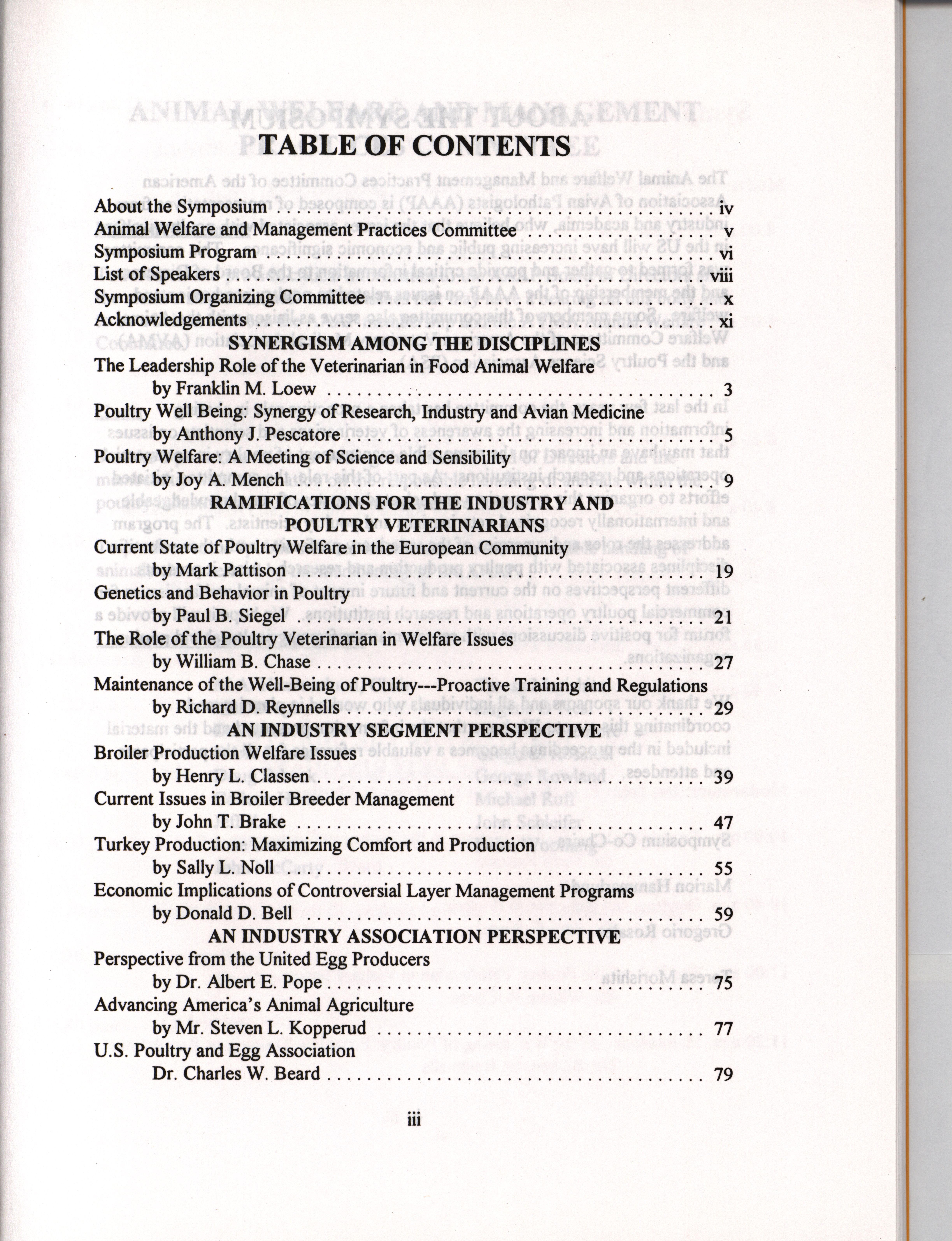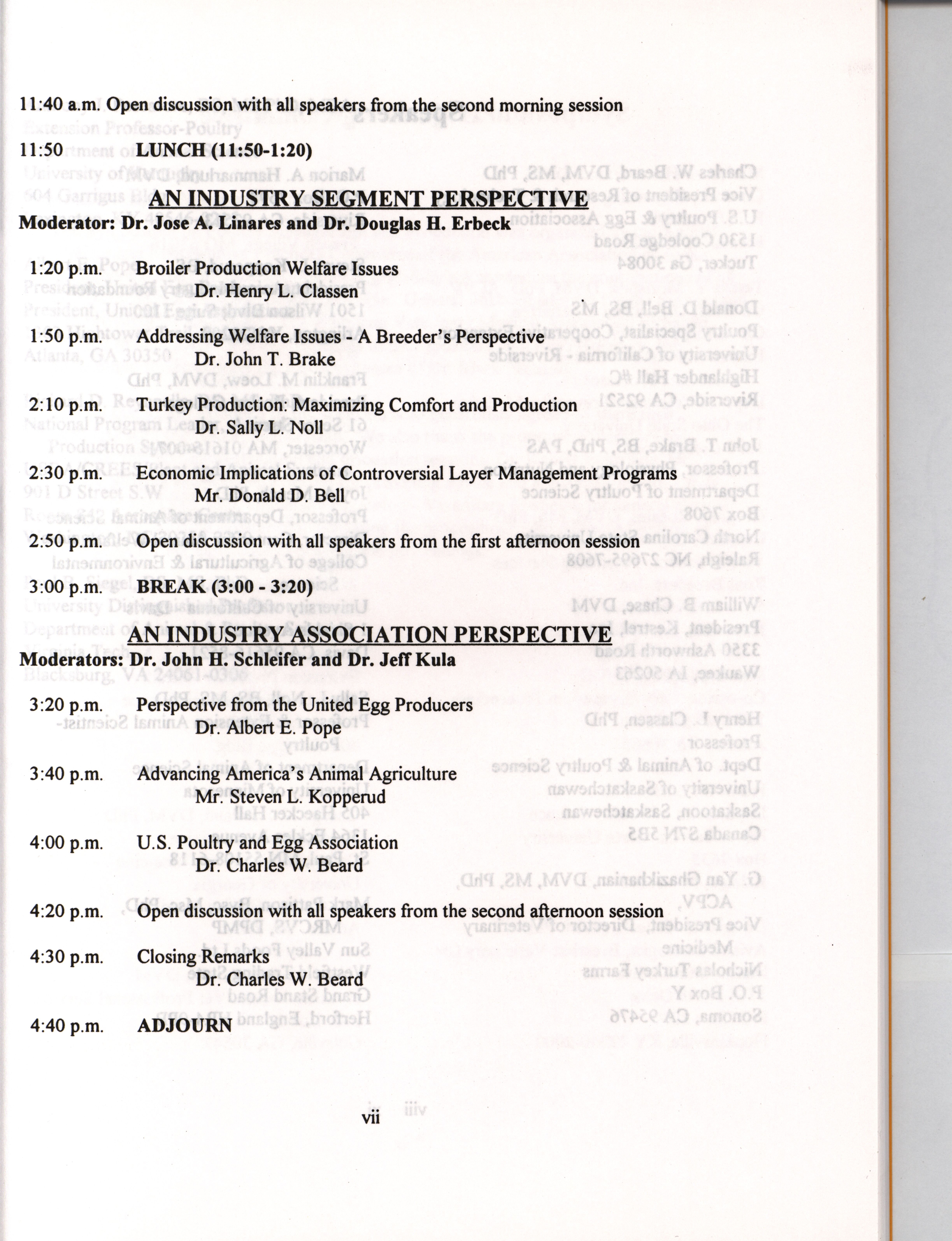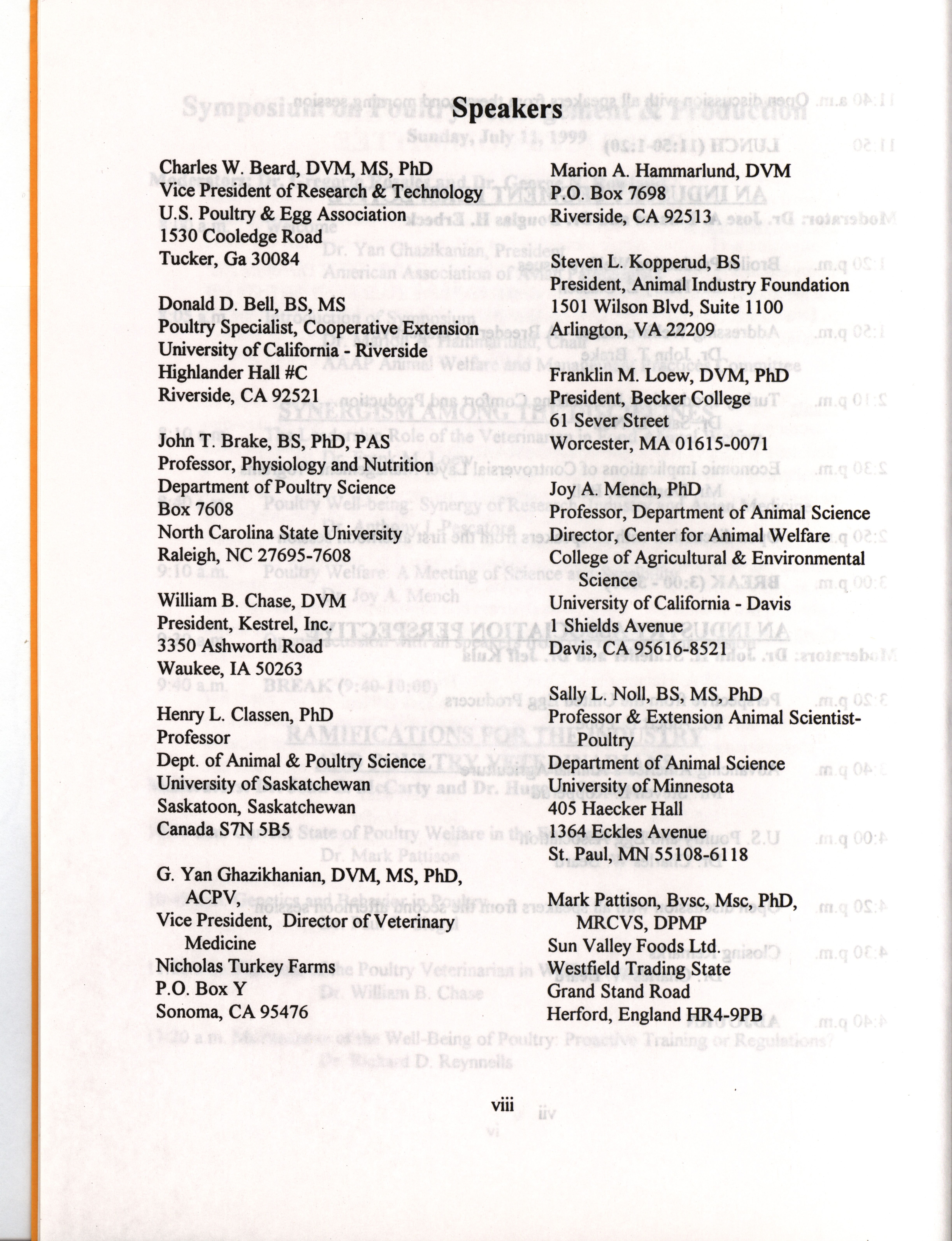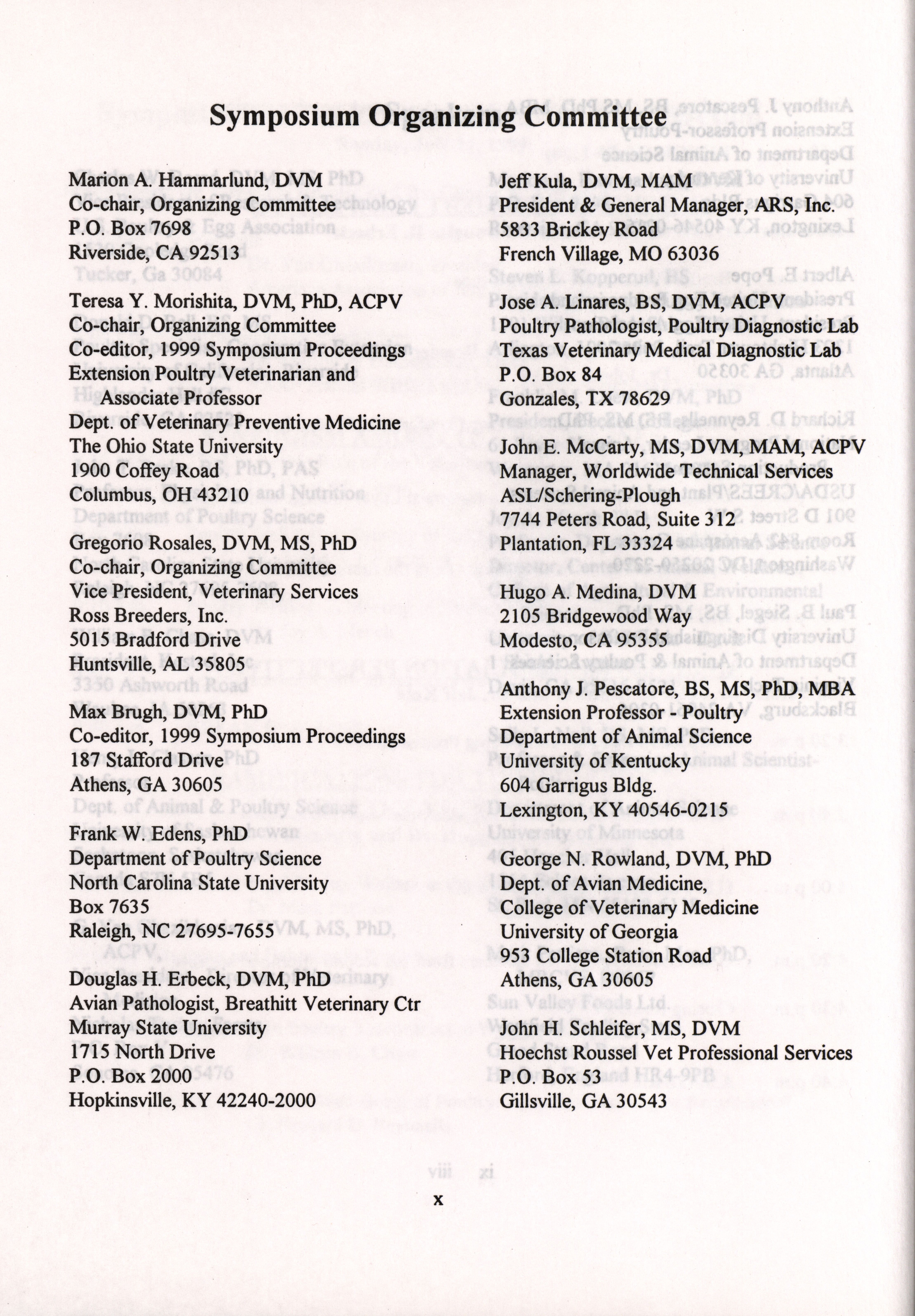 - "American Association of Avian Pathologists symposium on poultry management and production, July 11, 1999", American Association of Avian Pathologists Collection, Iowa State University Library Digital Collections