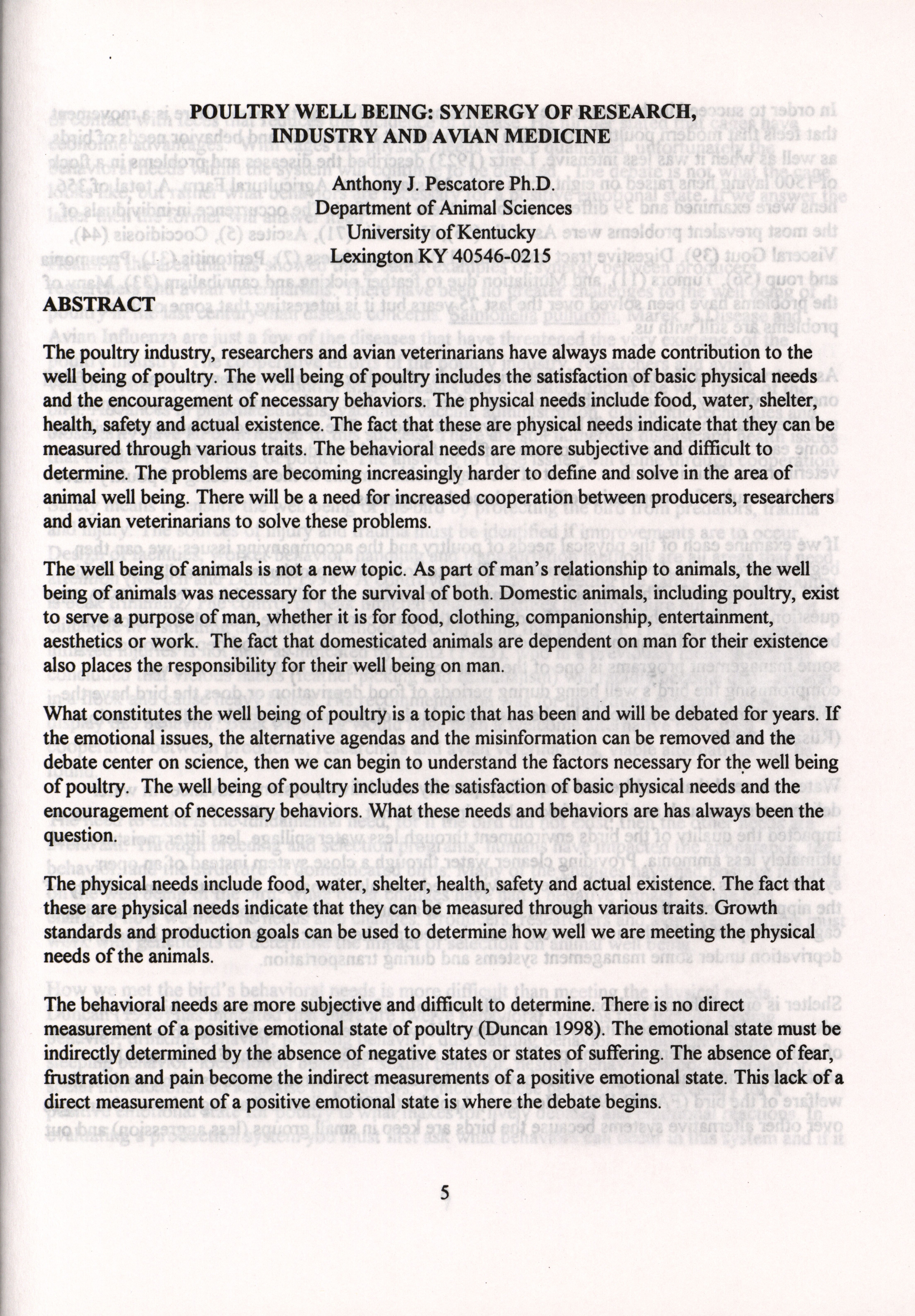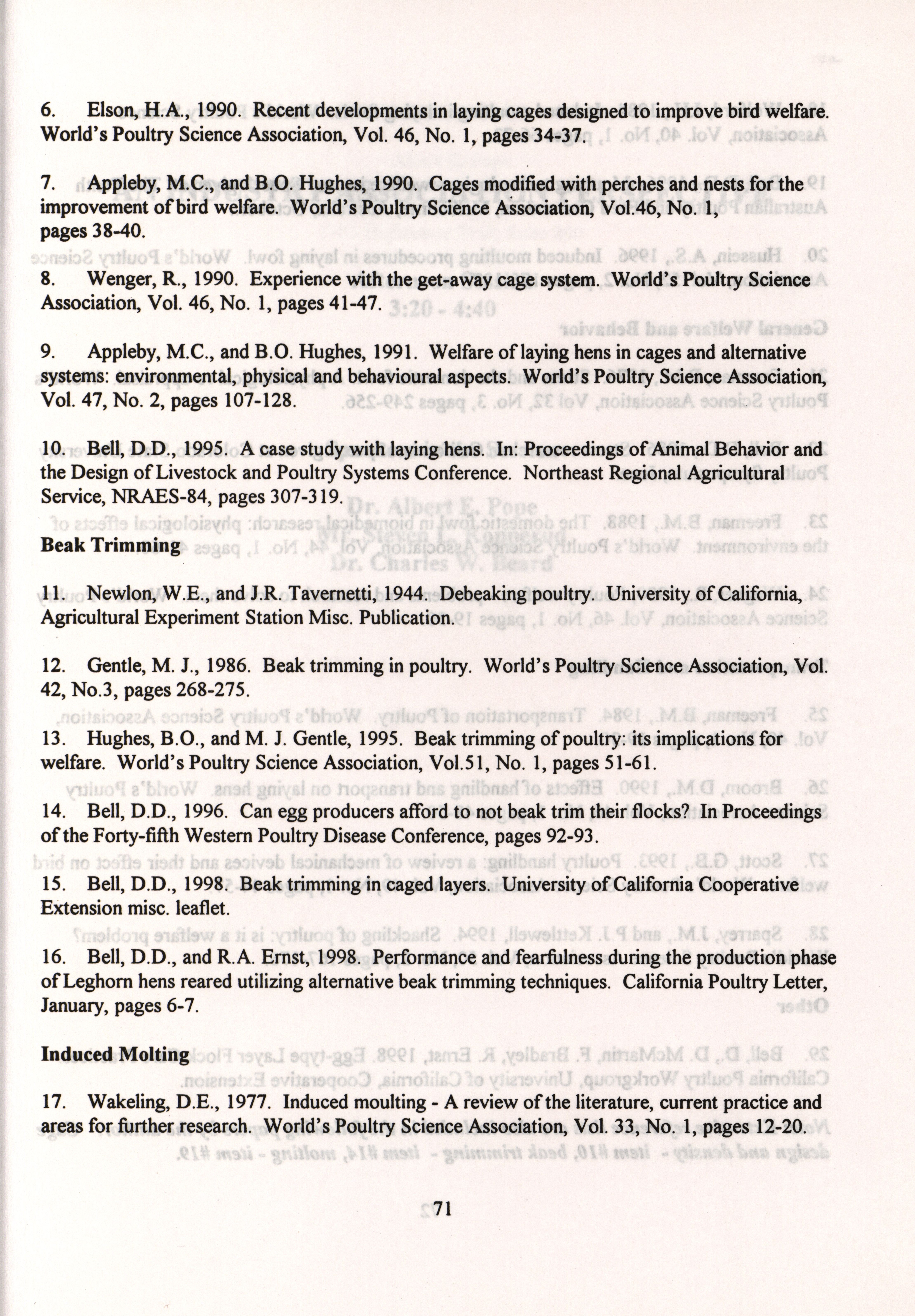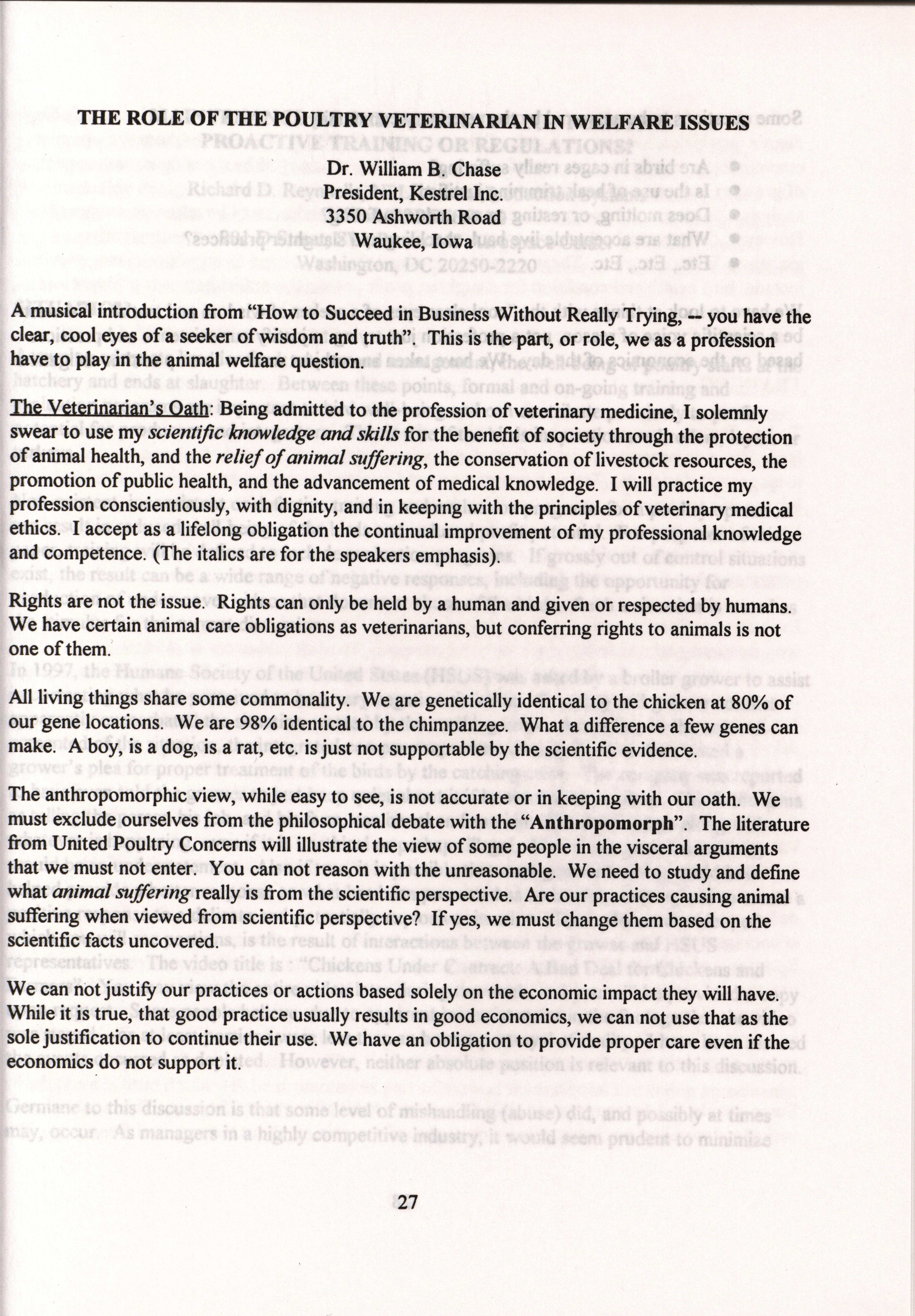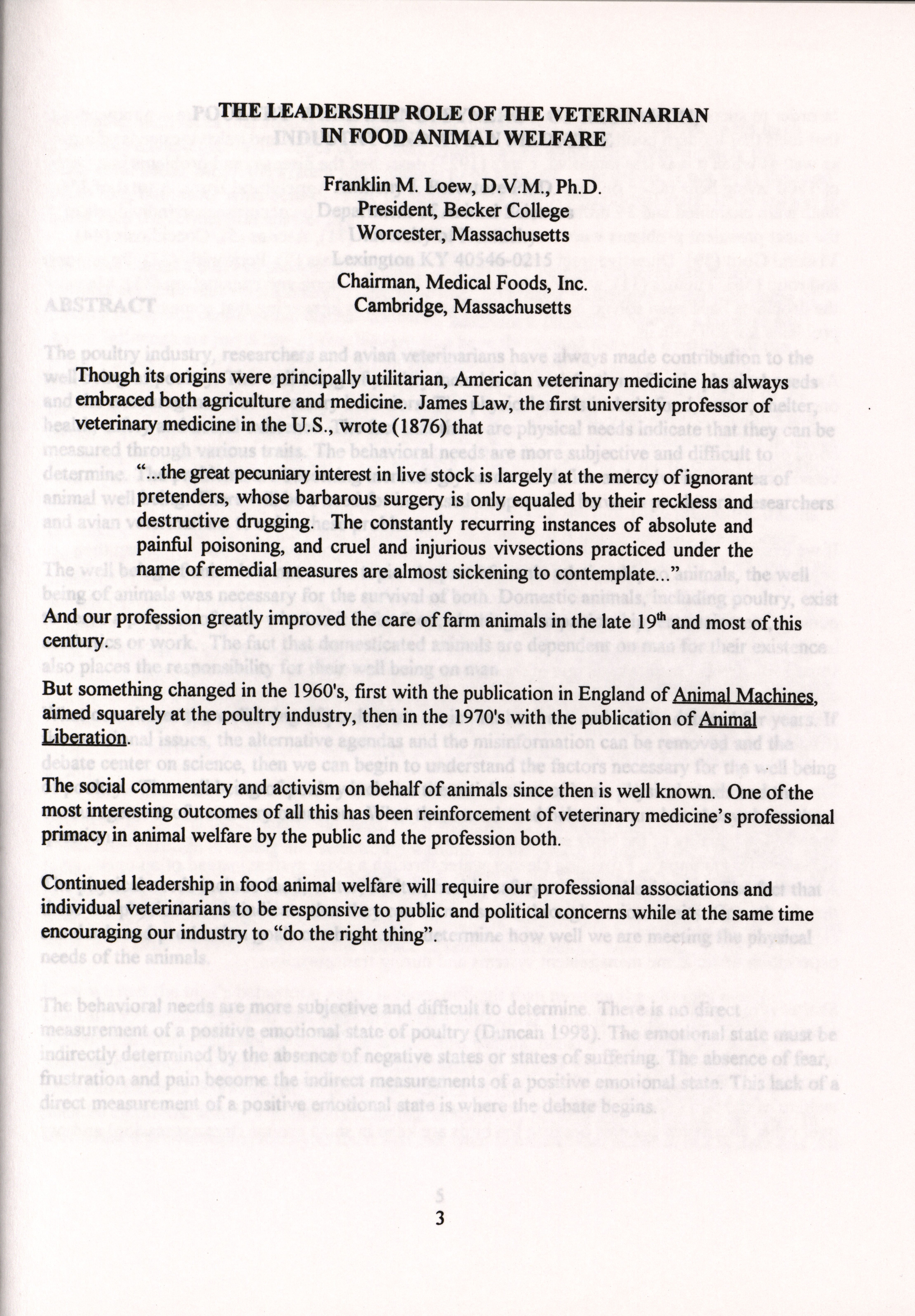 - "American Association of Avian Pathologists symposium on poultry management and production, July 11, 1999", American Association of Avian Pathologists Collection, Iowa State University Library Digital Collections