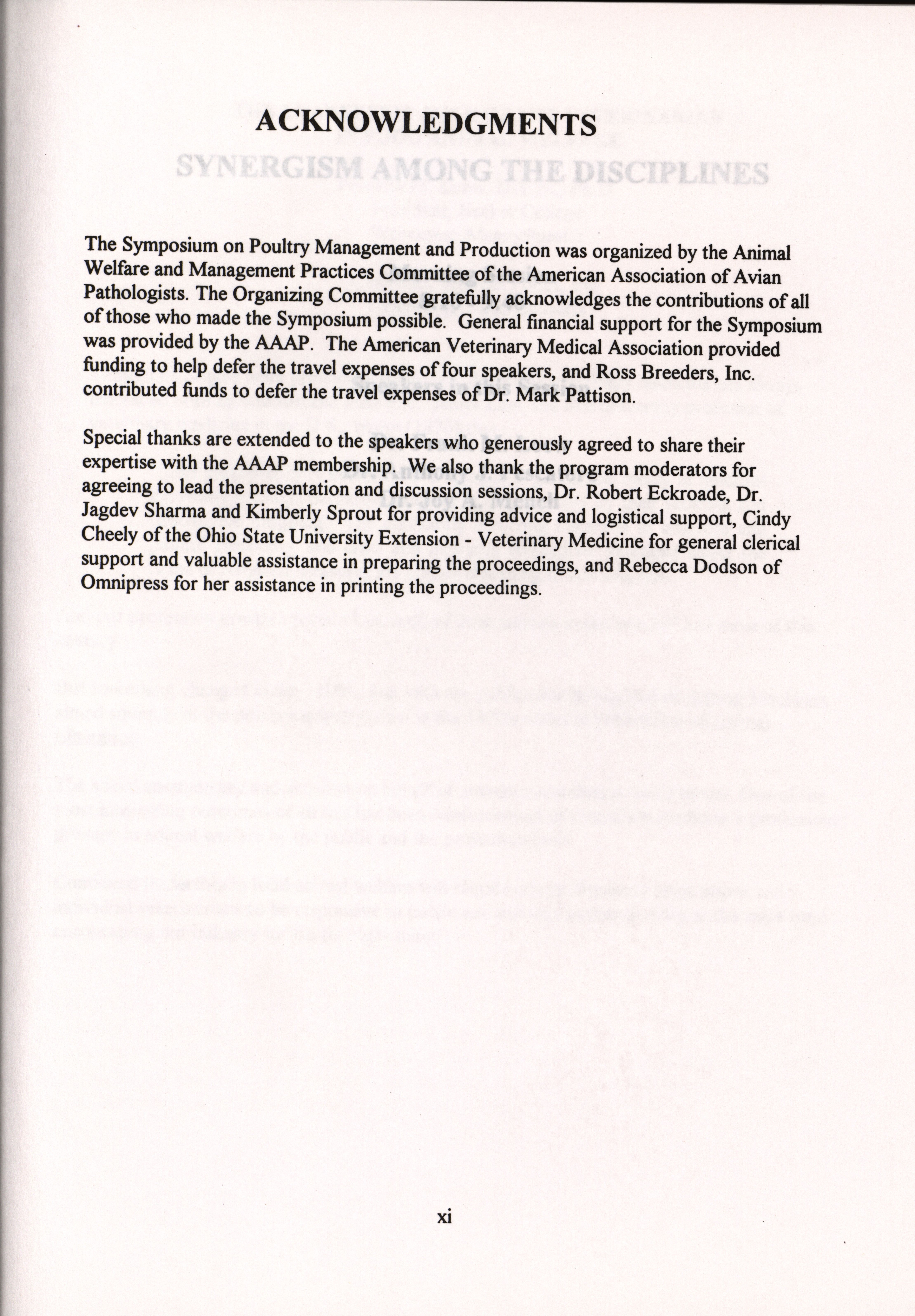 - American Association of Avian Pathologists symposium on poultry management and production, July 11, 1999