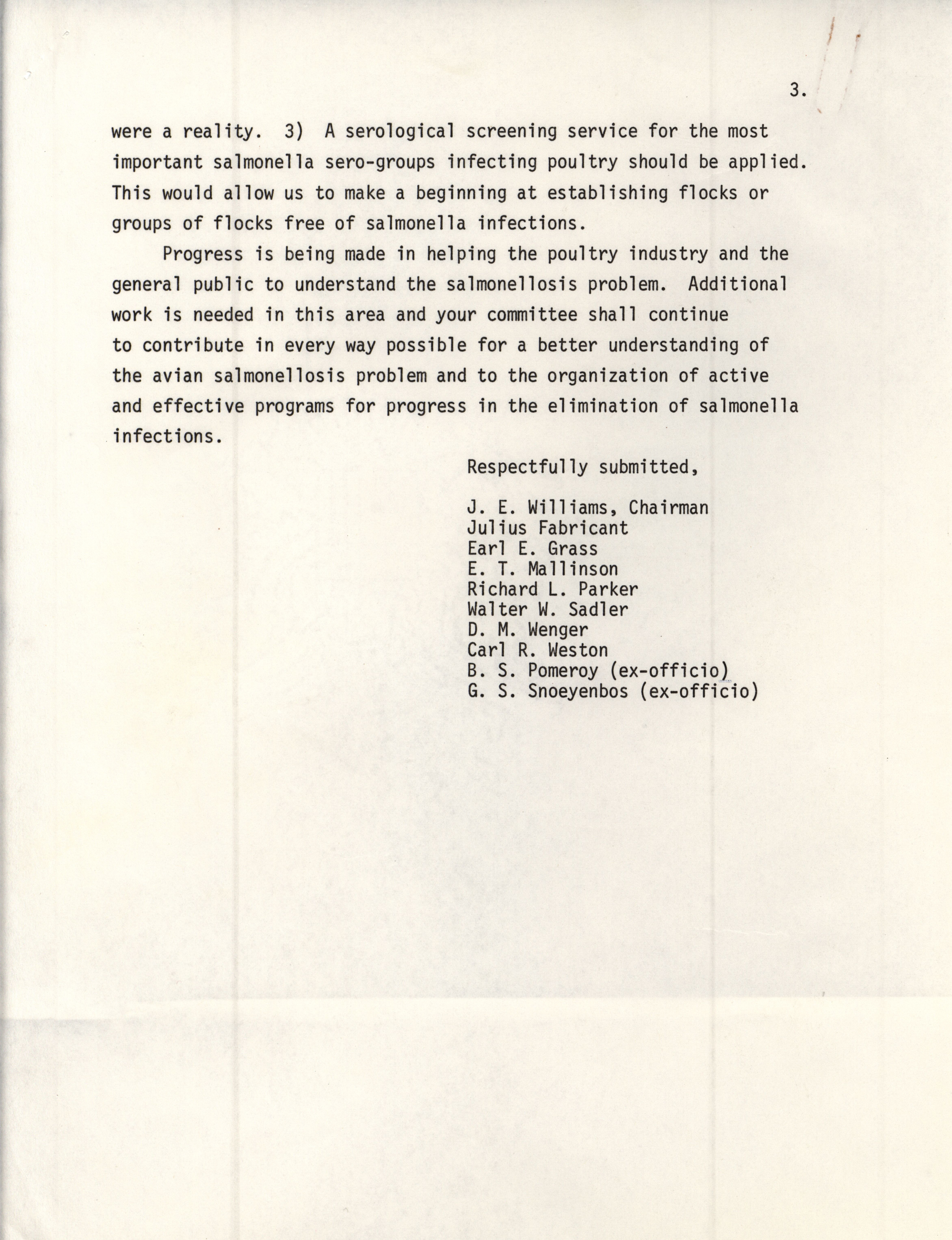 - "Report of the committee on salmonellosis American Association of Avian Pathologists, July 17, 1973", American Association of Avian Pathologists Collection, Iowa State University Library Digital Collections