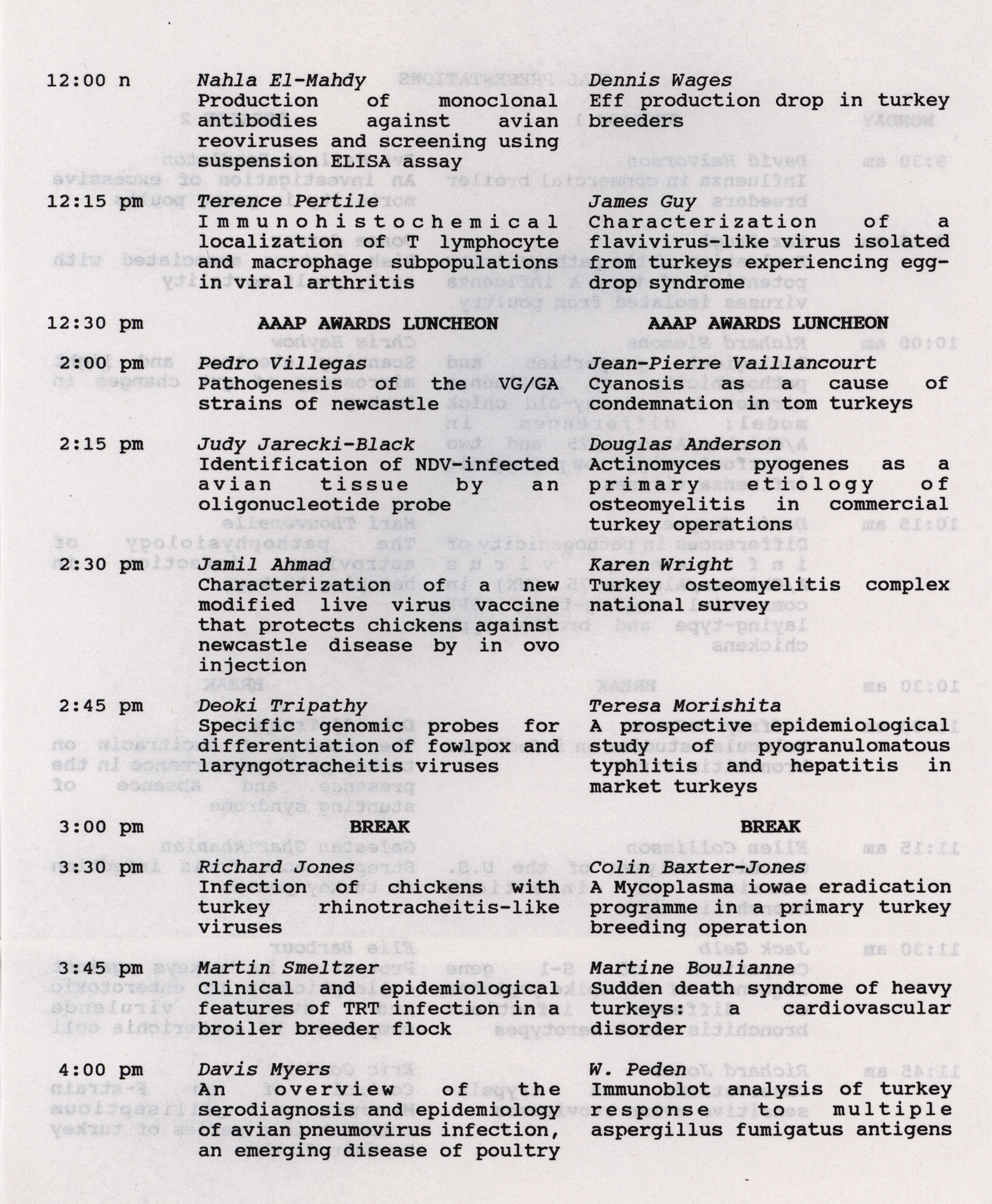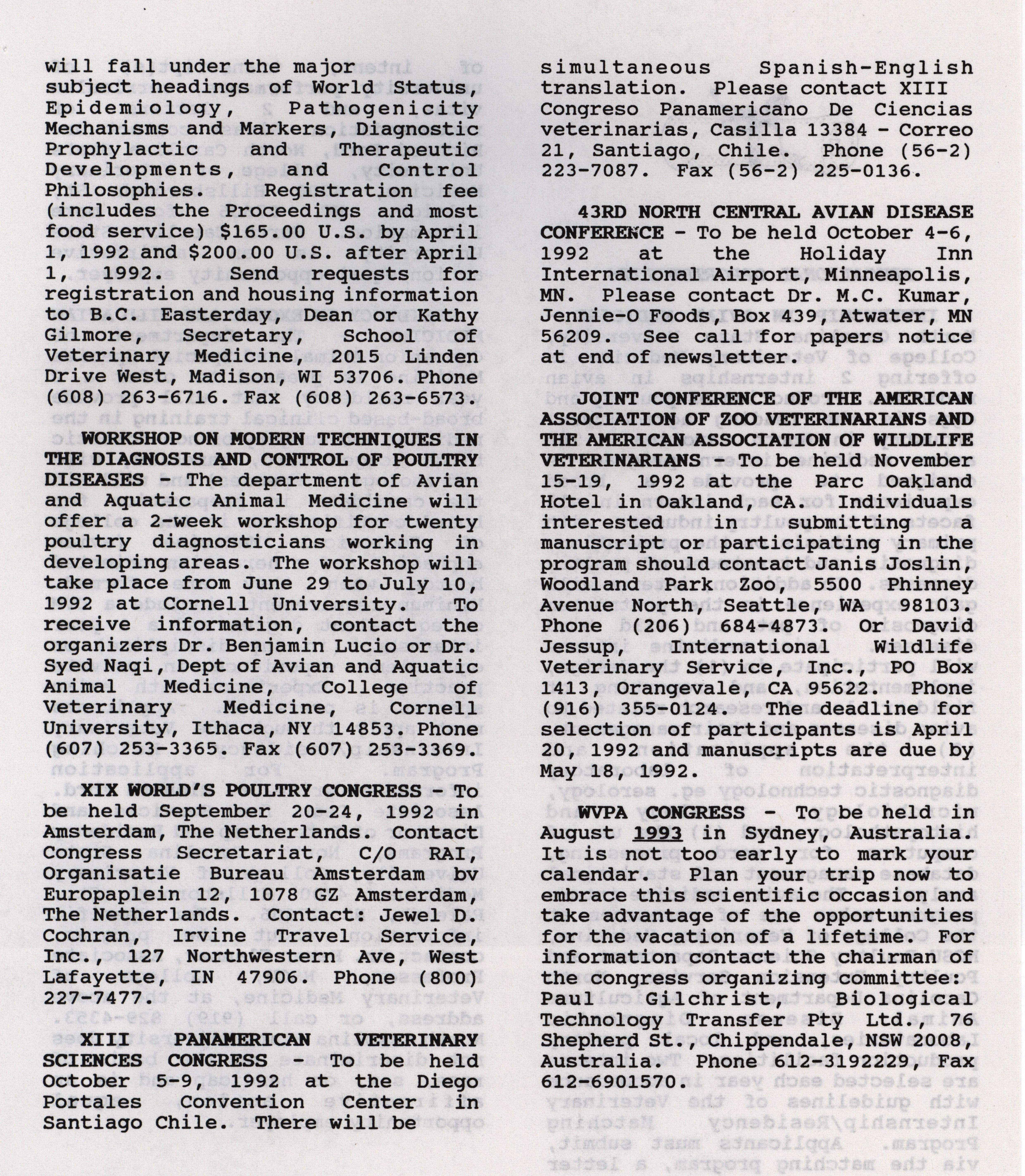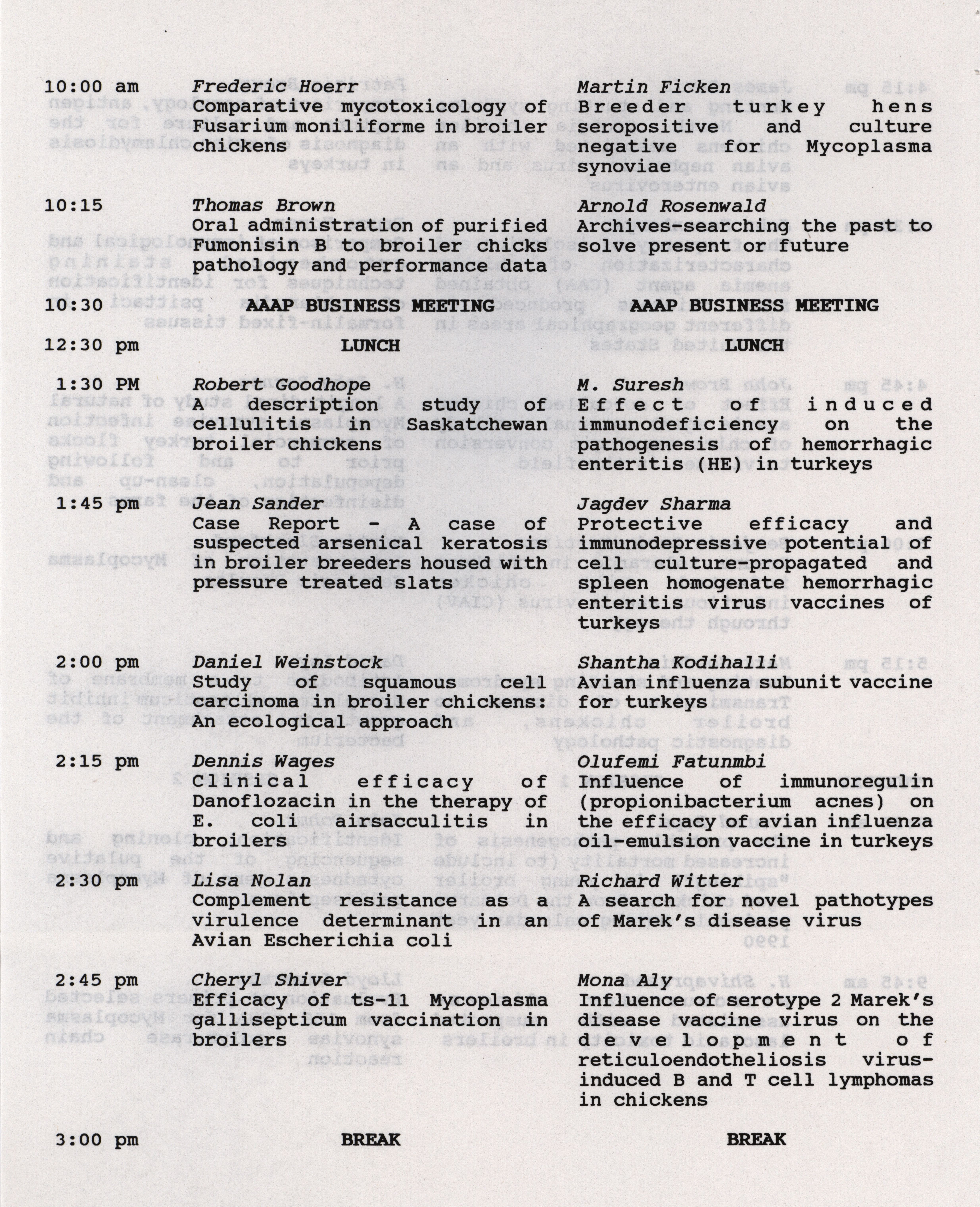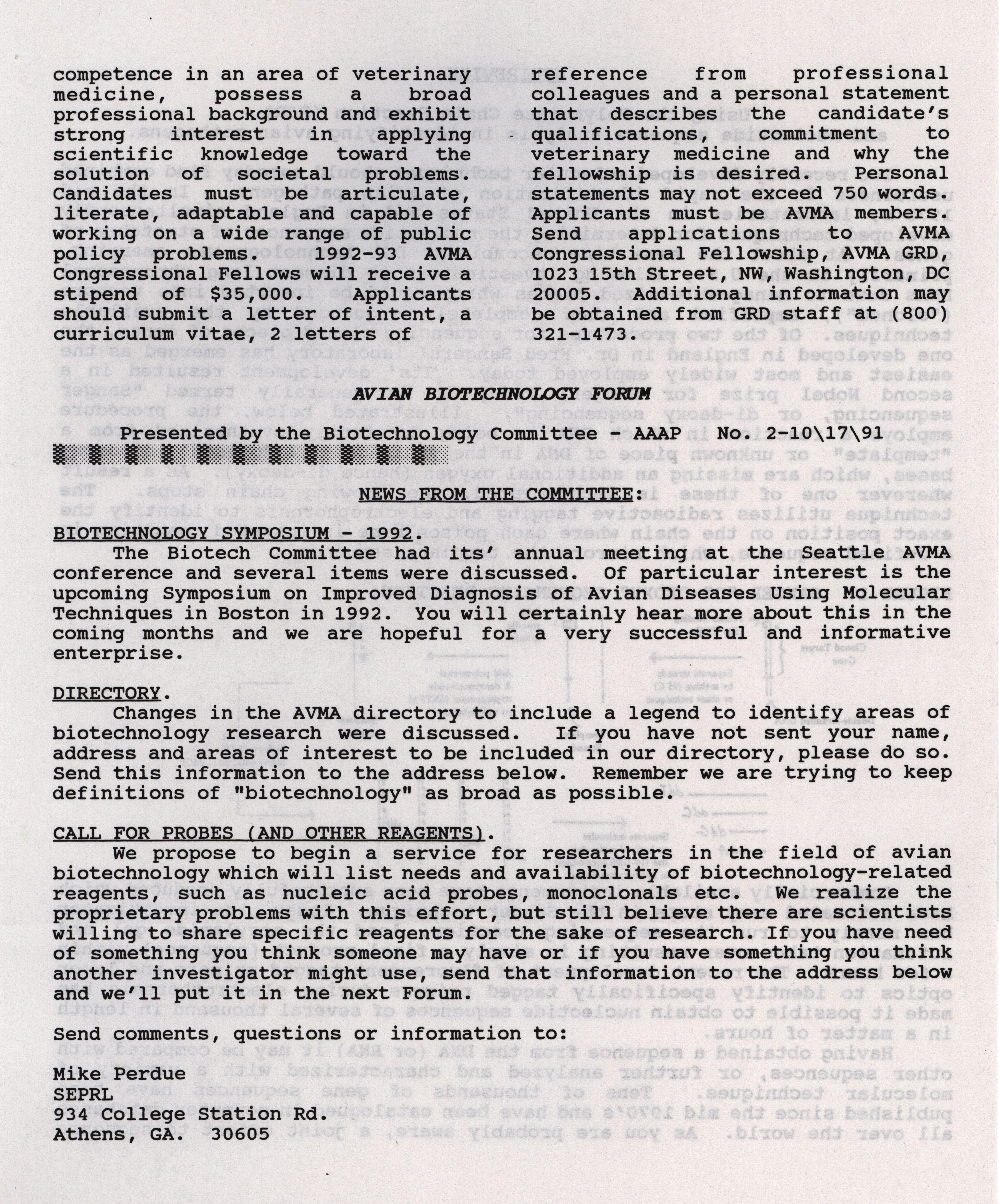 - "AAAP winter newsletter, February 17, 1992", American Association of Avian Pathologists Collection, Iowa State University Library Digital Collections