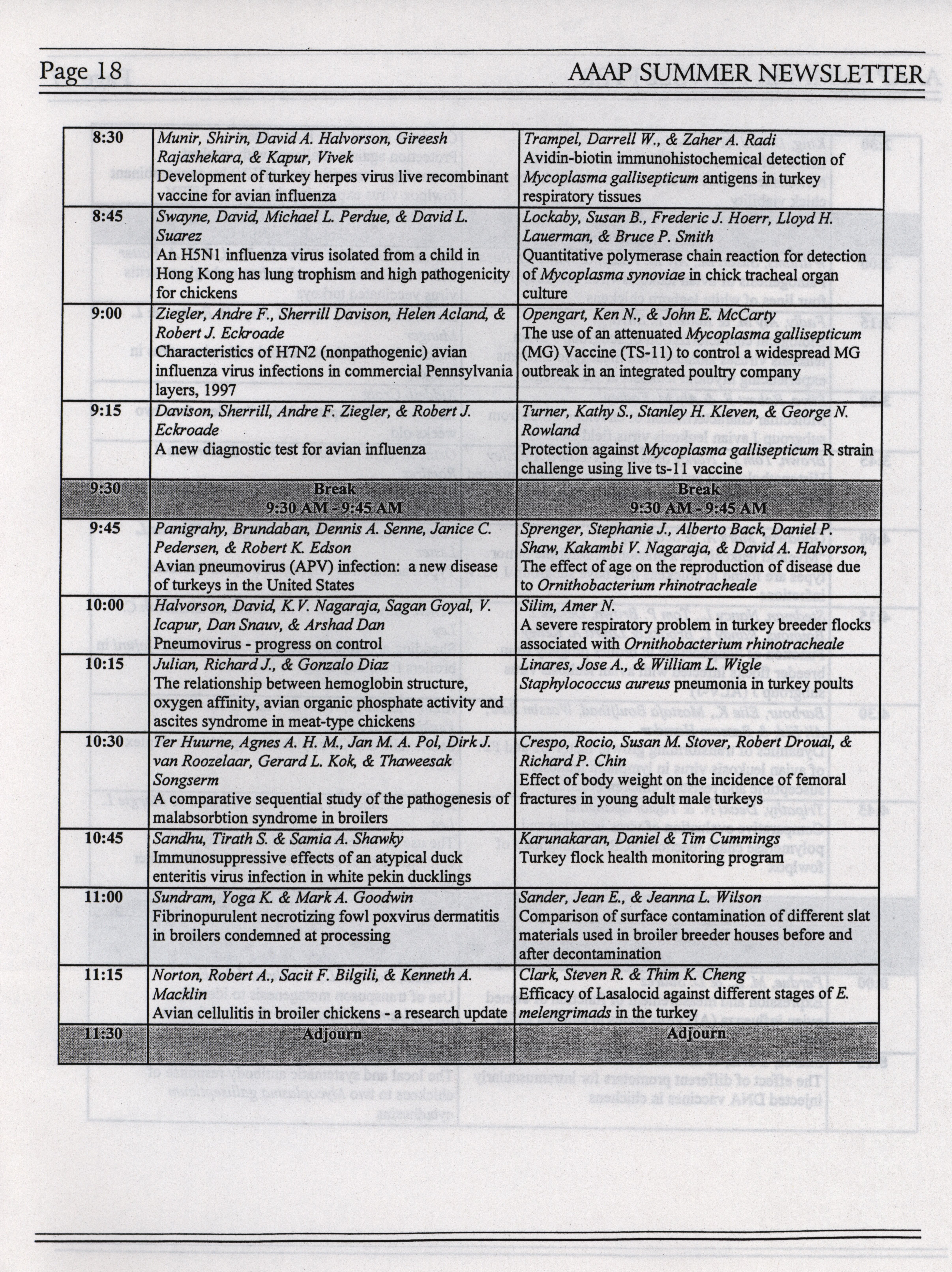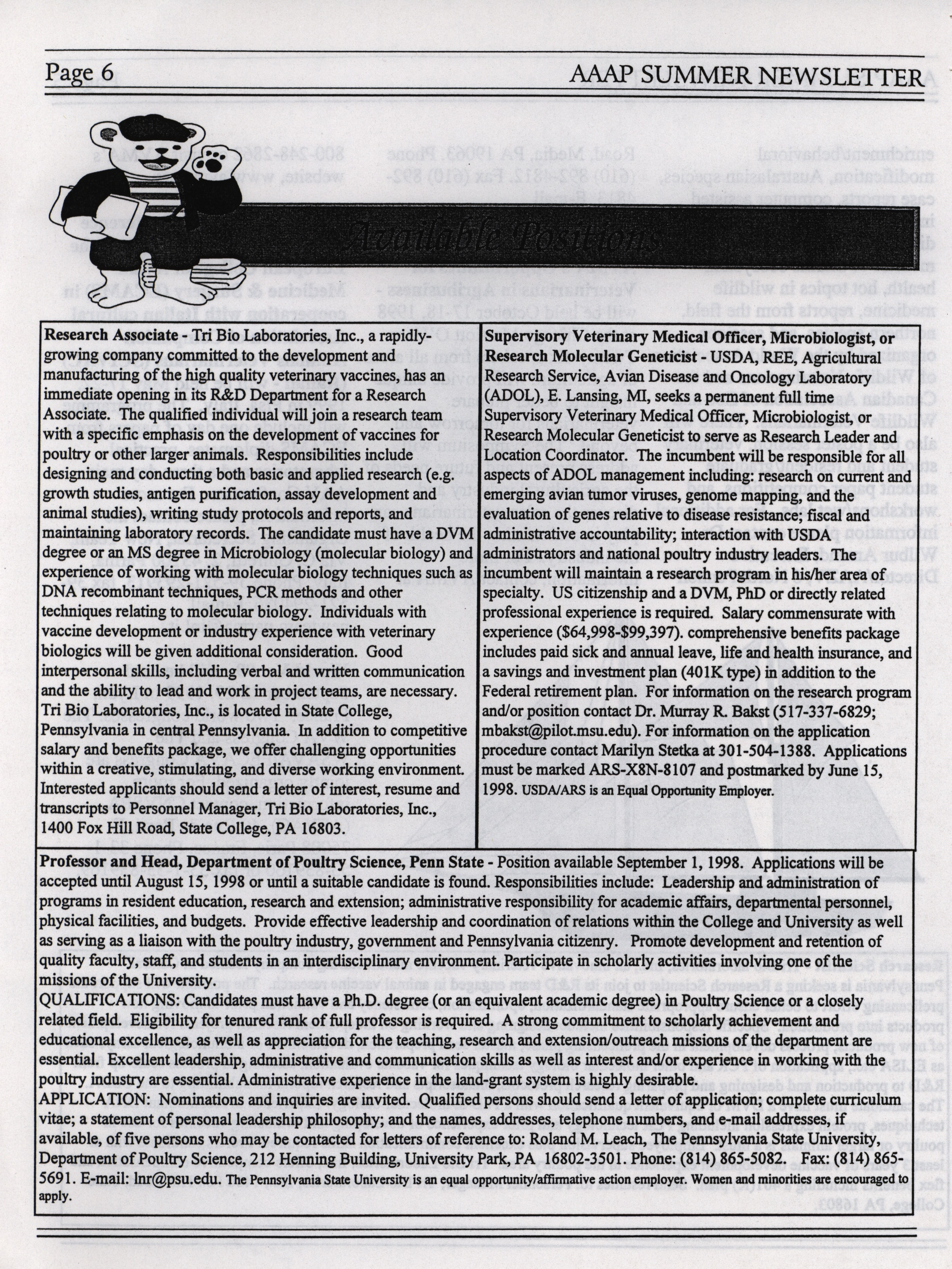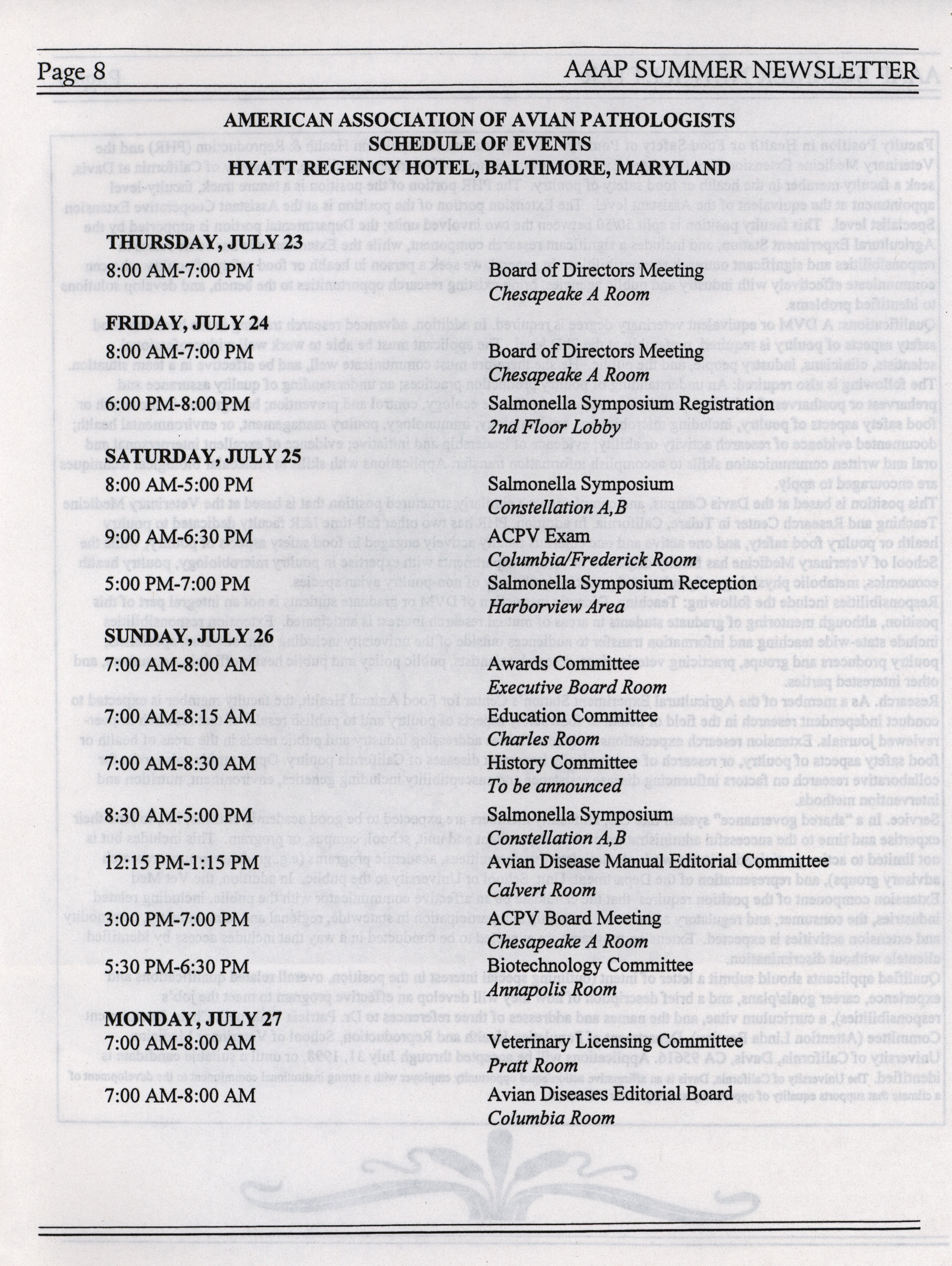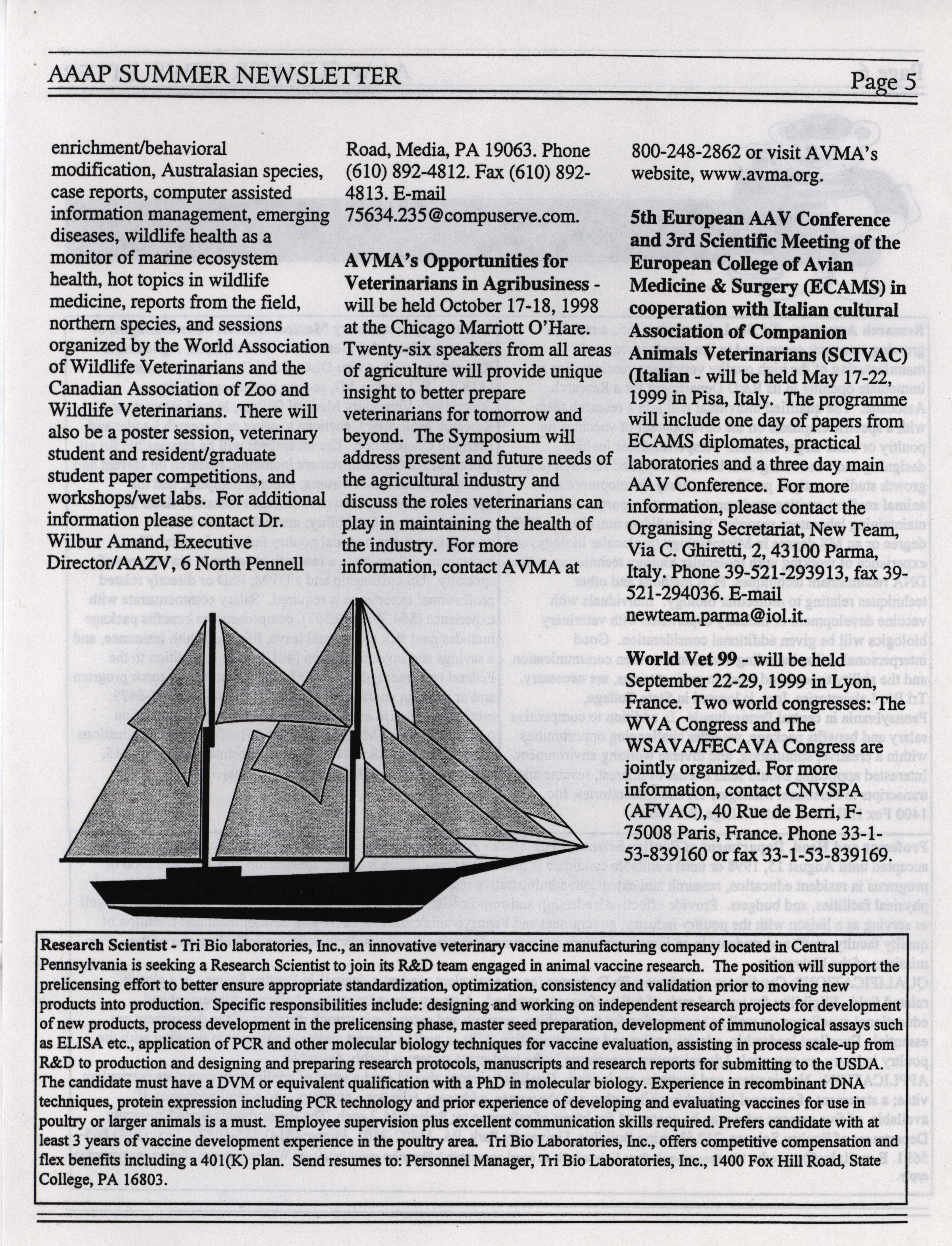 - Summer newsletter from the American Association of Avian Pathologists published in May 1998 including meeting information, programs and other news.