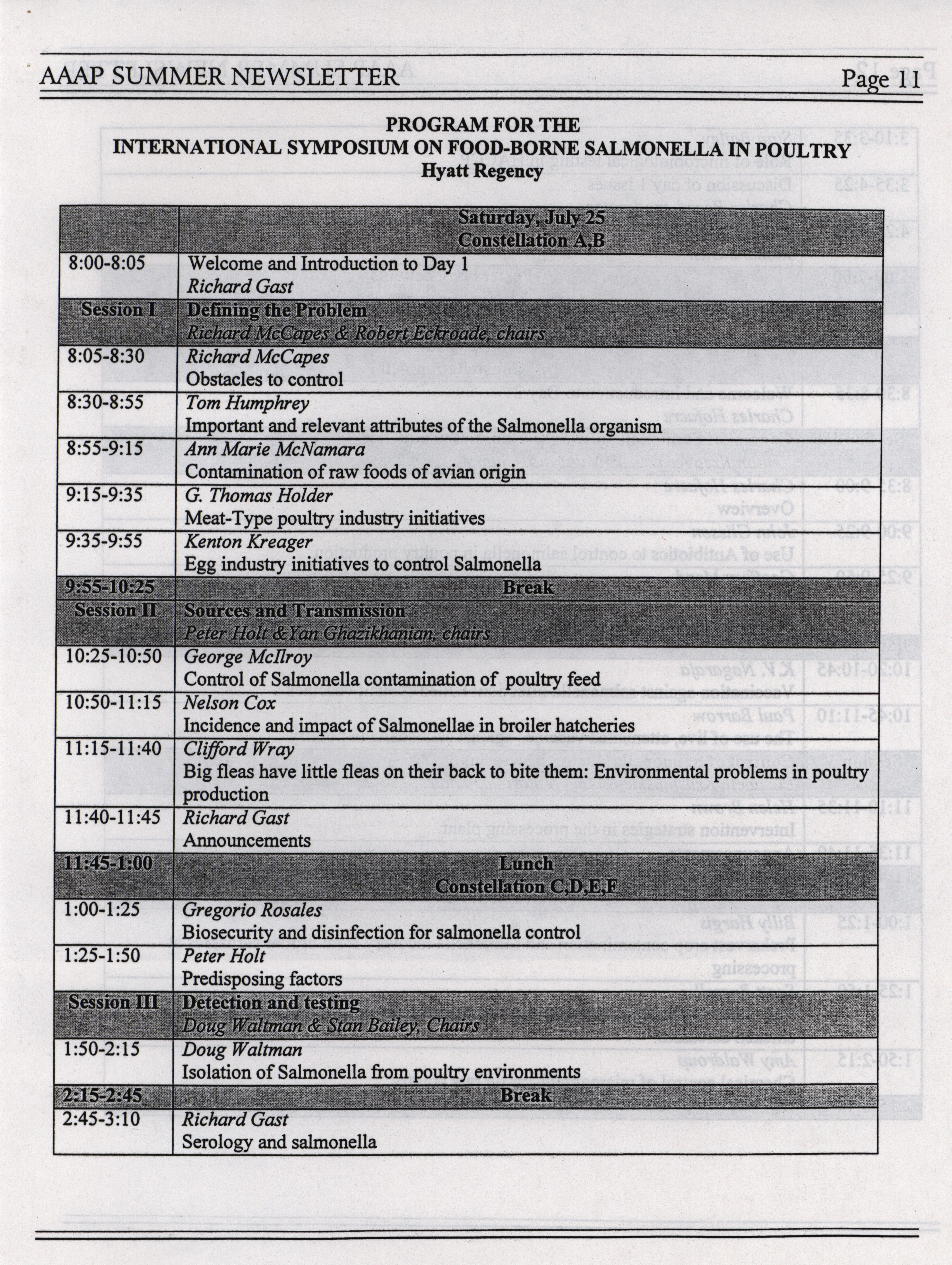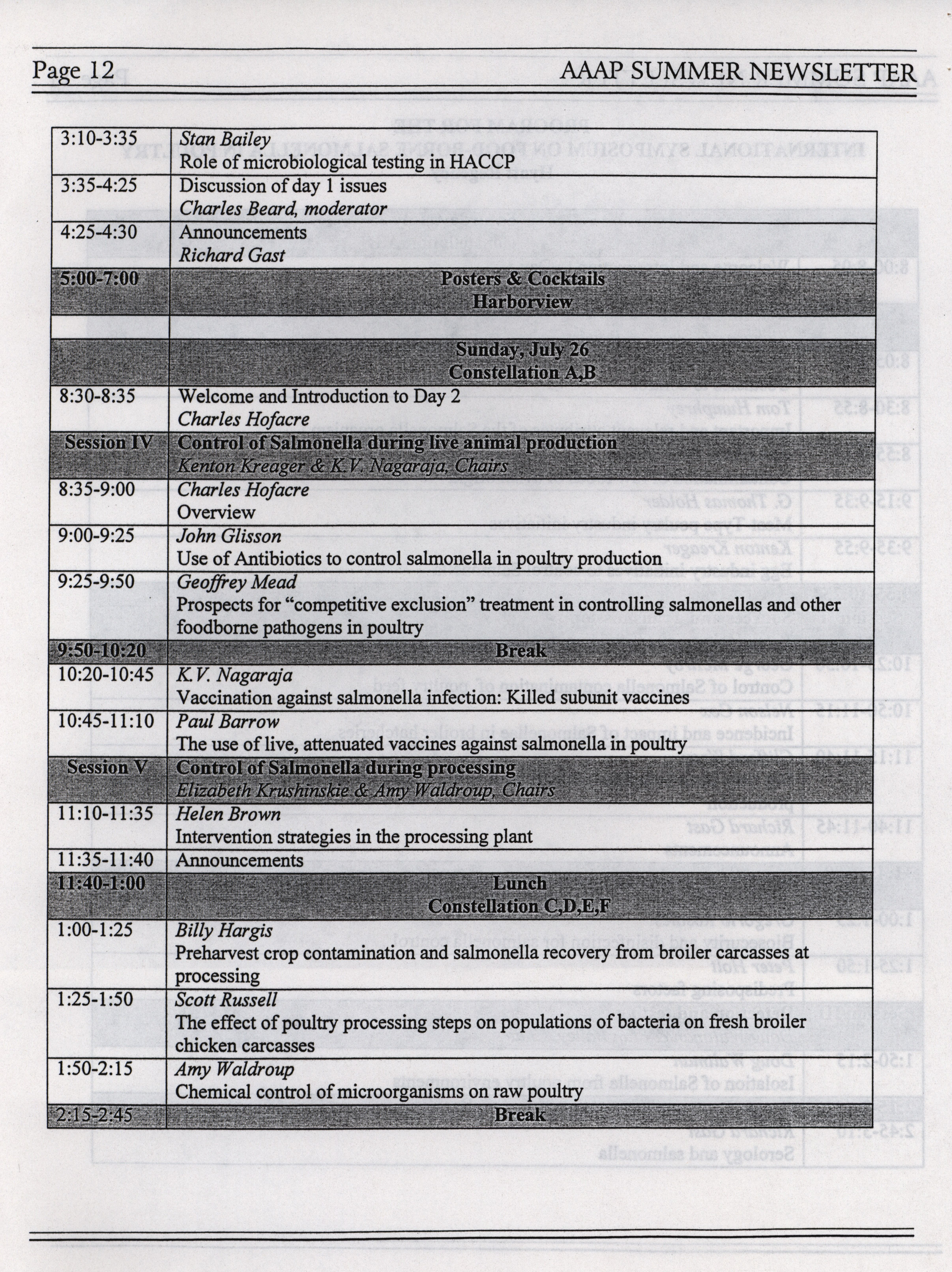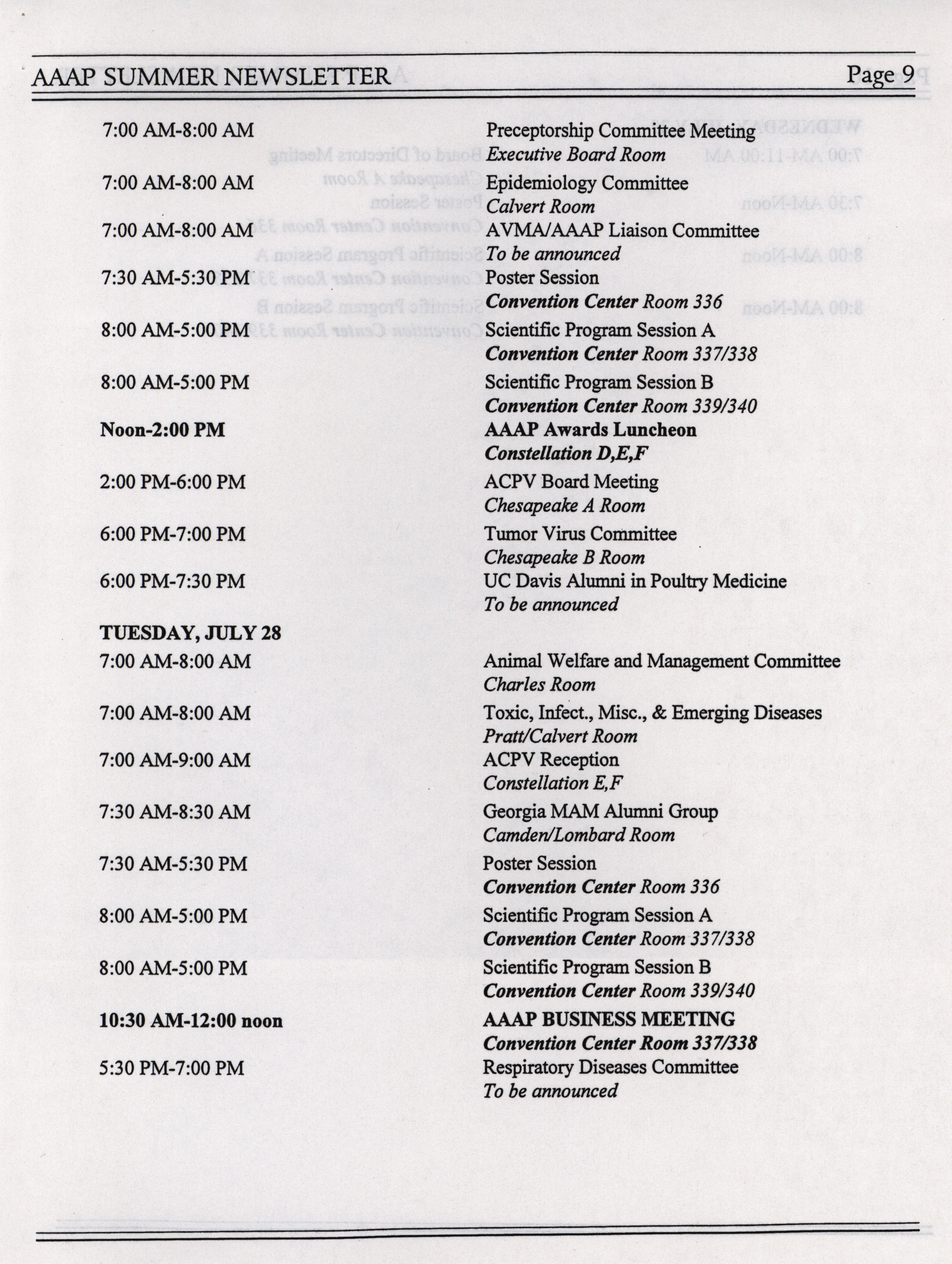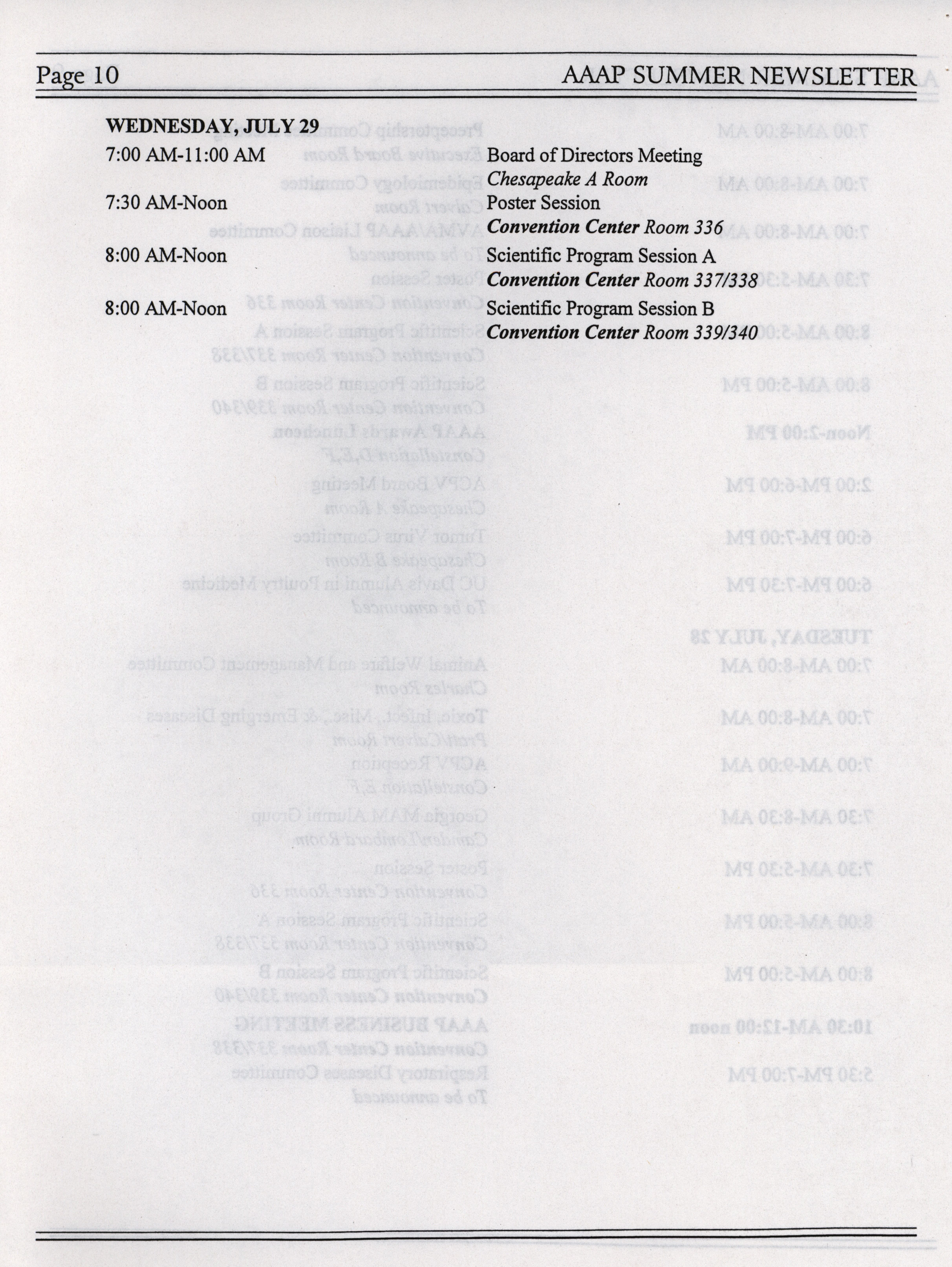 - Summer newsletter from the American Association of Avian Pathologists published in May 1998 including meeting information, programs and other news.
